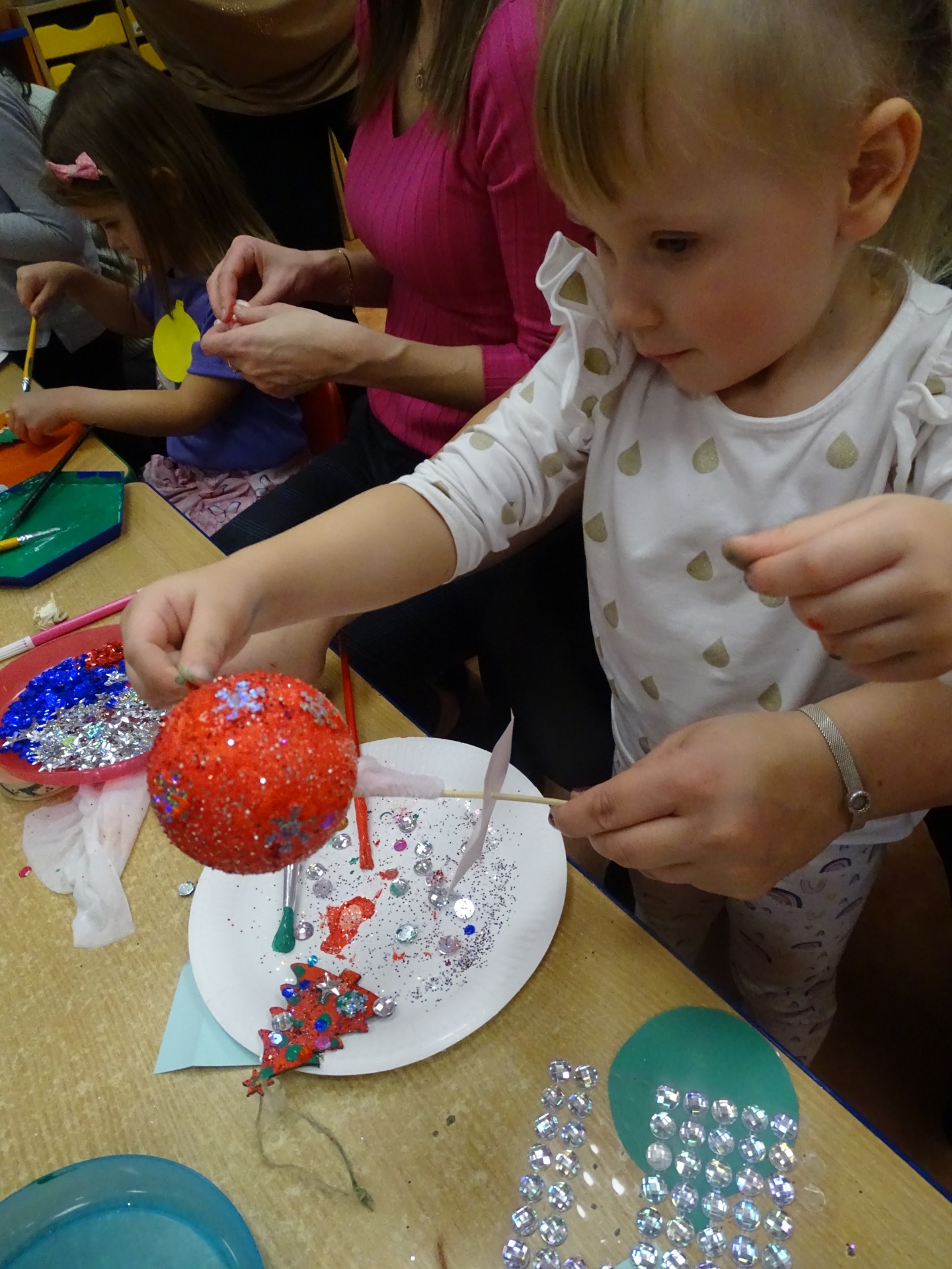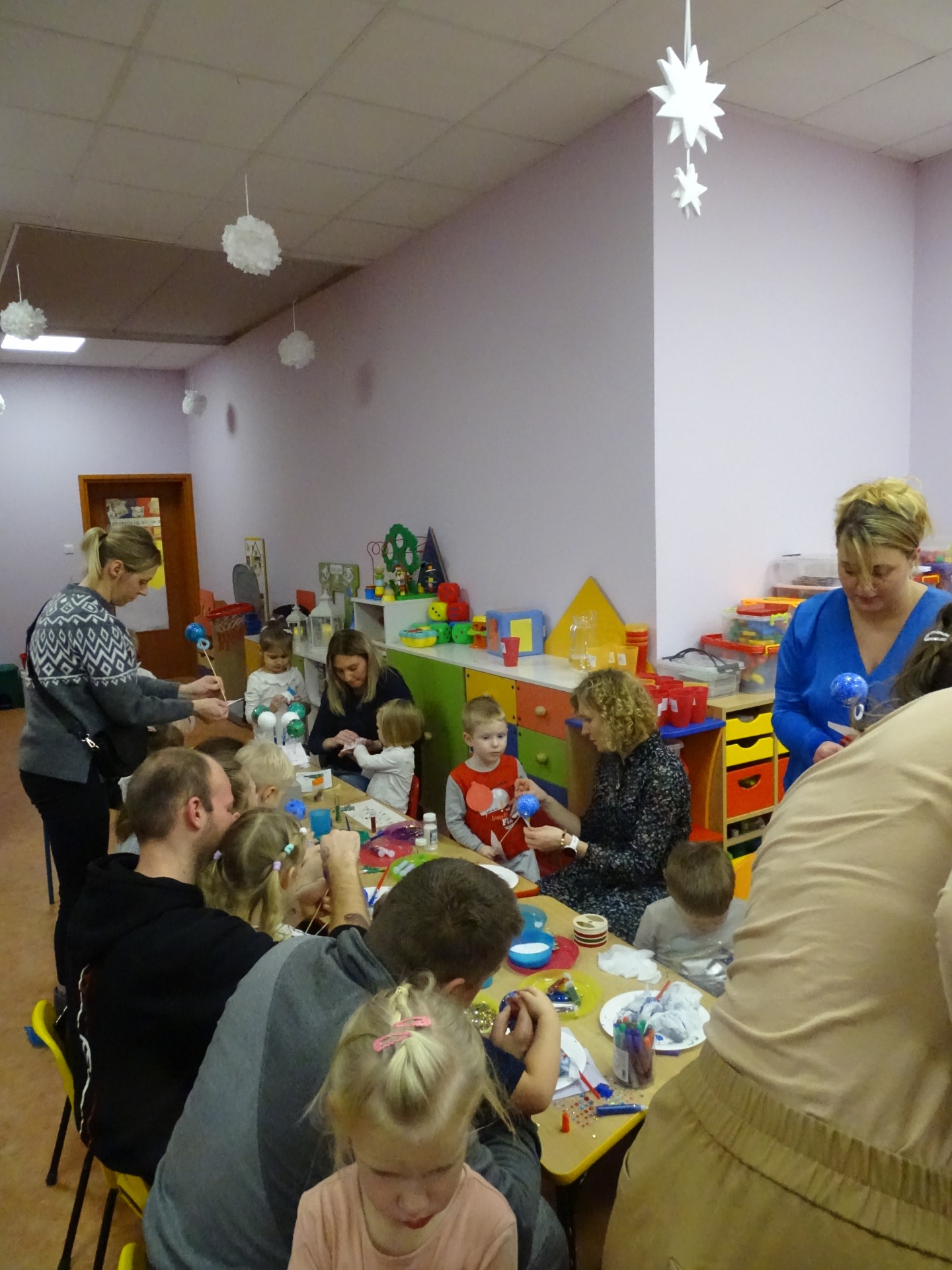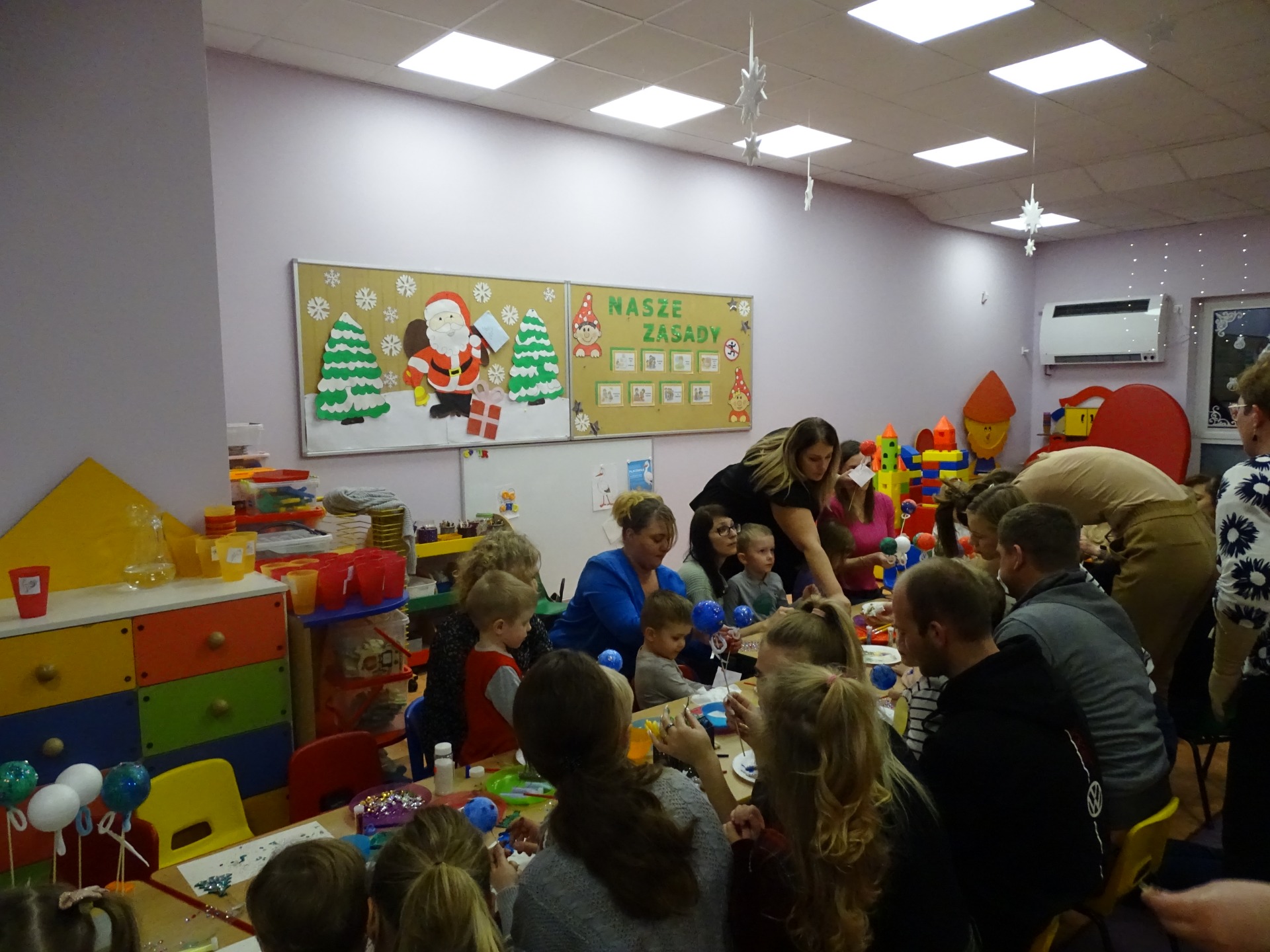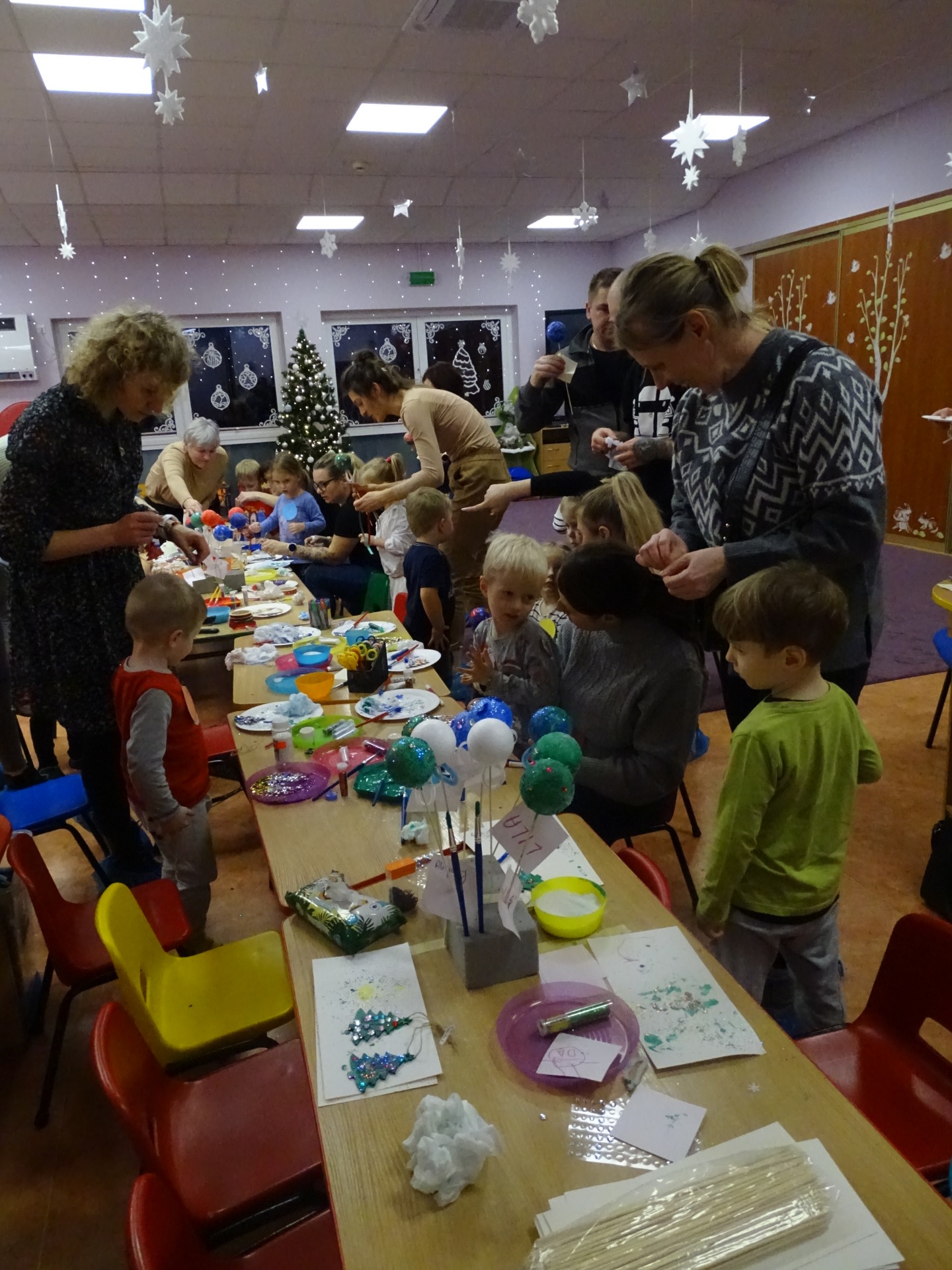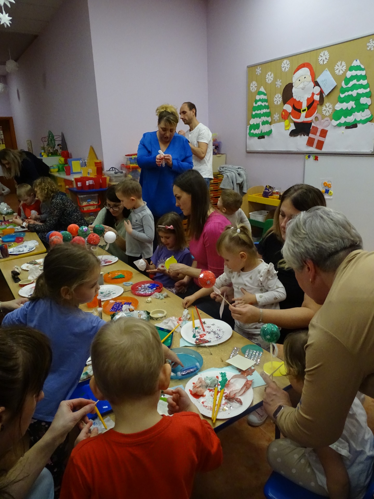 W dniu 13 grudnia dzieci i rodzice z grupy Krasnale spotkali się, by wspólnie bawić się w świątecznej atmosferze. Częścią zajęć były warsztaty plastyczne. Każde dziecko wykonało z pomocą rodzica choinkowe ozdoby. Był to bardzo miło spędzony czas.