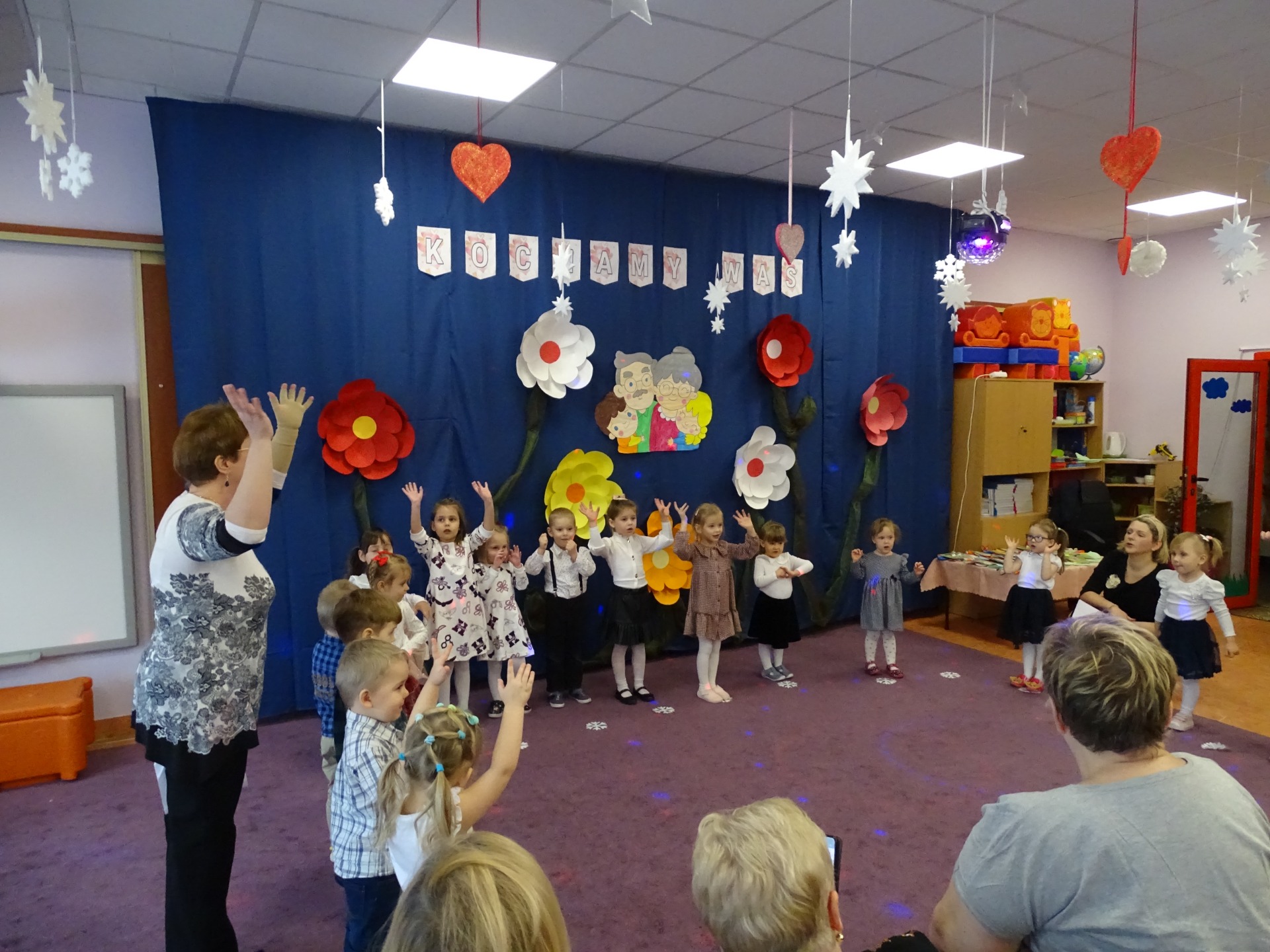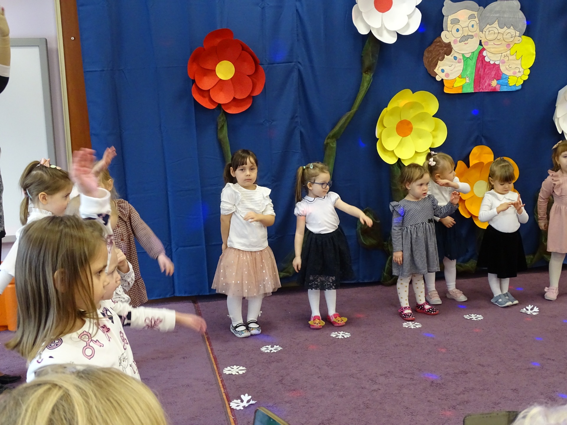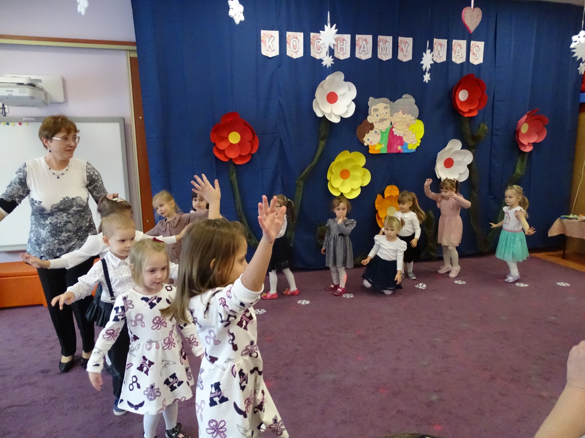 W czwartek 18.01.2023 r. w grupie Krasnali obchodziliśmy Dzień Babci i Dziadka. Dzieci zaprezentowały krótki program artystyczny- recytowały wiersze, tańczyły i śpiewały piosenki dla Babci i Dziadka. Na zakończenie Krasnale złożyły Babciom i Dziadkom życzenia i wręczyły Im własnoręcznie wykonane prezenty. Po części artystycznej goście zostali zaproszeni na poczęstunek i wspólne zabawy przy muzyce.