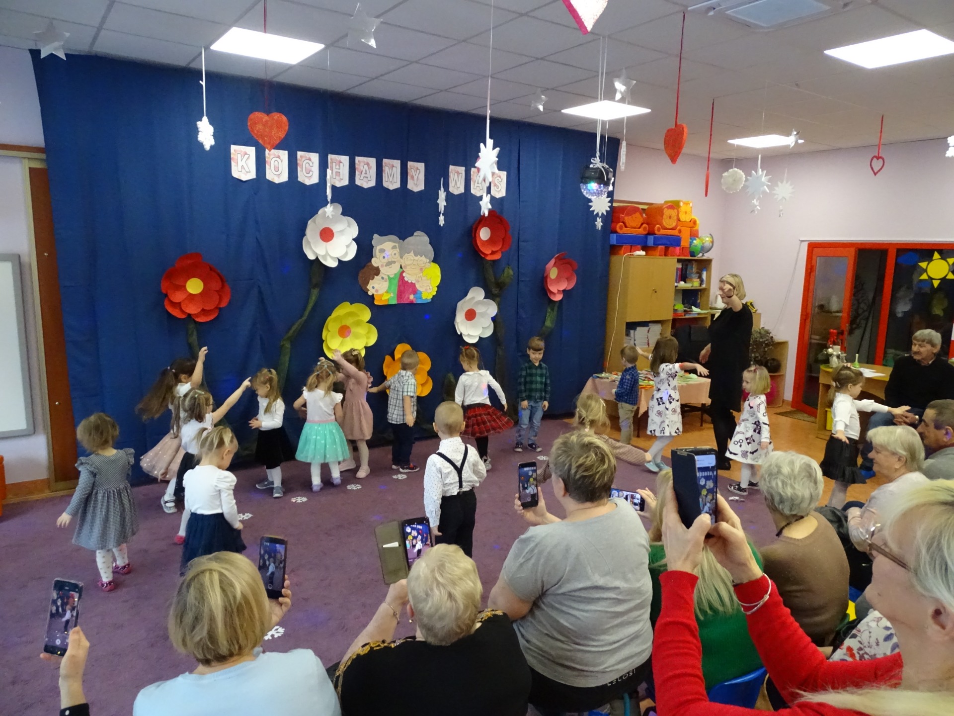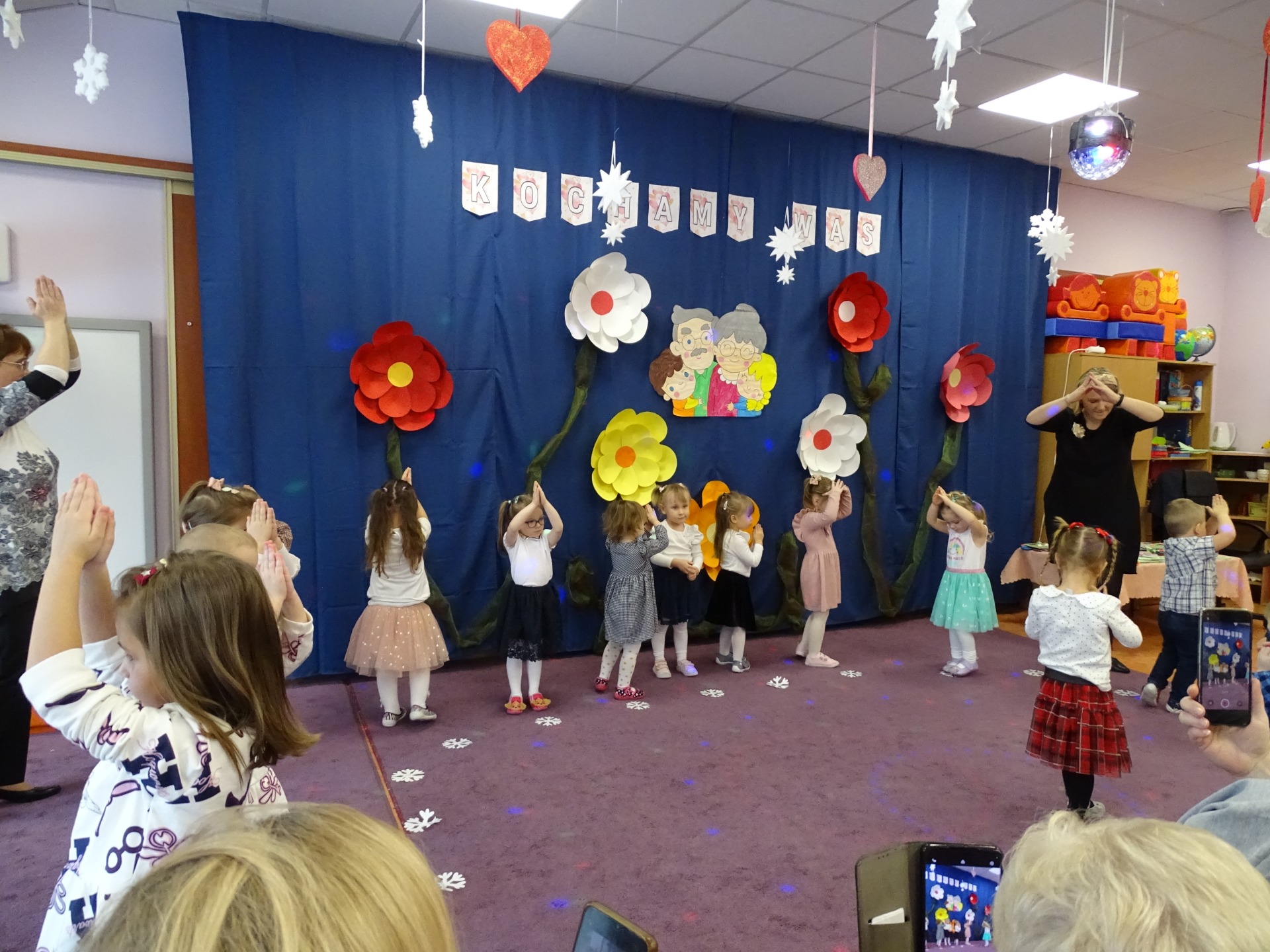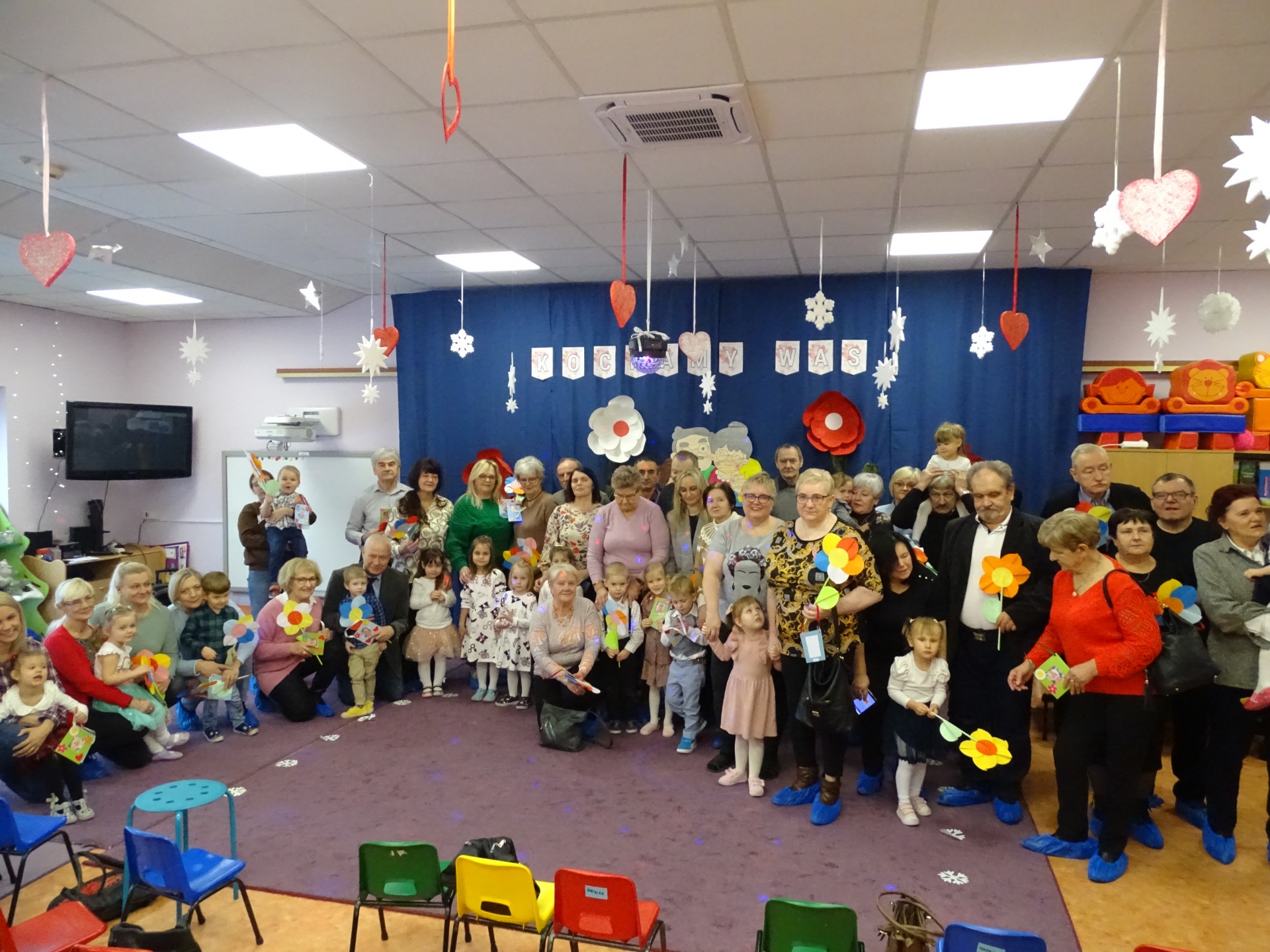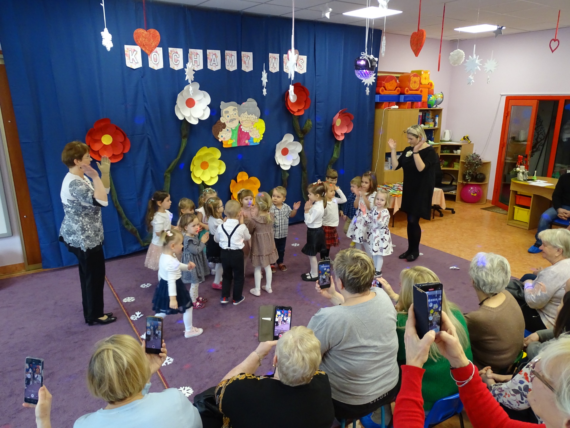 W czwartek 18.01.2023 r. w grupie Krasnali obchodziliśmy Dzień Babci i Dziadka. Dzieci zaprezentowały krótki program artystyczny- recytowały wiersze, tańczyły i śpiewały piosenki dla Babci i Dziadka. Na zakończenie Krasnale złożyły Babciom i Dziadkom życzenia i wręczyły Im własnoręcznie wykonane prezenty. Po części artystycznej goście zostali zaproszeni na poczęstunek i wspólne zabawy przy muzyce.