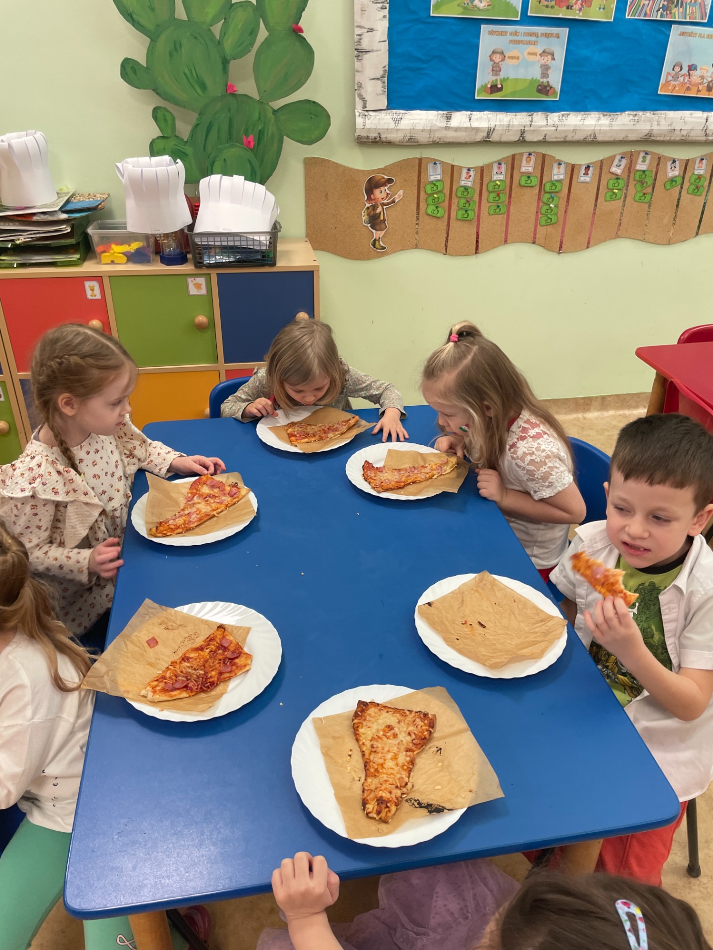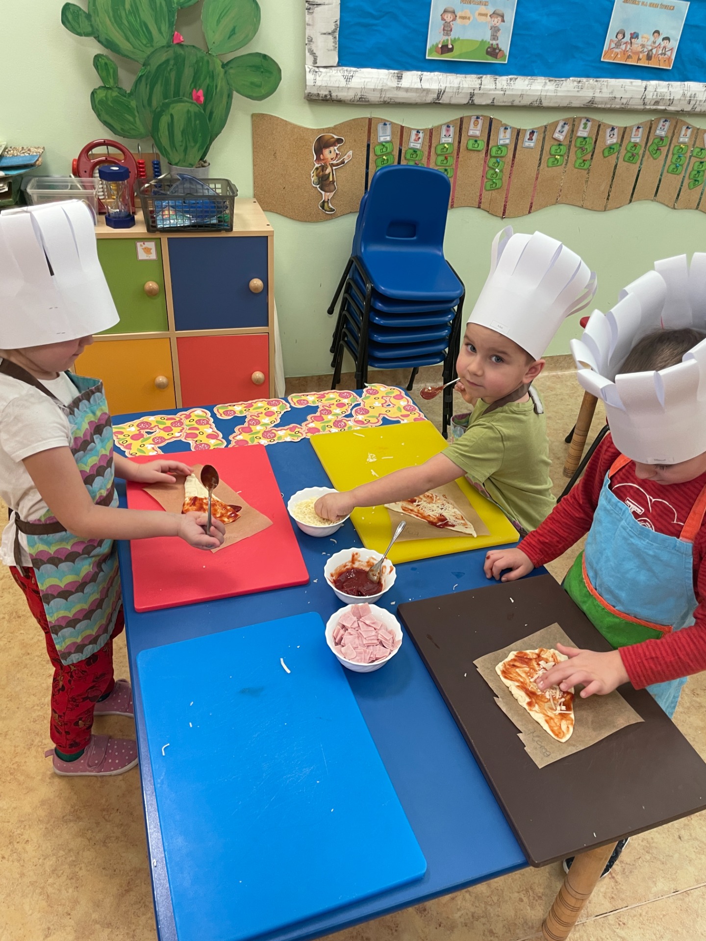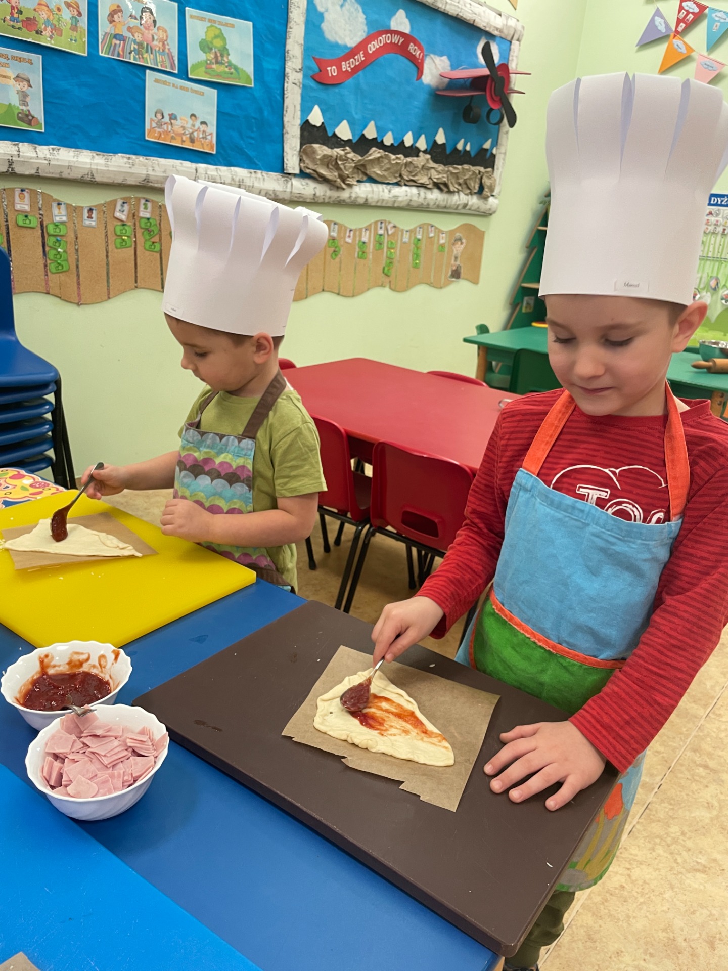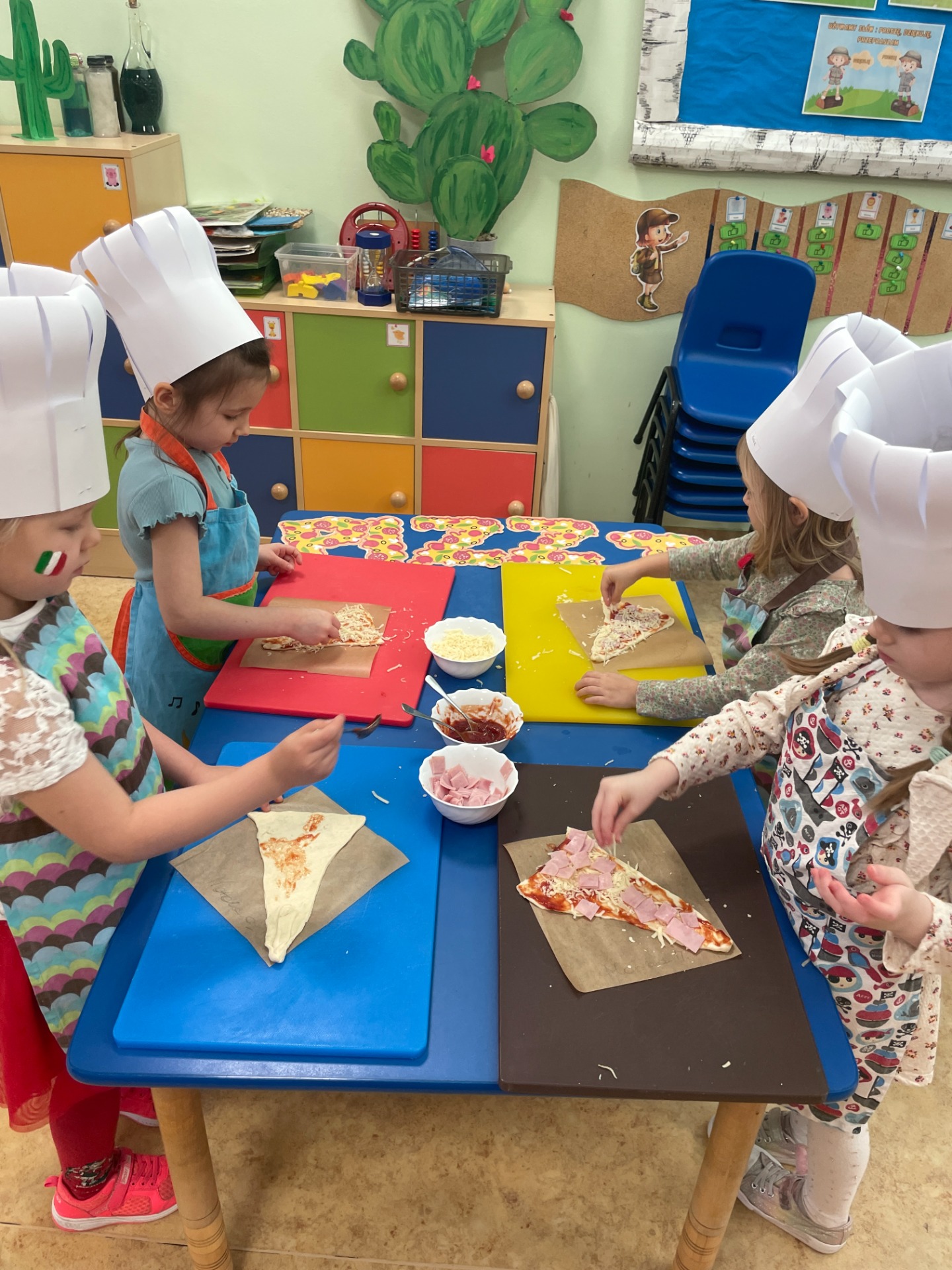 Naszą podróż tym razem odbyliśmy do Włoch, państwa znanego z pysznej kuchni. Dlatego też, aby poczuć smak włoskich przysmaków, przygotowaliśmy w naszym przedszkolu pyszną pizzę.