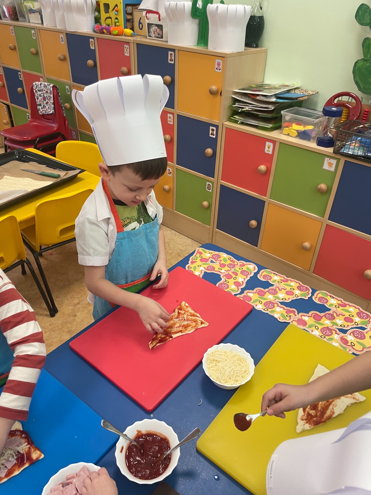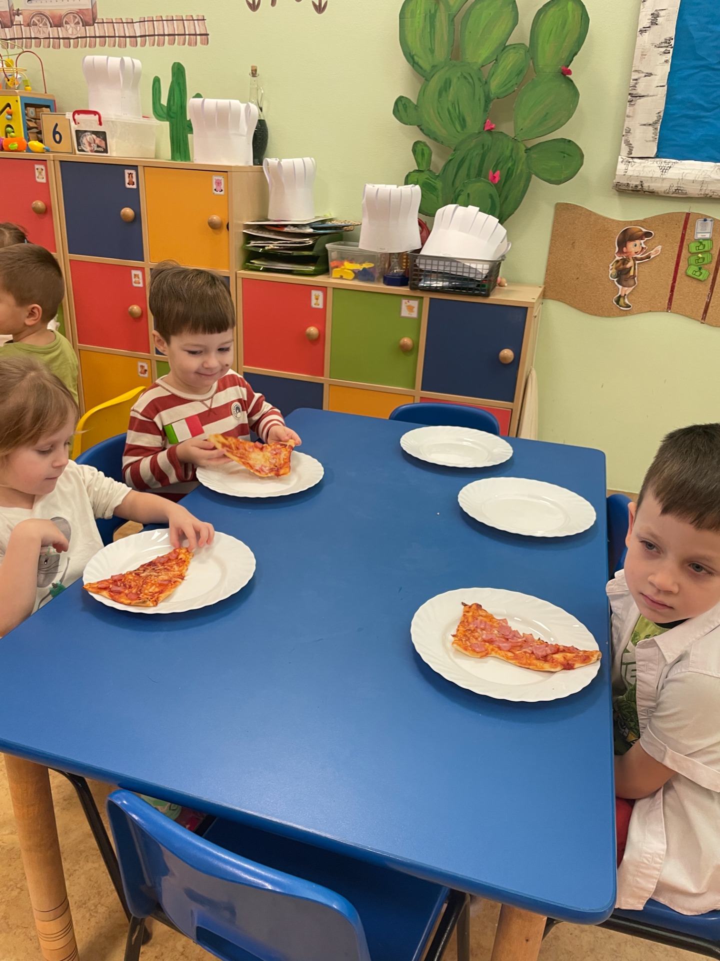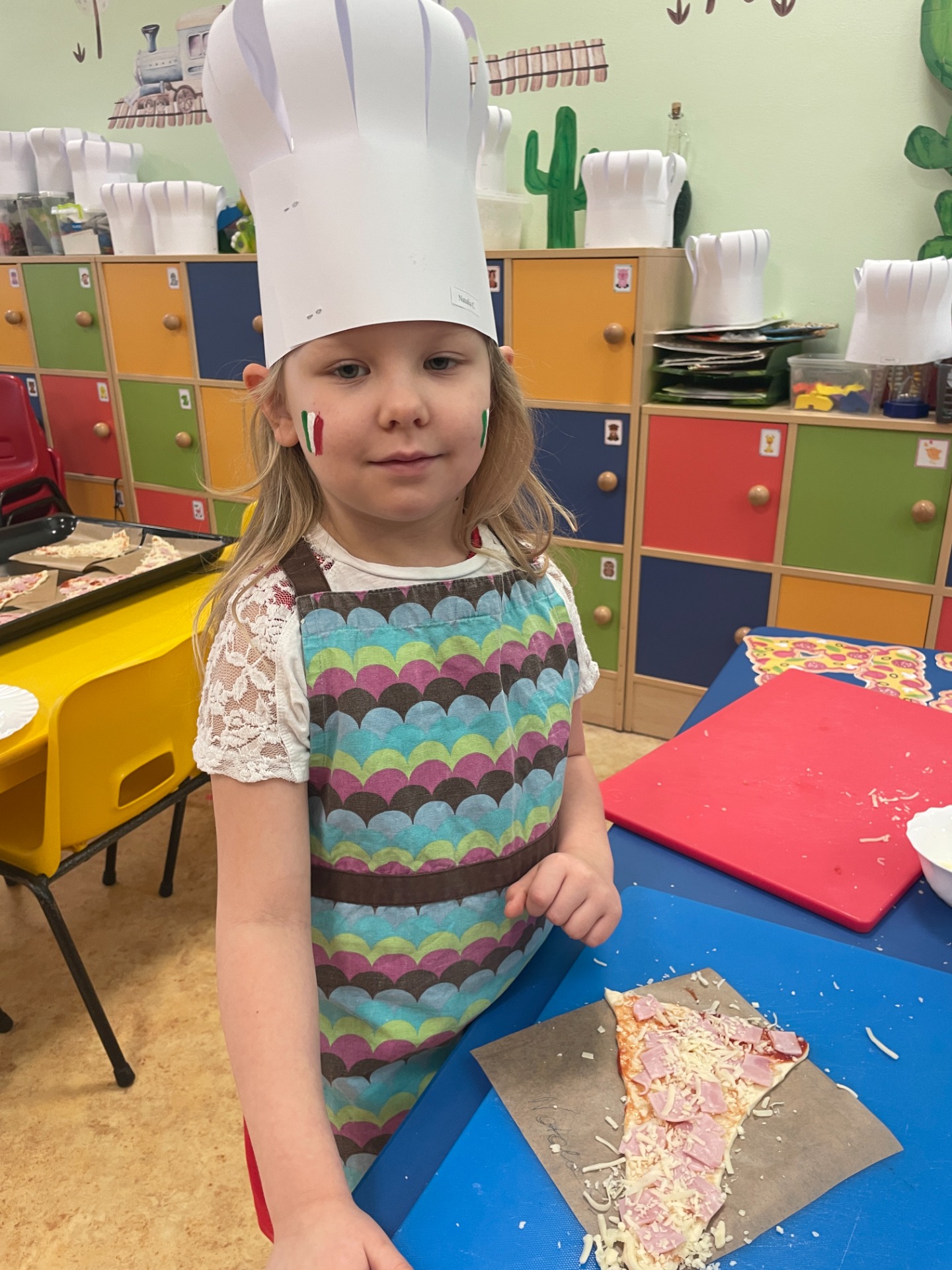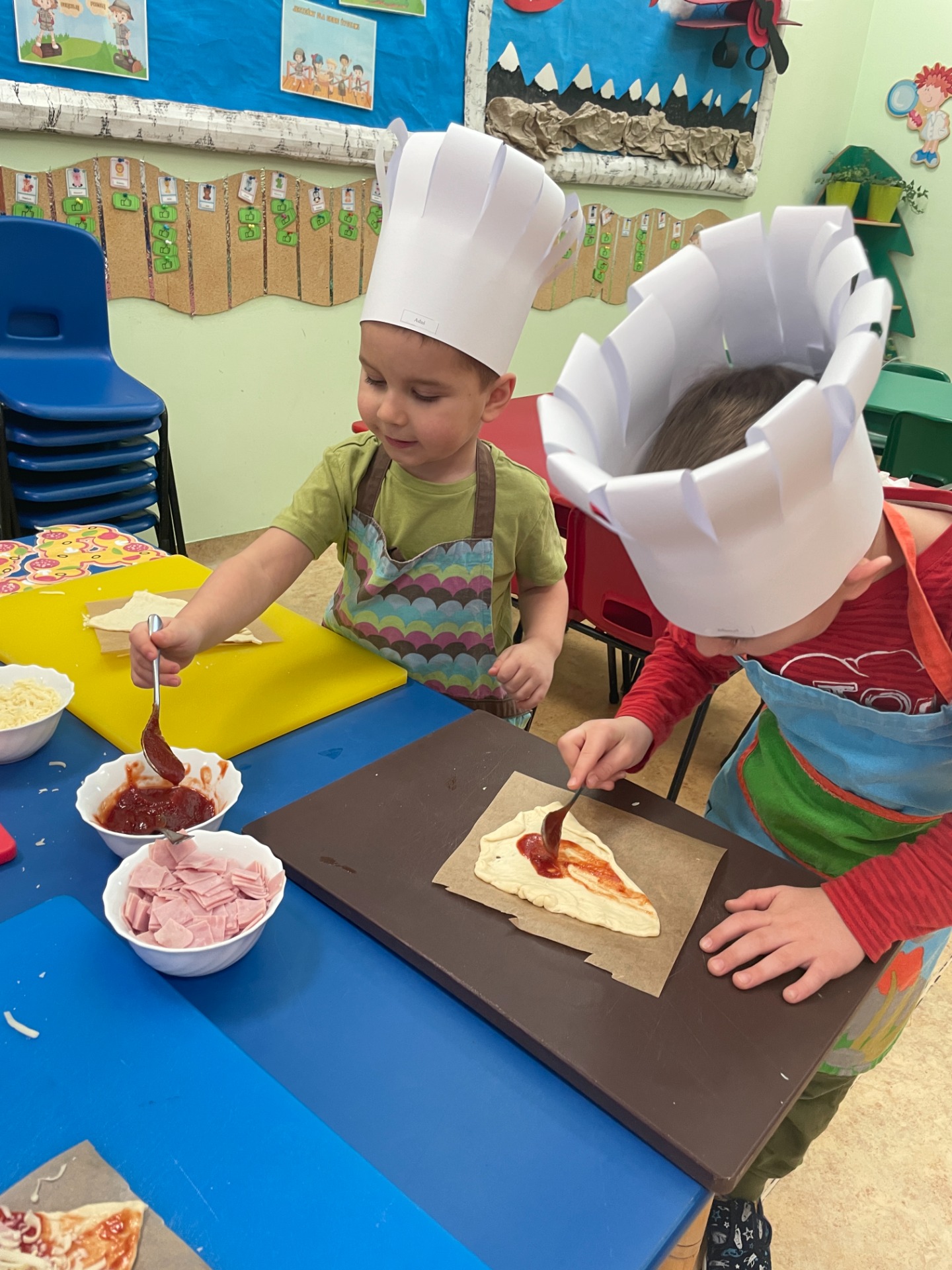 Naszą podróż tym razem odbyliśmy do Włoch, państwa znanego z pysznej kuchni. Dlatego też, aby poczuć smak włoskich przysmaków, przygotowaliśmy w naszym przedszkolu pyszną pizzę.