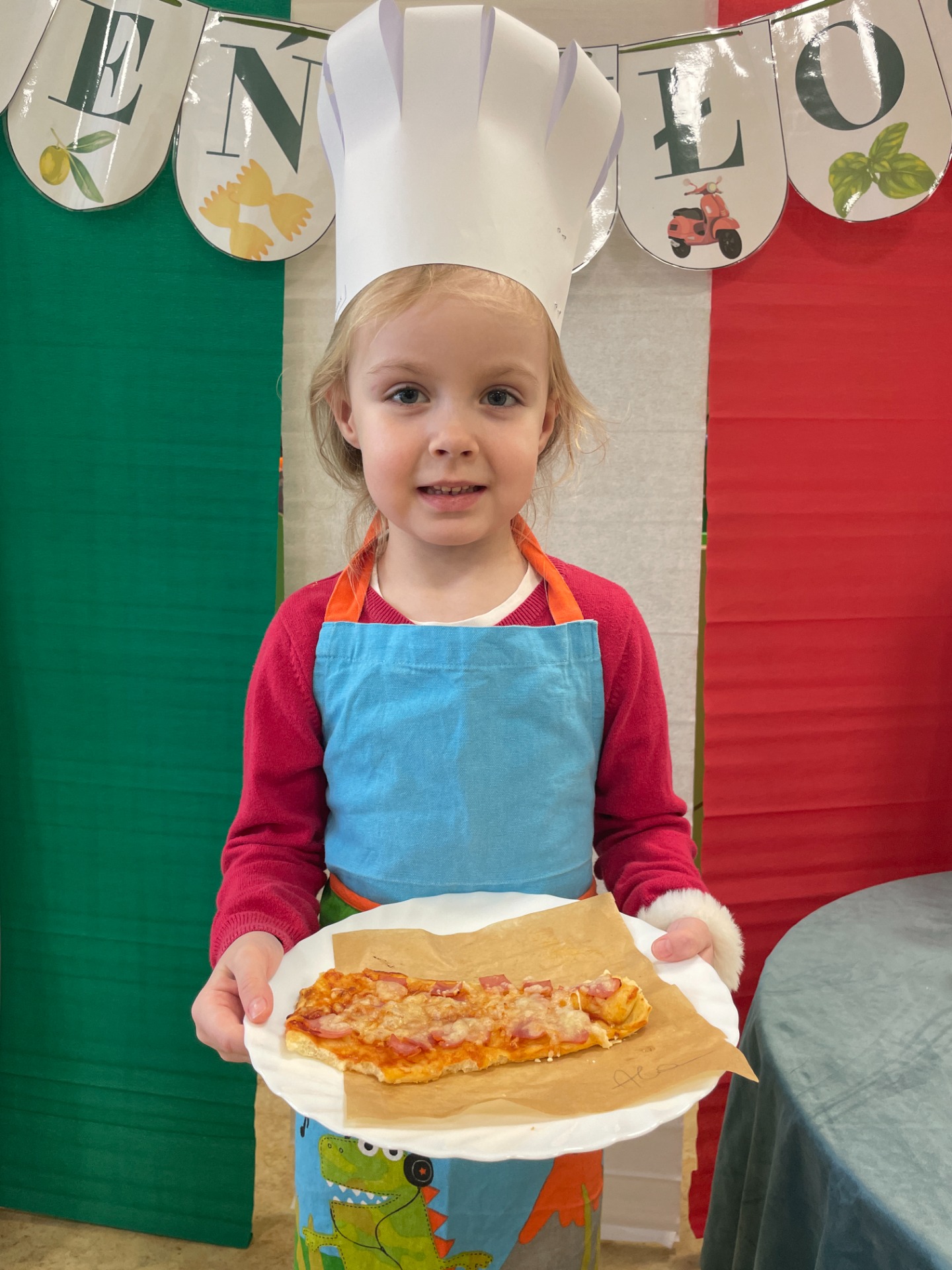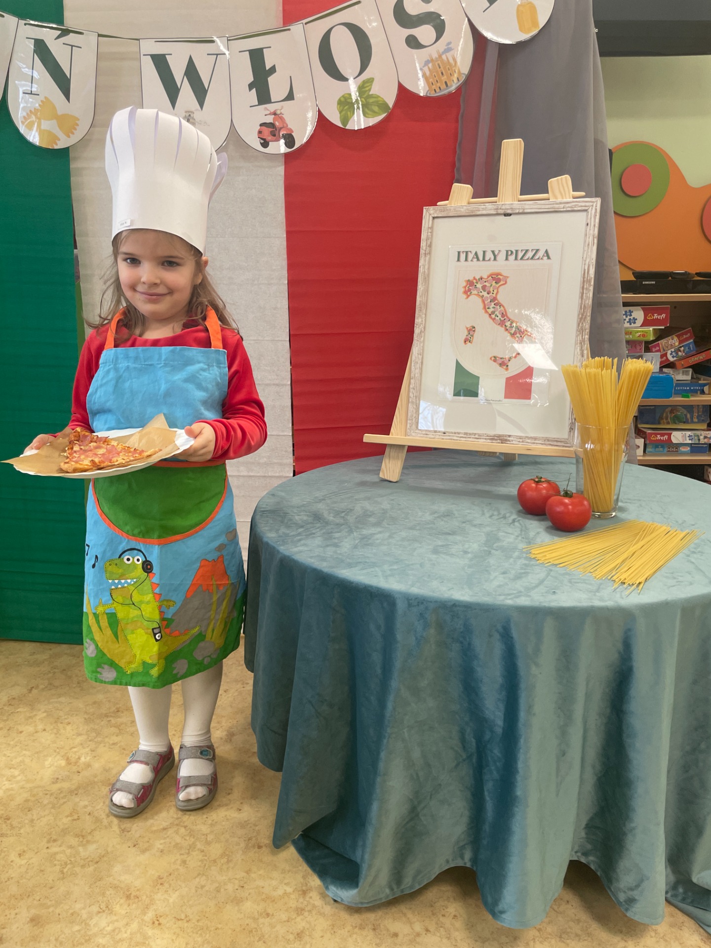 Naszą podróż tym razem odbyliśmy do Włoch, państwa znanego z pysznej kuchni. Dlatego też, aby poczuć smak włoskich przysmaków, przygotowaliśmy w naszym przedszkolu pyszną pizzę.