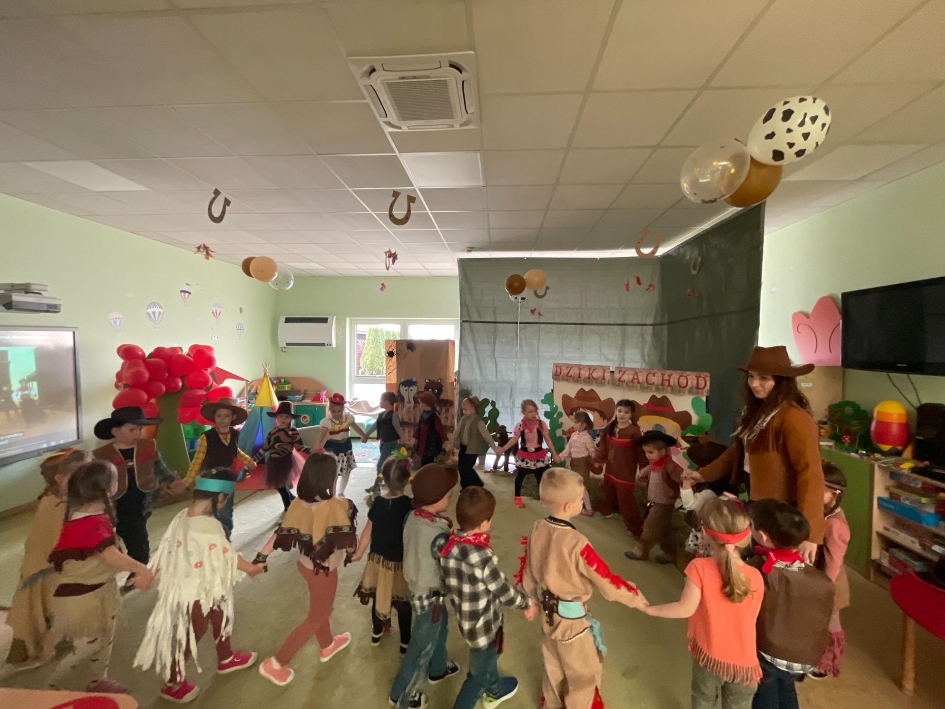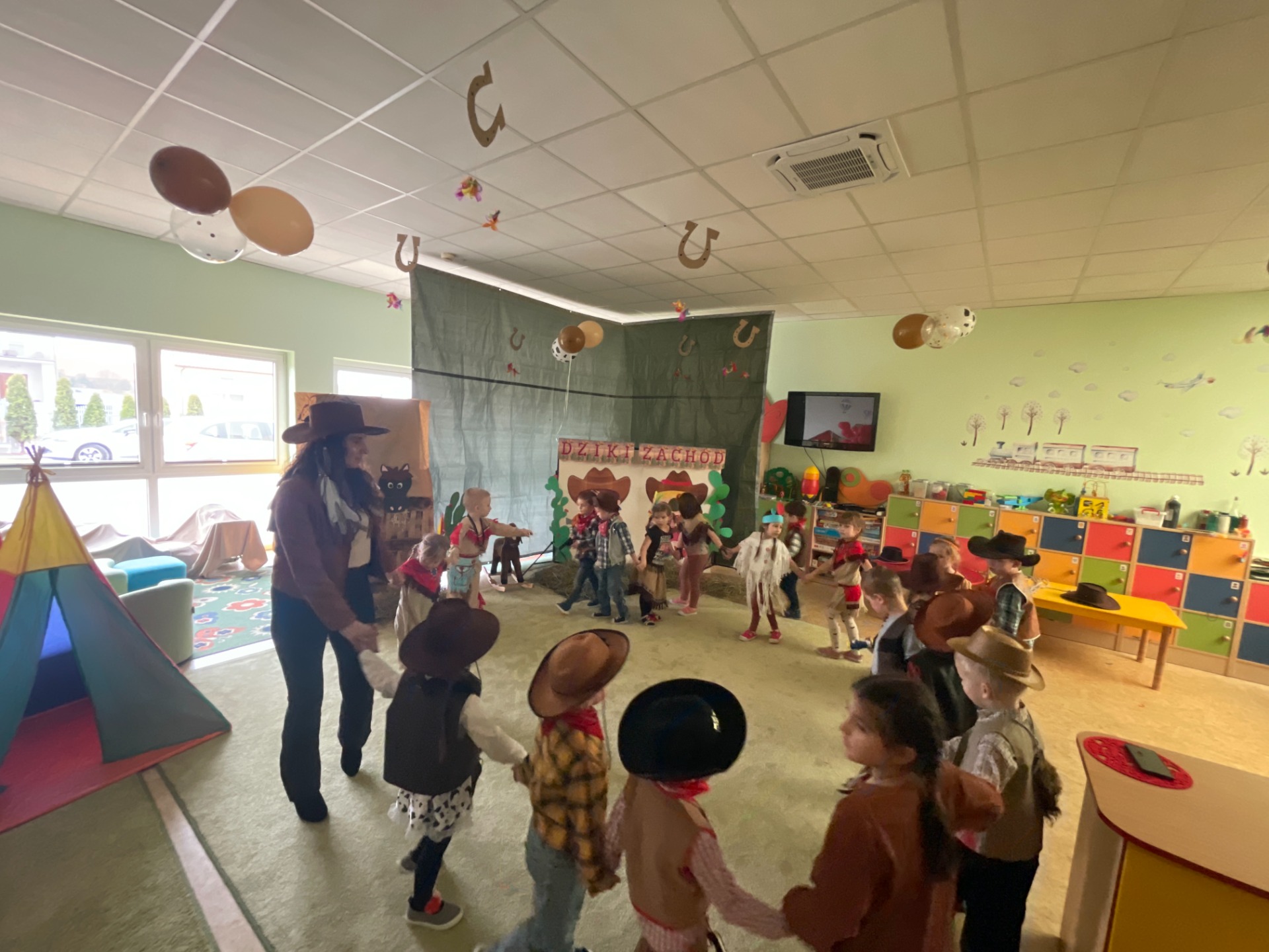 Karnawa艂 to czas pe艂en rado艣ci i zabaw, a jego najbardziej oczekiwanym dniem jest Bal Karnawa艂owy. 13.02.2024r.dzieci z grupy Podr贸偶nik贸w przenios艂y si臋 na Dziki Zach贸d馃, gdzie odbywa艂 si臋 tegoroczny bal pod takim has艂em. Zabawy i konkursy by艂y tematycznie zwi膮zane z Dzikim Zachodem. Natomiast muzyka wprawia艂a w taneczny nastr贸j dzieci oraz ciocie kowbojki. Wszystkie Indianki, Indianie, Kowbojki, Kowboje i Szeryfowie bawili si臋 znakomicie. Podczas przerwy dzieci otrzyma艂y soki oraz s艂odko艣ci, aby zregenerowa膰 si艂y. Bal by艂 udany, a dzieci zadowolone. Z niecierpliwo艣ci膮 czekamy na nast臋pny rok!