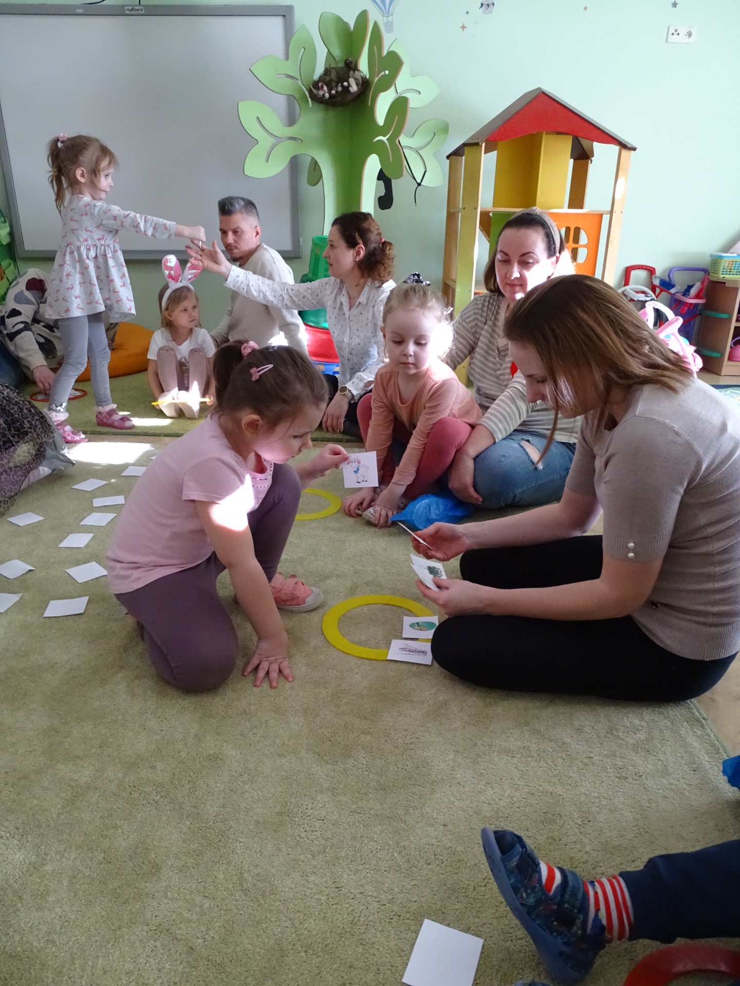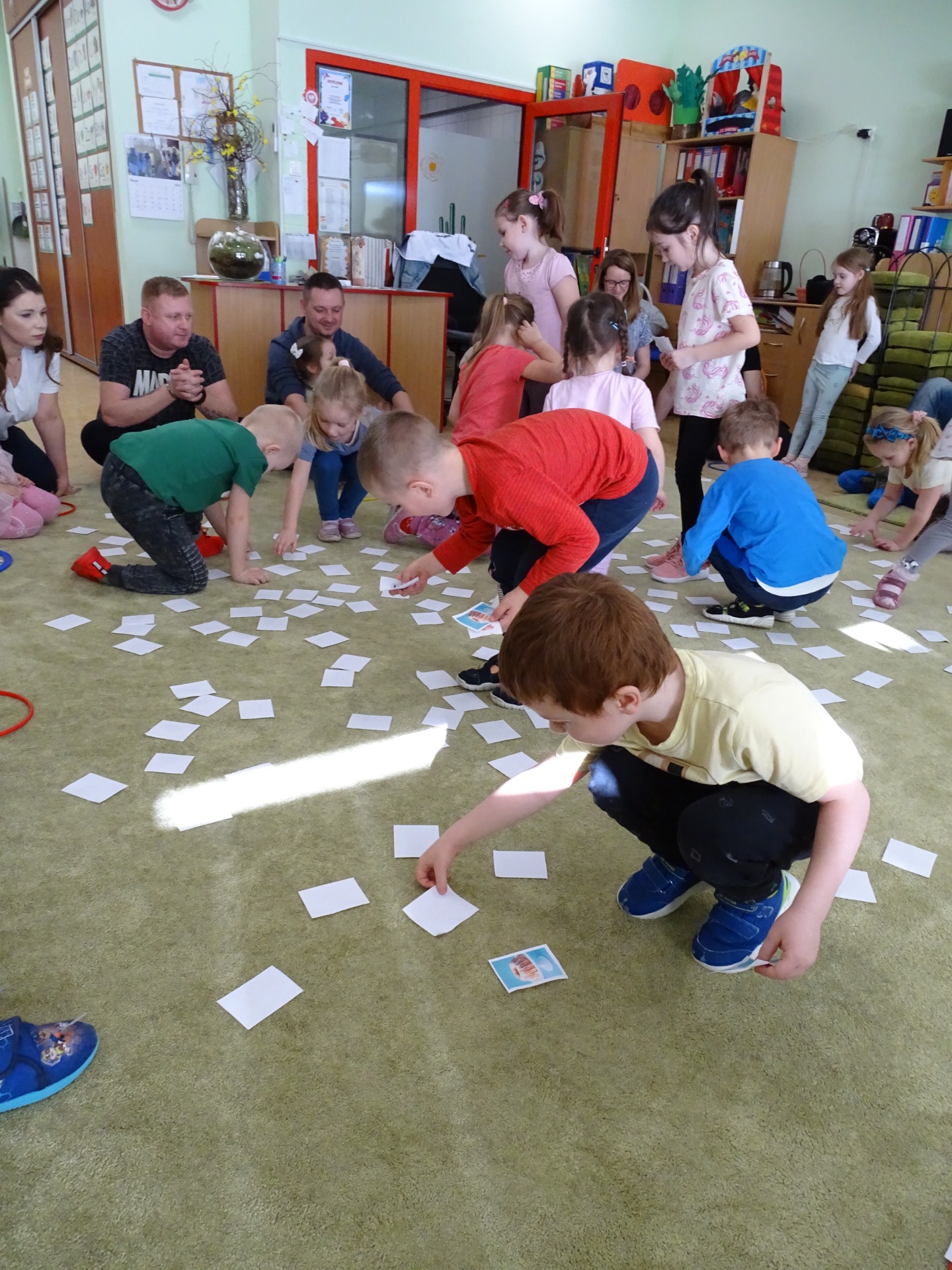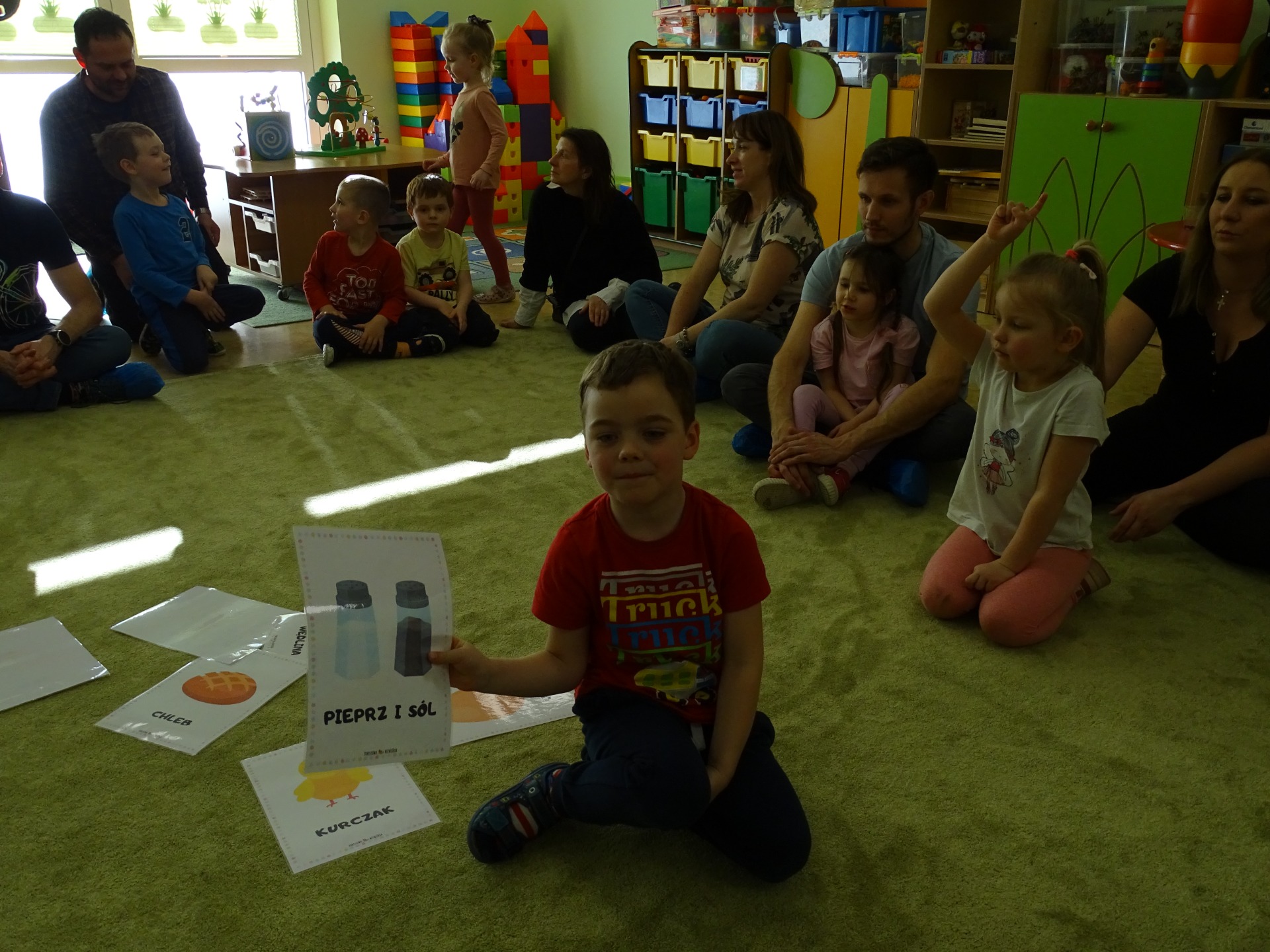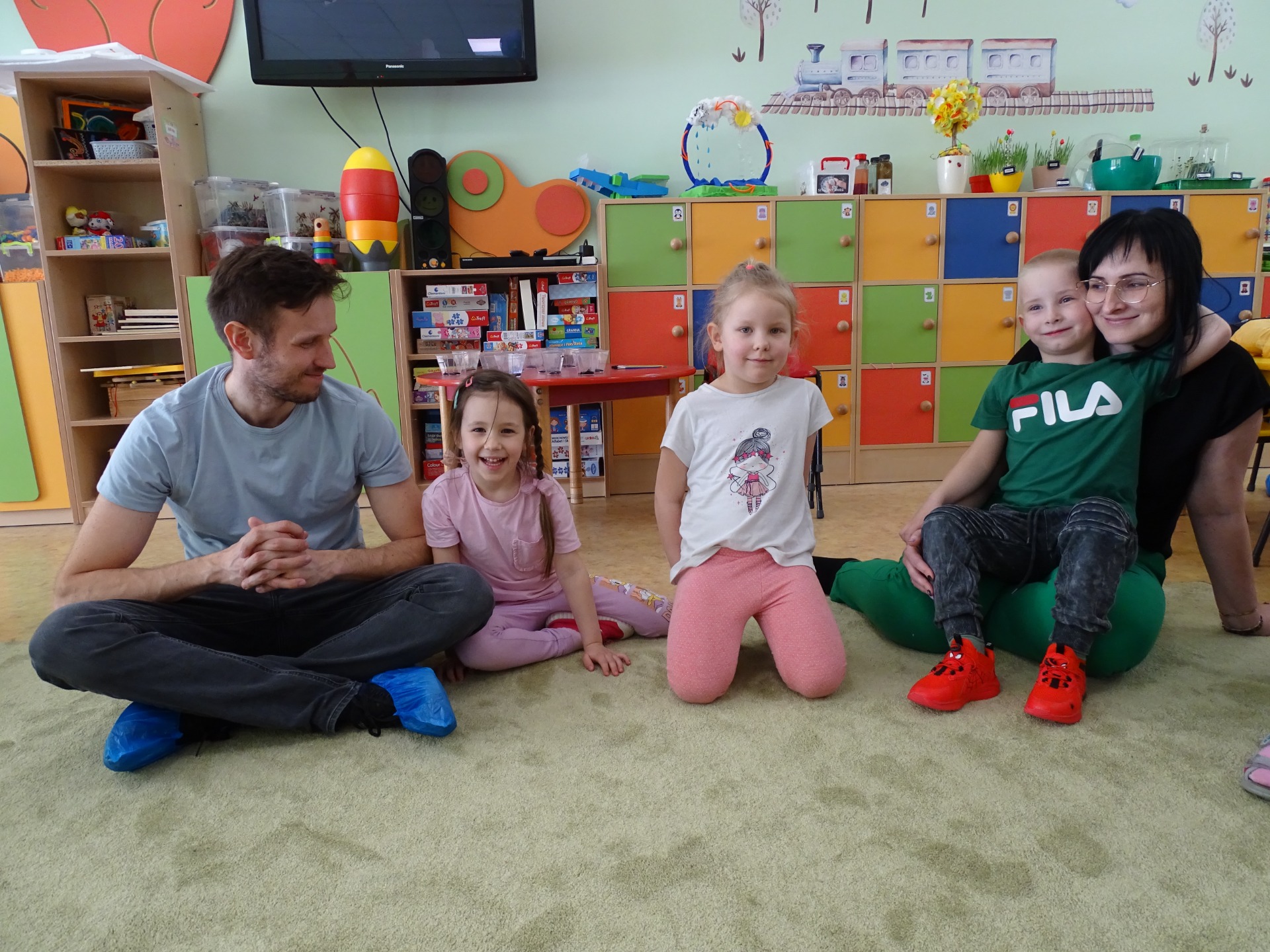 26 marca w grupie Podróżników odbyło się spotkanie świąteczne z rodzicami. Dzieci z niecierpliwością czekały godz.15.00, aby powitać swoich rodziców i wspólnie spędzić z nimi popołudnie w przedszkolu. Na samym początku, dzieci wybierały karty przedstawiające symbole wielkanocne, które wybieramy do koszyczka wielkanocnego. Później każdy z nich musiał skompletować swój koszyczek i odnaleźć 9 różnych elementów. Rodzice czujnie nadzorowali działanie dzieci 😊 Rozmawialiśmy również jakie czynności wykonujemy w okresie przedświątecznym… oczywiście dzieci świetnie wykazały się tą wiedzą 😊 Zbliżające się święta to gorący czas🔥 czas sprzątania oraz gotowania. Tak więc i my imitowaliśmy to w naszej sali, a pomogła nam w tym zabawa „Praczka” oraz zabawa Klanzy „Ciasto”. Dzieci miały okazję również wcielić się w rolę mamy i ubijały pianę z białek😁 Na zakończenie dzieci mogły wykazać się swoimi zdolnościami plastycznymi i wykonać portret swojego rodzica. A pomogła im w tym obręcz owinięta folią stretch. To było bardzo wesołe i miłe popołudnie 😊
