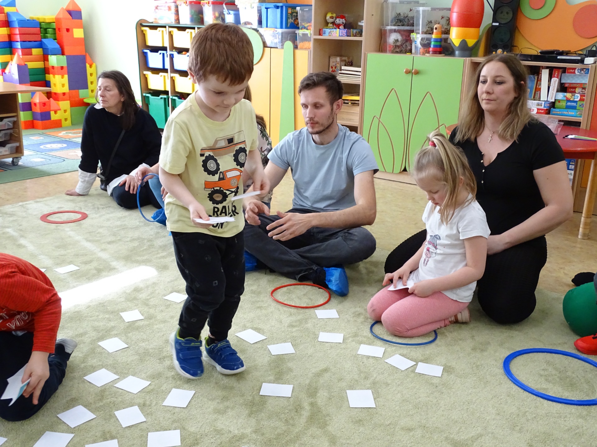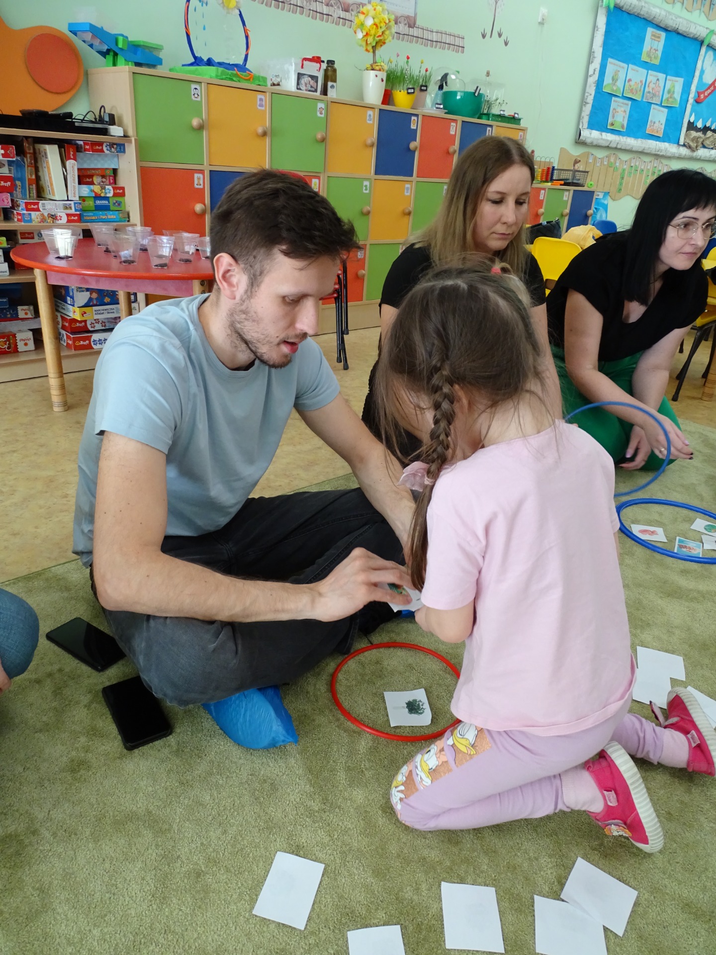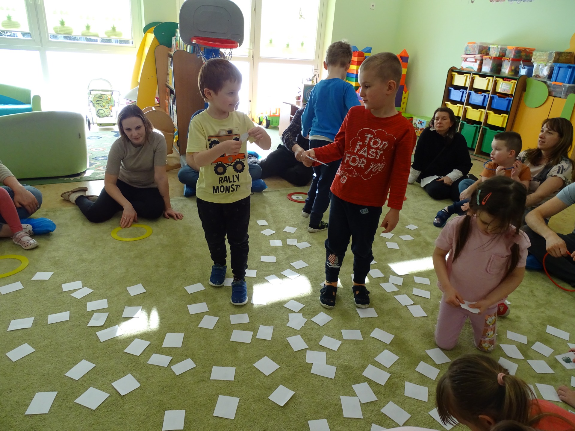 26 marca w grupie Podróżników odbyło się spotkanie świąteczne z rodzicami. Dzieci z niecierpliwością czekały godz.15.00, aby powitać swoich rodziców i wspólnie spędzić z nimi popołudnie w przedszkolu. Na samym początku, dzieci wybierały karty przedstawiające symbole wielkanocne, które wybieramy do koszyczka wielkanocnego. Później każdy z nich musiał skompletować swój koszyczek i odnaleźć 9 różnych elementów. Rodzice czujnie nadzorowali działanie dzieci 😊 Rozmawialiśmy również jakie czynności wykonujemy w okresie przedświątecznym… oczywiście dzieci świetnie wykazały się tą wiedzą 😊 Zbliżające się święta to gorący czas🔥 czas sprzątania oraz gotowania. Tak więc i my imitowaliśmy to w naszej sali, a pomogła nam w tym zabawa „Praczka” oraz zabawa Klanzy „Ciasto”. Dzieci miały okazję również wcielić się w rolę mamy i ubijały pianę z białek😁 Na zakończenie dzieci mogły wykazać się swoimi zdolnościami plastycznymi i wykonać portret swojego rodzica. A pomogła im w tym obręcz owinięta folią stretch. To było bardzo wesołe i miłe popołudnie 😊