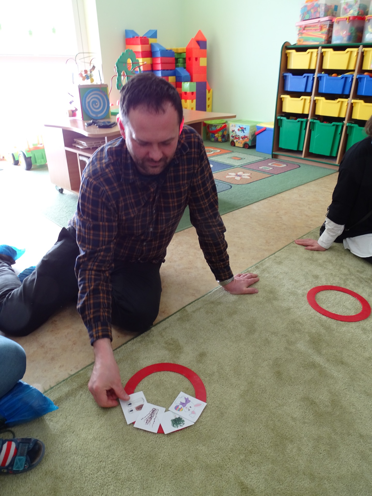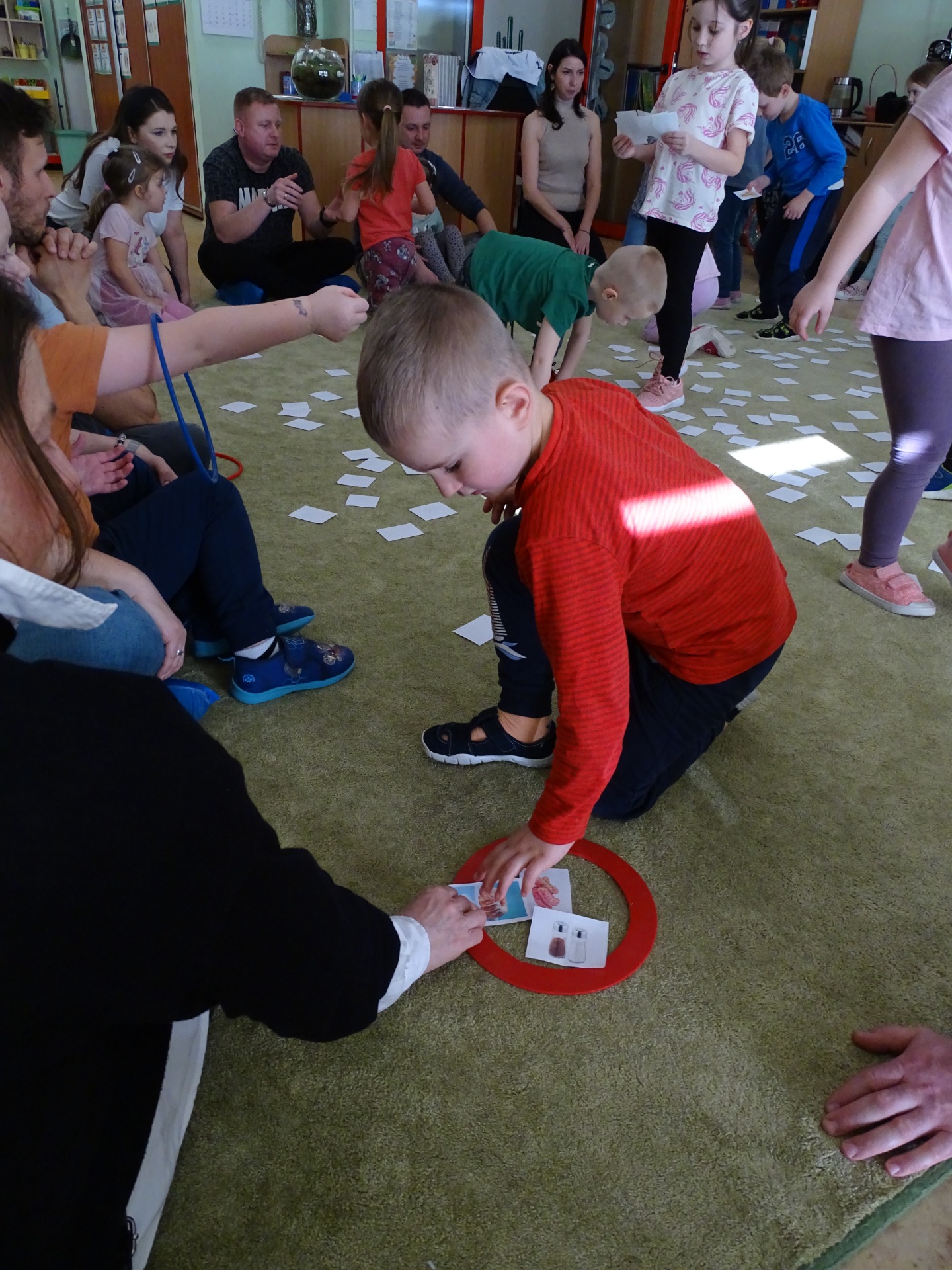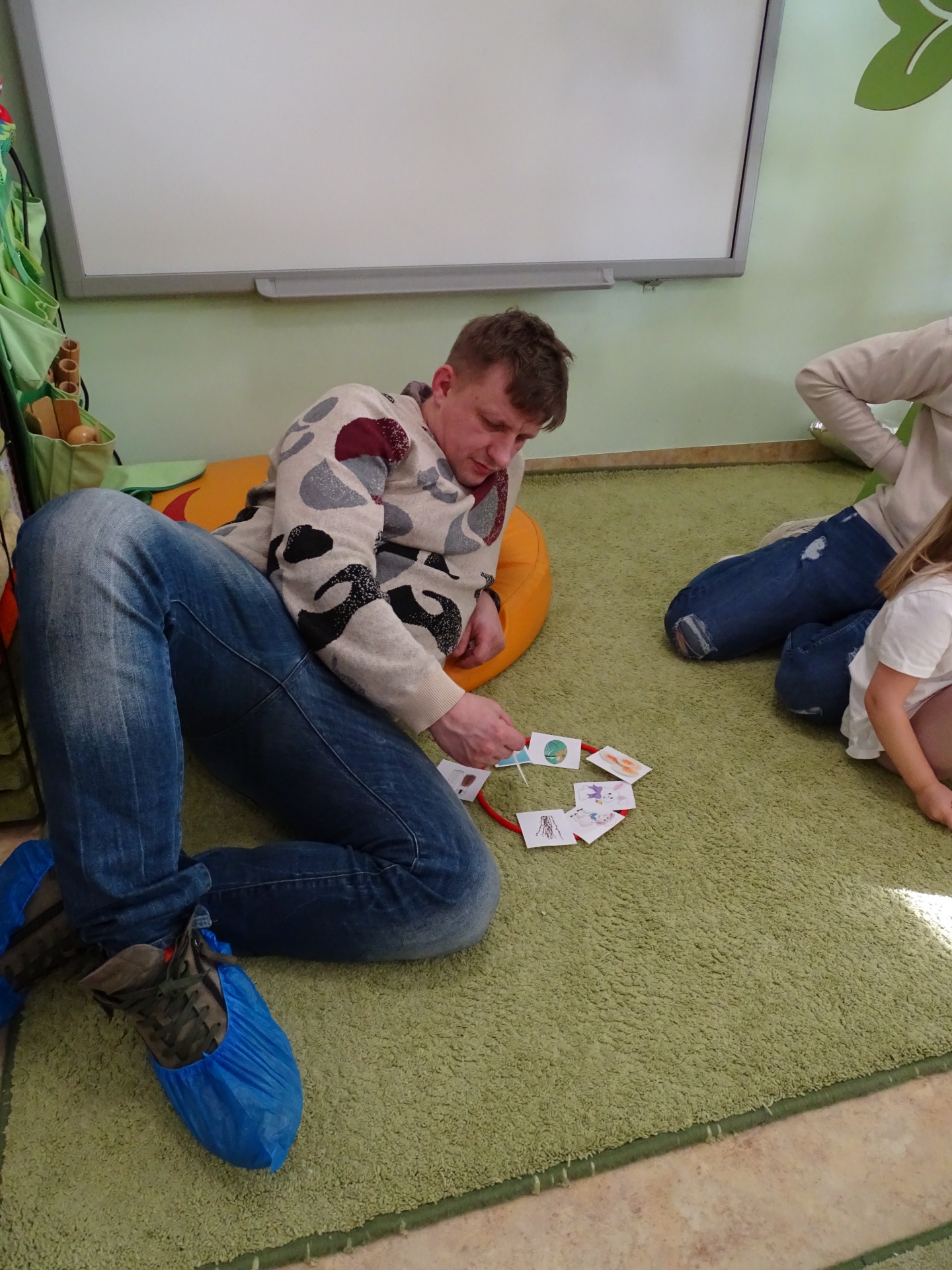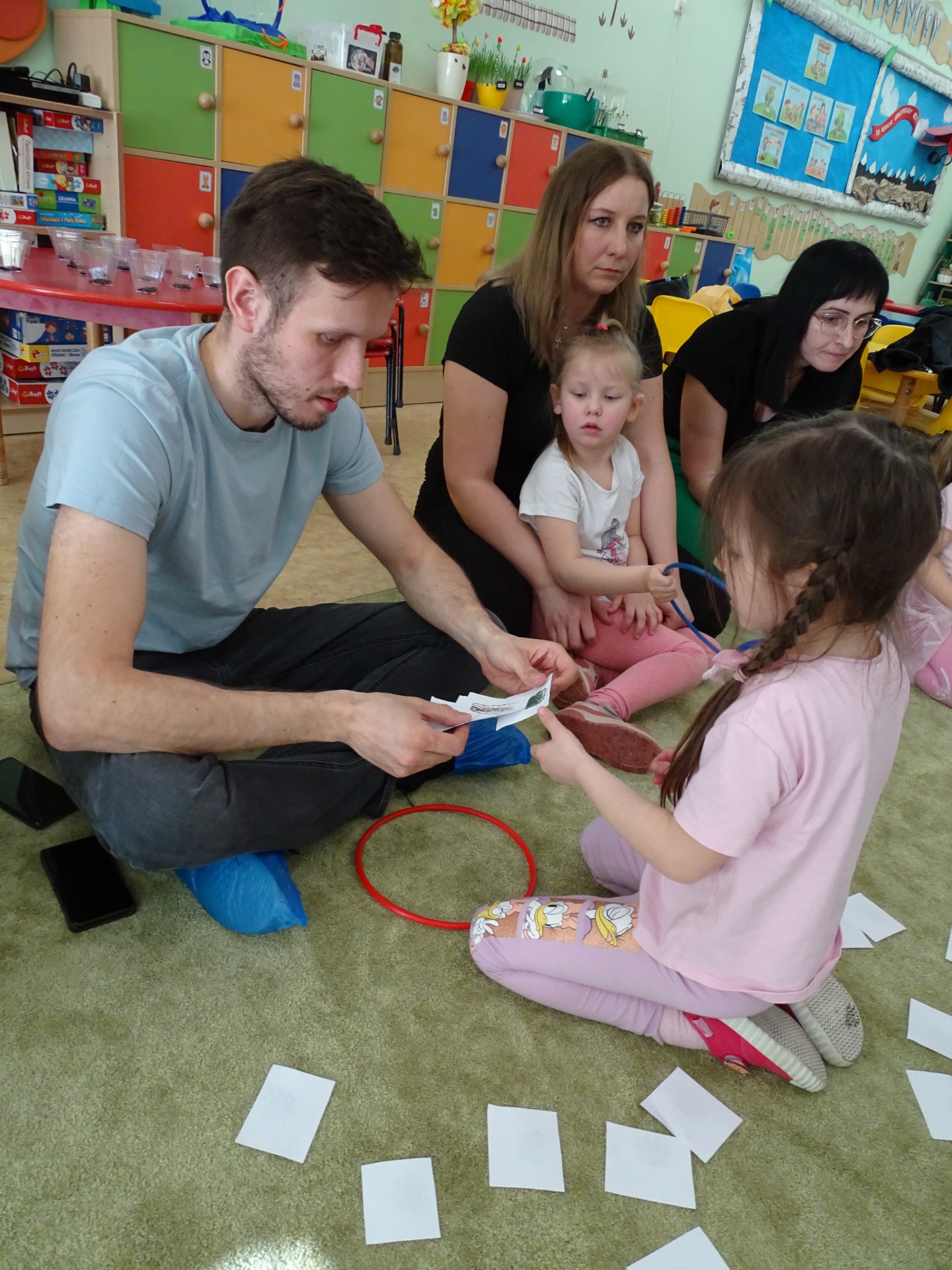 26 marca w grupie Podróżników odbyło się spotkanie świąteczne z rodzicami. Dzieci z niecierpliwością czekały godz.15.00, aby powitać swoich rodziców i wspólnie spędzić z nimi popołudnie w przedszkolu. Na samym początku, dzieci wybierały karty przedstawiające symbole wielkanocne, które wybieramy do koszyczka wielkanocnego. Później każdy z nich musiał skompletować swój koszyczek i odnaleźć 9 różnych elementów. Rodzice czujnie nadzorowali działanie dzieci 😊 Rozmawialiśmy również jakie czynności wykonujemy w okresie przedświątecznym… oczywiście dzieci świetnie wykazały się tą wiedzą 😊 Zbliżające się święta to gorący czas🔥 czas sprzątania oraz gotowania. Tak więc i my imitowaliśmy to w naszej sali, a pomogła nam w tym zabawa „Praczka” oraz zabawa Klanzy „Ciasto”. Dzieci miały okazję również wcielić się w rolę mamy i ubijały pianę z białek😁 Na zakończenie dzieci mogły wykazać się swoimi zdolnościami plastycznymi i wykonać portret swojego rodzica. A pomogła im w tym obręcz owinięta folią stretch. To było bardzo wesołe i miłe popołudnie 😊