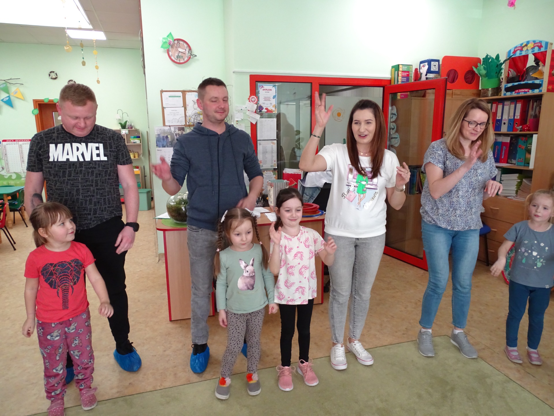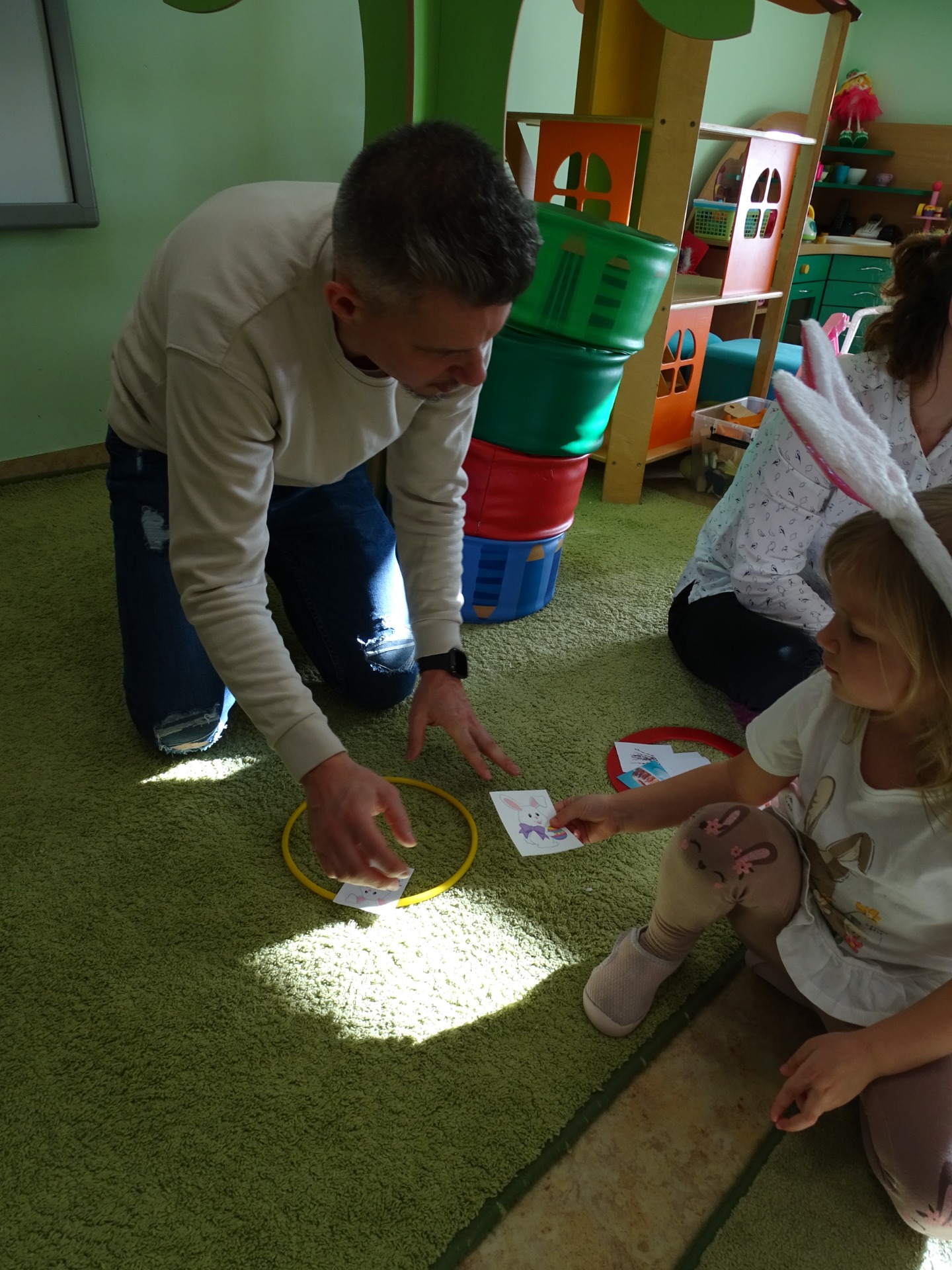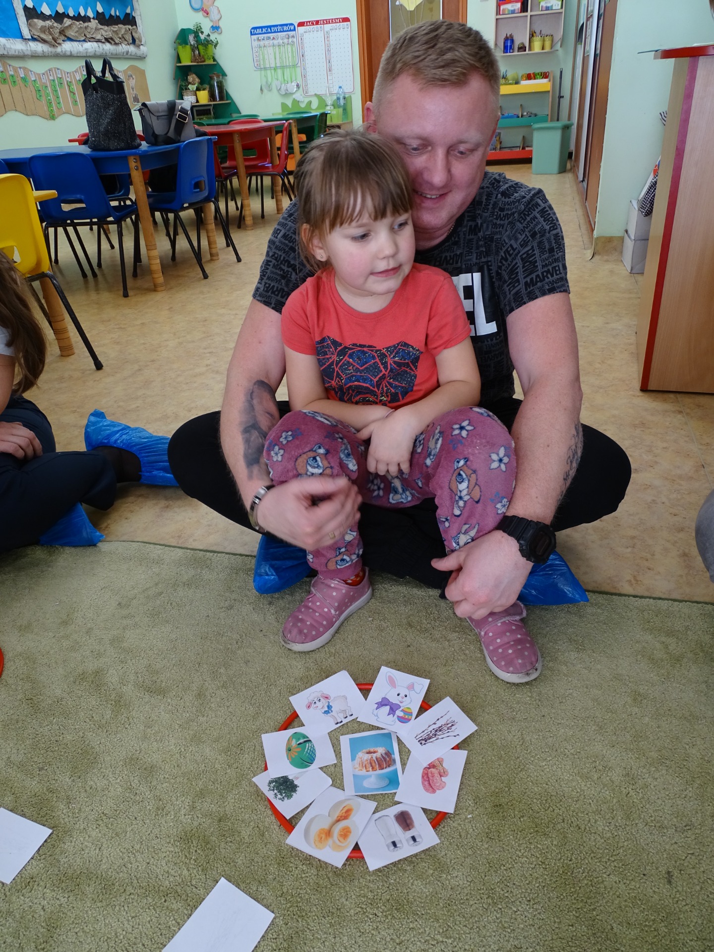 26 marca w grupie Podróżników odbyło się spotkanie świąteczne z rodzicami. Dzieci z niecierpliwością czekały godz.15.00, aby powitać swoich rodziców i wspólnie spędzić z nimi popołudnie w przedszkolu. Na samym początku, dzieci wybierały karty przedstawiające symbole wielkanocne, które wybieramy do koszyczka wielkanocnego. Później każdy z nich musiał skompletować swój koszyczek i odnaleźć 9 różnych elementów. Rodzice czujnie nadzorowali działanie dzieci 😊 Rozmawialiśmy również jakie czynności wykonujemy w okresie przedświątecznym… oczywiście dzieci świetnie wykazały się tą wiedzą 😊 Zbliżające się święta to gorący czas🔥 czas sprzątania oraz gotowania. Tak więc i my imitowaliśmy to w naszej sali, a pomogła nam w tym zabawa „Praczka” oraz zabawa Klanzy „Ciasto”. Dzieci miały okazję również wcielić się w rolę mamy i ubijały pianę z białek😁 Na zakończenie dzieci mogły wykazać się swoimi zdolnościami plastycznymi i wykonać portret swojego rodzica. A pomogła im w tym obręcz owinięta folią stretch. To było bardzo wesołe i miłe popołudnie 😊