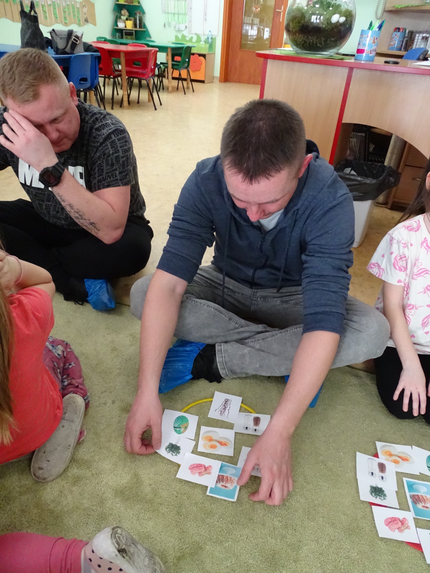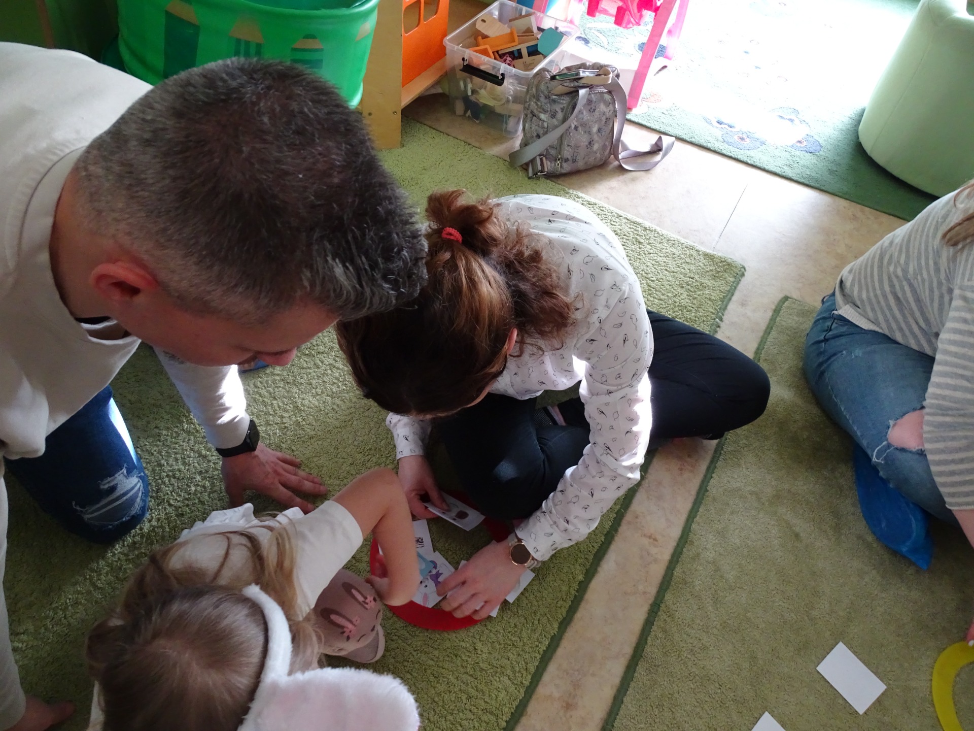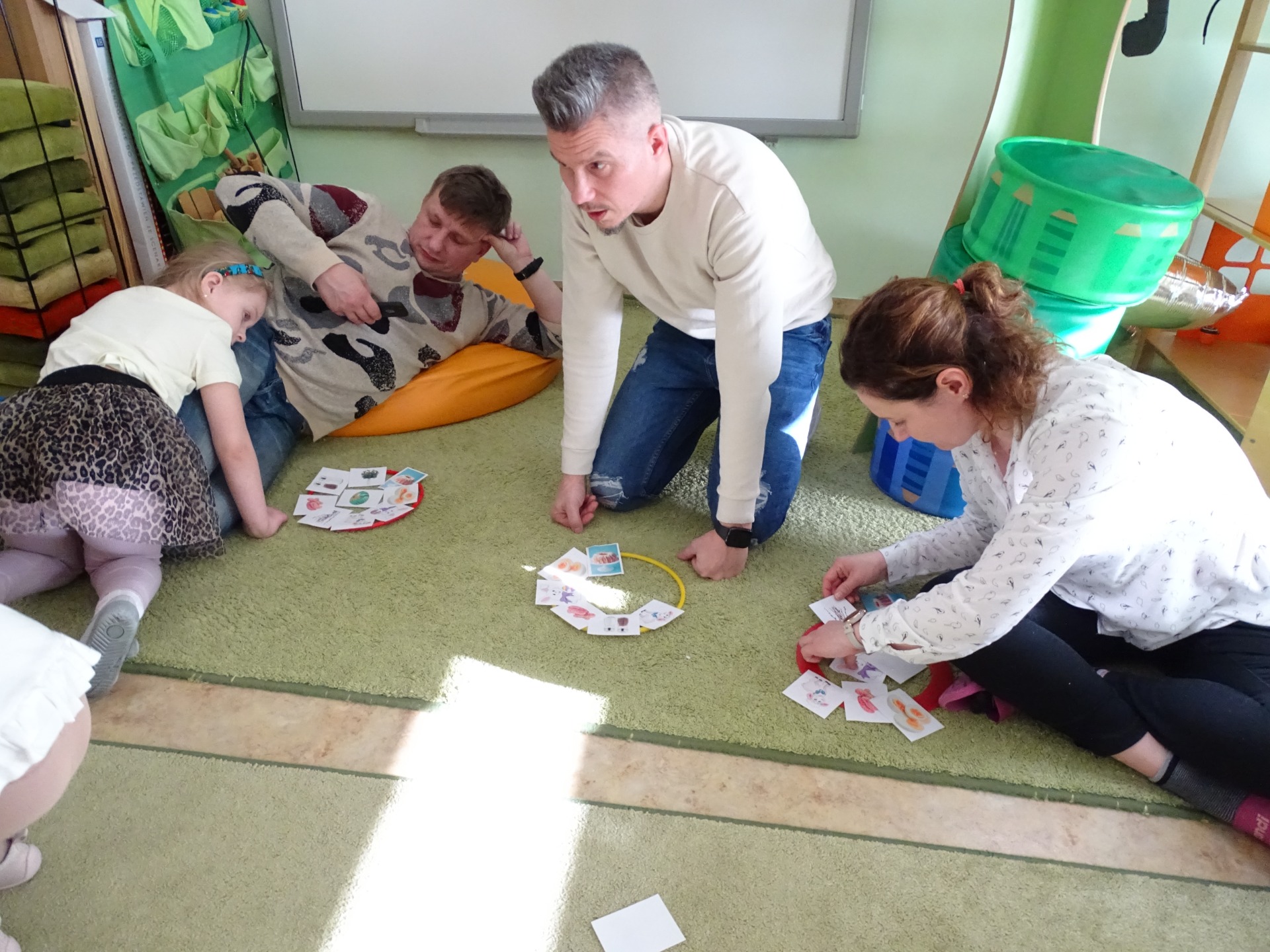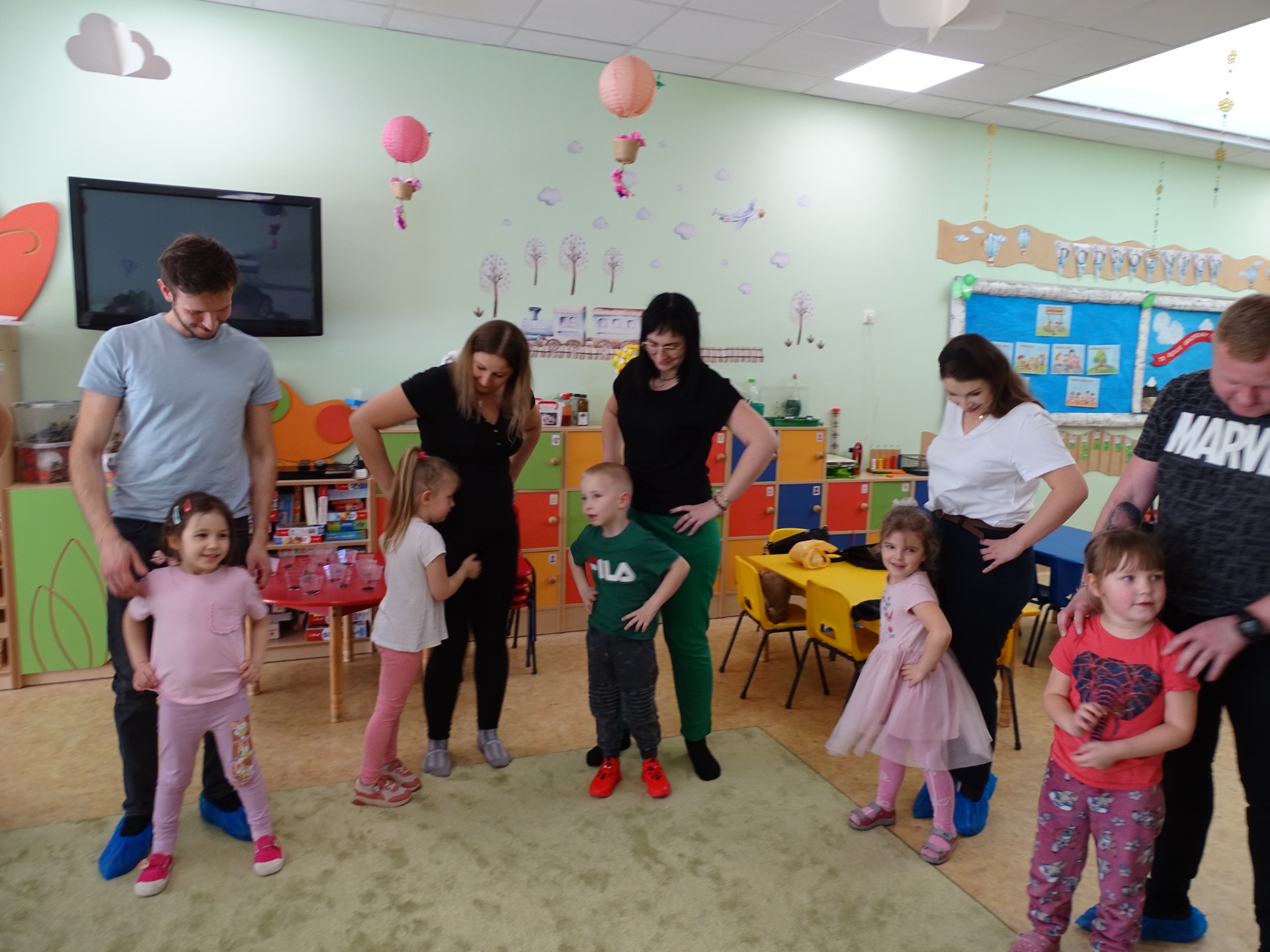 26 marca w grupie Podróżników odbyło się spotkanie świąteczne z rodzicami. Dzieci z niecierpliwością czekały godz.15.00, aby powitać swoich rodziców i wspólnie spędzić z nimi popołudnie w przedszkolu. Na samym początku, dzieci wybierały karty przedstawiające symbole wielkanocne, które wybieramy do koszyczka wielkanocnego. Później każdy z nich musiał skompletować swój koszyczek i odnaleźć 9 różnych elementów. Rodzice czujnie nadzorowali działanie dzieci 😊 Rozmawialiśmy również jakie czynności wykonujemy w okresie przedświątecznym… oczywiście dzieci świetnie wykazały się tą wiedzą 😊 Zbliżające się święta to gorący czas🔥 czas sprzątania oraz gotowania. Tak więc i my imitowaliśmy to w naszej sali, a pomogła nam w tym zabawa „Praczka” oraz zabawa Klanzy „Ciasto”. Dzieci miały okazję również wcielić się w rolę mamy i ubijały pianę z białek😁 Na zakończenie dzieci mogły wykazać się swoimi zdolnościami plastycznymi i wykonać portret swojego rodzica. A pomogła im w tym obręcz owinięta folią stretch. To było bardzo wesołe i miłe popołudnie 😊