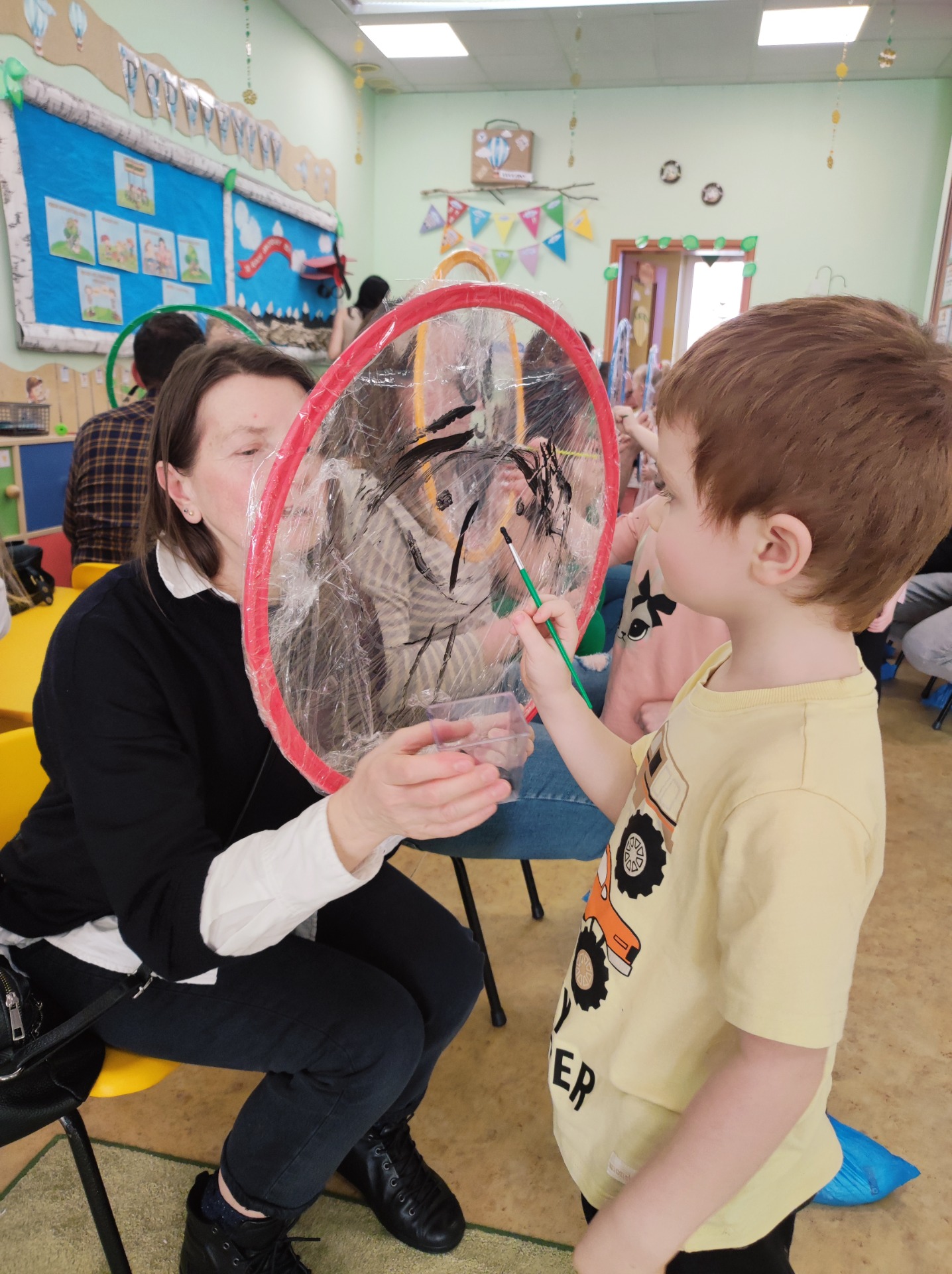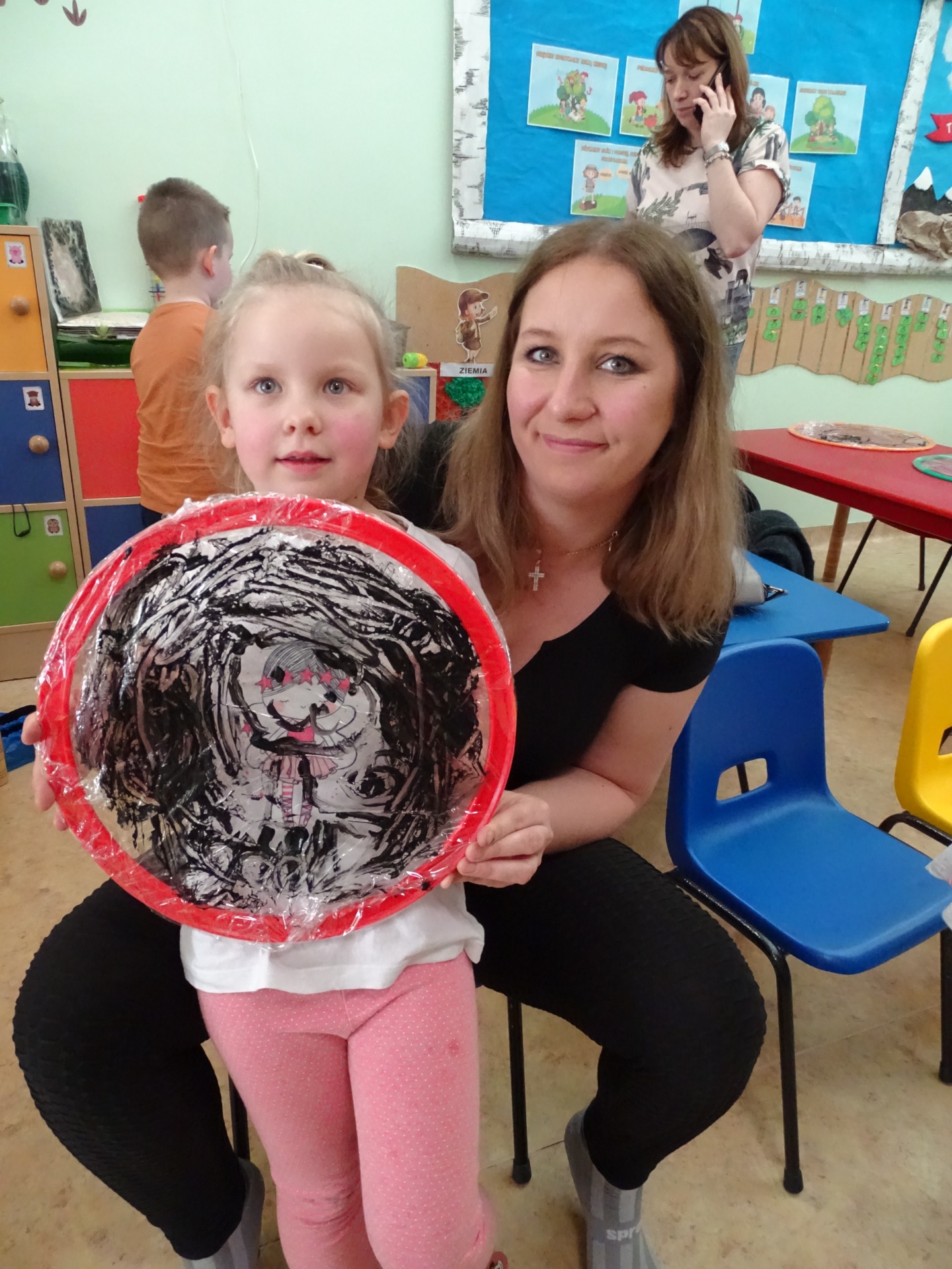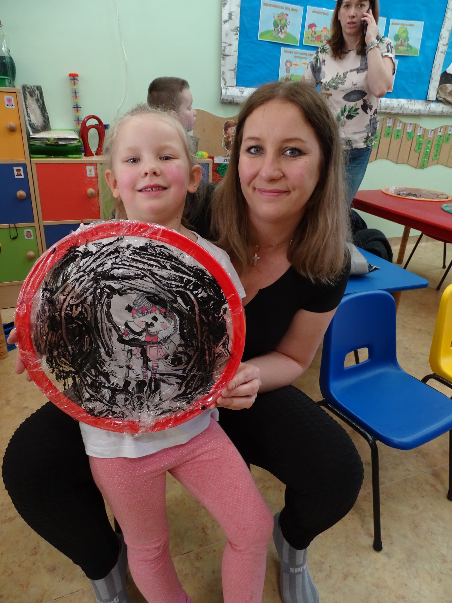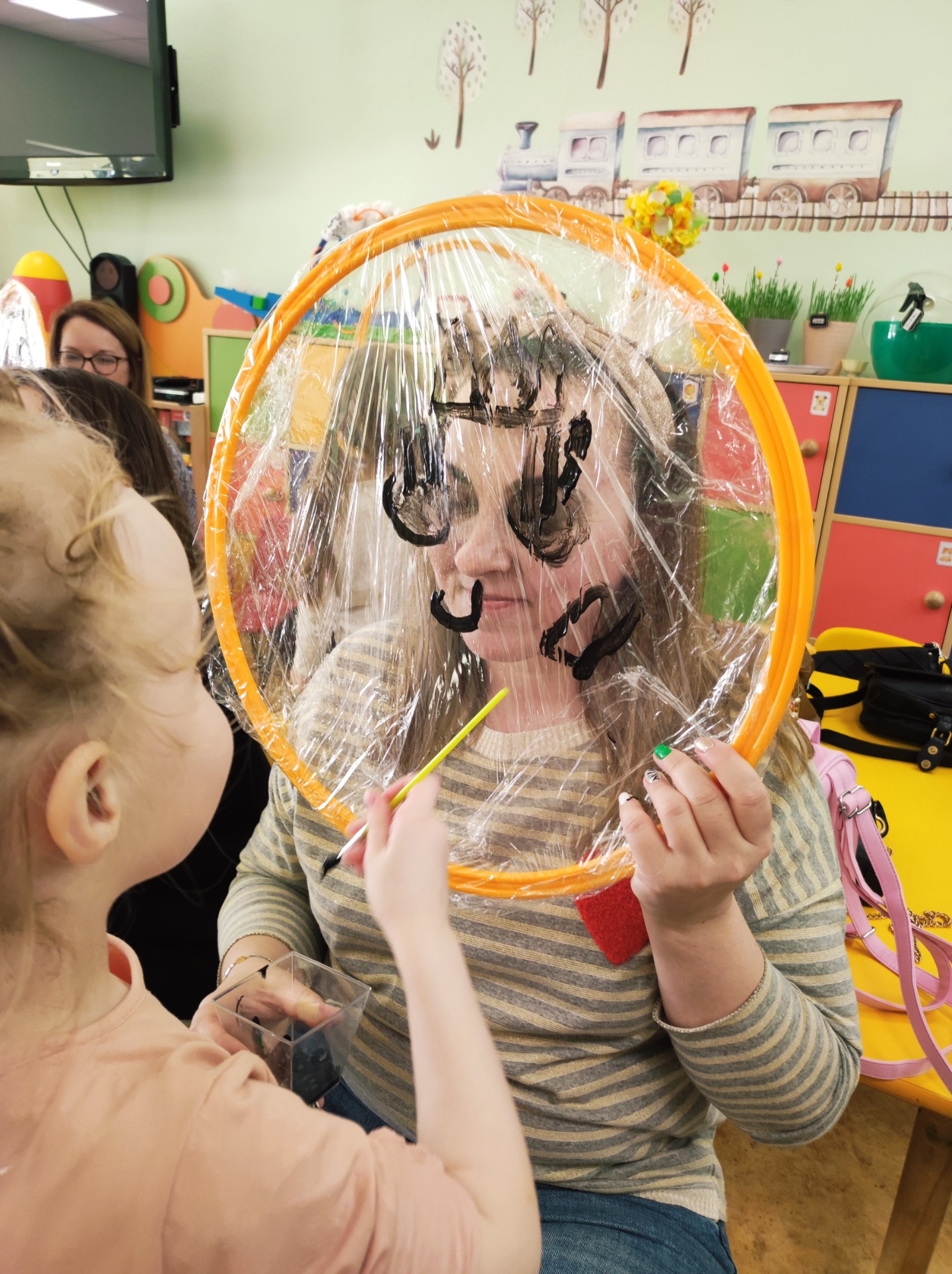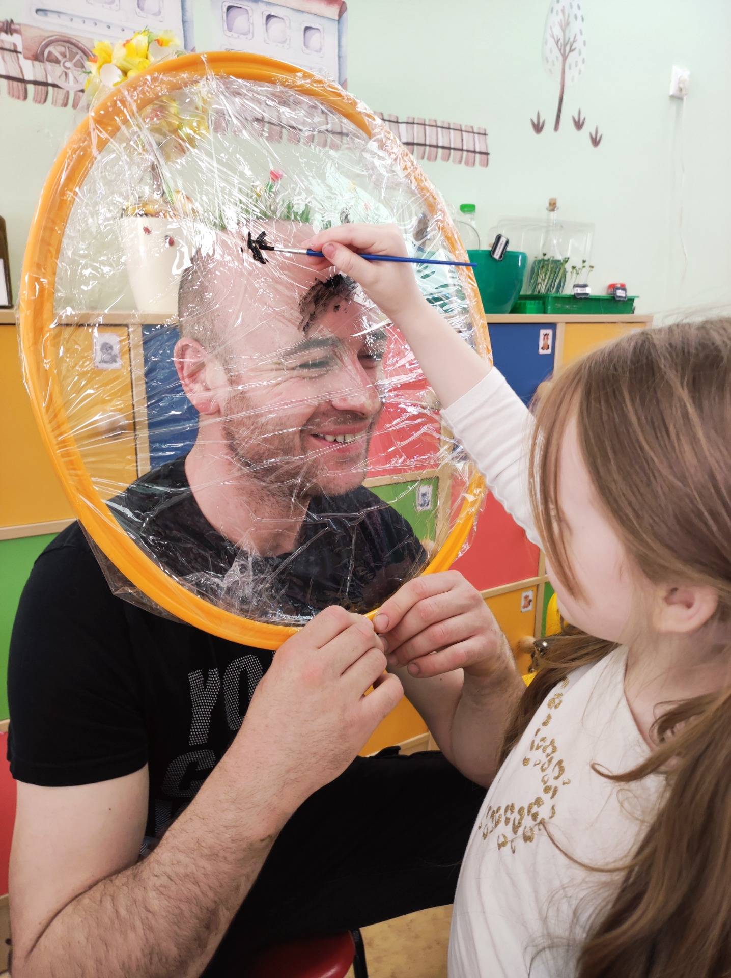 26 marca w grupie Podróżników odbyło się spotkanie świąteczne z rodzicami. Dzieci z niecierpliwością czekały godz.15.00, aby powitać swoich rodziców i wspólnie spędzić z nimi popołudnie w przedszkolu. Na samym początku, dzieci wybierały karty przedstawiające symbole wielkanocne, które wybieramy do koszyczka wielkanocnego. Później każdy z nich musiał skompletować swój koszyczek i odnaleźć 9 różnych elementów. Rodzice czujnie nadzorowali działanie dzieci 😊 Rozmawialiśmy również jakie czynności wykonujemy w okresie przedświątecznym… oczywiście dzieci świetnie wykazały się tą wiedzą 😊 Zbliżające się święta to gorący czas🔥 czas sprzątania oraz gotowania. Tak więc i my imitowaliśmy to w naszej sali, a pomogła nam w tym zabawa „Praczka” oraz zabawa Klanzy „Ciasto”. Dzieci miały okazję również wcielić się w rolę mamy i ubijały pianę z białek😁 Na zakończenie dzieci mogły wykazać się swoimi zdolnościami plastycznymi i wykonać portret swojego rodzica. A pomogła im w tym obręcz owinięta folią stretch. To było bardzo wesołe i miłe popołudnie 😊