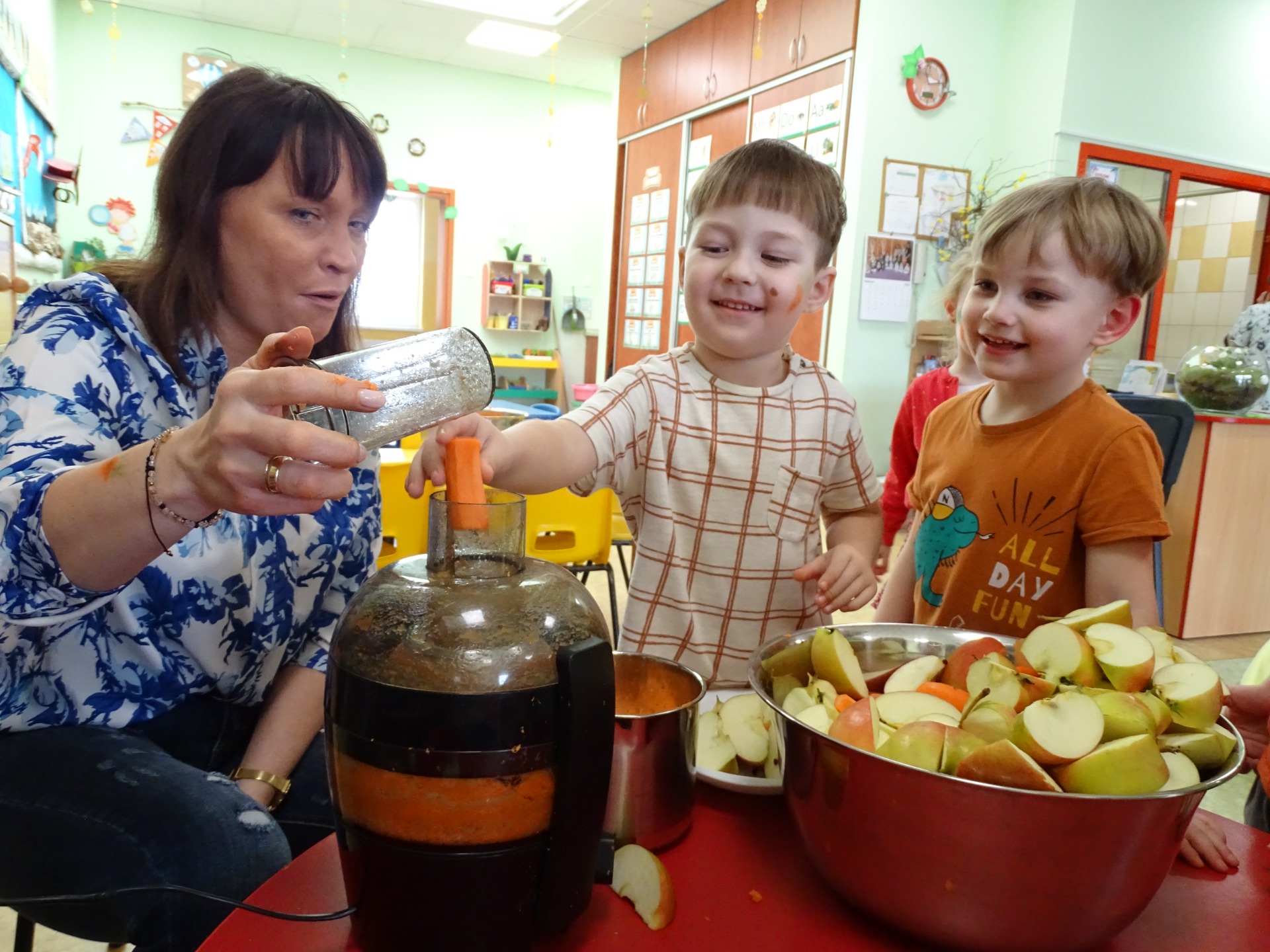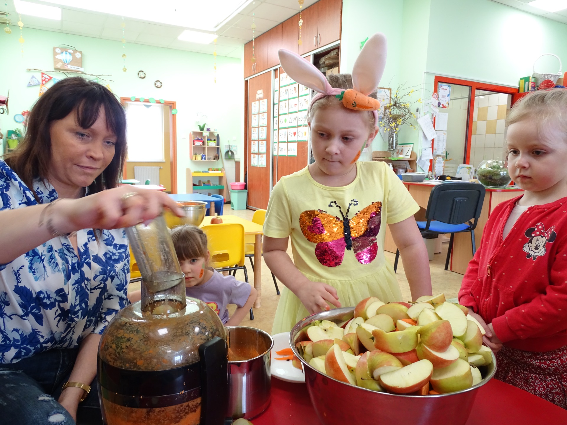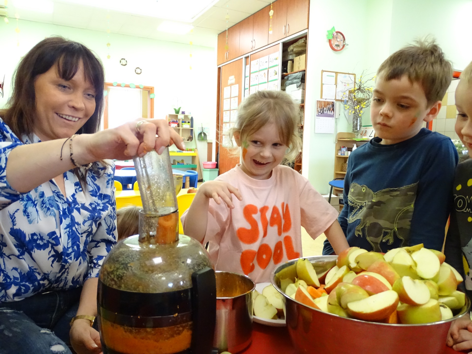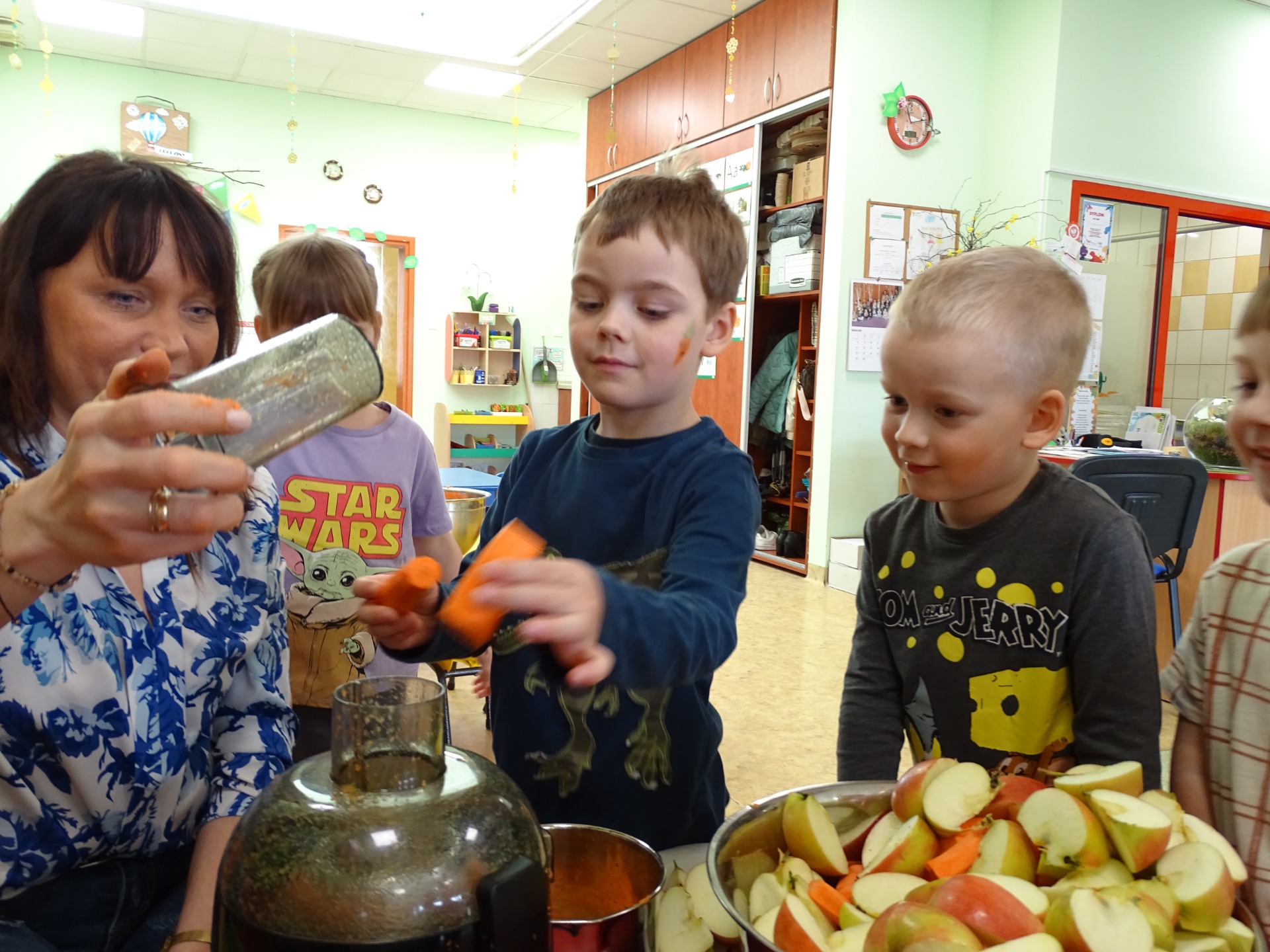 4 kwietnia bohaterk膮 dnia w grupie Podr贸偶nik贸w by艂a MARCHEWKA. Celem tego dnia by艂o przedstawienie i promowanie spo偶ywania warzyw i owoc贸w jako dar贸w natury na przyk艂adzie marchewki, rozwijanie umiej臋tno艣ci wsp贸艂dzia艂ania w zespole oraz zapoznanie dzieci ze sprz臋tem gospodarstwa domowego - sokowir贸wk膮. Dzieci zapozna艂y si臋 z budow膮 marchewki, wymienia艂y potrawy jakie mo偶na przyrz膮dzi膰 z marchwi oraz dowiedzia艂y si臋 kilku ciekawostek na jej temat. Tego dnia nie zabrak艂o r贸wnie偶 aktywno艣ci fizycznej i wcielenia si臋 w rol臋 ogrodnika, fotobudki i przyrz膮dzenia pyyysznego soku marchewkowego 馃槉 To by艂a prawdziwa bomba witaminowa!!