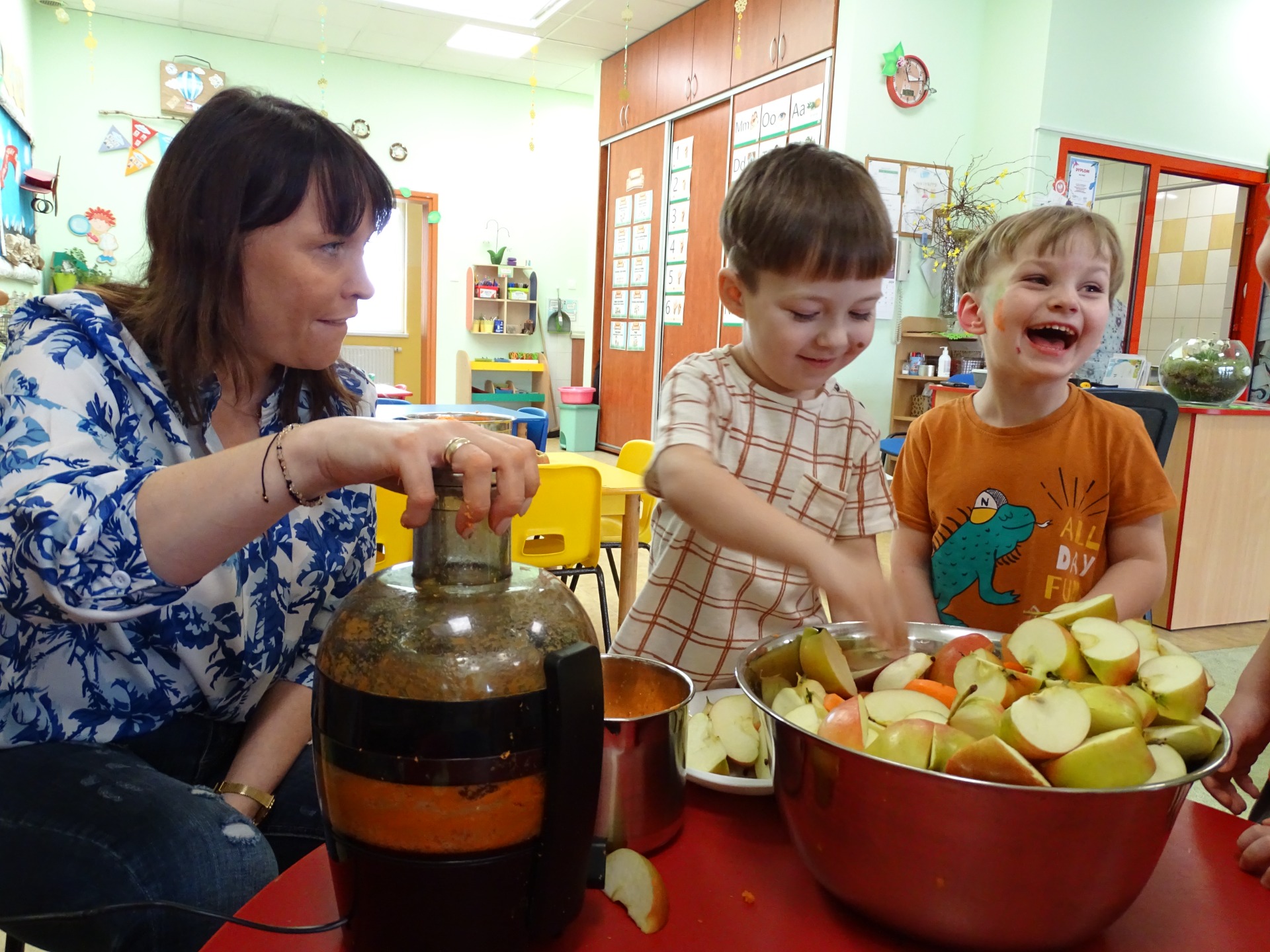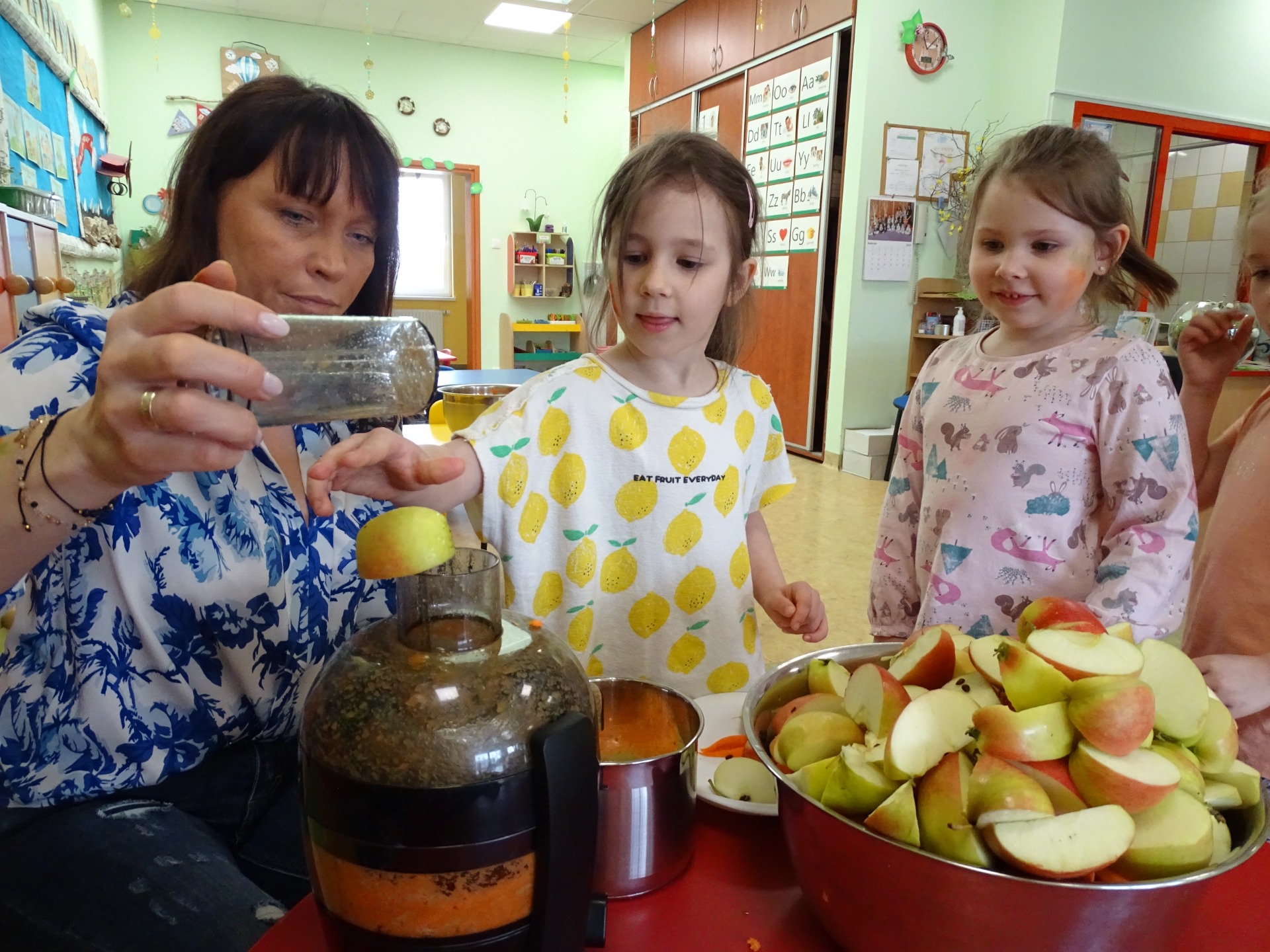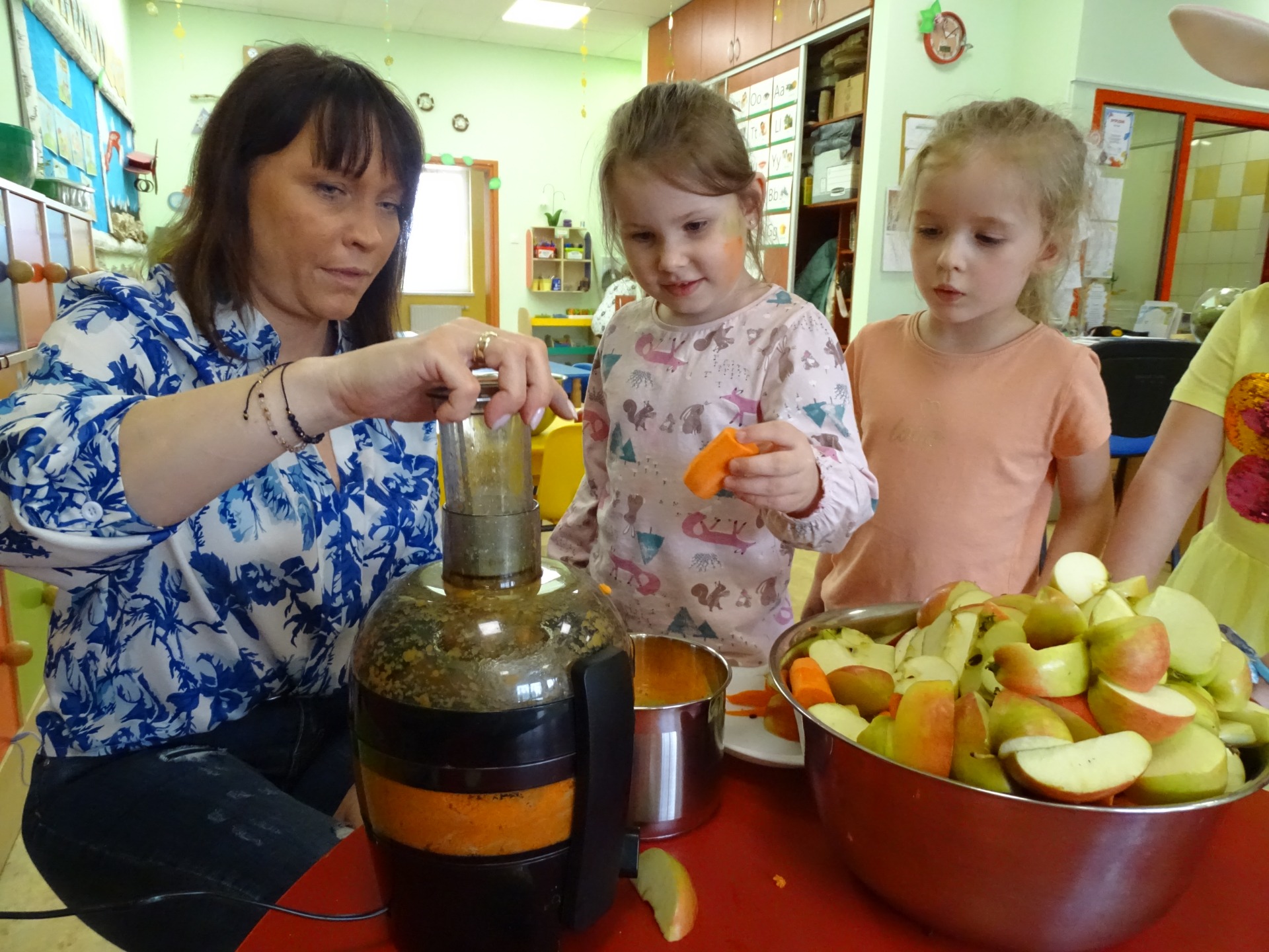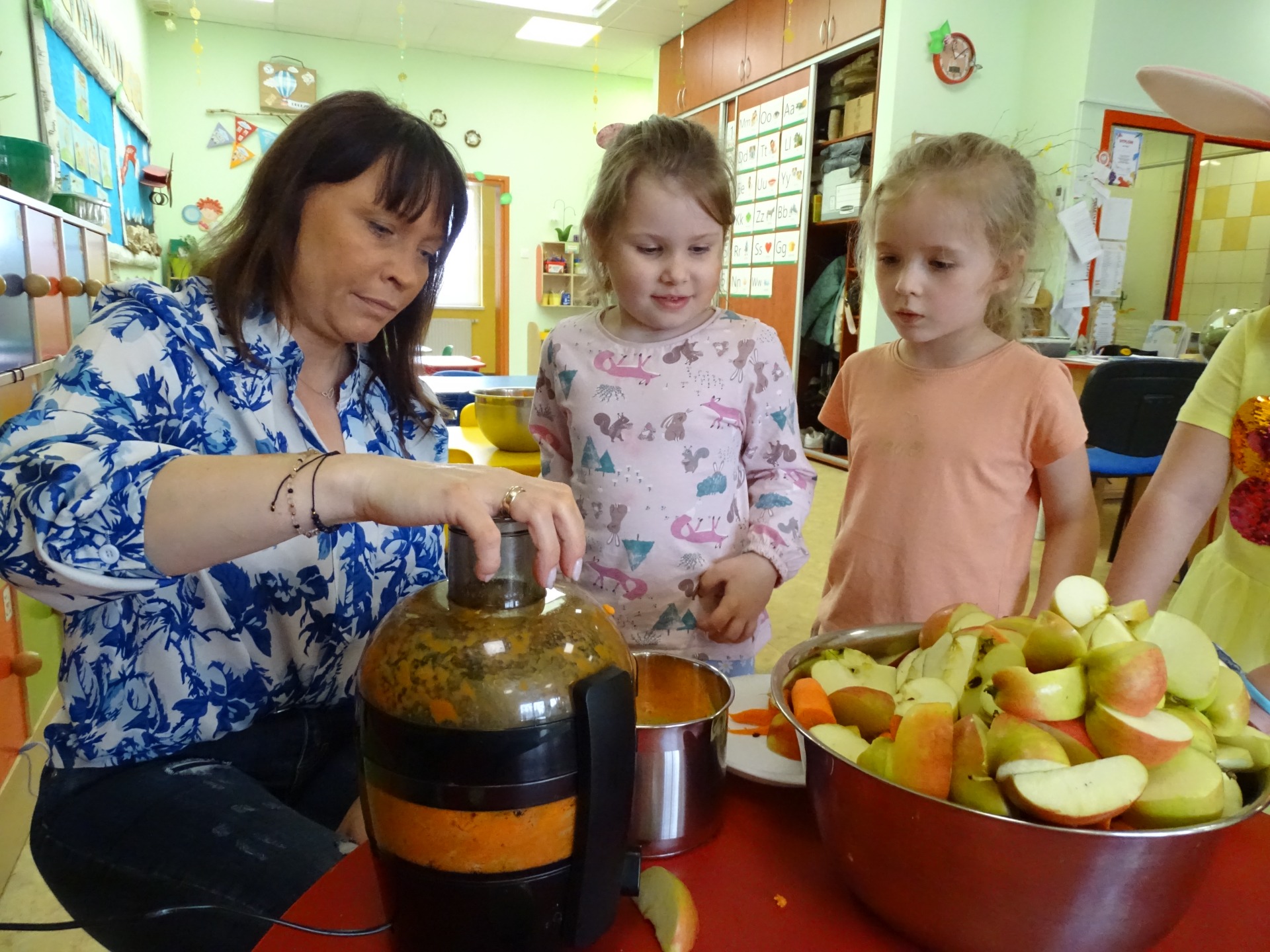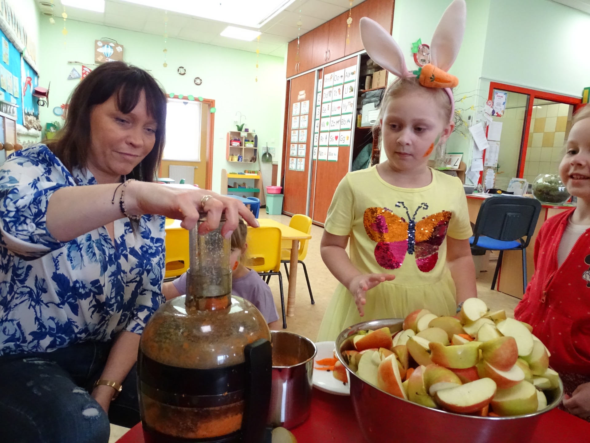 4 kwietnia bohaterk膮 dnia w grupie Podr贸偶nik贸w by艂a MARCHEWKA. Celem tego dnia by艂o przedstawienie i promowanie spo偶ywania warzyw i owoc贸w jako dar贸w natury na przyk艂adzie marchewki, rozwijanie umiej臋tno艣ci wsp贸艂dzia艂ania w zespole oraz zapoznanie dzieci ze sprz臋tem gospodarstwa domowego - sokowir贸wk膮. Dzieci zapozna艂y si臋 z budow膮 marchewki, wymienia艂y potrawy jakie mo偶na przyrz膮dzi膰 z marchwi oraz dowiedzia艂y si臋 kilku ciekawostek na jej temat. Tego dnia nie zabrak艂o r贸wnie偶 aktywno艣ci fizycznej i wcielenia si臋 w rol臋 ogrodnika, fotobudki i przyrz膮dzenia pyyysznego soku marchewkowego 馃槉 To by艂a prawdziwa bomba witaminowa!!