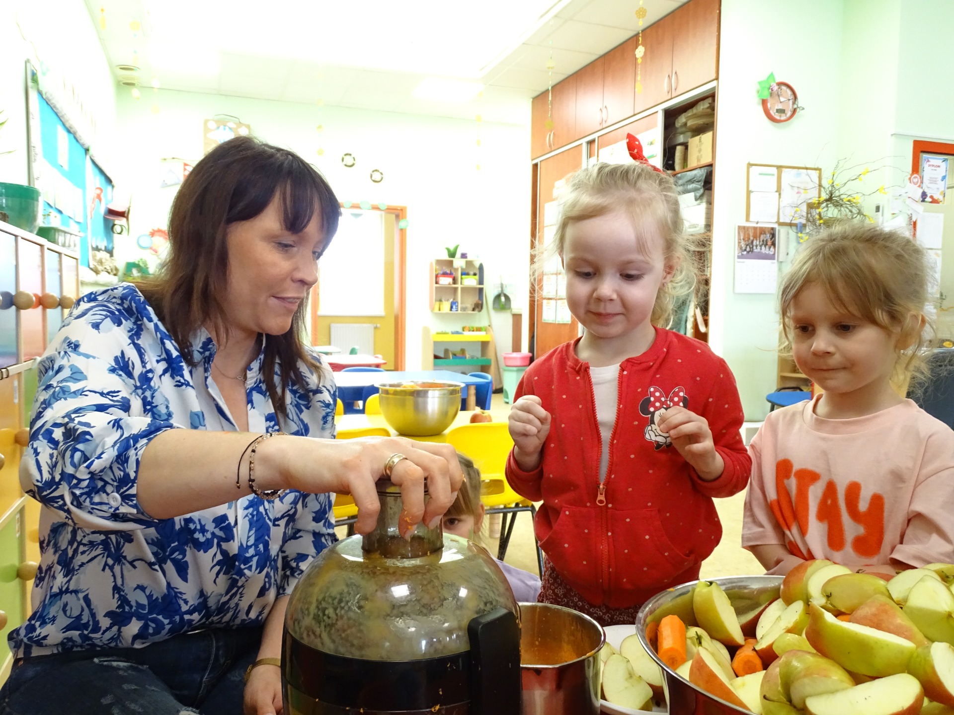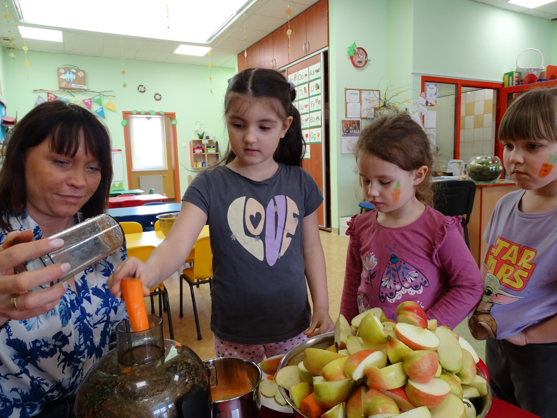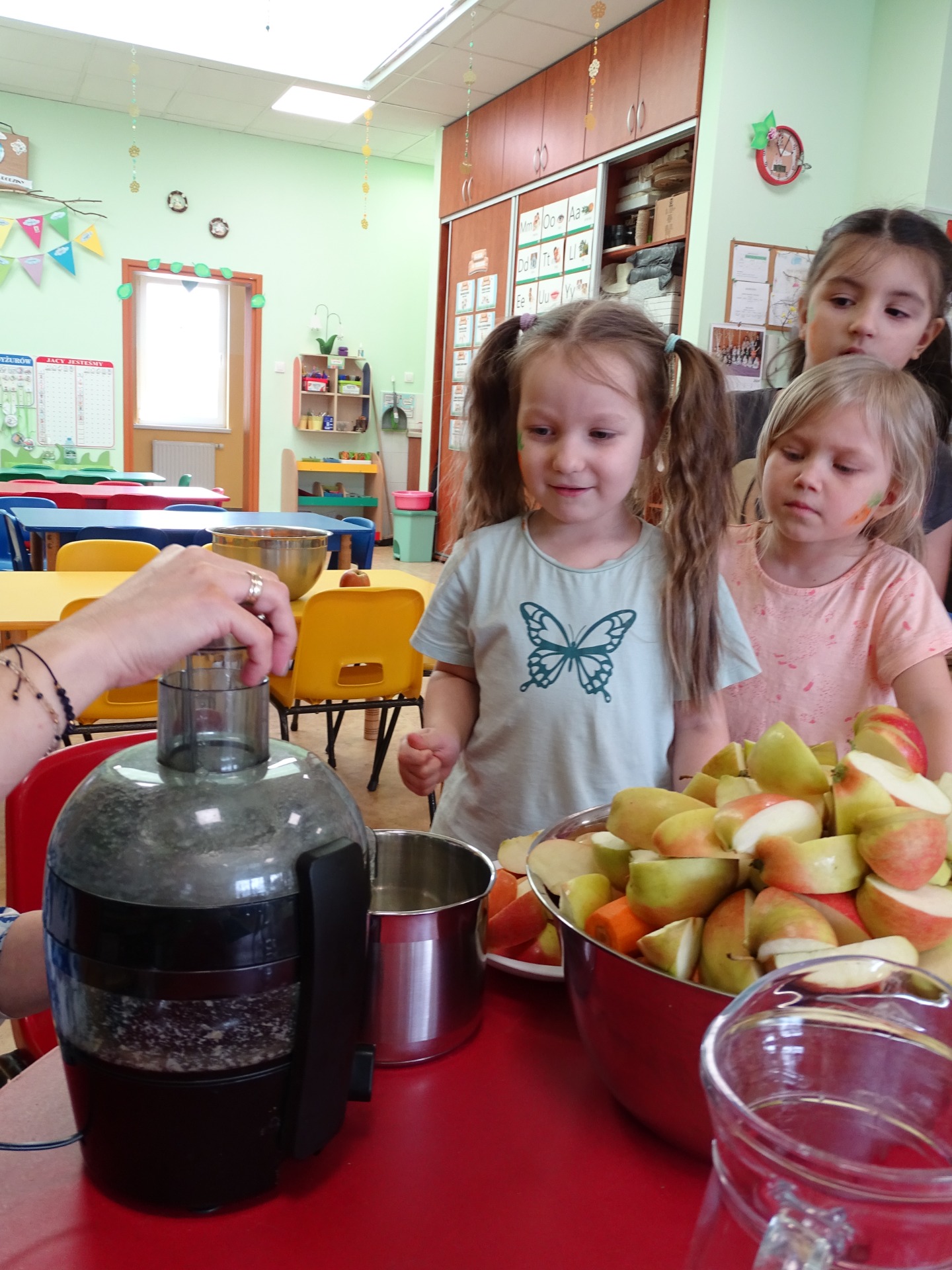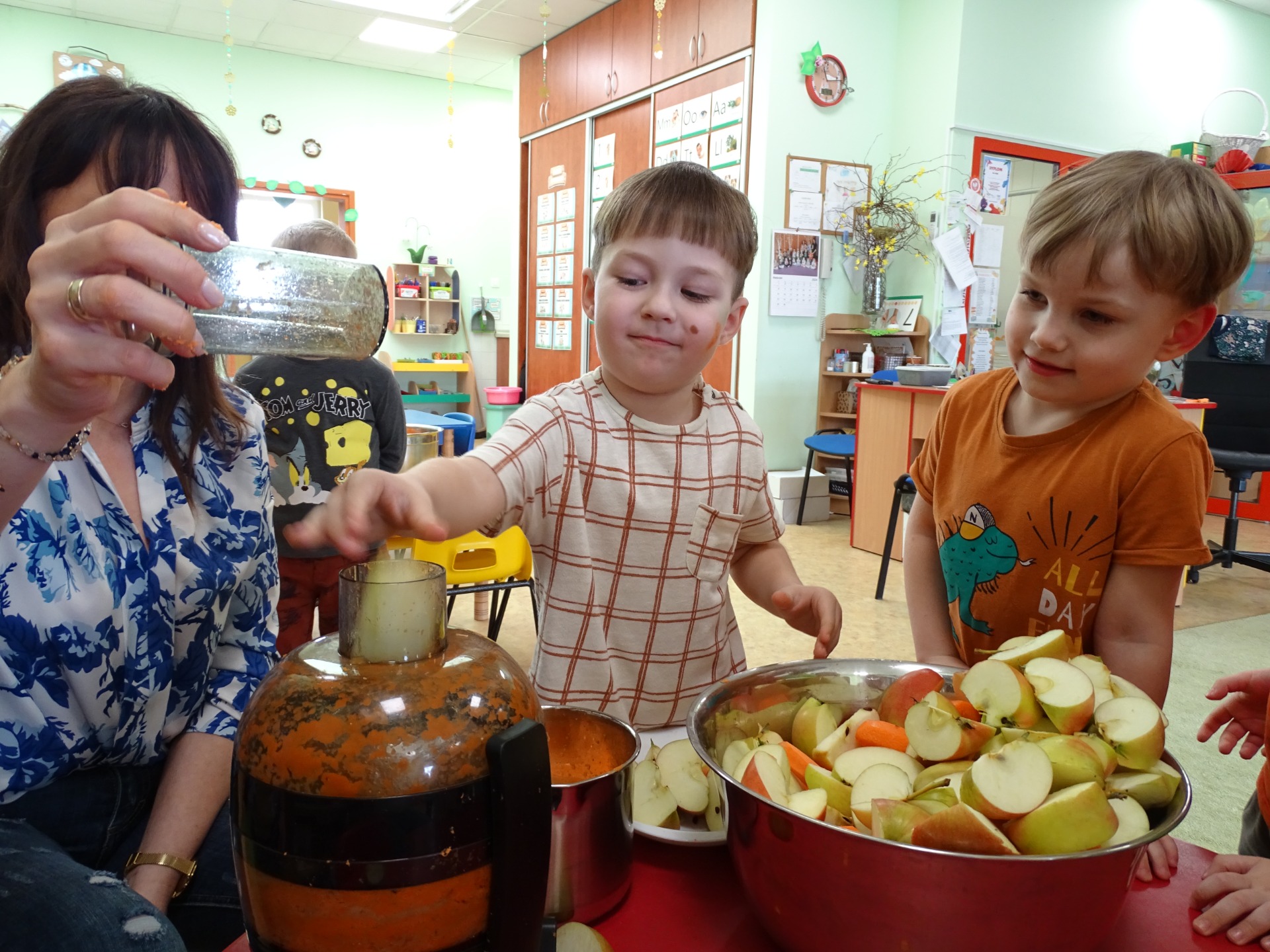 4 kwietnia bohaterk膮 dnia w grupie Podr贸偶nik贸w by艂a MARCHEWKA. Celem tego dnia by艂o przedstawienie i promowanie spo偶ywania warzyw i owoc贸w jako dar贸w natury na przyk艂adzie marchewki, rozwijanie umiej臋tno艣ci wsp贸艂dzia艂ania w zespole oraz zapoznanie dzieci ze sprz臋tem gospodarstwa domowego - sokowir贸wk膮. Dzieci zapozna艂y si臋 z budow膮 marchewki, wymienia艂y potrawy jakie mo偶na przyrz膮dzi膰 z marchwi oraz dowiedzia艂y si臋 kilku ciekawostek na jej temat. Tego dnia nie zabrak艂o r贸wnie偶 aktywno艣ci fizycznej i wcielenia si臋 w rol臋 ogrodnika, fotobudki i przyrz膮dzenia pyyysznego soku marchewkowego 馃槉 To by艂a prawdziwa bomba witaminowa!!
