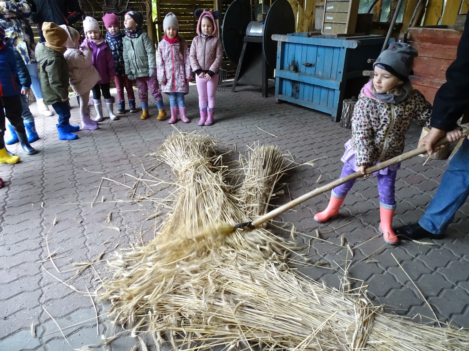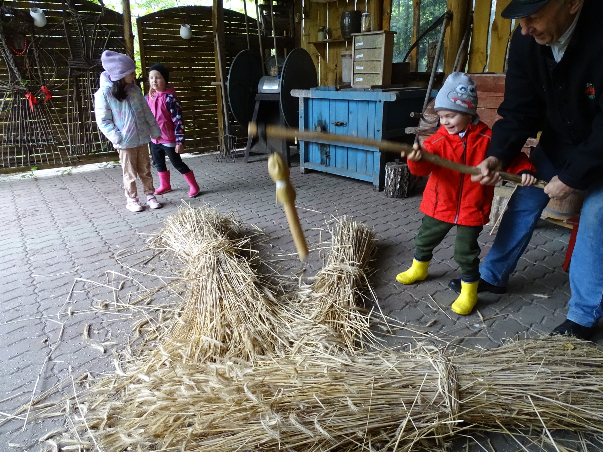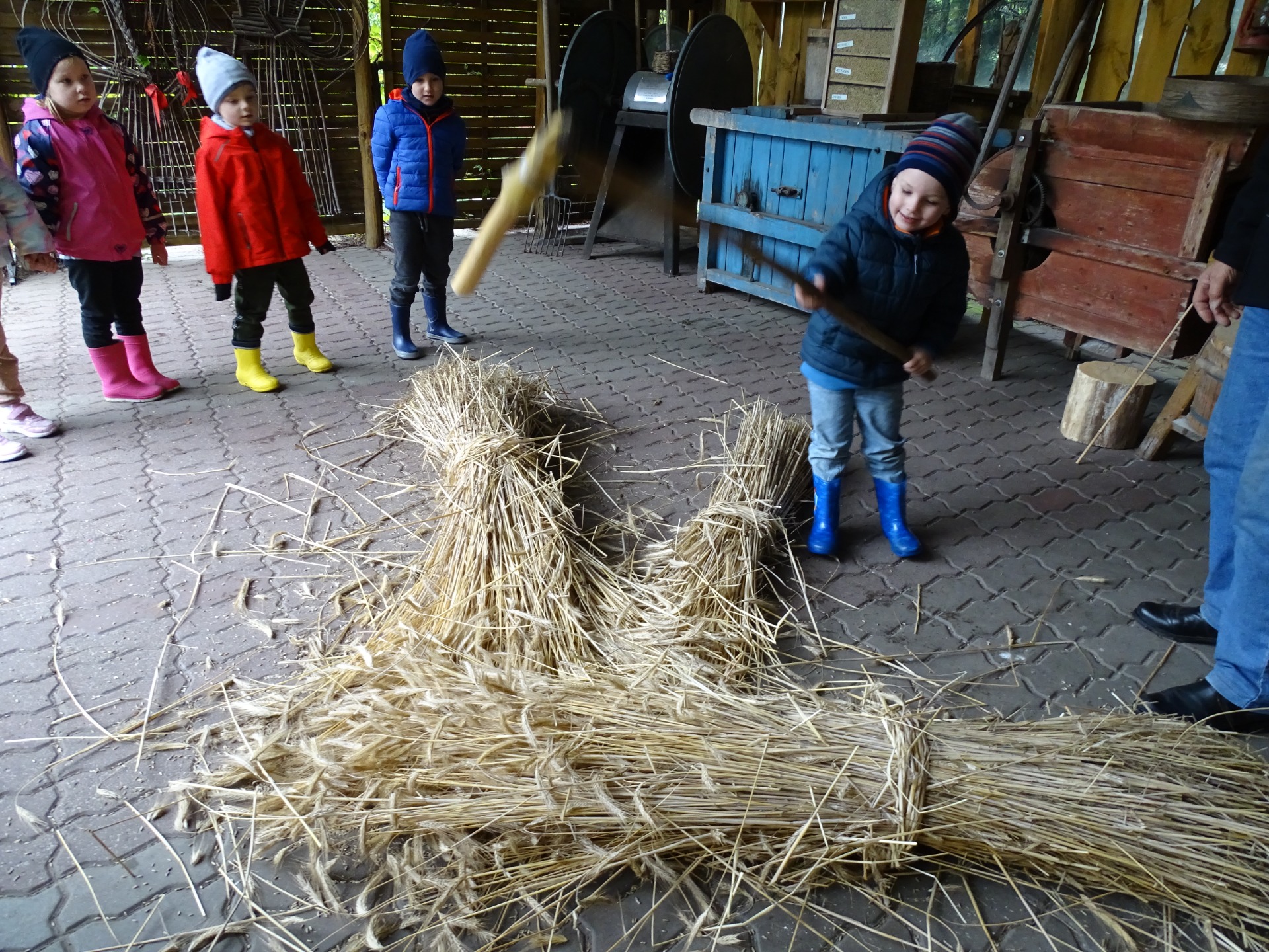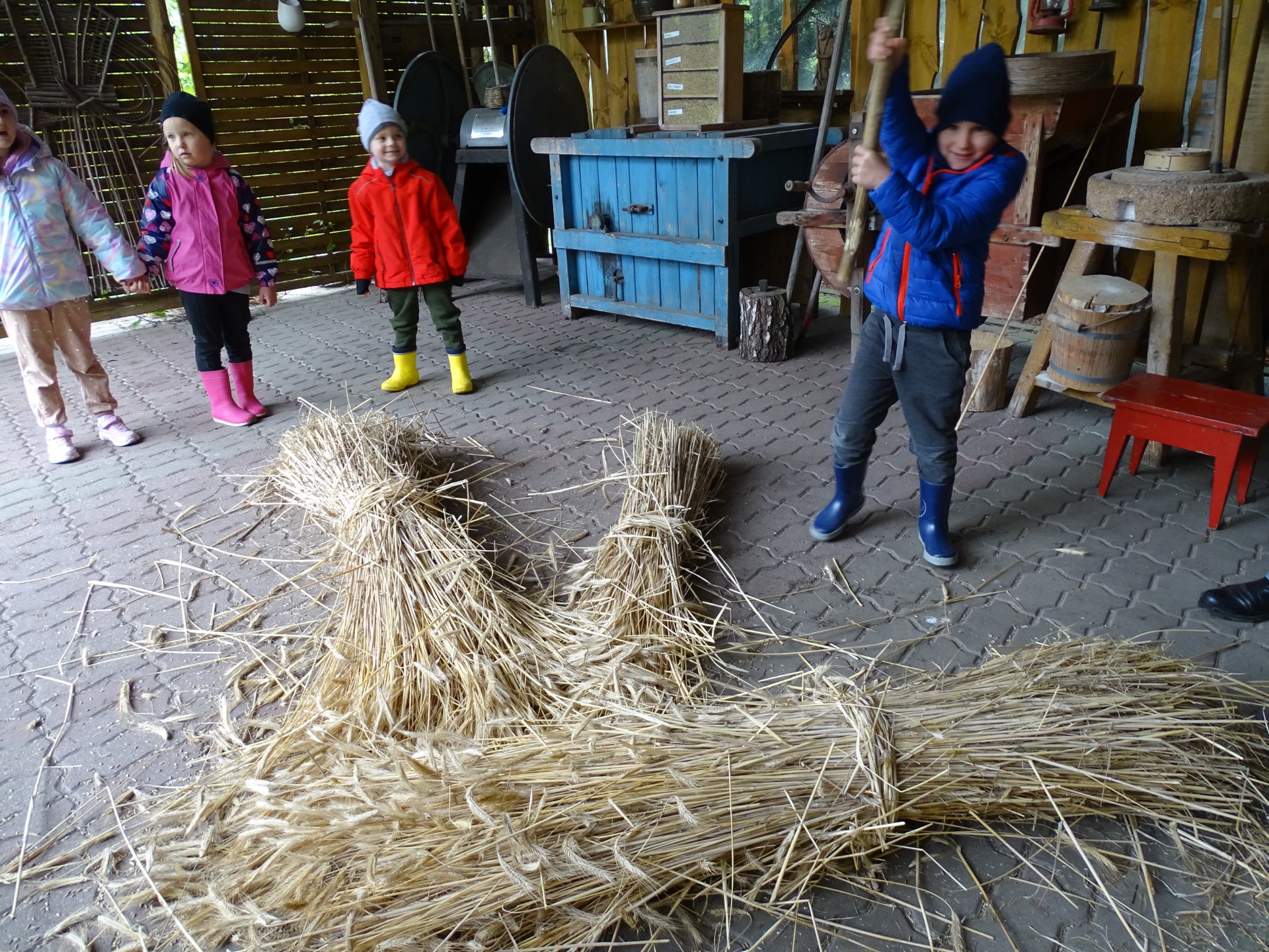 17 kwietnia grupa Podróżników wybrała na wycieczkę do Konarzewa. Dzieci uczestniczyly tam w warsztatach pod nazwą „Od ziarenka do bochenka”. Pomimo pochmurnej pogody, dobre humory i radość nikogo nie opuszczały. Zwłaszcza kiedy na pole trzeba było wybrać się na wozie. Na miejscu, poznały pracę rolników – poczynając od bronowania pola, zasiania zboża, przez jego ścinanie i snopkowanie, po młócenie, mielenie na mąkę i ostatecznie pieczenie chleba. Po powrocie z pola, Podróżnicy wyrobili własne ciasto i upiekli pyszny chlebek.