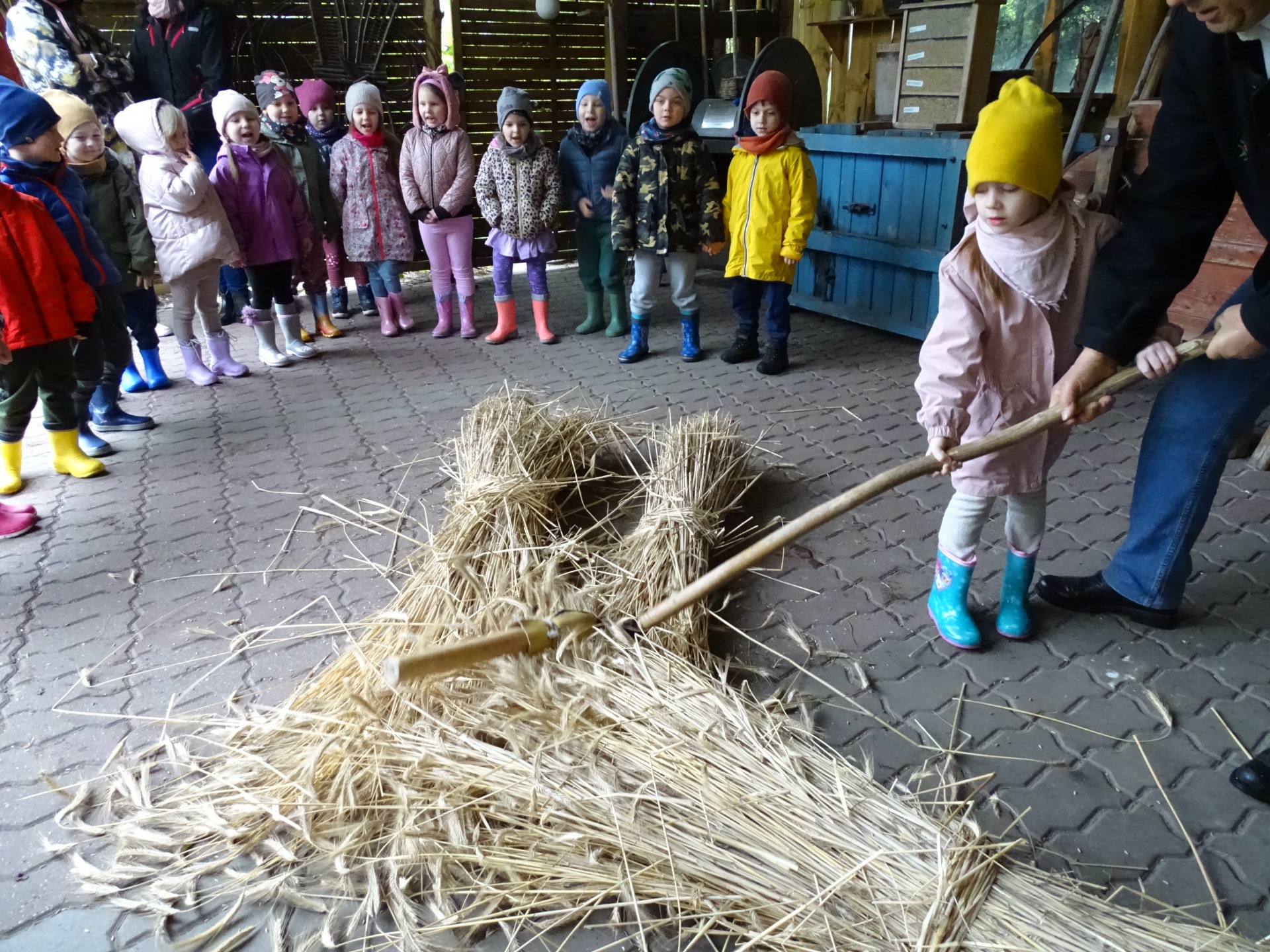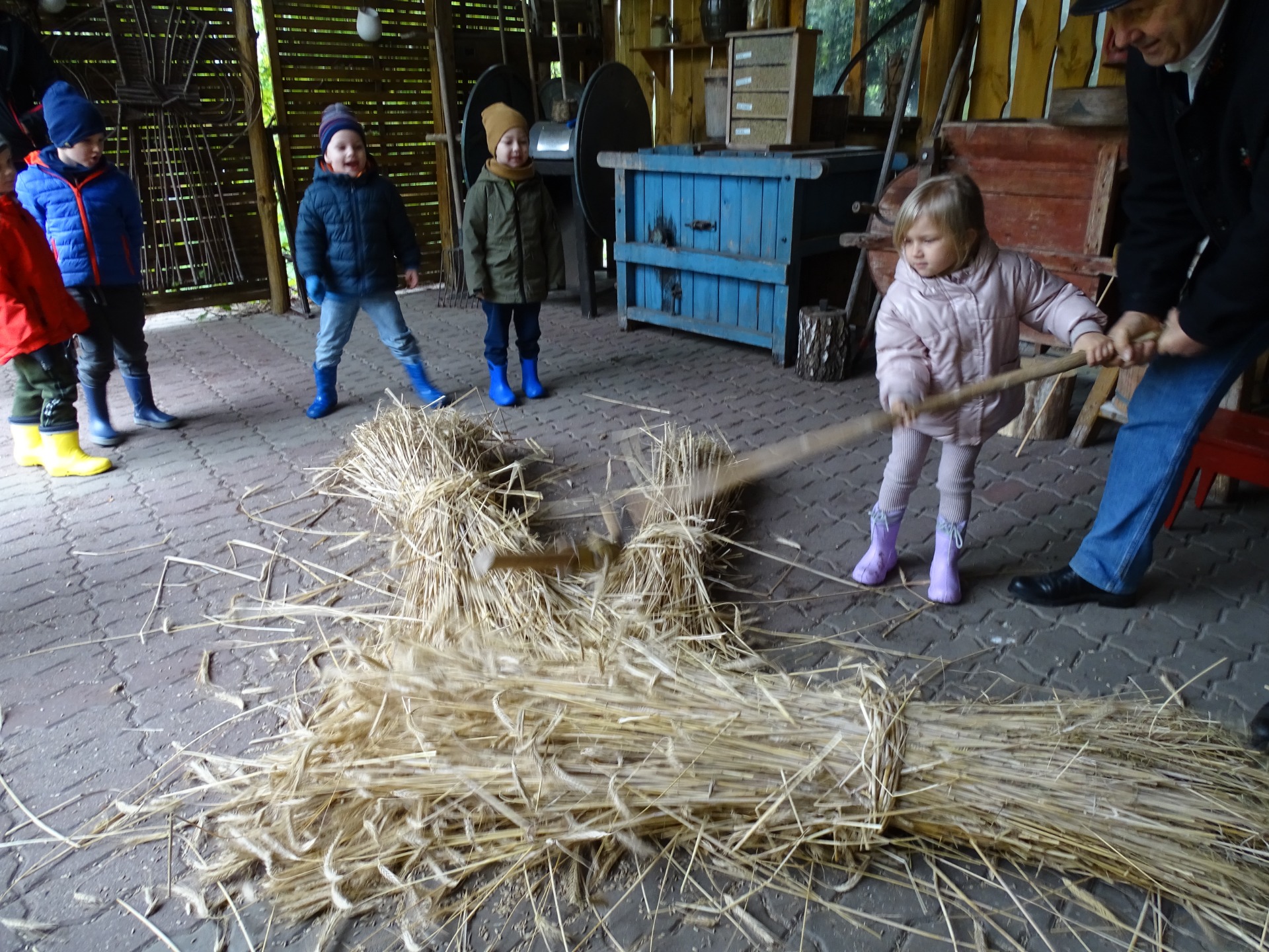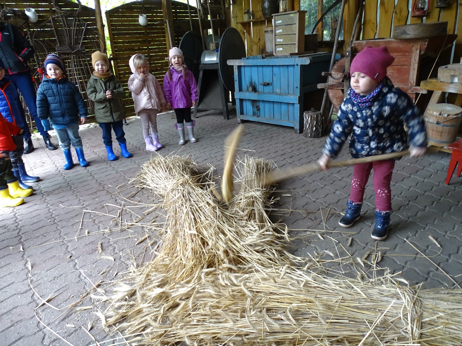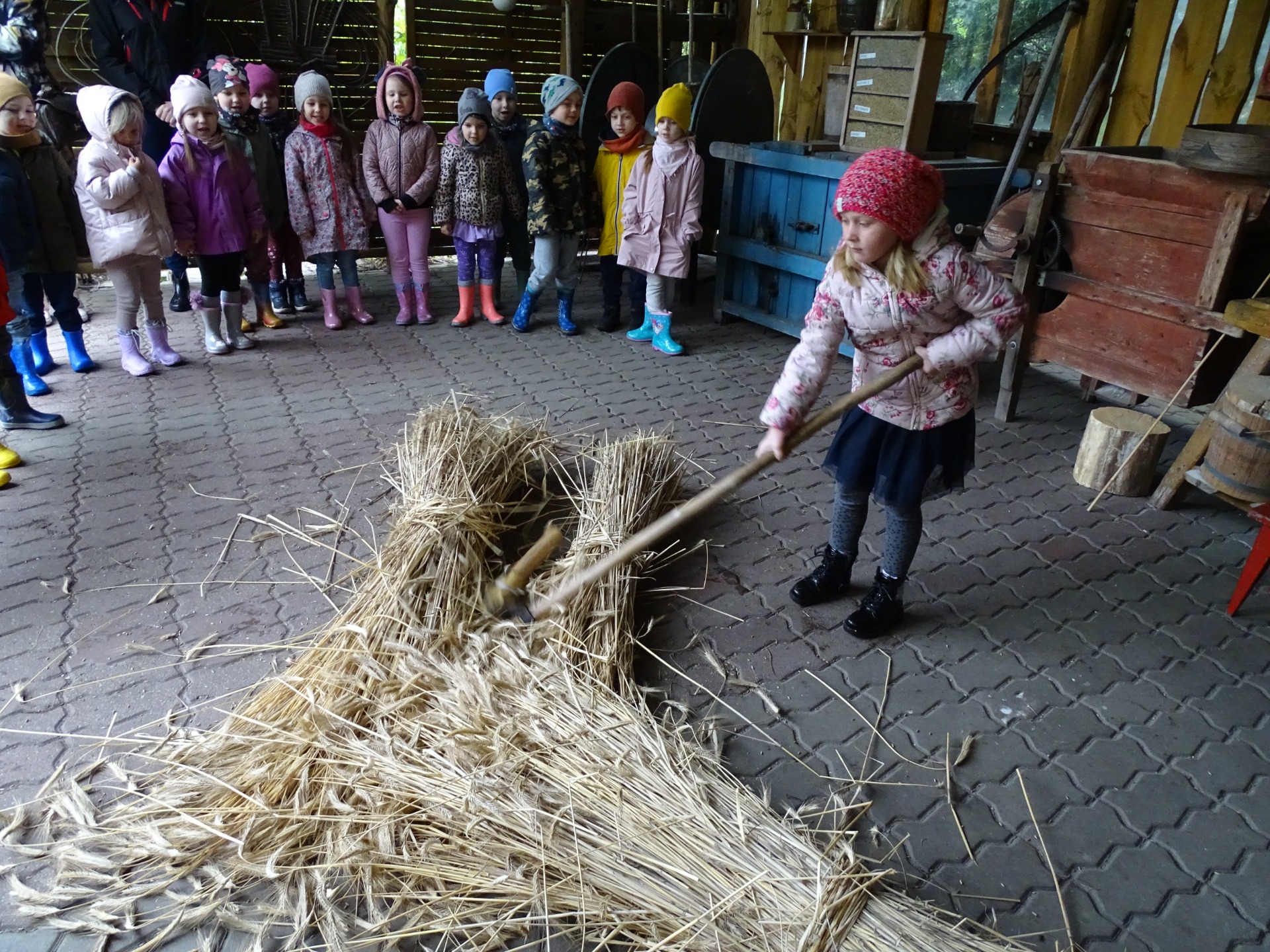 17 kwietnia grupa Podróżników wybrała na wycieczkę do Konarzewa. Dzieci uczestniczyly tam w warsztatach pod nazwą „Od ziarenka do bochenka”. Pomimo pochmurnej pogody, dobre humory i radość nikogo nie opuszczały. Zwłaszcza kiedy na pole trzeba było wybrać się na wozie. Na miejscu, poznały pracę rolników – poczynając od bronowania pola, zasiania zboża, przez jego ścinanie i snopkowanie, po młócenie, mielenie na mąkę i ostatecznie pieczenie chleba. Po powrocie z pola, Podróżnicy wyrobili własne ciasto i upiekli pyszny chlebek.
