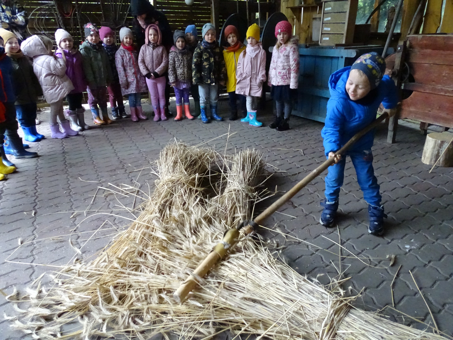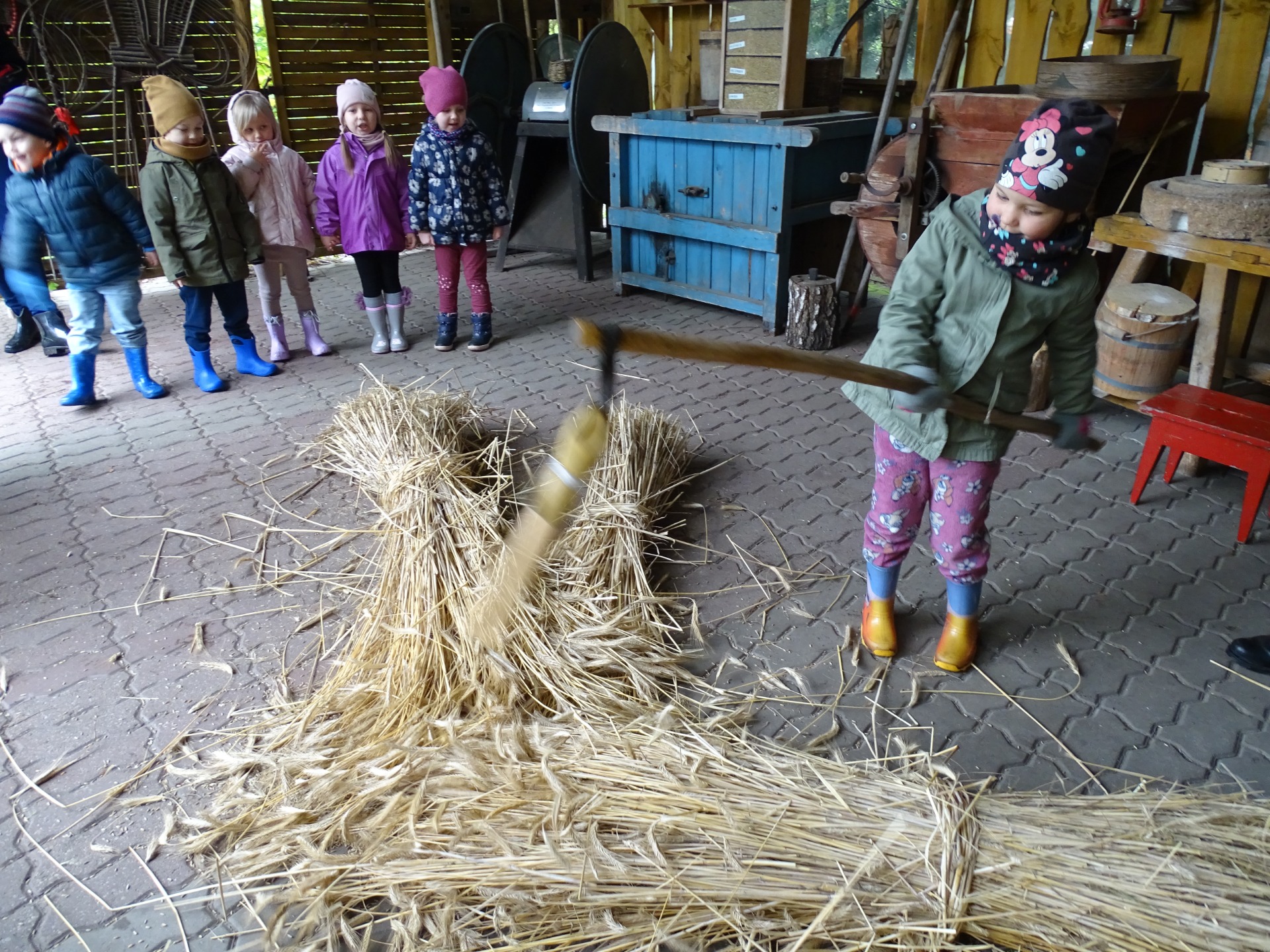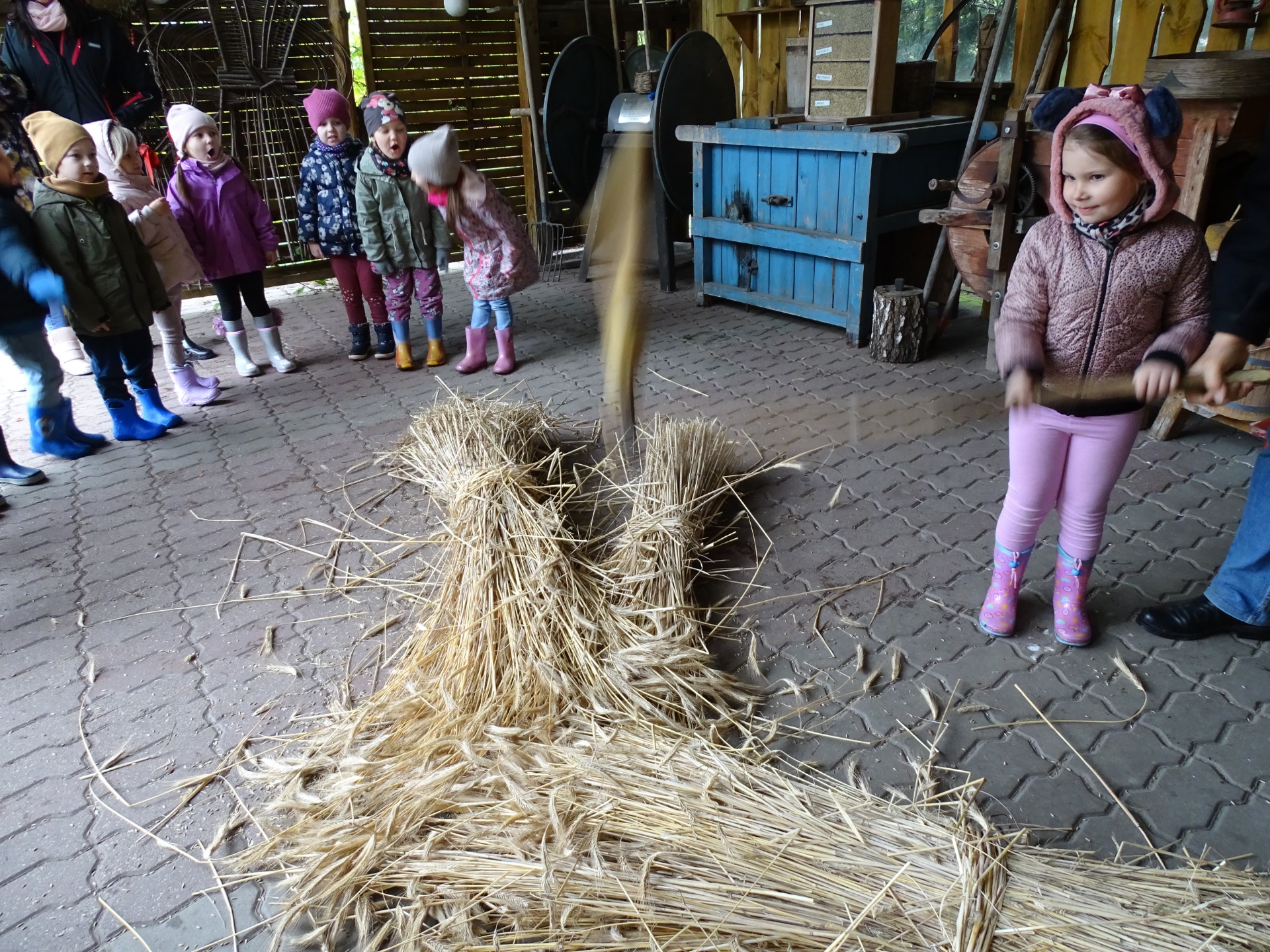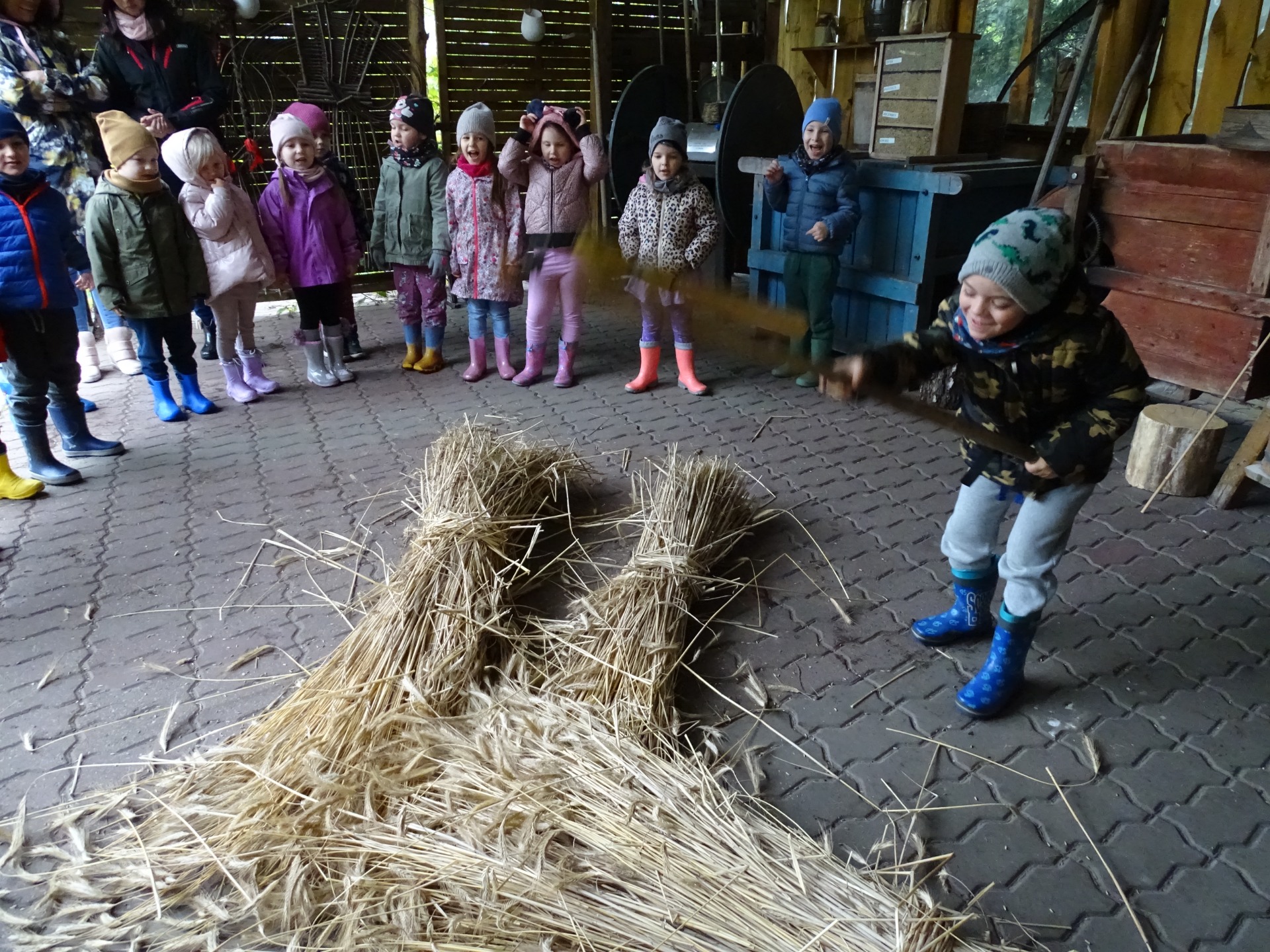 17 kwietnia grupa Podróżników wybrała na wycieczkę do Konarzewa. Dzieci uczestniczyly tam w warsztatach pod nazwą „Od ziarenka do bochenka”. Pomimo pochmurnej pogody, dobre humory i radość nikogo nie opuszczały. Zwłaszcza kiedy na pole trzeba było wybrać się na wozie. Na miejscu, poznały pracę rolników – poczynając od bronowania pola, zasiania zboża, przez jego ścinanie i snopkowanie, po młócenie, mielenie na mąkę i ostatecznie pieczenie chleba. Po powrocie z pola, Podróżnicy wyrobili własne ciasto i upiekli pyszny chlebek.