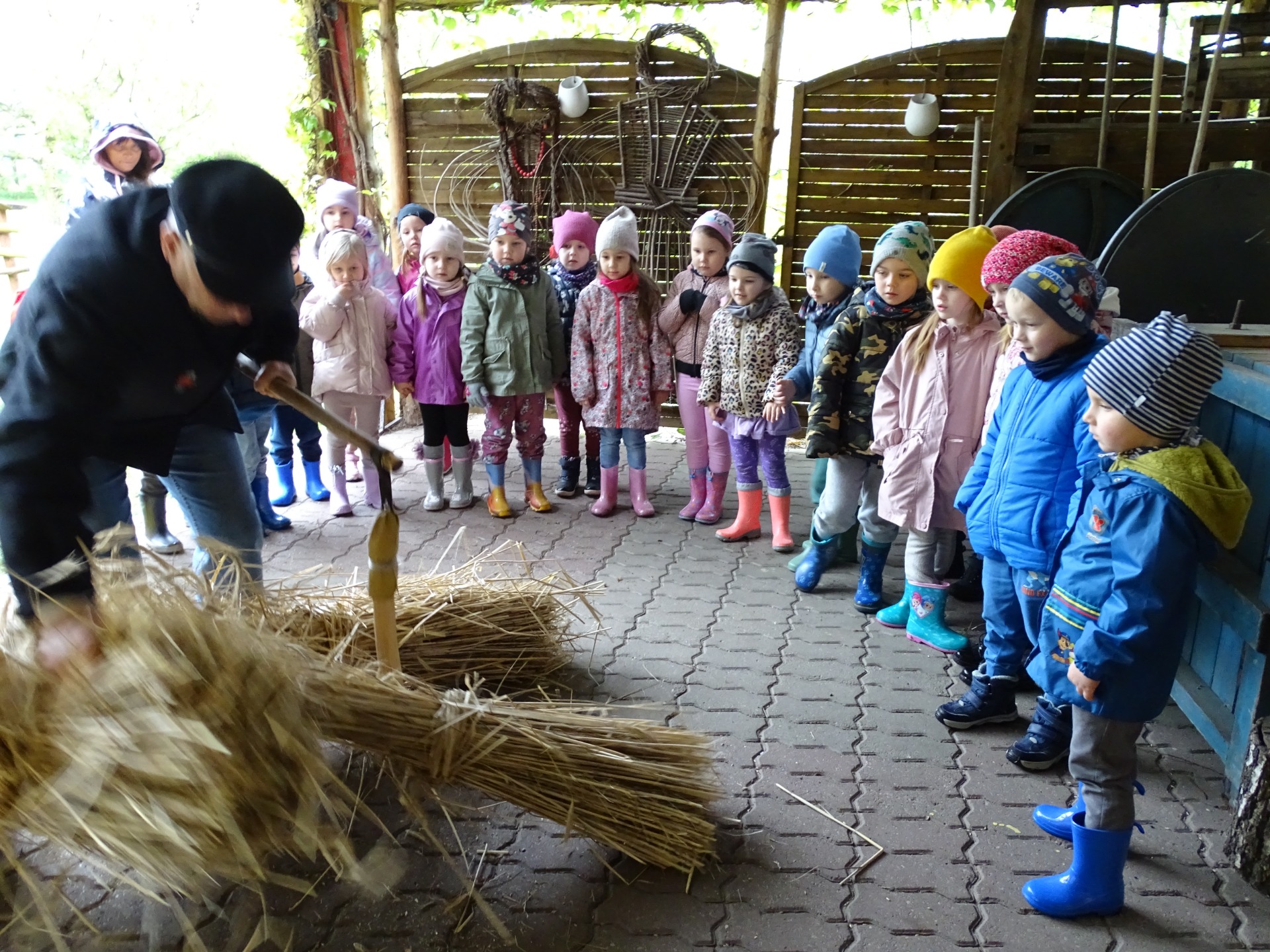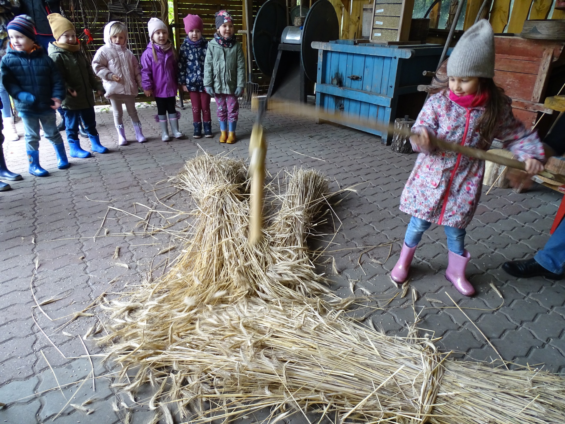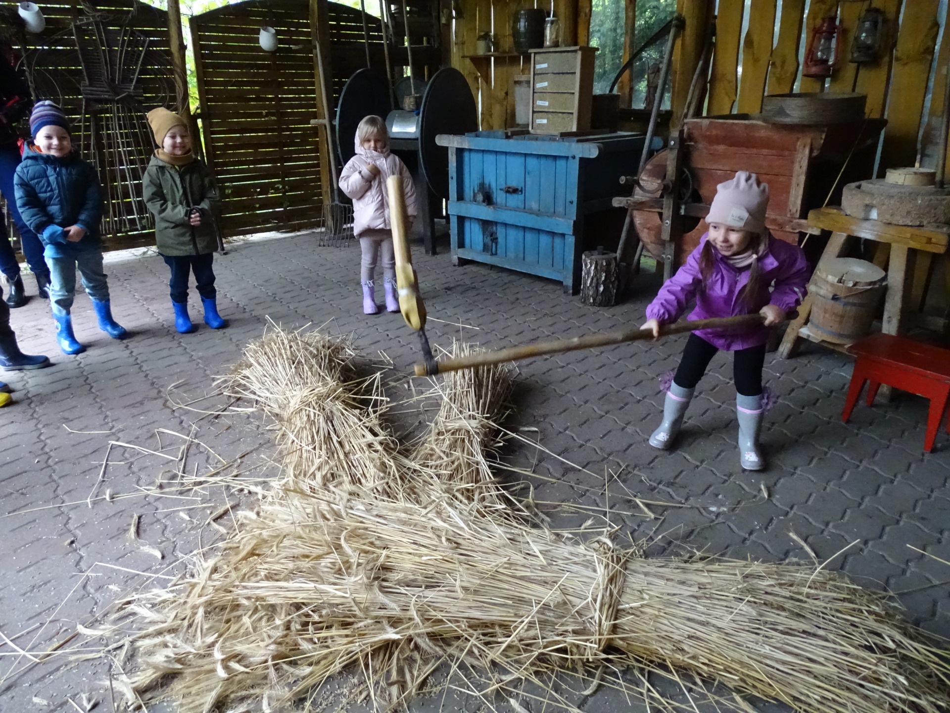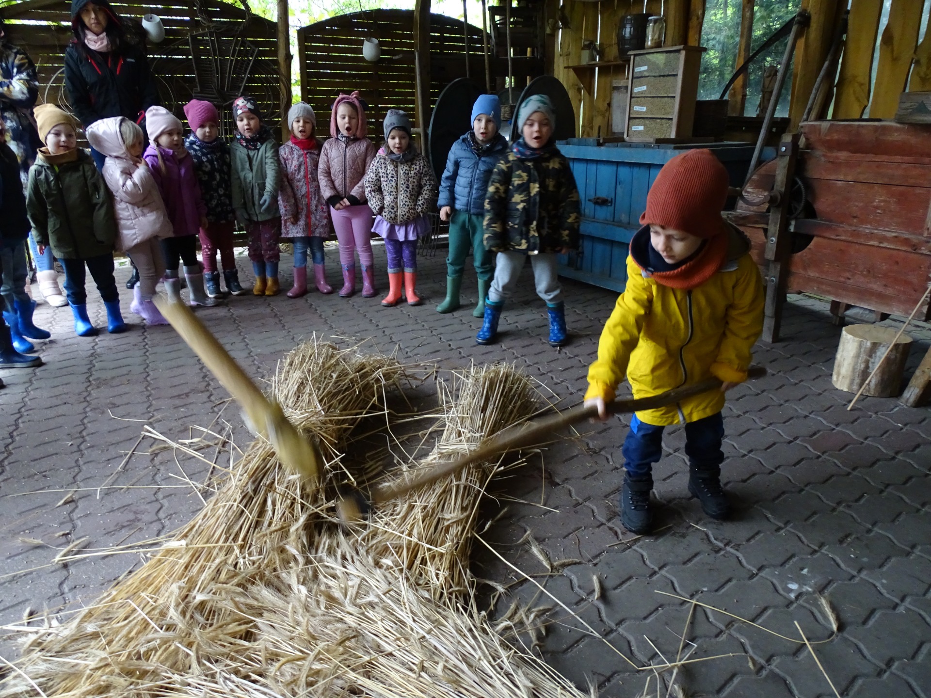 17 kwietnia grupa Podróżników wybrała na wycieczkę do Konarzewa. Dzieci uczestniczyly tam w warsztatach pod nazwą „Od ziarenka do bochenka”. Pomimo pochmurnej pogody, dobre humory i radość nikogo nie opuszczały. Zwłaszcza kiedy na pole trzeba było wybrać się na wozie. Na miejscu, poznały pracę rolników – poczynając od bronowania pola, zasiania zboża, przez jego ścinanie i snopkowanie, po młócenie, mielenie na mąkę i ostatecznie pieczenie chleba. Po powrocie z pola, Podróżnicy wyrobili własne ciasto i upiekli pyszny chlebek.