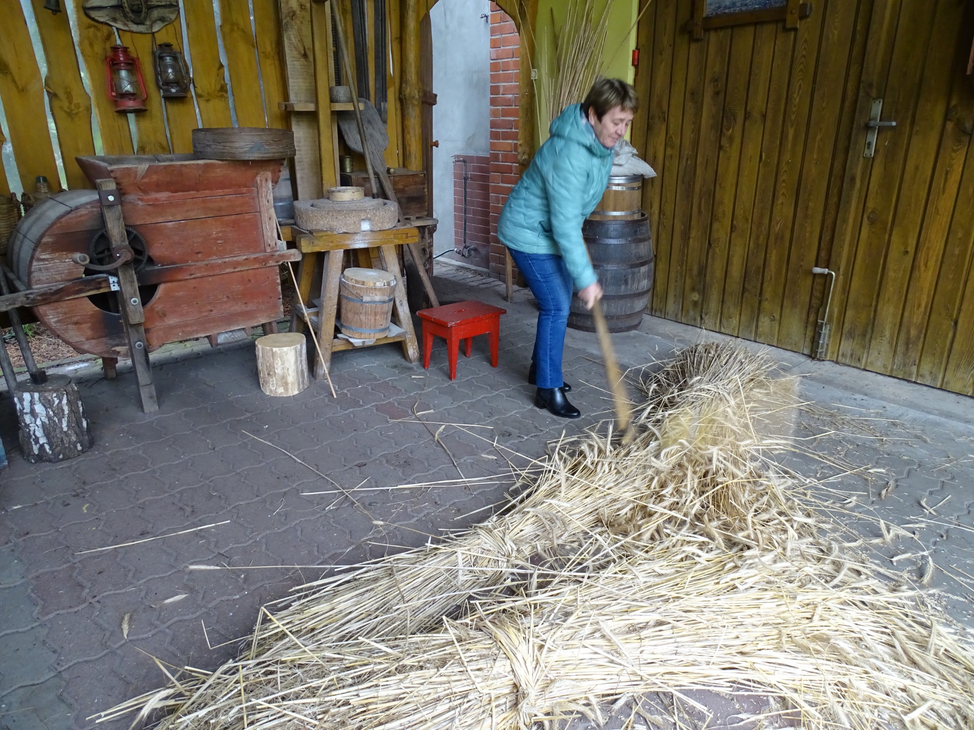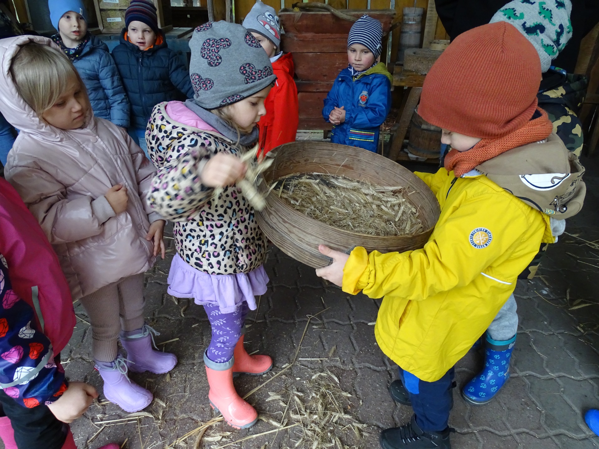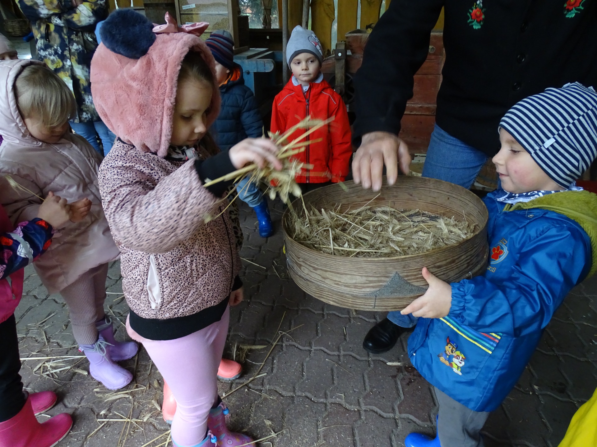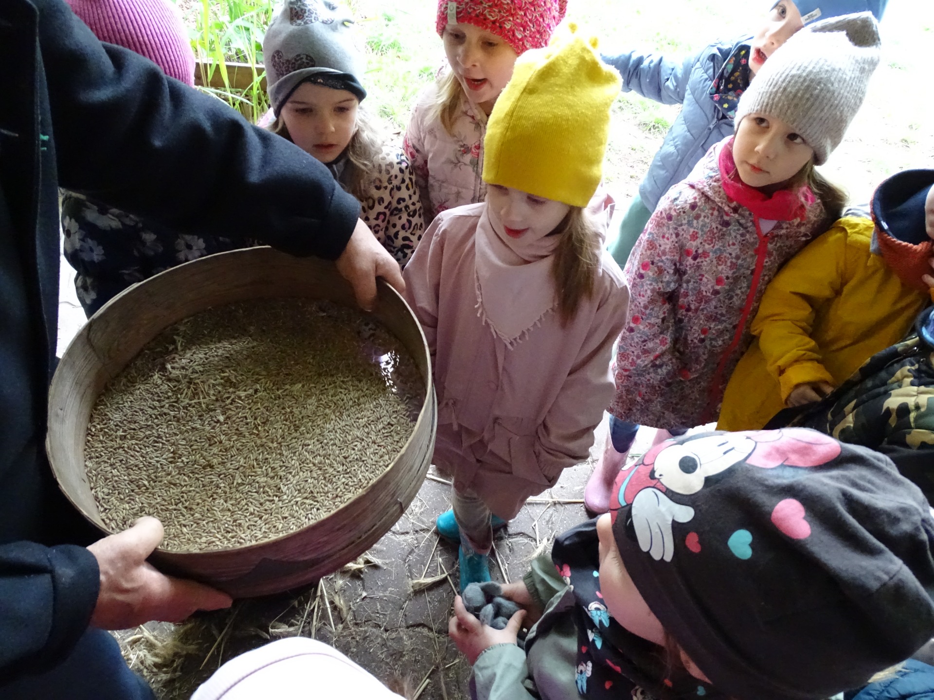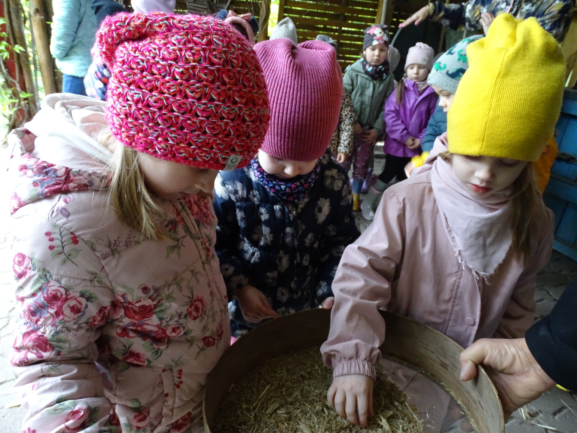 17 kwietnia grupa Podróżników wybrała na wycieczkę do Konarzewa. Dzieci uczestniczyly tam w warsztatach pod nazwą „Od ziarenka do bochenka”. Pomimo pochmurnej pogody, dobre humory i radość nikogo nie opuszczały. Zwłaszcza kiedy na pole trzeba było wybrać się na wozie. Na miejscu, poznały pracę rolników – poczynając od bronowania pola, zasiania zboża, przez jego ścinanie i snopkowanie, po młócenie, mielenie na mąkę i ostatecznie pieczenie chleba. Po powrocie z pola, Podróżnicy wyrobili własne ciasto i upiekli pyszny chlebek.