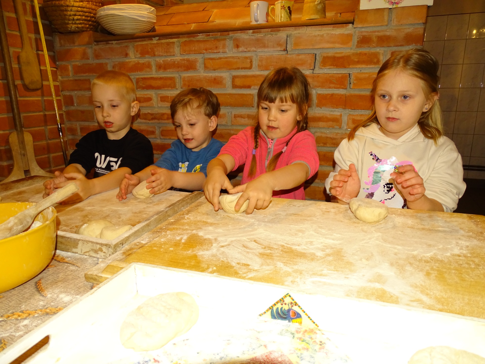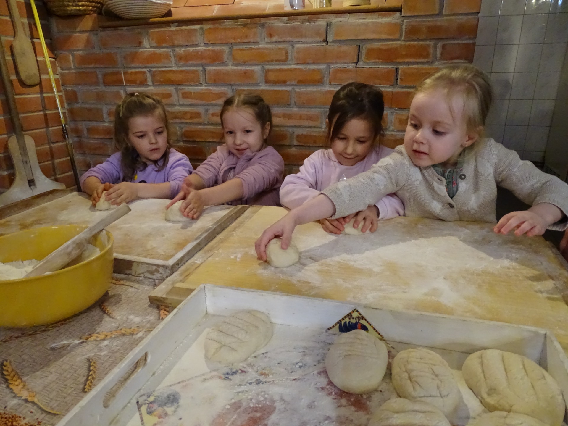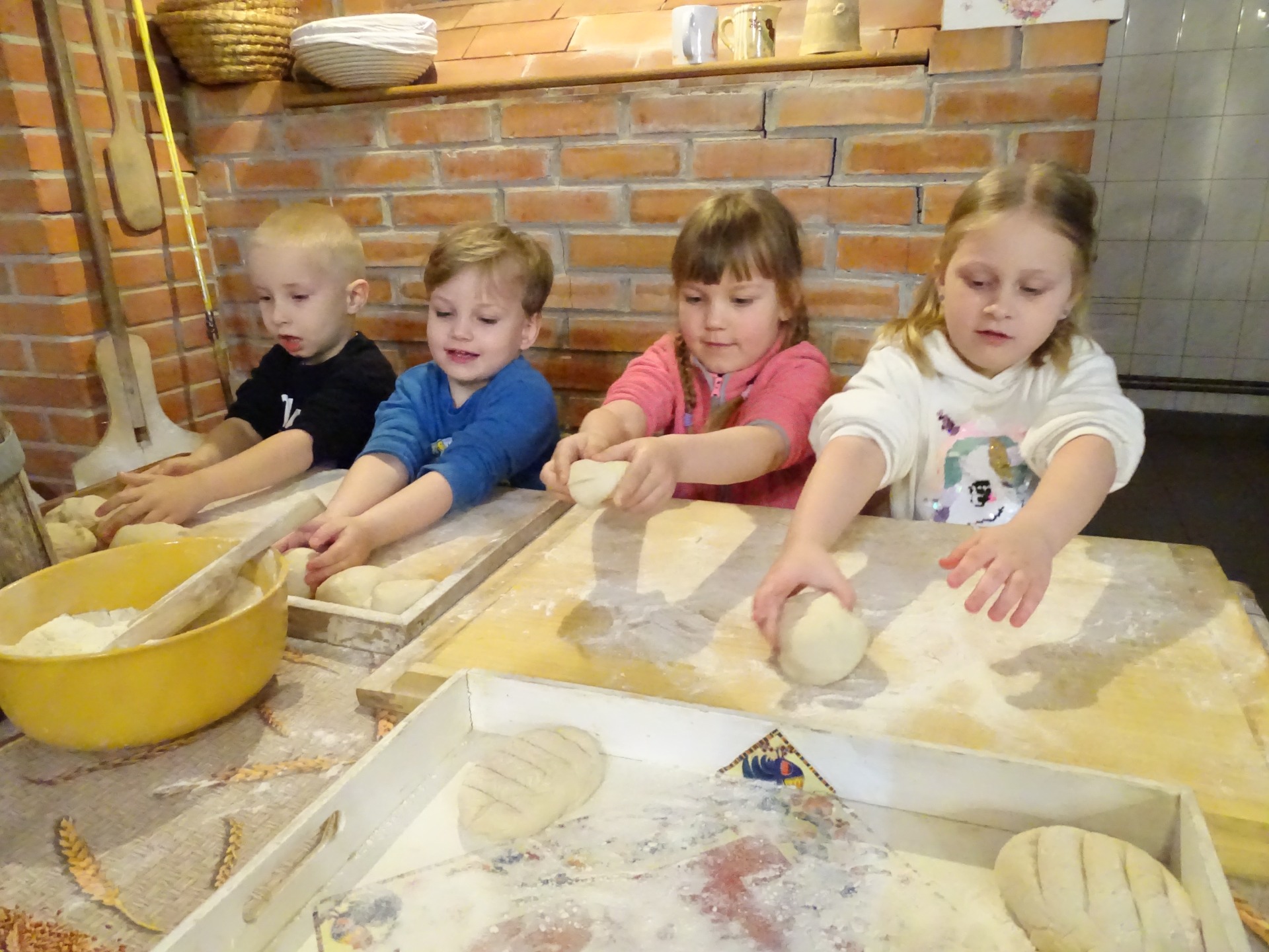 17 kwietnia grupa Podróżników wybrała na wycieczkę do Konarzewa. Dzieci uczestniczyly tam w warsztatach pod nazwą „Od ziarenka do bochenka”. Pomimo pochmurnej pogody, dobre humory i radość nikogo nie opuszczały. Zwłaszcza kiedy na pole trzeba było wybrać się na wozie. Na miejscu, poznały pracę rolników – poczynając od bronowania pola, zasiania zboża, przez jego ścinanie i snopkowanie, po młócenie, mielenie na mąkę i ostatecznie pieczenie chleba. Po powrocie z pola, Podróżnicy wyrobili własne ciasto i upiekli pyszny chlebek. Dzieci spędziły miło czas na świeżym powietrzu i wróciły do domów z przydatną wiedzą. Atmosfera podczas wycieczki była bardzo miła, dzieci czuły się swobodnie i z pewnością nie zapomną o niej przez długi czas.