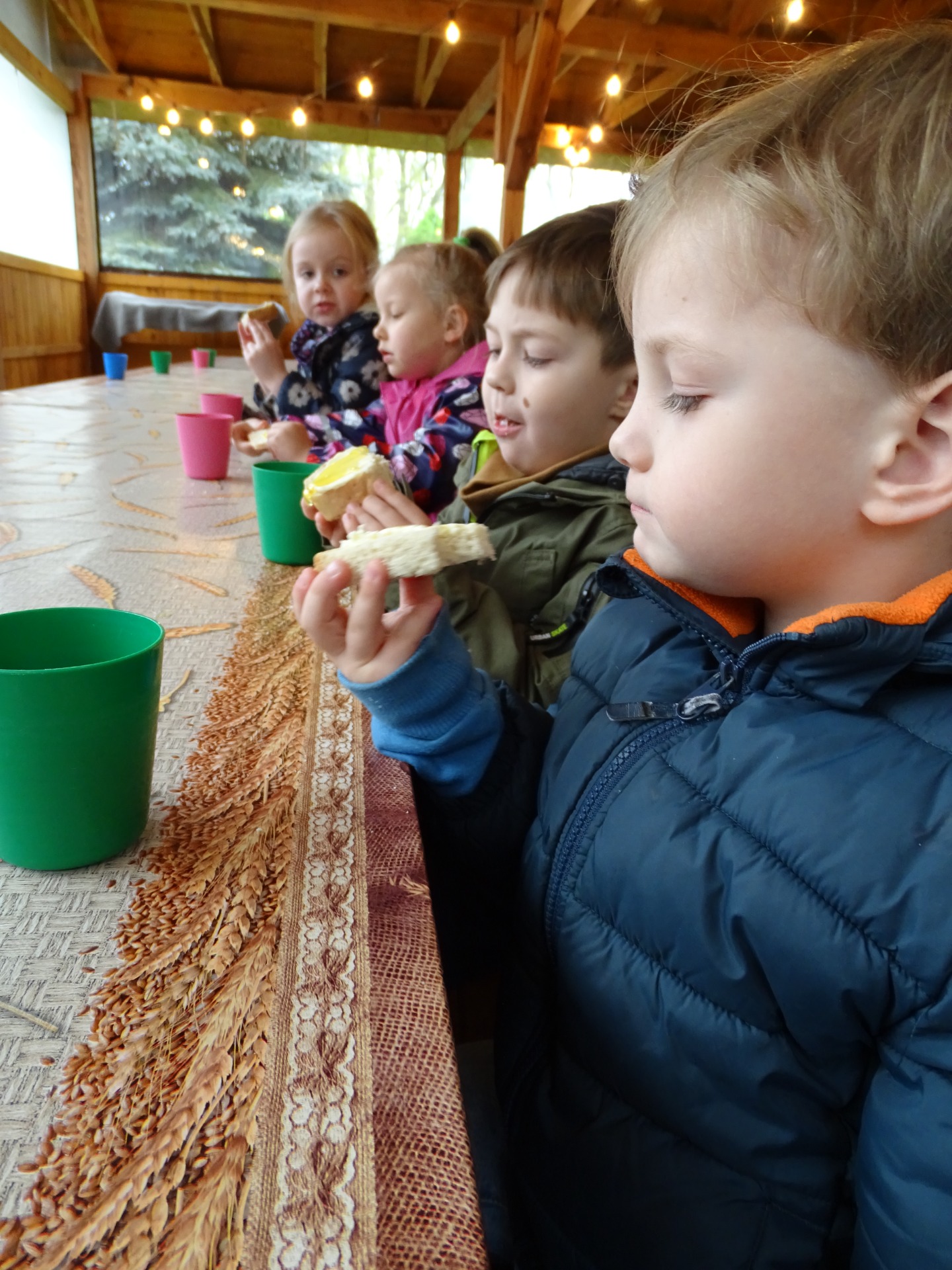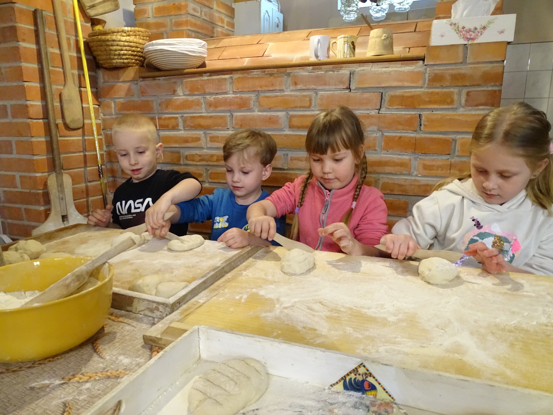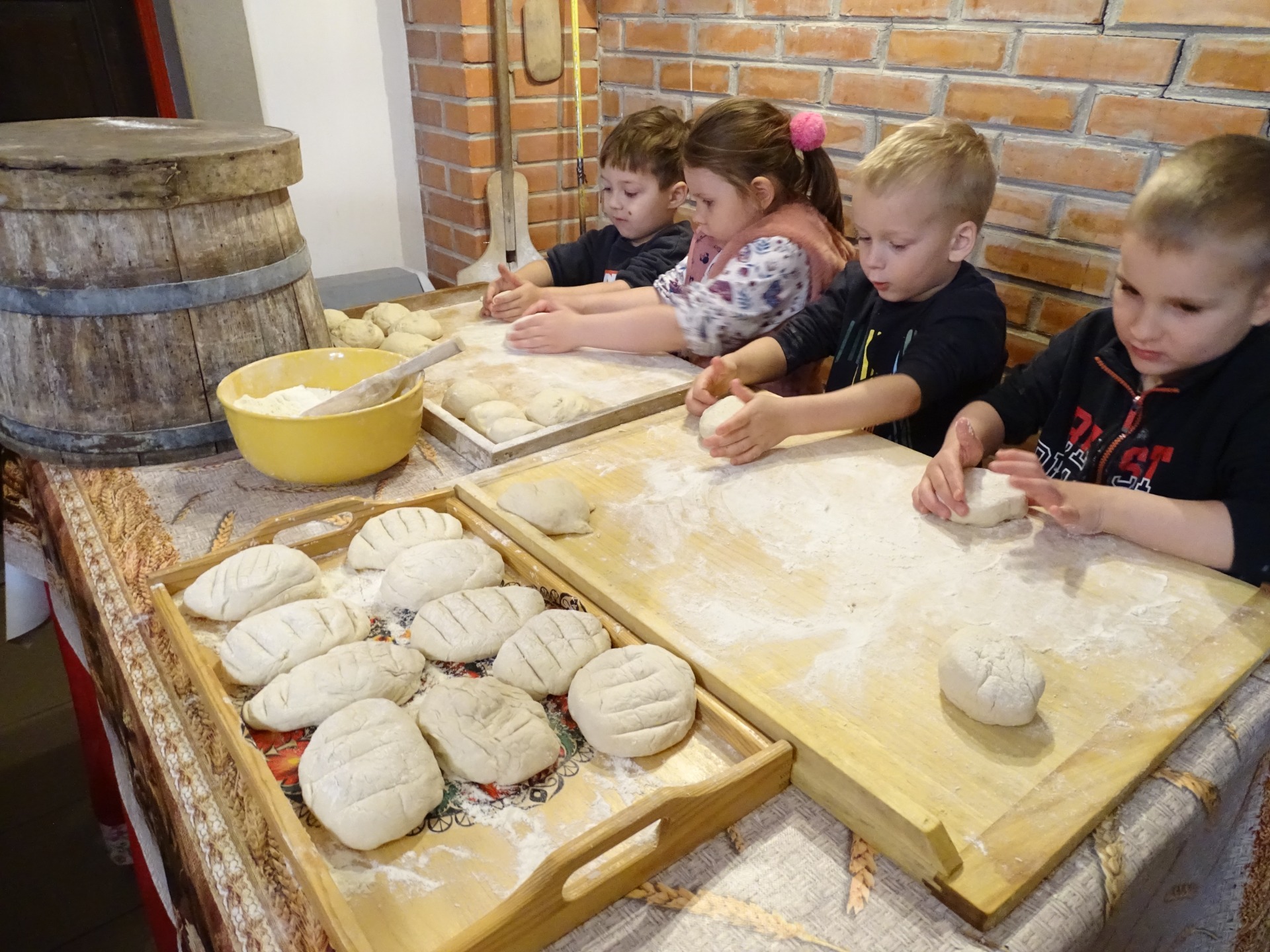 17 kwietnia grupa Podróżników wybrała na wycieczkę do Konarzewa. Dzieci uczestniczyly tam w warsztatach pod nazwą „Od ziarenka do bochenka”. Pomimo pochmurnej pogody, dobre humory i radość nikogo nie opuszczały. Zwłaszcza kiedy na pole trzeba było wybrać się na wozie. Na miejscu, poznały pracę rolników – poczynając od bronowania pola, zasiania zboża, przez jego ścinanie i snopkowanie, po młócenie, mielenie na mąkę i ostatecznie pieczenie chleba. Po powrocie z pola, Podróżnicy wyrobili własne ciasto i upiekli pyszny chlebek. Dzieci spędziły miło czas na świeżym powietrzu i wróciły do domów z przydatną wiedzą. Atmosfera podczas wycieczki była bardzo miła, dzieci czuły się swobodnie i z pewnością nie zapomną o niej przez długi czas.