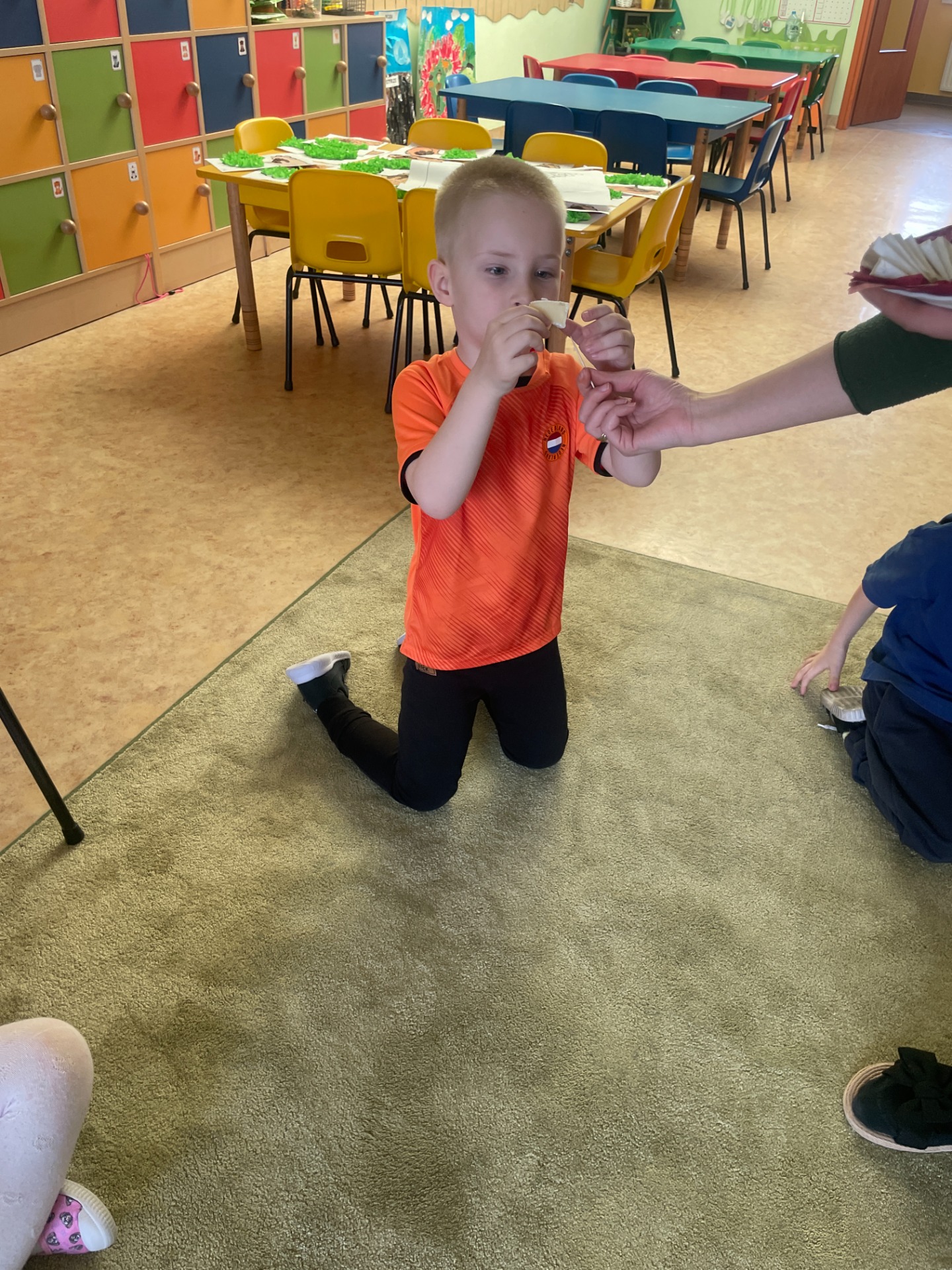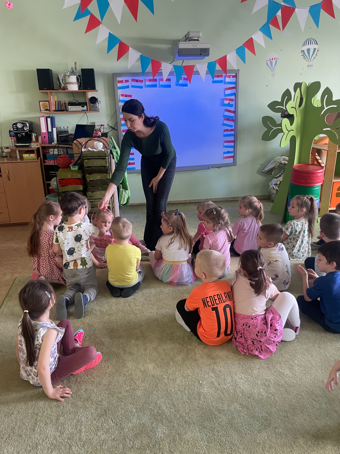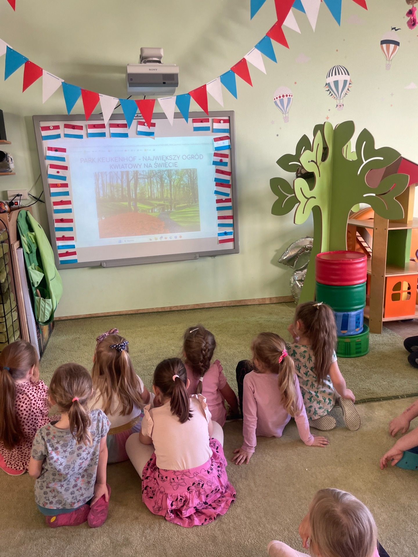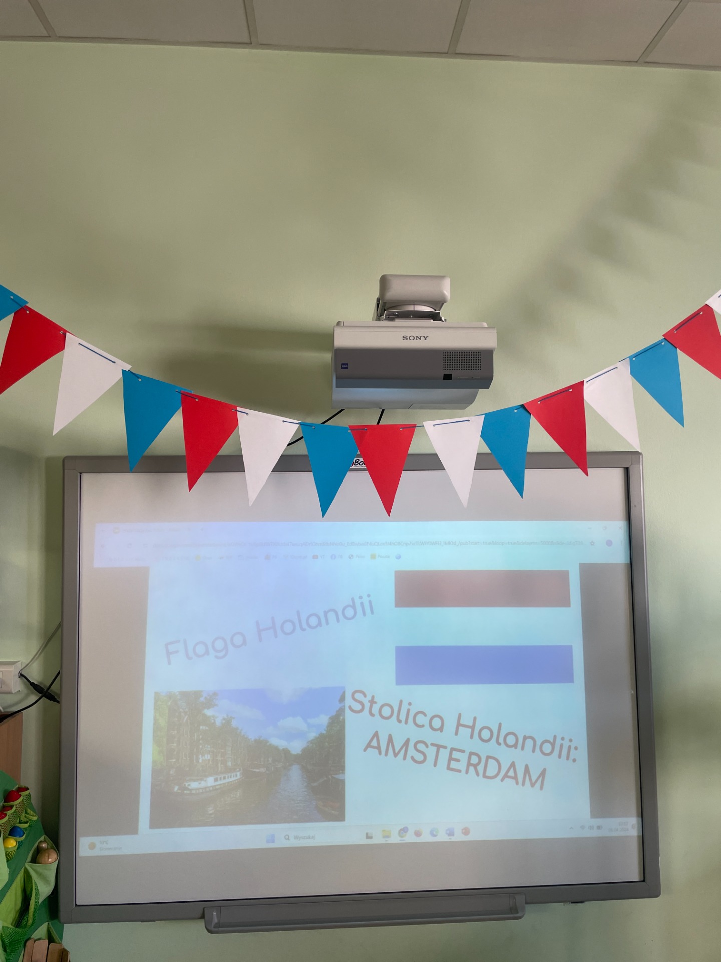 Dzisiaj Podróżnicy odwiedzili niderlandzki kraj jakim jest Holandia. Przedszkolaki dowiedziały się z czego słynie ten kraj, poznały jego tradycyjny strój ludowy oraz posłuchały jak brzmi język holenderski. Podczas pokazu slajdów dzieci zachwycały się polami pełnymi tulipanów, zabytkowymi i nowoczesnymi wiatrakami, holenderskim mlekiem oraz serami, a także pięknymi uliczkami Amsterdamu. Podróż po Holandii umilały zagadki, które jednocześnie były zadaniami do wykonania. Dzieci mogły degustować ser, wybrać się na wycieczkę rowerową, a także eksperymentowały z mlekiem tworząc "kolorowy mleczny wir". Zwieńczeniem zajęć było wykonanie wiatraków oraz degustacja czekolady z której = Holandia słynie.