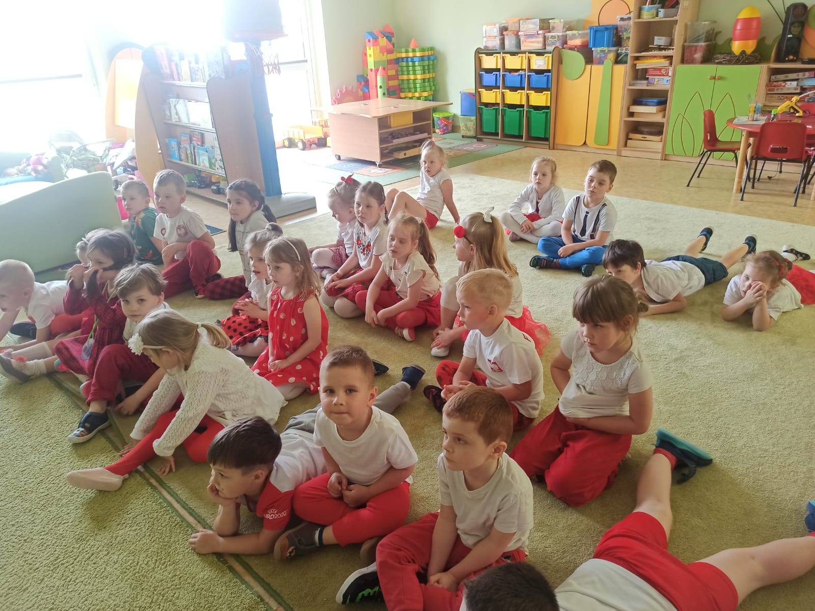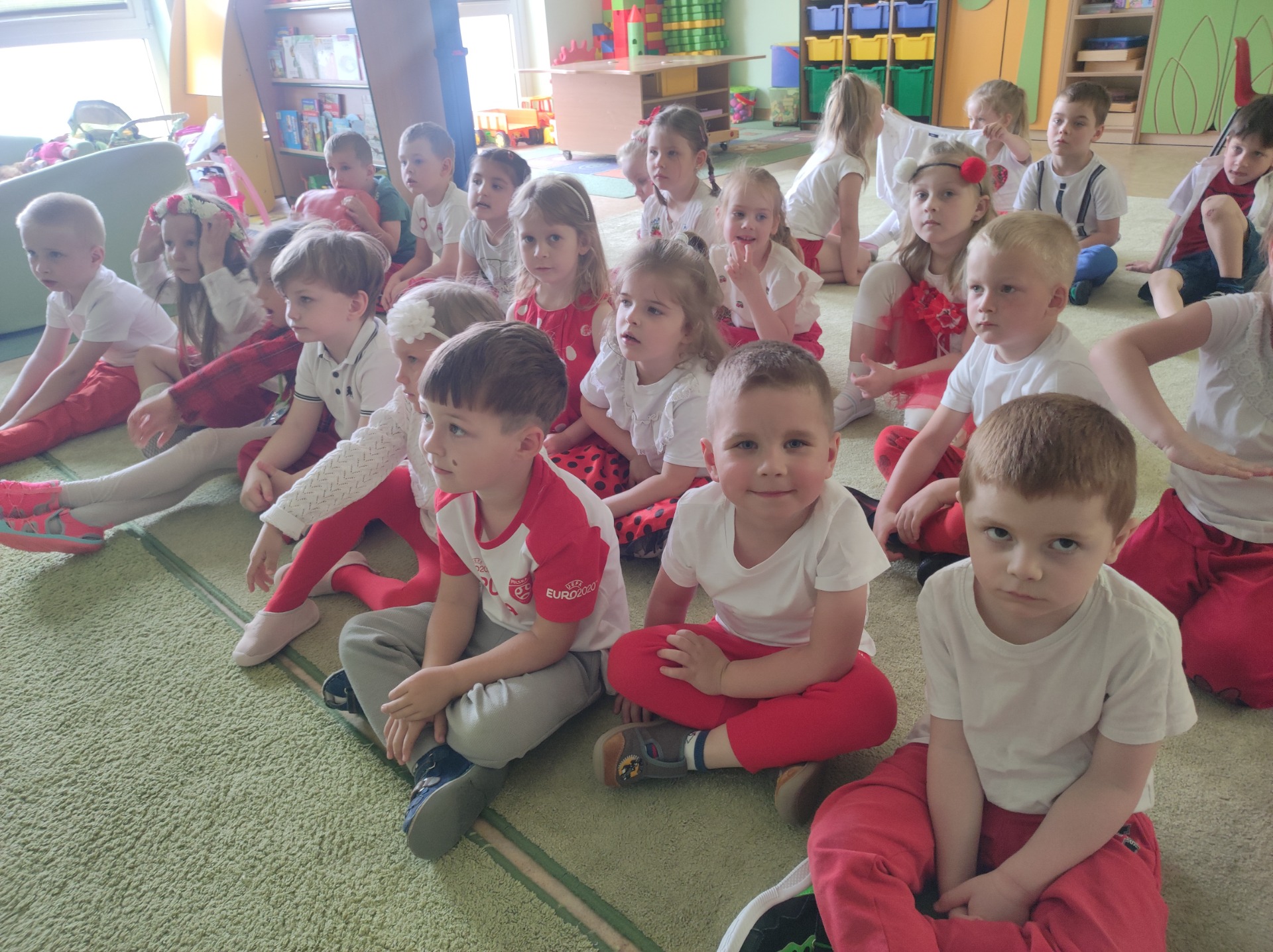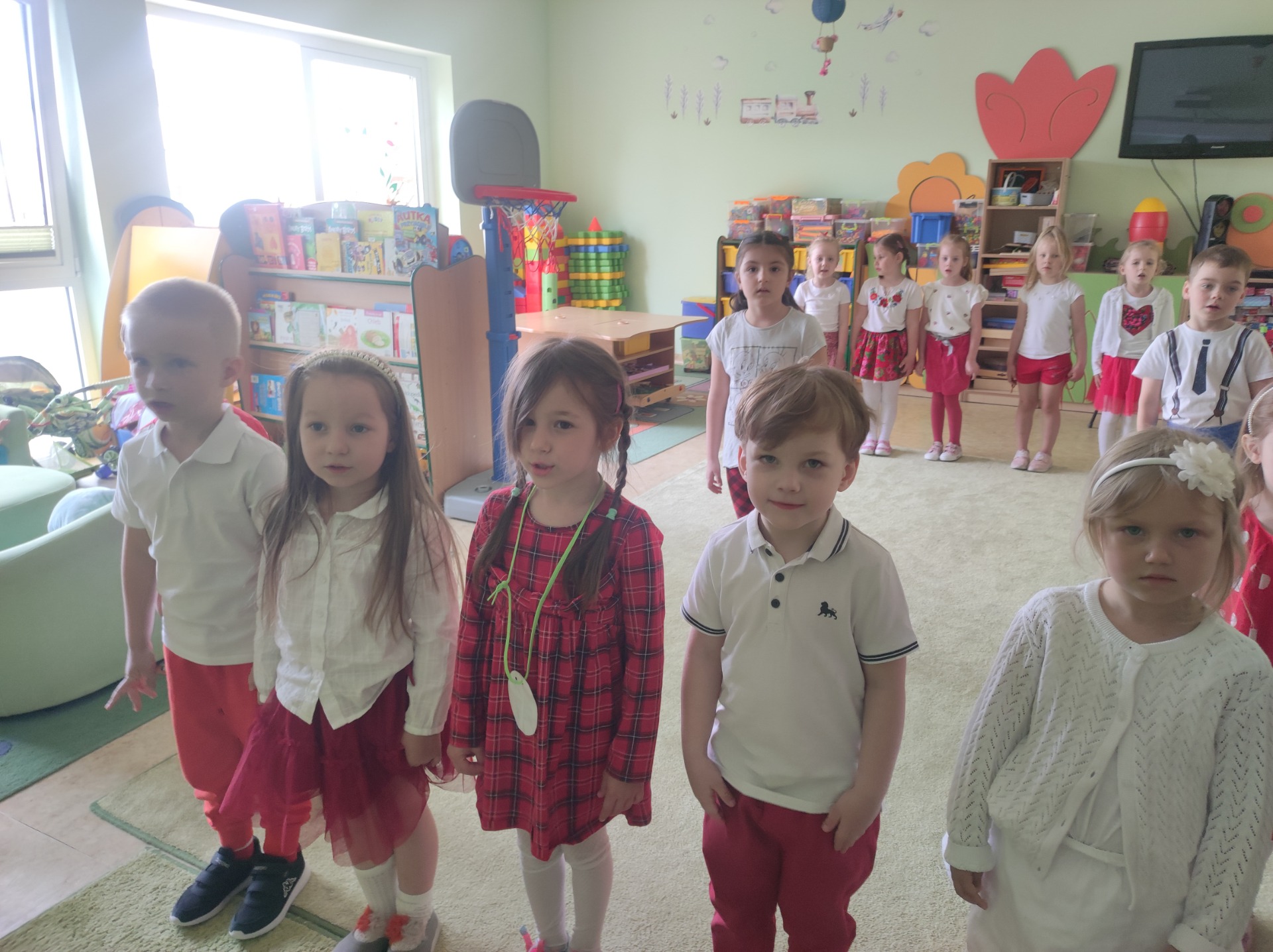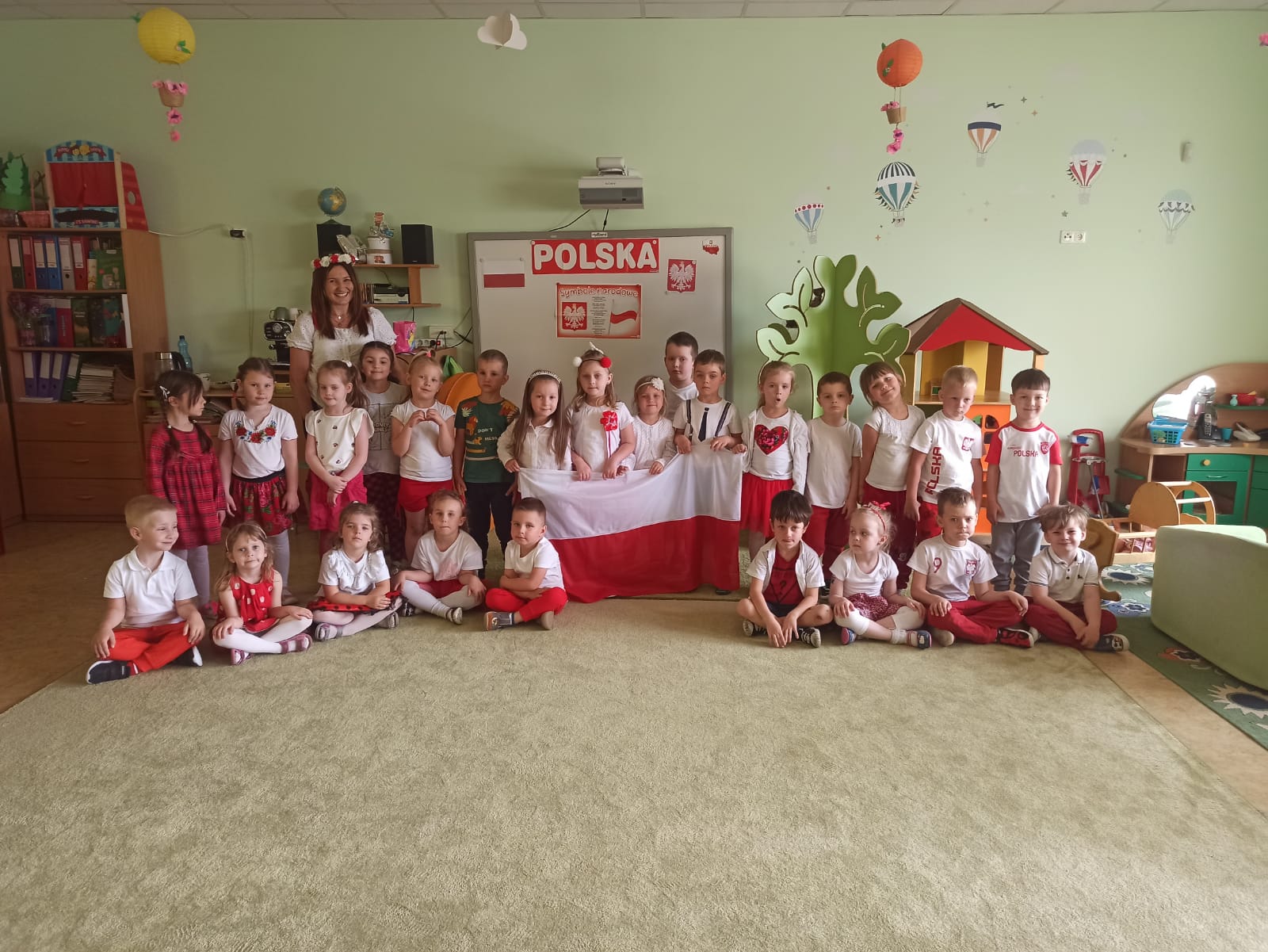 2 maja obchodzony jest Dzień Flagi Rzeczypospolitej Polskiej. My także postanowiliśmy uczcić nasze barwy ojczyste. 6 maja 2024 r. wszyscy przyszli do przedszkola odświętne ubrani. Dzieci wzięły udział w zadaniowych zabawach związanych z tematyką flagi Polski, a w czasie zajęć miały okazję przypomnieć sobie hymn Polski, godło oraz jak symbole narodowe należy szanować. Dzień ten był dla przedszkolaków wspaniałą lekcją przypomnienia sobie, że są Polakami, a Polska to ich Ojczyzna.