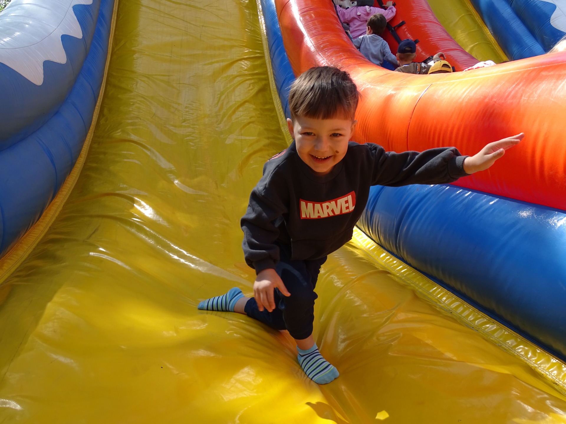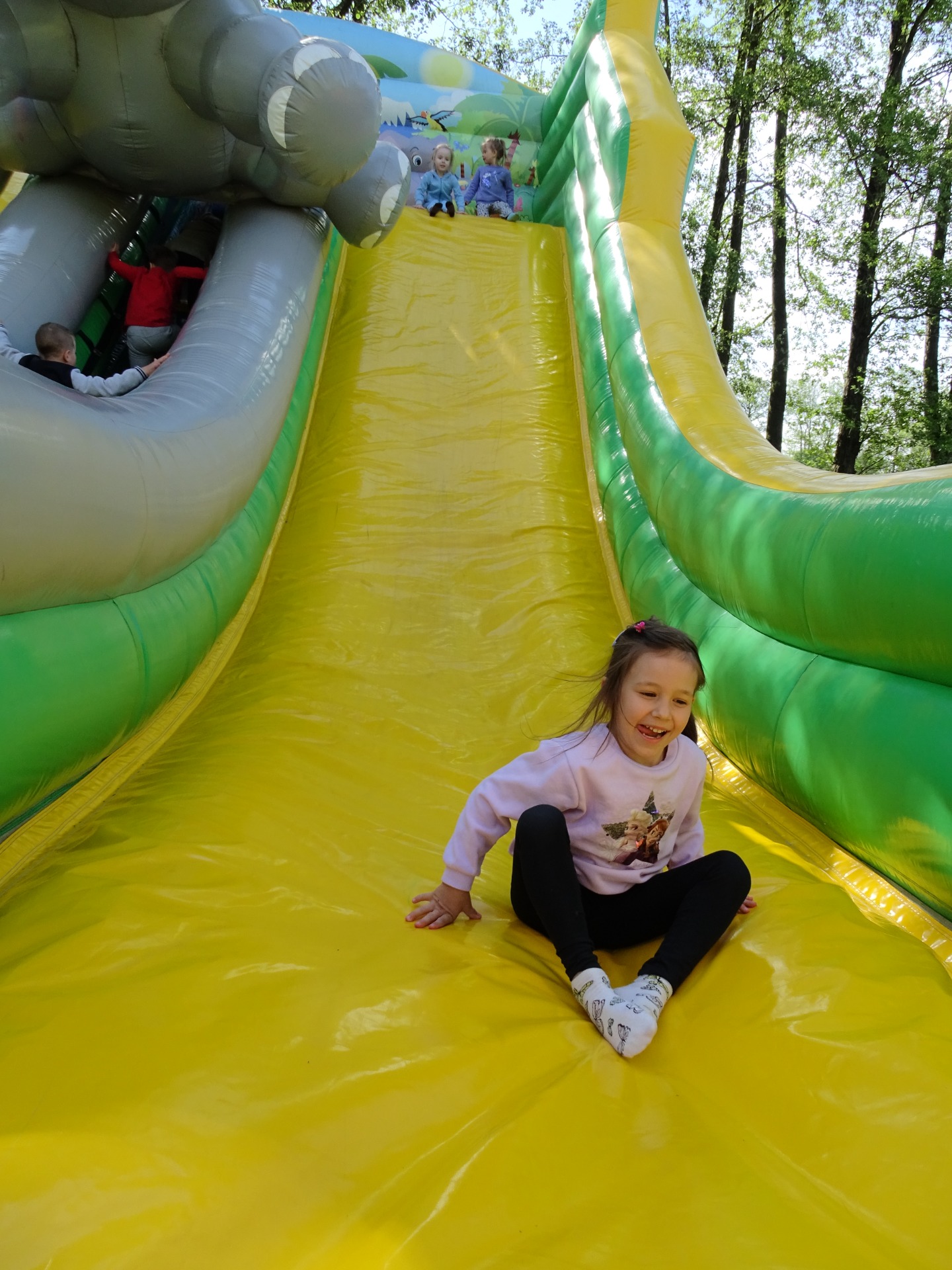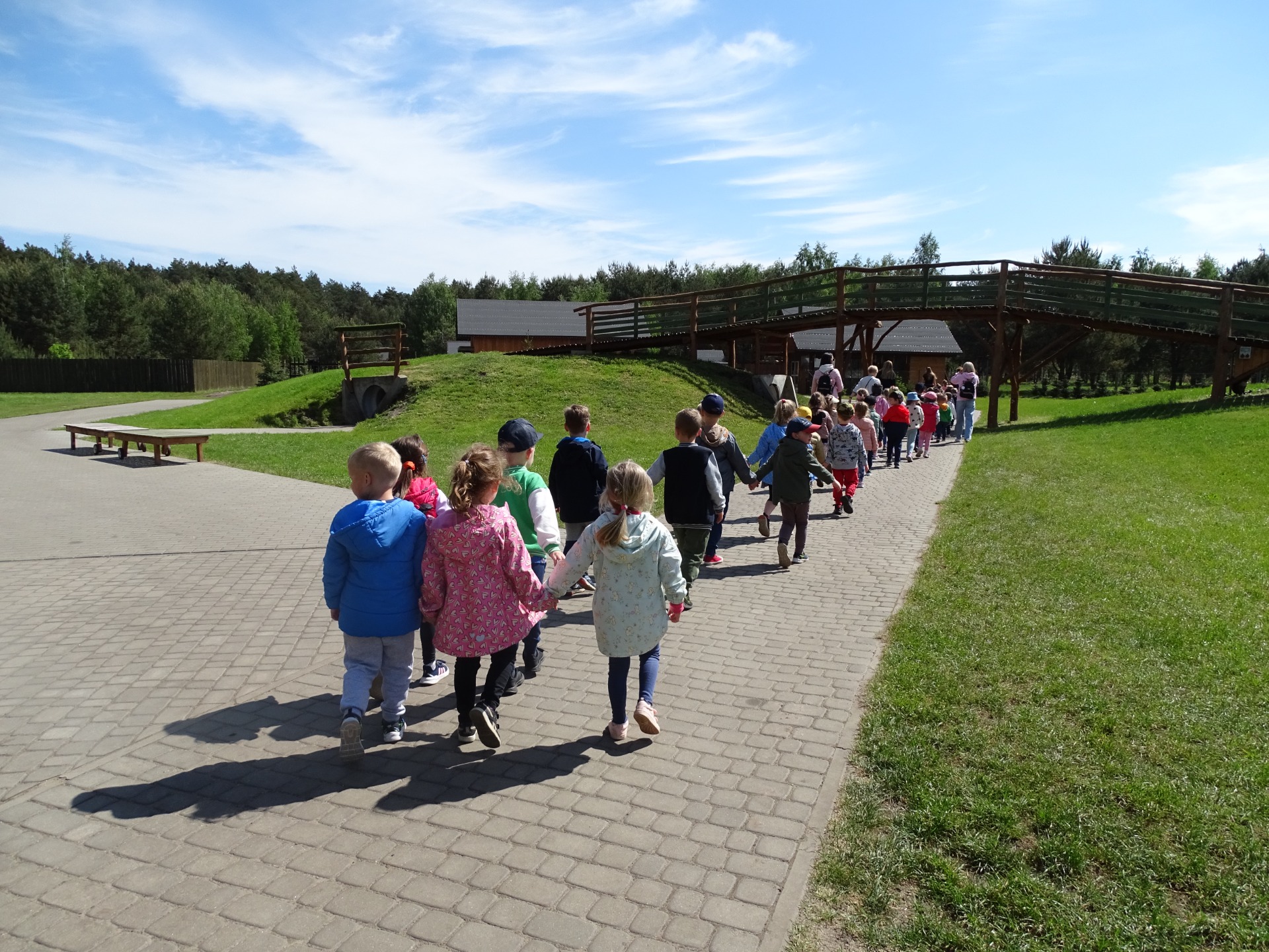 W dniu 8 maja Podróżnicy wybrali się na całodniową wycieczkę do Frajdalandii- miejsca pełnego zabaw, przygód i zwierzątek, a wszystko to na świeżym powietrzu. Przedszkolaki podziwiały różne okazy ptaków: sowy, jastrzębia i sokoła. W czasie pokazu dzieci mogły sprawdzić jakie milutkie jest upierzenie sów, oraz wcieliły się w drzewa leśne pośród których latały ptaki. Nie zabrakło również wizyty w również mini zoo, gdzie dzieci spotkały w nim wielbłądy, kucyka (który może ugryźć ;)), lamy i owce. Mogli również wejść do