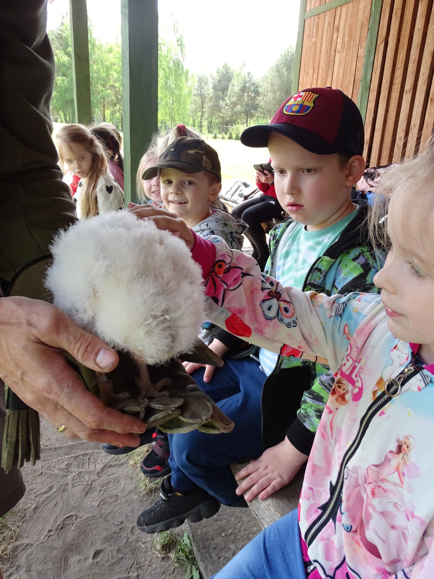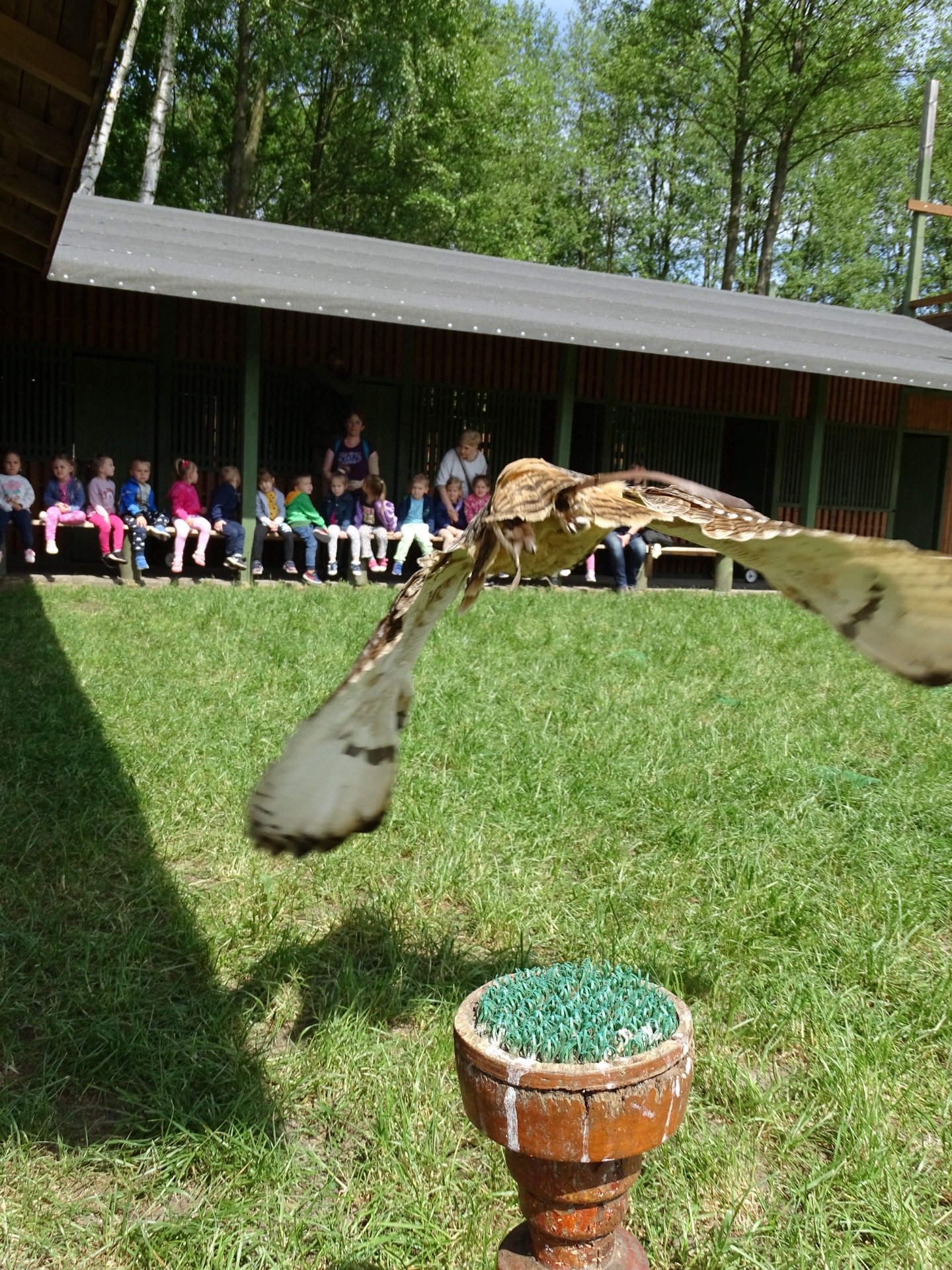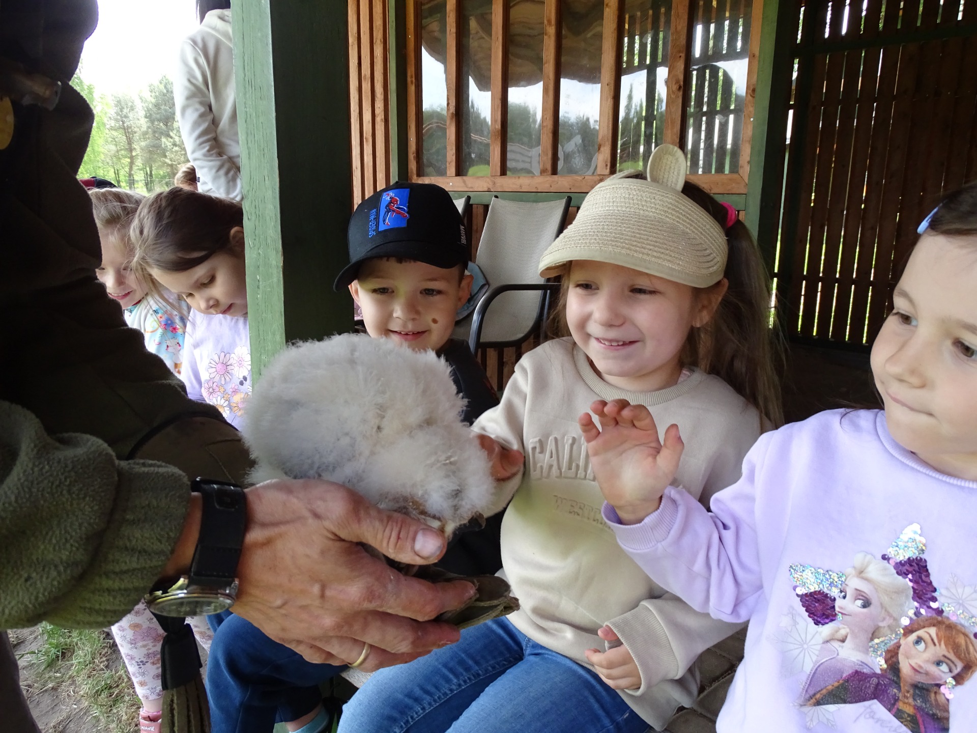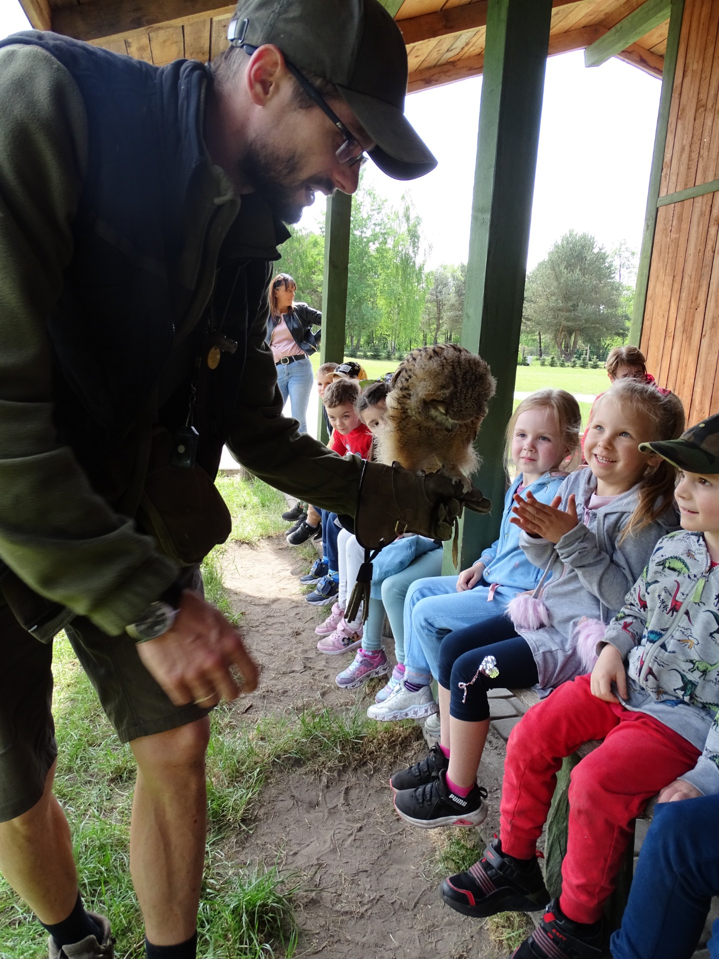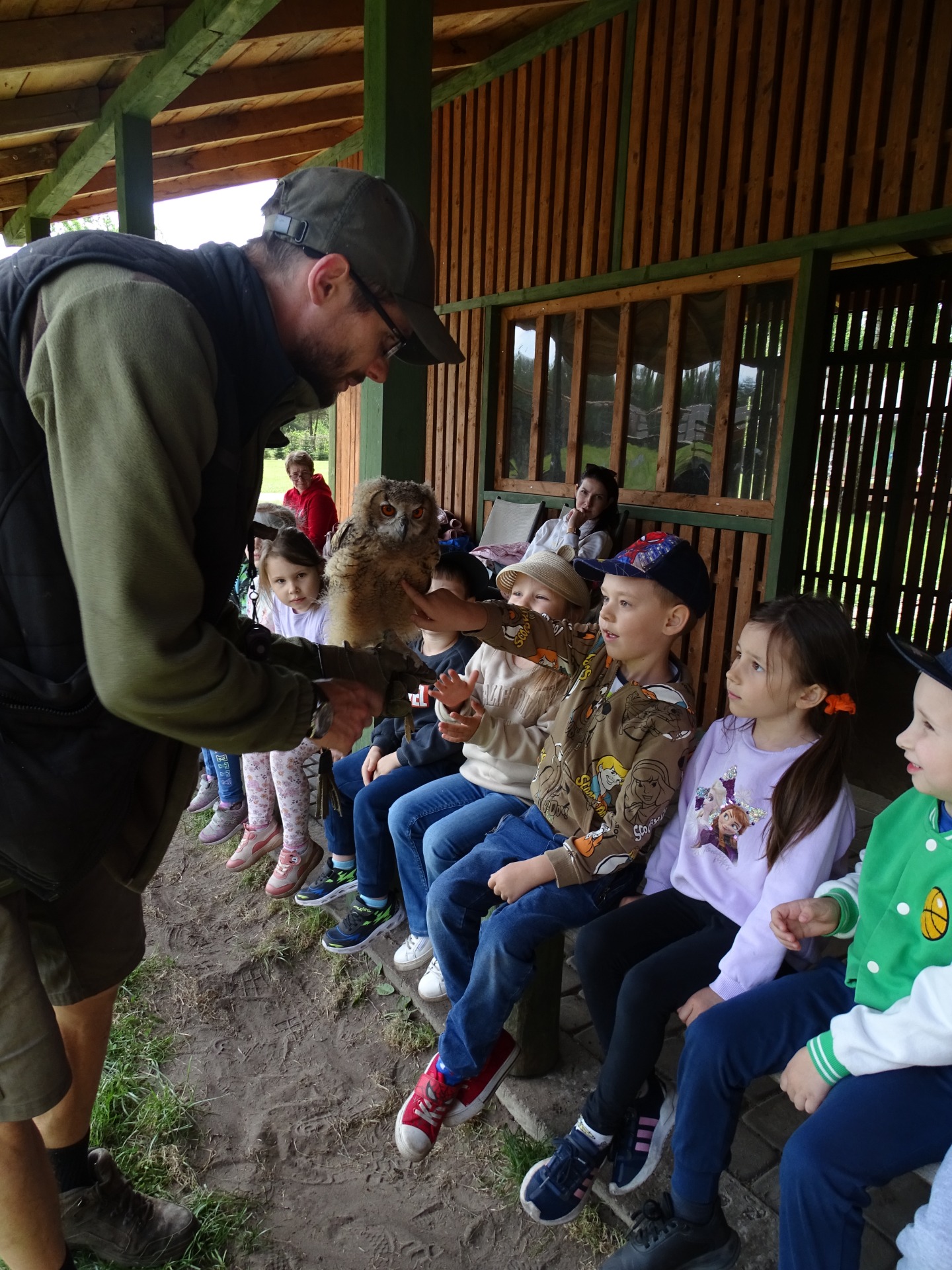 W dniu 8 maja Podróżnicy wybrali się na całodniową wycieczkę do Frajdalandii- miejsca pełnego zabaw, przygód i zwierzątek, a wszystko to na świeżym powietrzu. Przedszkolaki podziwiały różne okazy ptaków: sowy, jastrzębia i sokoła. W czasie pokazu dzieci mogły sprawdzić jakie milutkie jest upierzenie sów, oraz wcieliły się w drzewa leśne pośród których latały ptaki. Nie zabrakło również wizyty w również mini zoo, gdzie dzieci spotkały w nim wielbłądy, kucyka (który może ugryźć ;)), lamy i owce. Mogli również wejść do lam i owieczek i je nakarmić. Na miejscu były również dmuchańce, trampoliny i park linowy. Wszystkie przedszkolaki wracając do przedszkola były zachwycone wycieczką :)