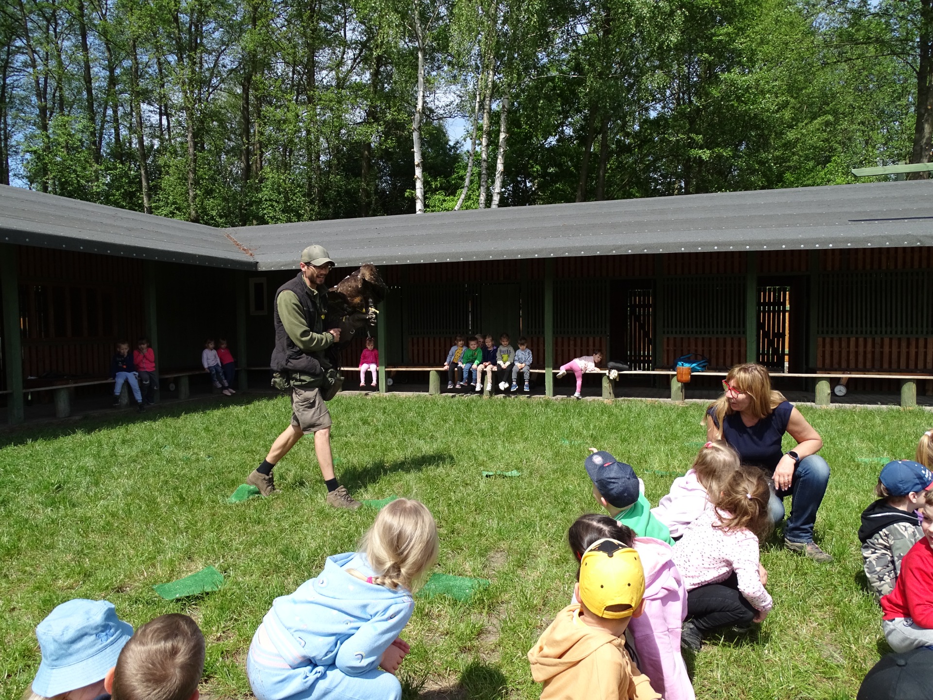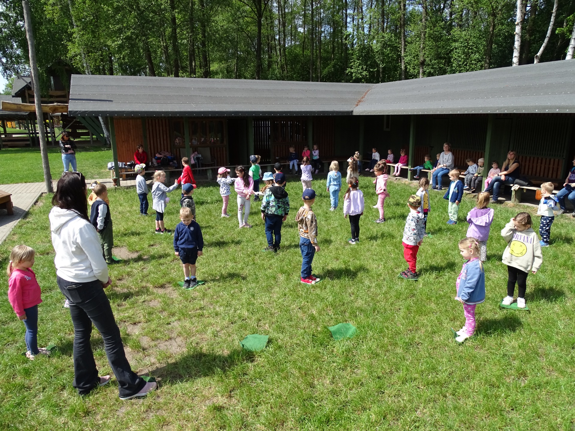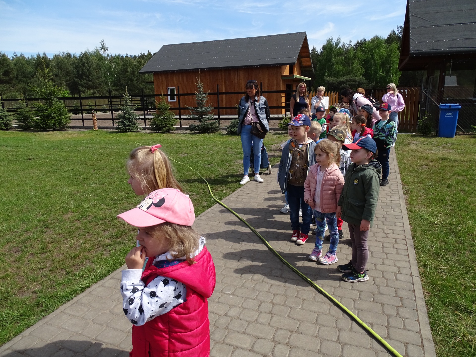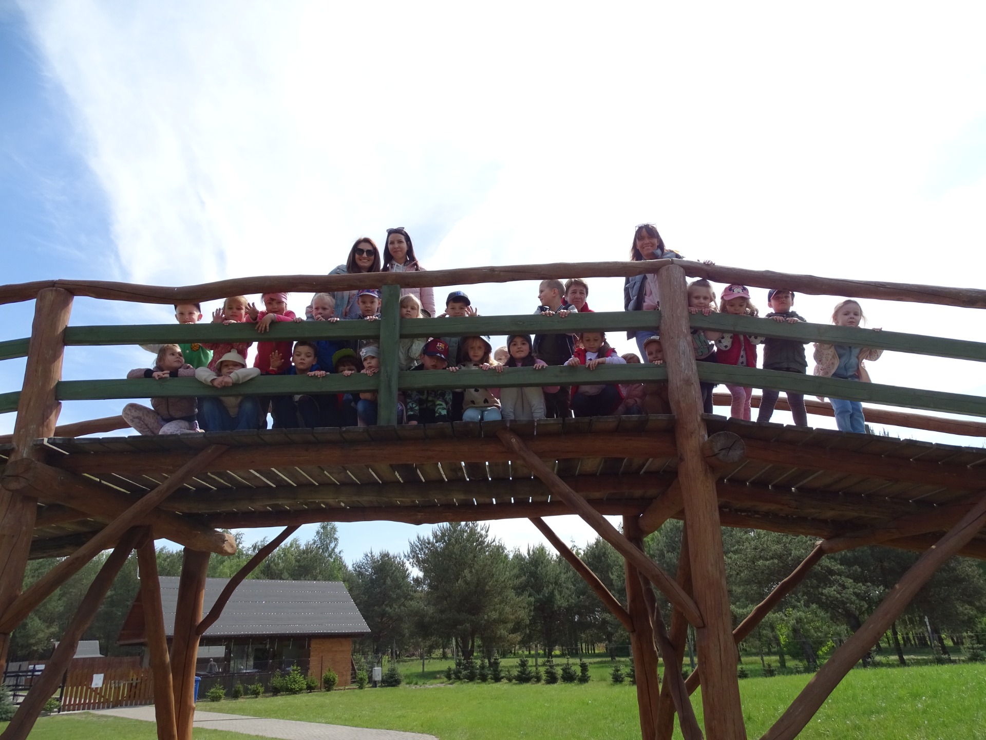 W dniu 8 maja Podróżnicy wybrali się na całodniową wycieczkę do Frajdalandii- miejsca pełnego zabaw, przygód i zwierzątek, a wszystko to na świeżym powietrzu. Przedszkolaki podziwiały różne okazy ptaków: sowy, jastrzębia i sokoła. W czasie pokazu dzieci mogły sprawdzić jakie milutkie jest upierzenie sów, oraz wcieliły się w drzewa leśne pośród których latały ptaki. Nie zabrakło również wizyty w również mini zoo, gdzie dzieci spotkały w nim wielbłądy, kucyka (który może ugryźć ;)), lamy i owce. Mogli również wejść do lam i owieczek i je nakarmić. Na miejscu były również dmuchańce, trampoliny i park linowy. Wszystkie przedszkolaki wracając do przedszkola były zachwycone wycieczką :)