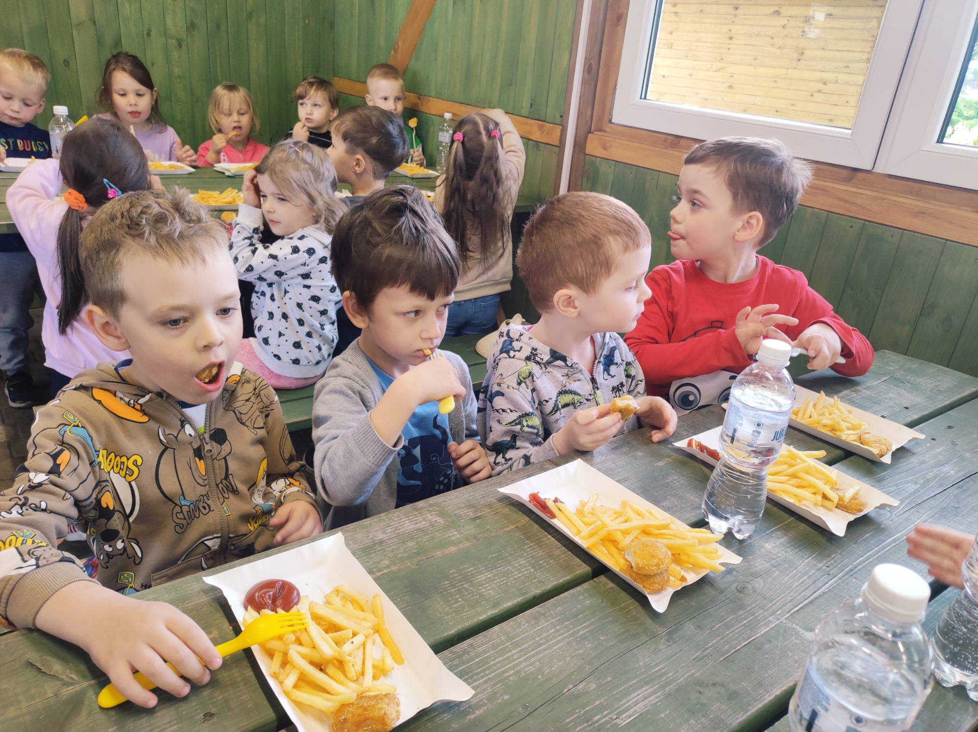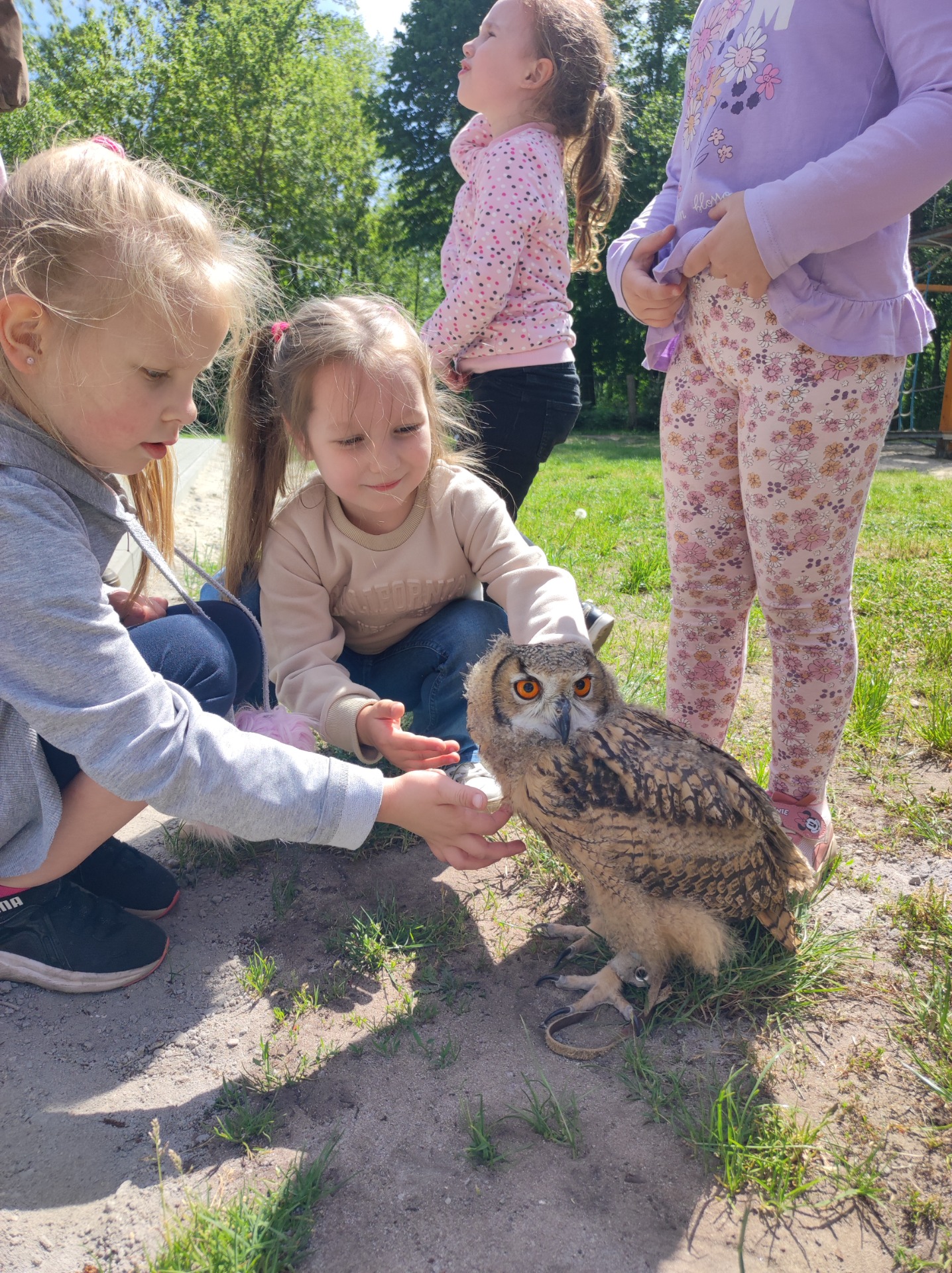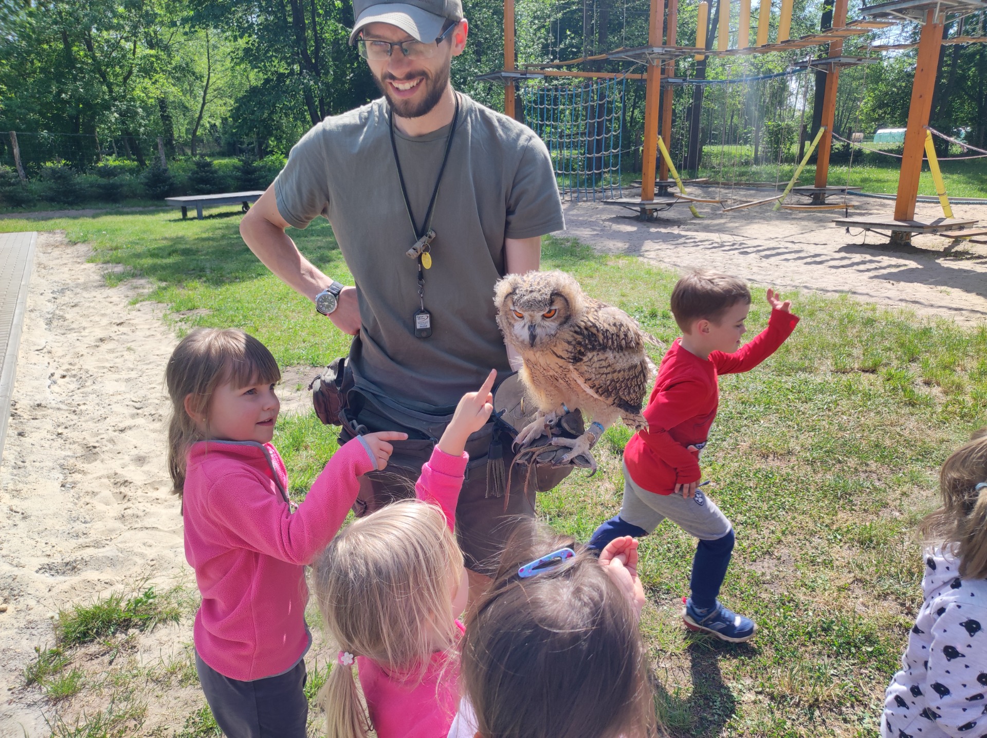 W dniu 8 maja Podróżnicy wybrali się na całodniową wycieczkę do Frajdalandii- miejsca pełnego zabaw, przygód i zwierzątek, a wszystko to na świeżym powietrzu. Przedszkolaki podziwiały różne okazy ptaków: sowy, jastrzębia i sokoła. W czasie pokazu dzieci mogły sprawdzić jakie milutkie jest upierzenie sów, oraz wcieliły się w drzewa leśne pośród których latały ptaki. Nie zabrakło również wizyty w również mini zoo, gdzie dzieci spotkały w nim wielbłądy, kucyka (który może ugryźć ;)), lamy i owce. Mogli również wejść do