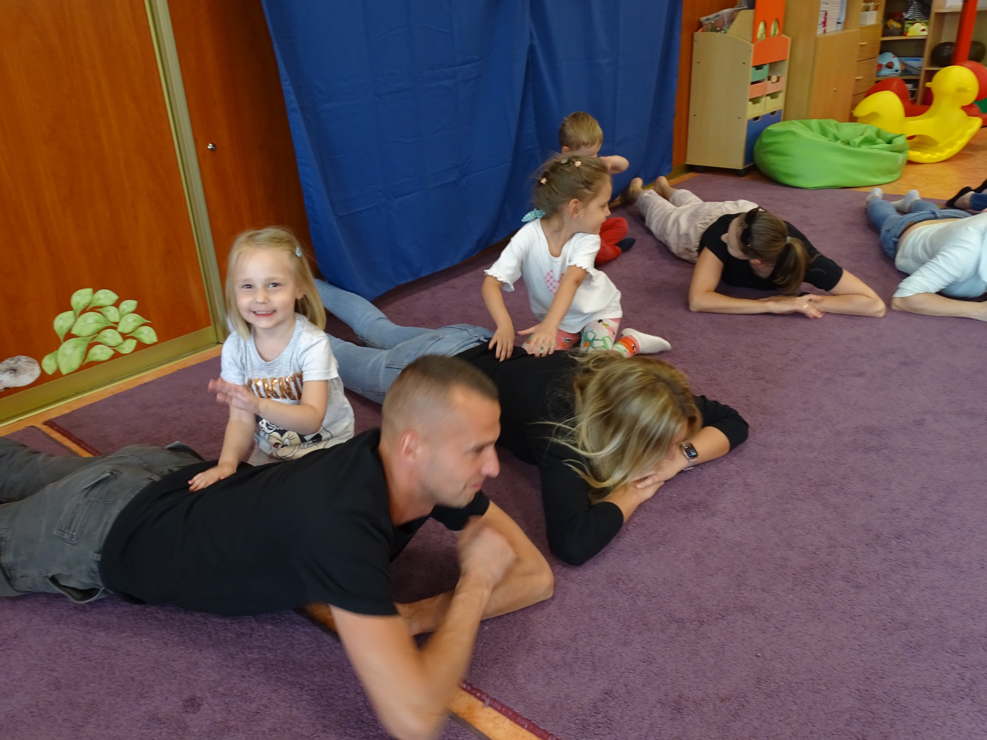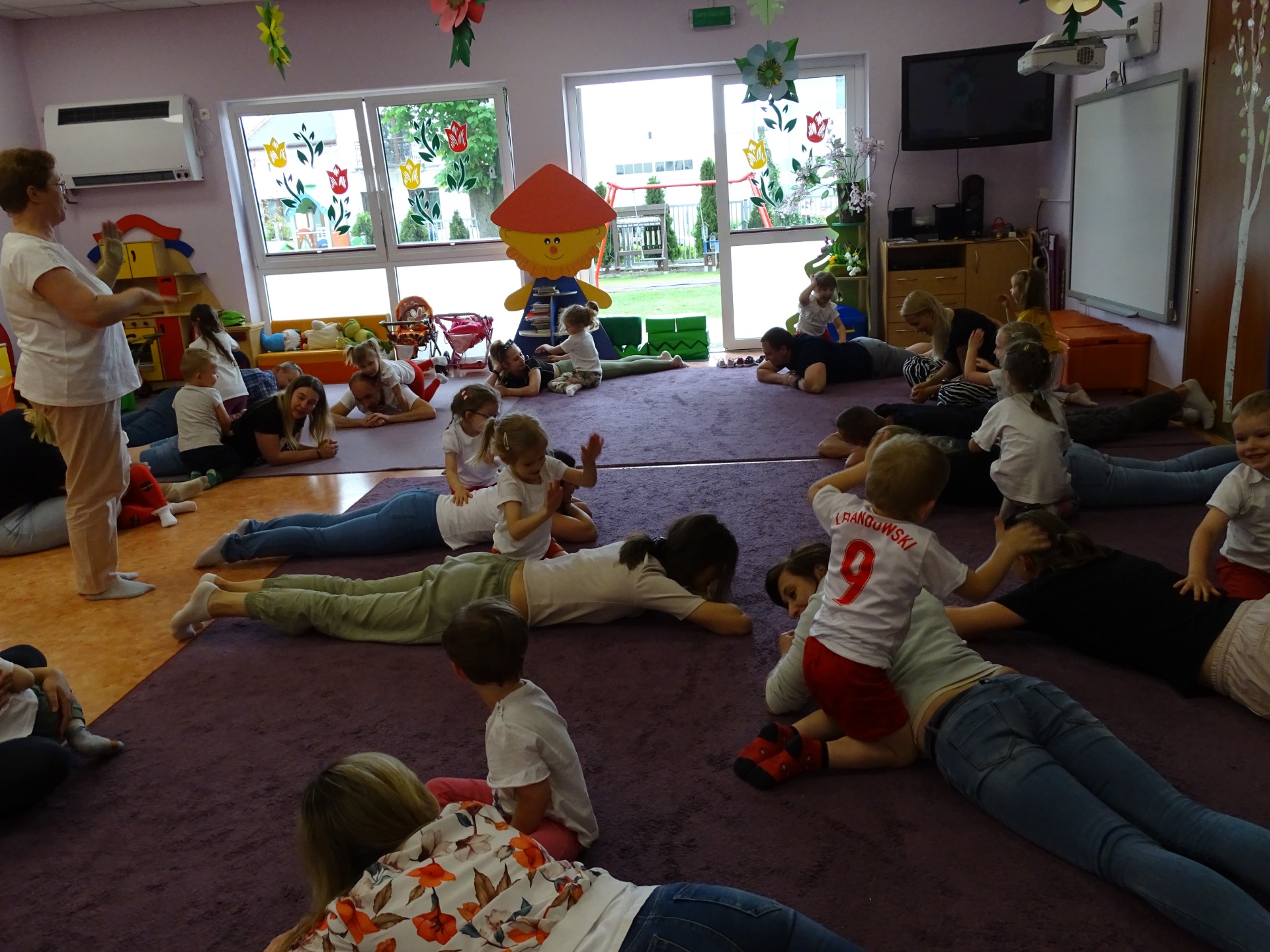 W poniedziałek 6.05.2024 r. w grupie Krasnali odbyły się zajęcia otwarte, podczas których dzieci wraz z rodzicami ćwiczyli z wykorzystaniem metody Weroniki Sherborne. Dzięki wspólnym zabawom ruchowym rodzice mogli wzmocnić swoją więź z dziećmi.