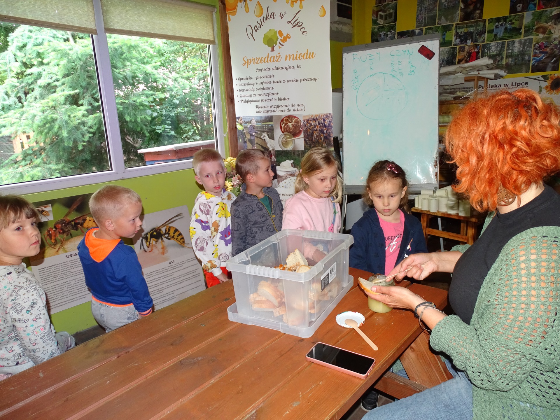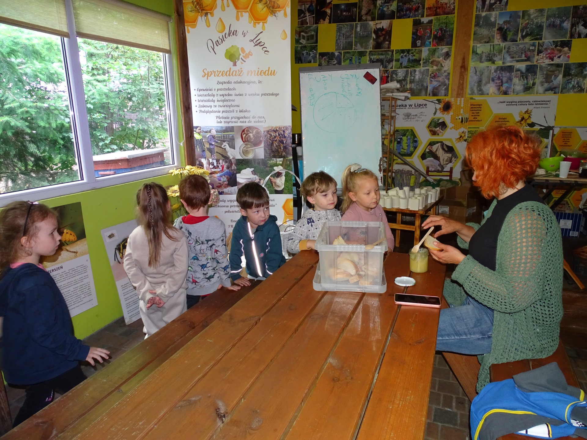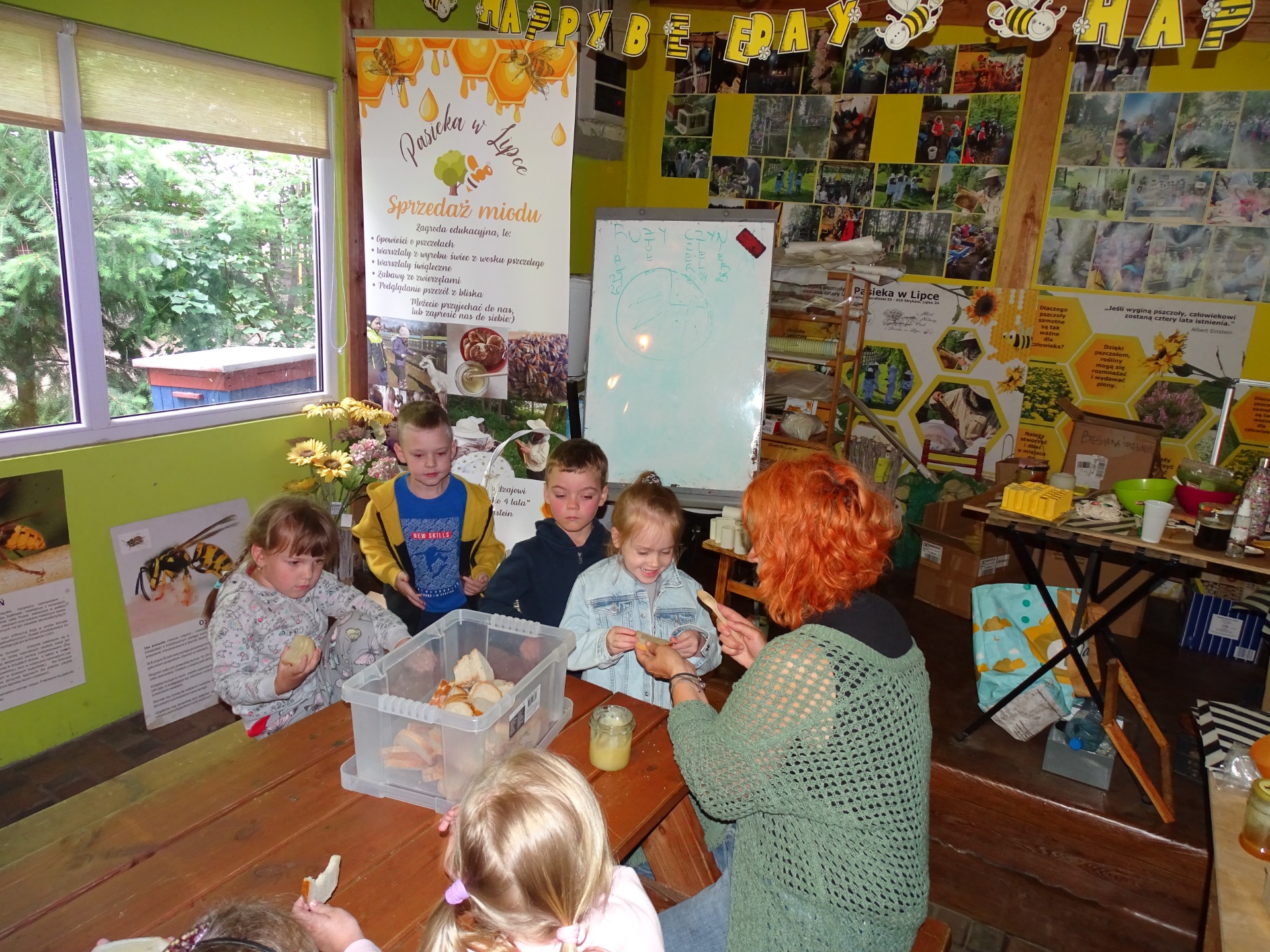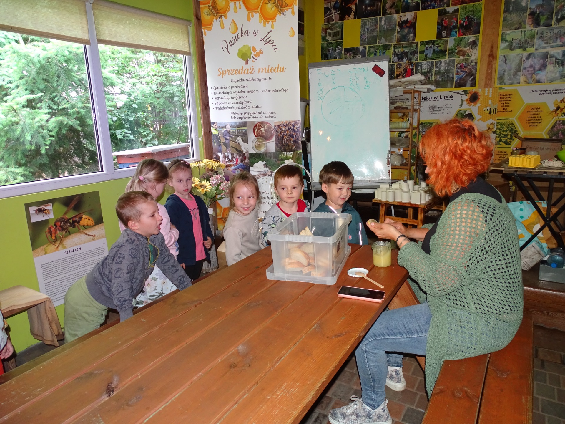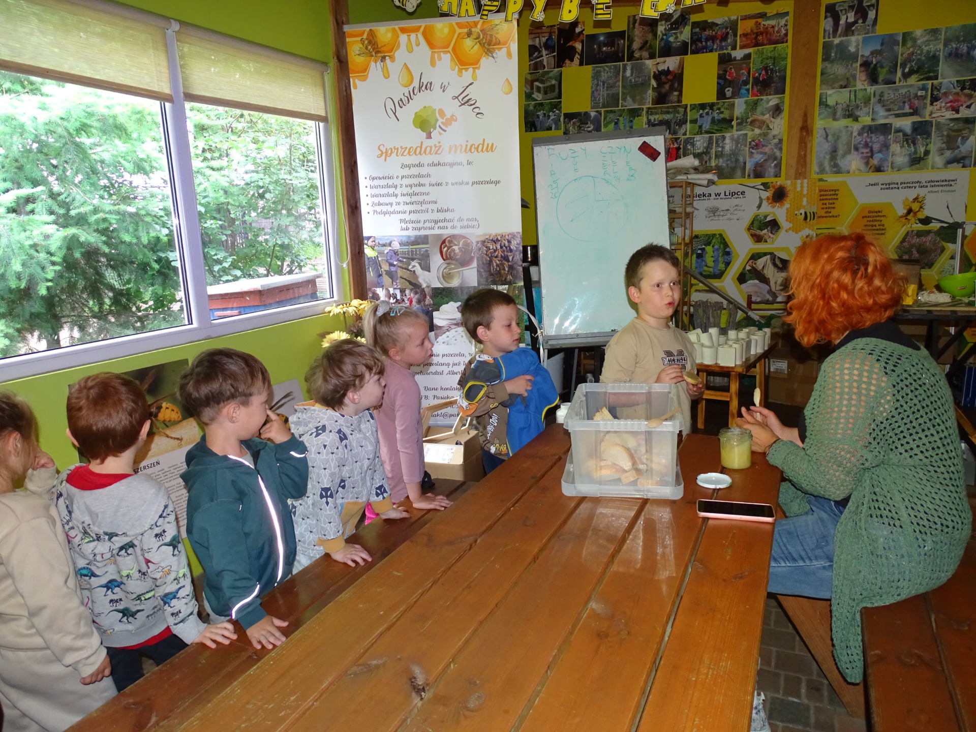 Dnia 12 czerwca grupa Podróżników wybrała się do Pasieki w Lipce na ostatnią wycieczkę w ramach, której odbyło się grupowe pożegnanie kończącego się roku szkolnego. Program wycieczki był nastawiony na świetną zabawę, ale nie zabrakło również walorów edukacyjnych. Mogliśmy obejrzeć jak pracują pszczoły, posmakować miodu, odpocząć w domu do uloterapii, a także nakarmić kózki oraz królika. Na zakończenie wszyscy podróżnicy otrzymali pamiątkowe dyplomy oraz skosztowali pysznej kiełbaski z ogniska.