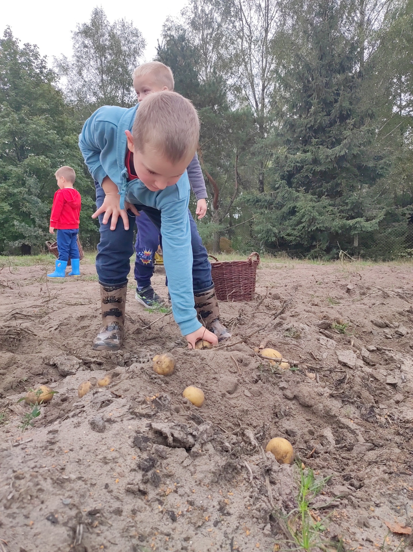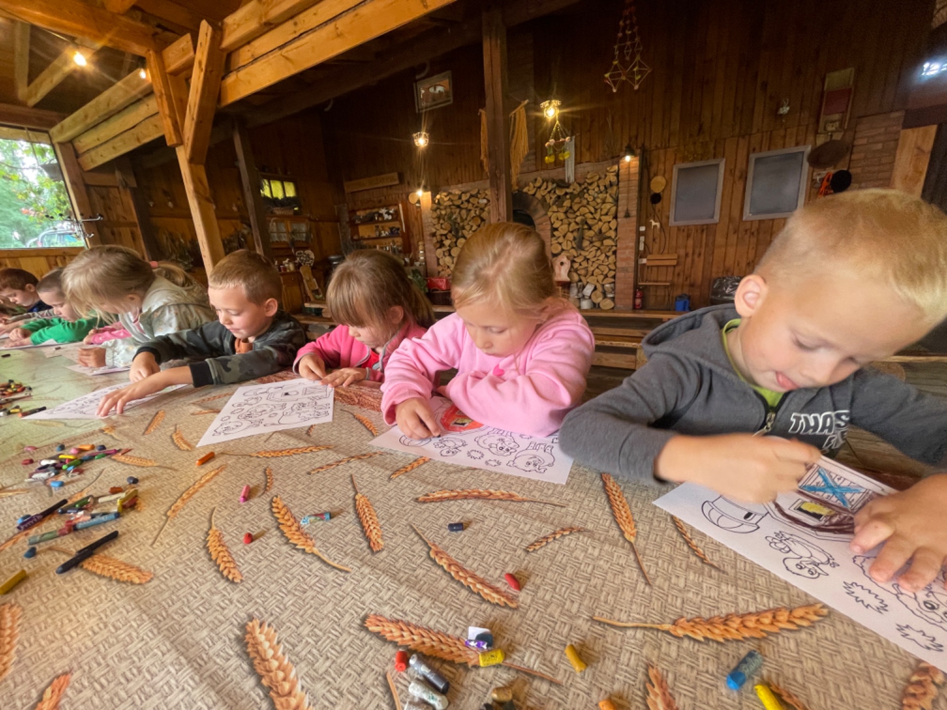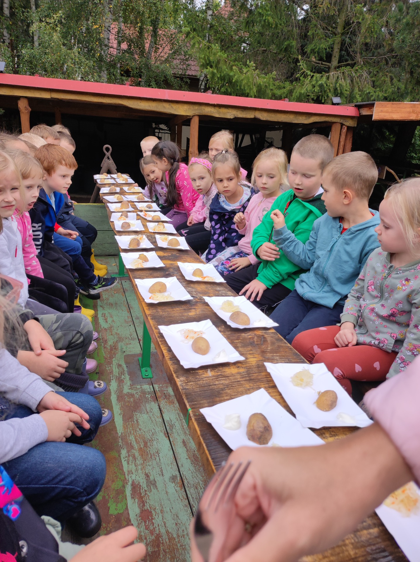 Wykopki i kiszenie kapusty – to dopiero była atrakcja dla Podróżników, którzy wybrali się 26 września do gospodarstwa agroturystycznego w Konarzewie. Gospodyni opowiadała i pokazywała, co się dzieje na wsi jesienią. Rozmawiała o ziemniakach, które doskonale wszyscy znają. Mówiła im o ich pochodzeniu, rodzajach, a potem zabrała na pole, by zobaczyły jak wyglądają wykopki. Dzieci dostały koszyki i wózki, do których same zbierały znalezione w ziemi ziemniaki. Później poznały, jak się szatkuje i jak się kisi kapustę. Mogły same wskoczyć do beczki i ją ugniatać! Na zakończenie dzieci zjadły surówkę z kapusty z marchewką i sosem czosnkowym oraz pieczone w ognisku ziemniaki.