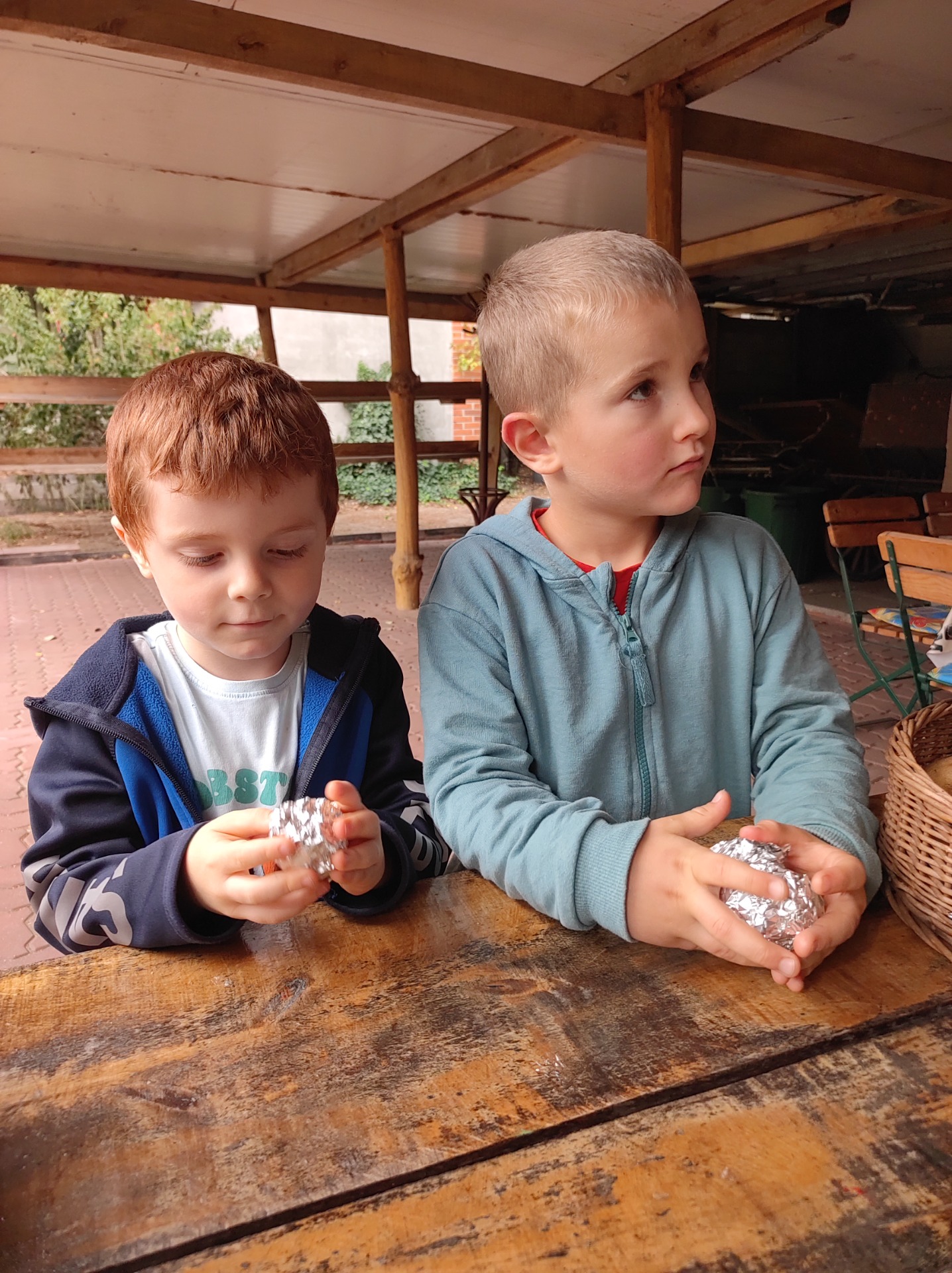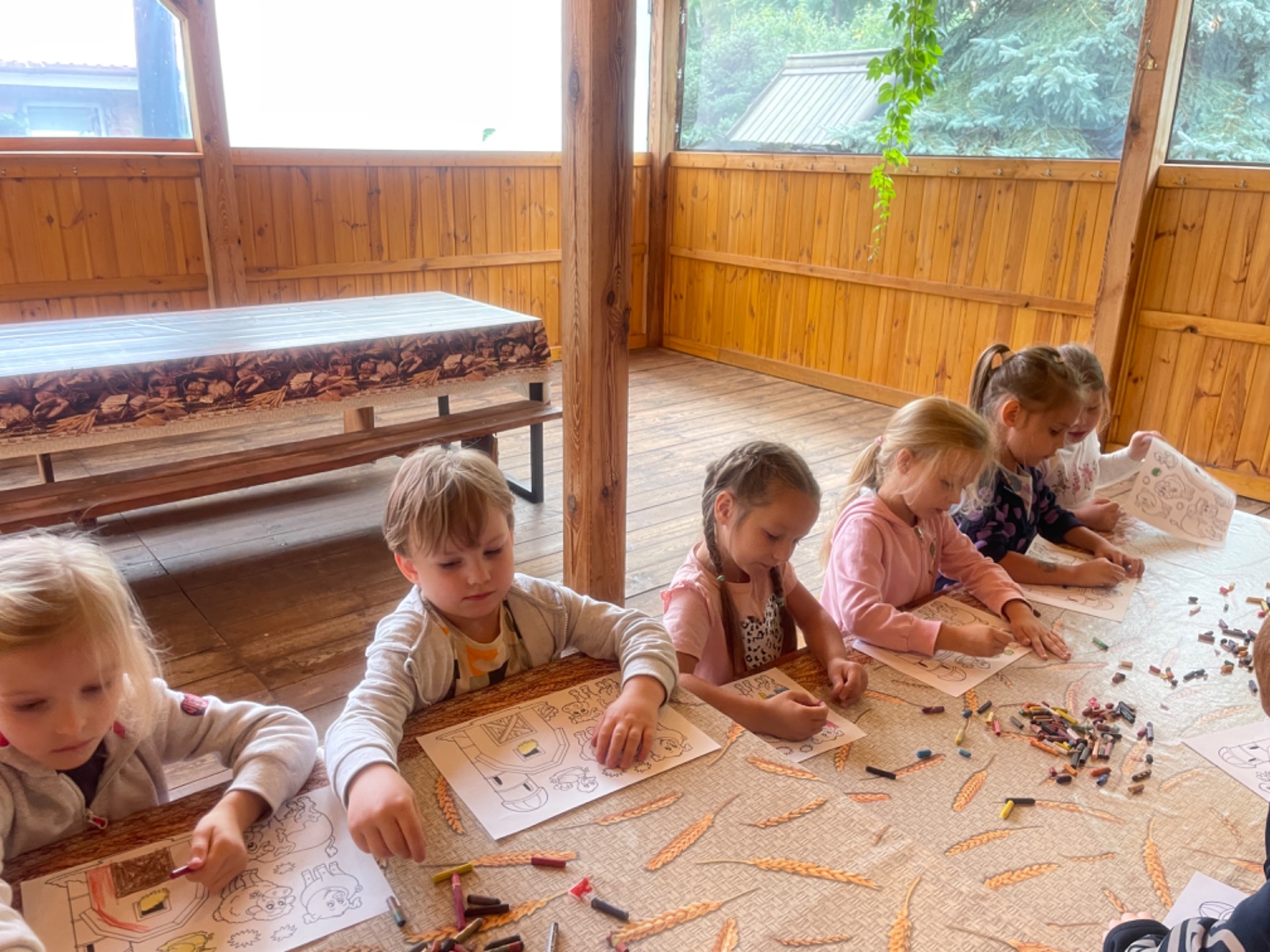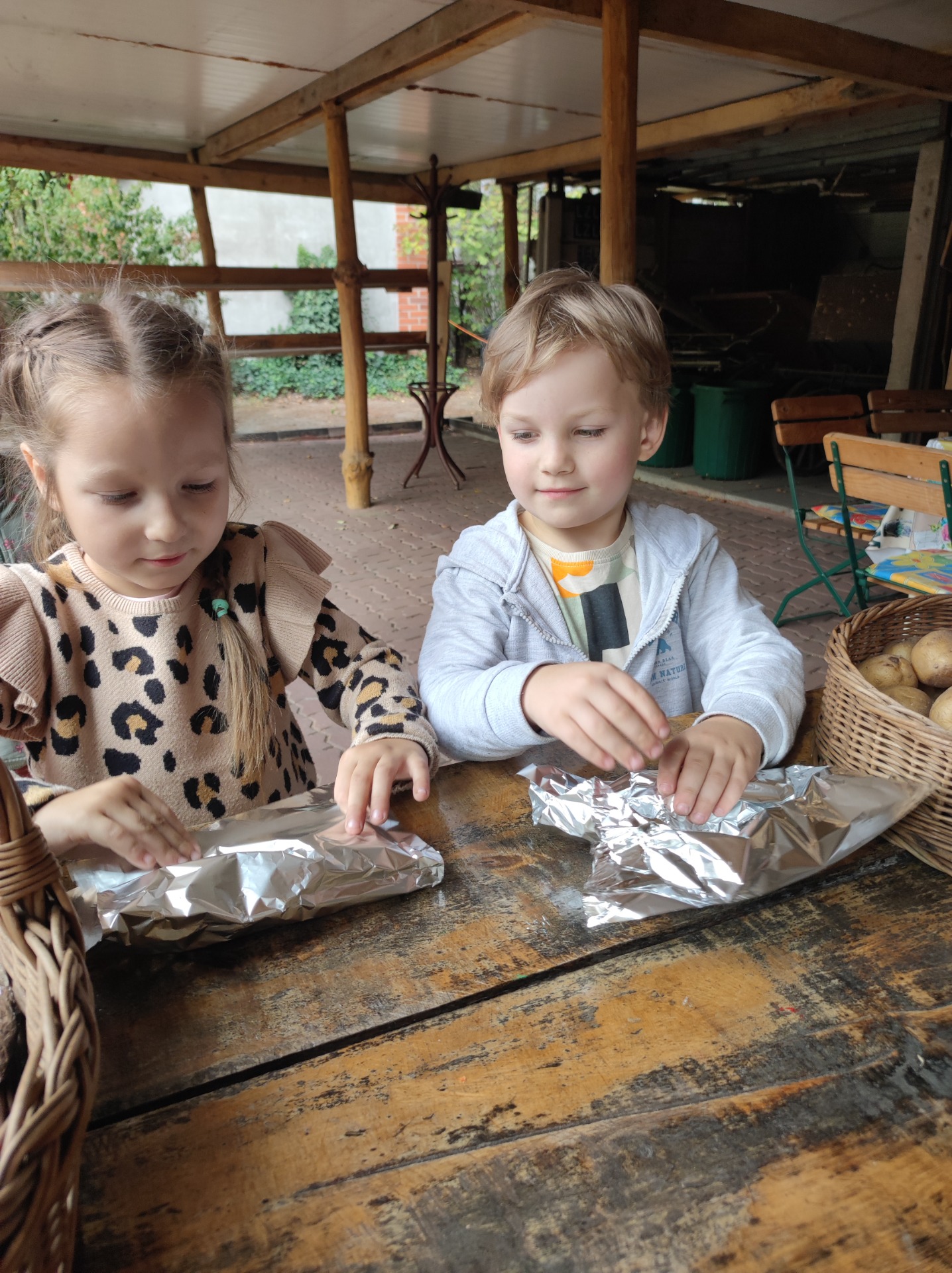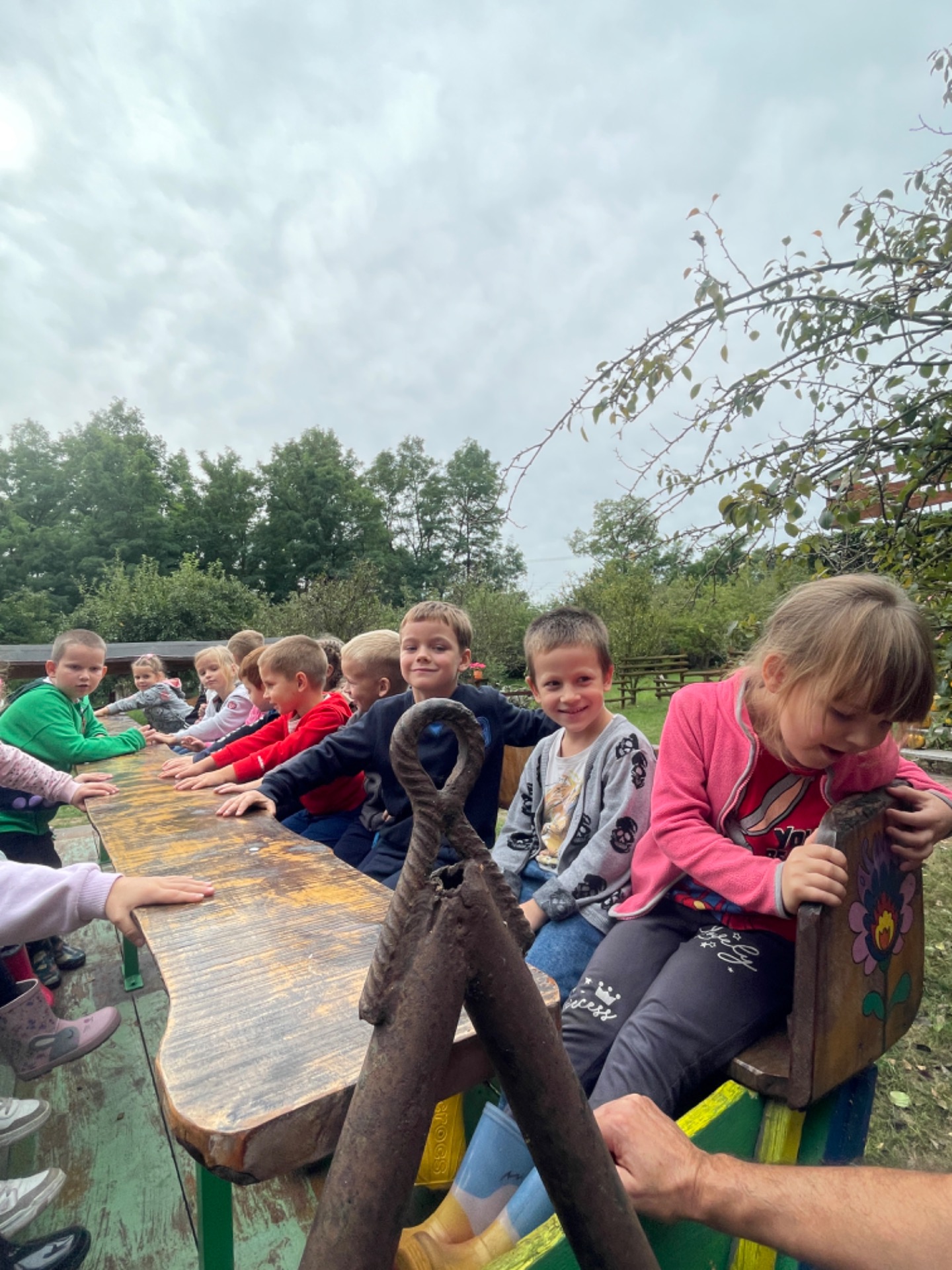 Wykopki i kiszenie kapusty – to dopiero była atrakcja dla Podróżników, którzy wybrali się 26 września do gospodarstwa agroturystycznego w Konarzewie. Gospodyni opowiadała i pokazywała, co się dzieje na wsi jesienią. Rozmawiała o ziemniakach, które doskonale wszyscy znają. Mówiła im o ich pochodzeniu, rodzajach, a potem zabrała na pole, by zobaczyły jak wyglądają wykopki. Dzieci dostały koszyki i wózki, do których same zbierały znalezione w ziemi ziemniaki. Później poznały, jak się szatkuje i jak się kisi kapustę. Mogły same wskoczyć do beczki i ją ugniatać! Na zakończenie dzieci zjadły surówkę z kapusty z marchewką i sosem czosnkowym oraz pieczone w ognisku ziemniaki.