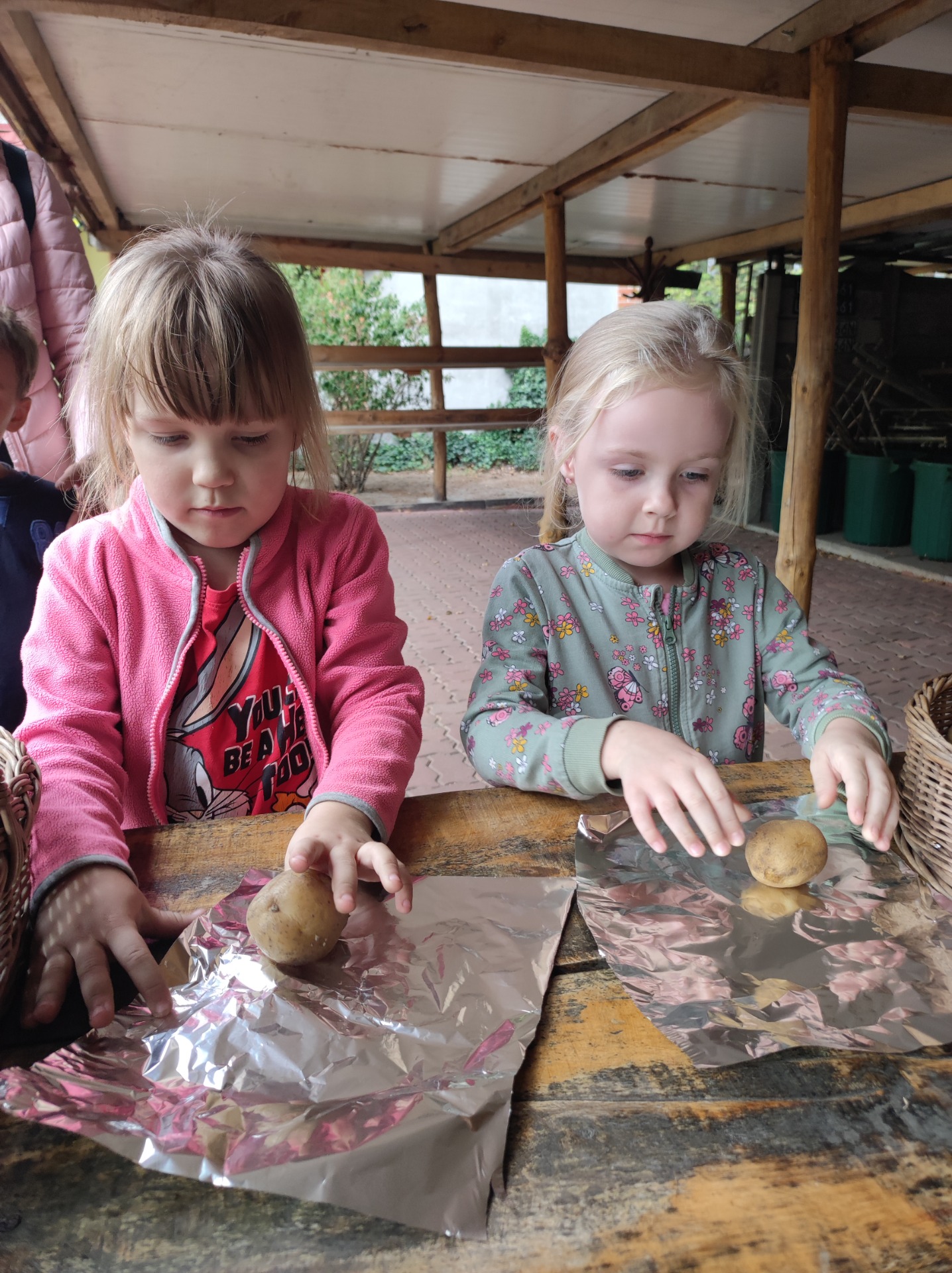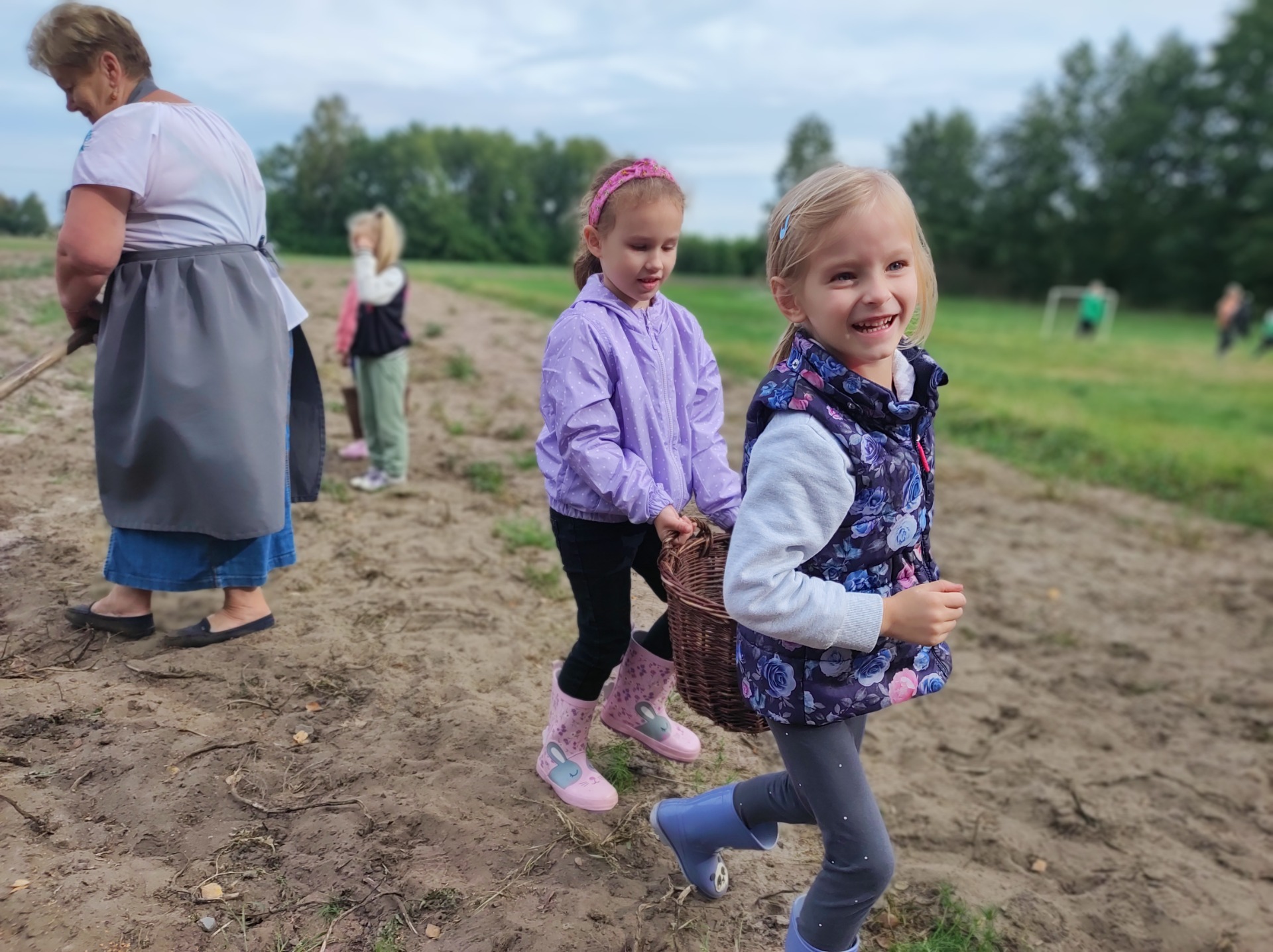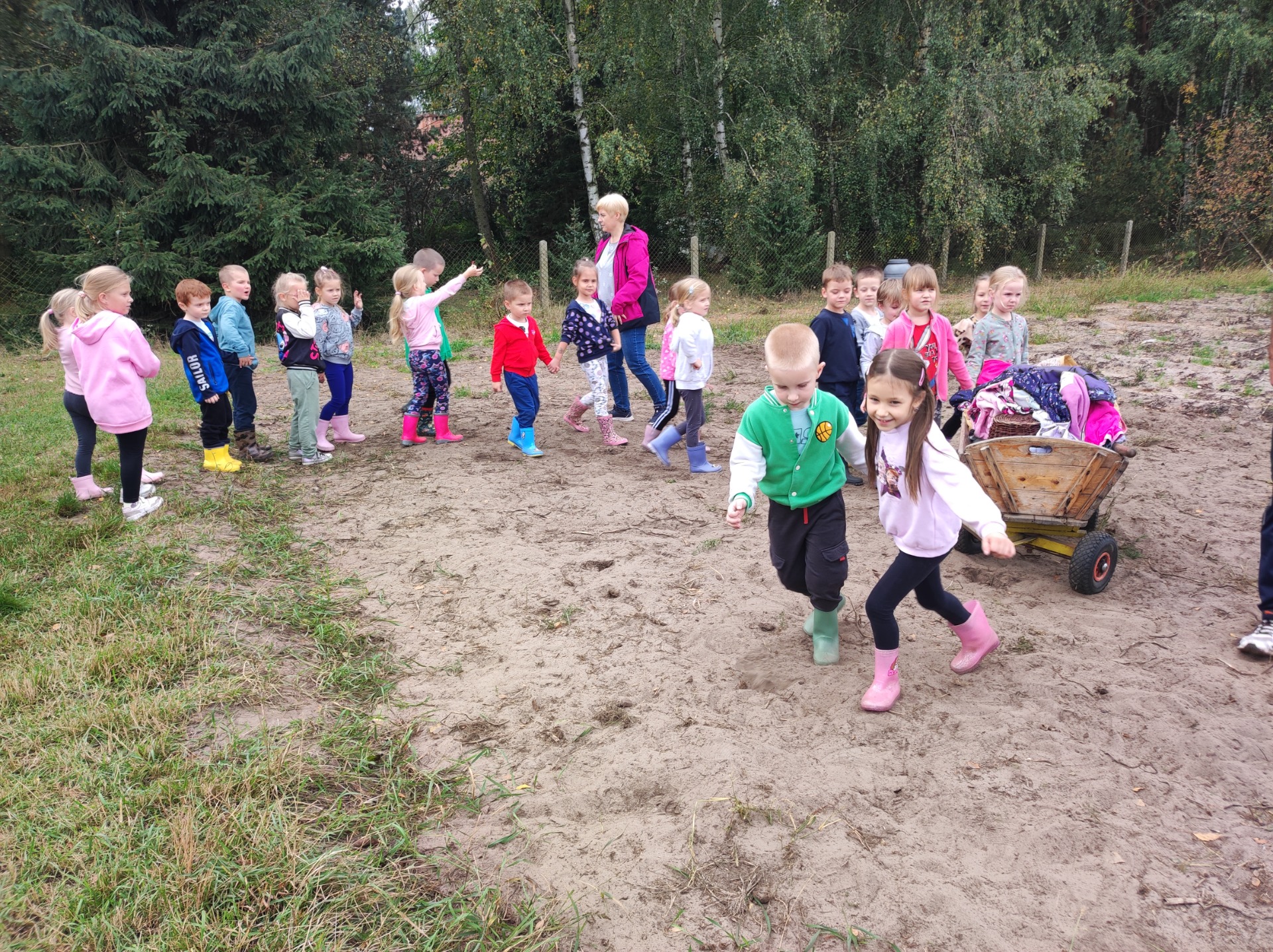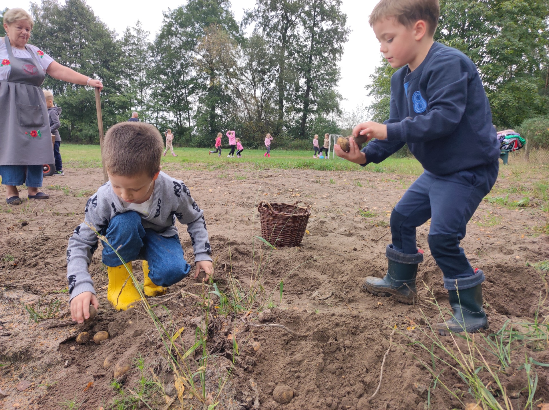 Wykopki i kiszenie kapusty – to dopiero była atrakcja dla Podróżników, którzy wybrali się 26 września do gospodarstwa agroturystycznego w Konarzewie. Gospodyni opowiadała i pokazywała, co się dzieje na wsi jesienią. Rozmawiała o ziemniakach, które doskonale wszyscy znają. Mówiła im o ich pochodzeniu, rodzajach, a potem zabrała na pole, by zobaczyły jak wyglądają wykopki. Dzieci dostały koszyki i wózki, do których same zbierały znalezione w ziemi ziemniaki. Później poznały, jak się szatkuje i jak się kisi kapustę. Mogły same wskoczyć do beczki i ją ugniatać! Na zakończenie dzieci zjadły surówkę z kapusty z marchewką i sosem czosnkowym oraz pieczone w ognisku ziemniaki.