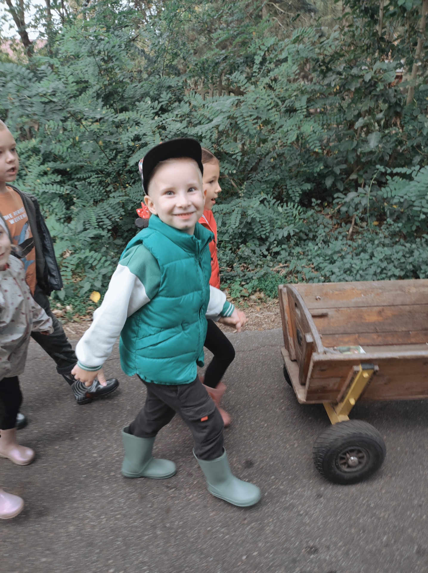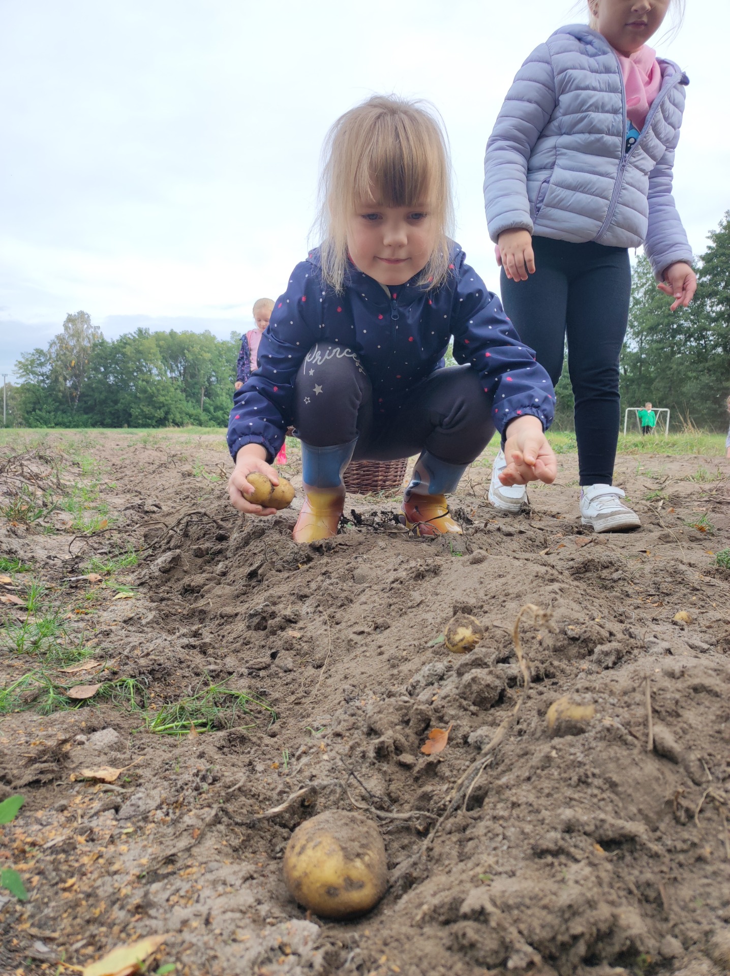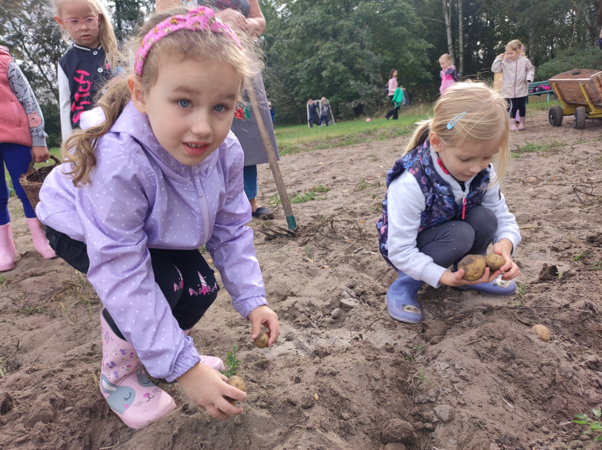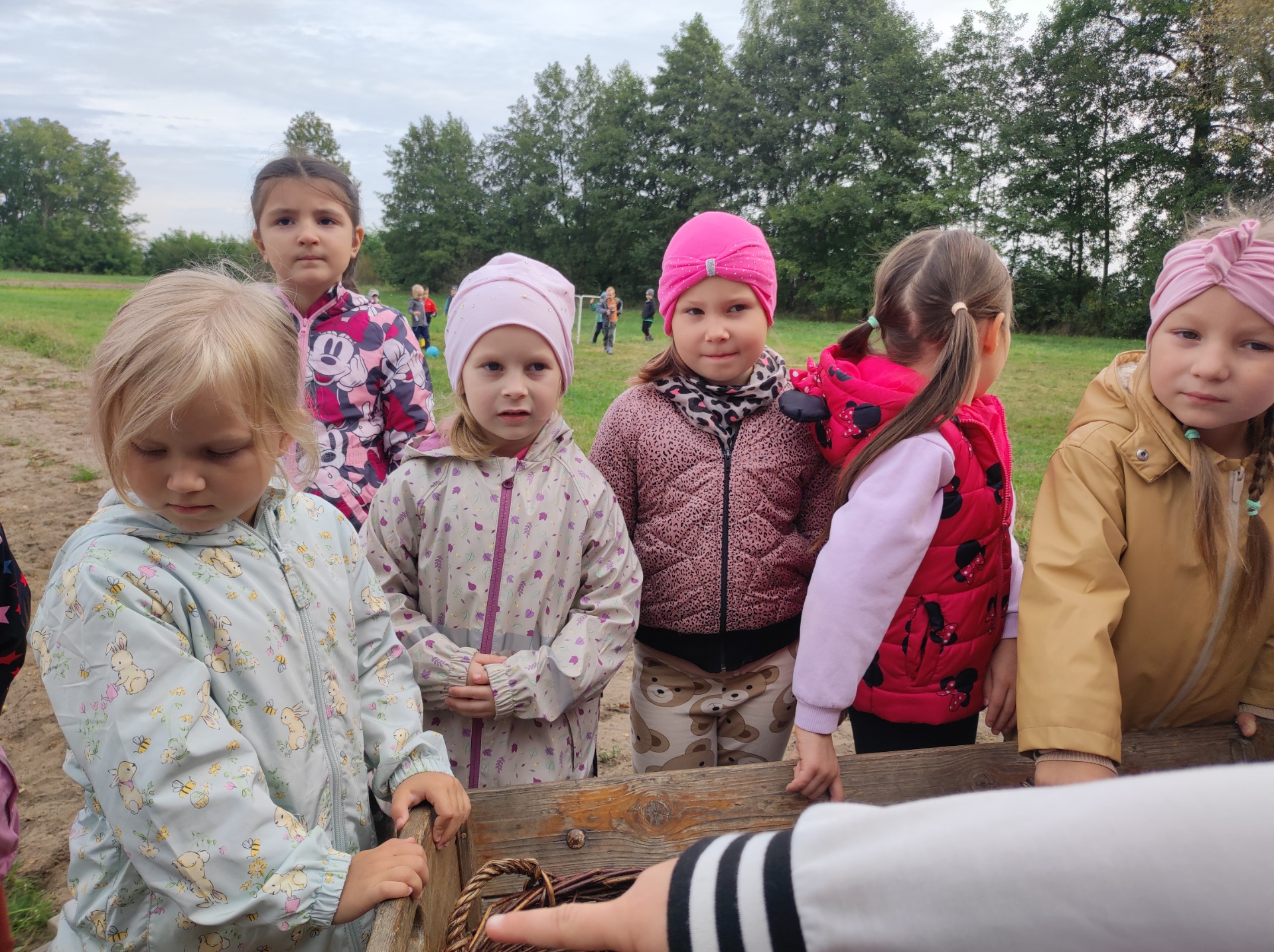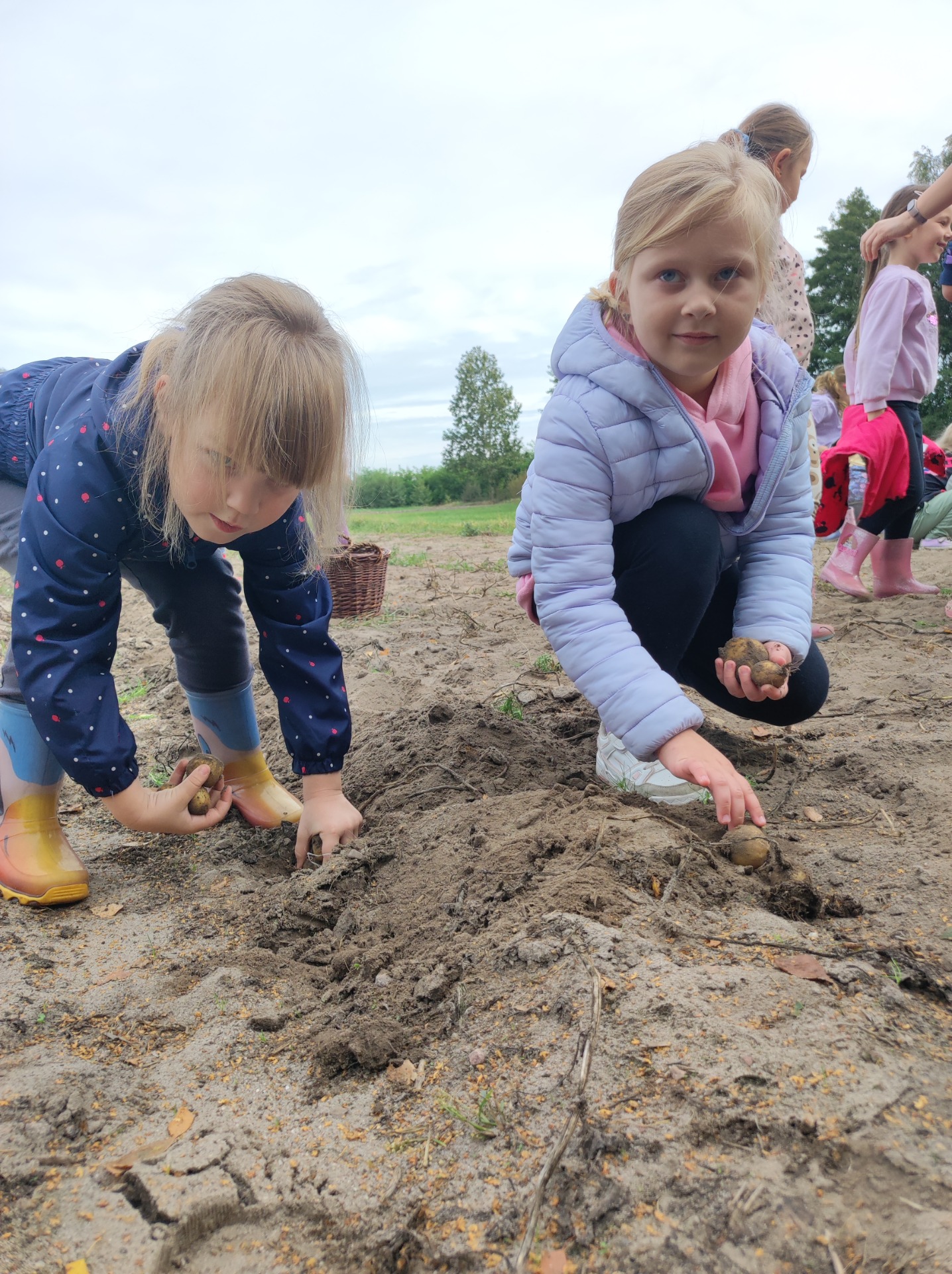 Wykopki i kiszenie kapusty – to dopiero była atrakcja dla Podróżników, którzy wybrali się 26 września do gospodarstwa agroturystycznego w Konarzewie. Gospodyni opowiadała i pokazywała, co się dzieje na wsi jesienią. Rozmawiała o ziemniakach, które doskonale wszyscy znają. Mówiła im o ich pochodzeniu, rodzajach, a potem zabrała na pole, by zobaczyły jak wyglądają wykopki. Dzieci dostały koszyki i wózki, do których same zbierały znalezione w ziemi ziemniaki. Później poznały, jak się szatkuje i jak się kisi kapustę. Mogły same wskoczyć do beczki i ją ugniatać! Na zakończenie dzieci zjadły surówkę z kapusty z marchewką i sosem czosnkowym oraz pieczone w ognisku ziemniaki.
