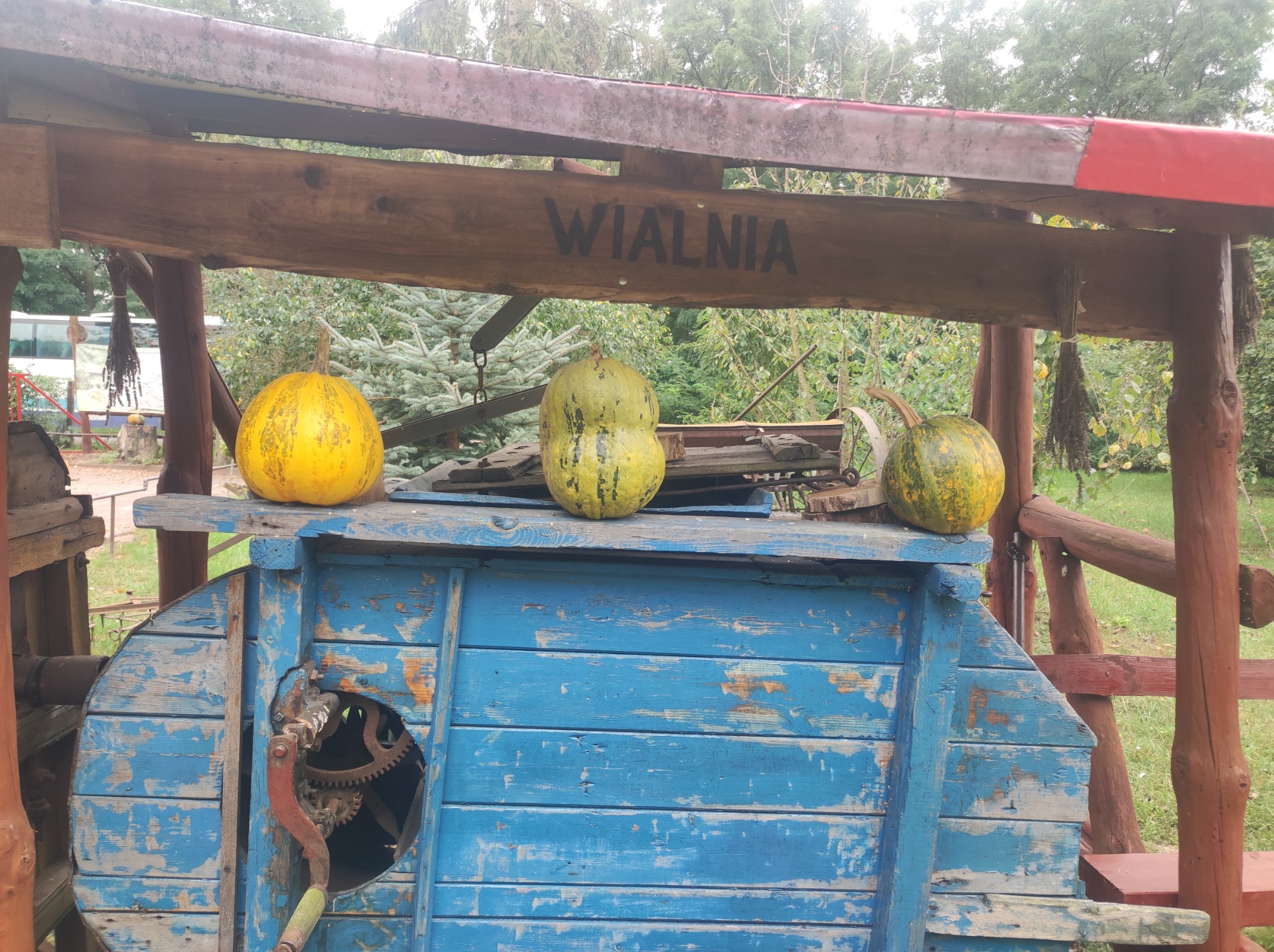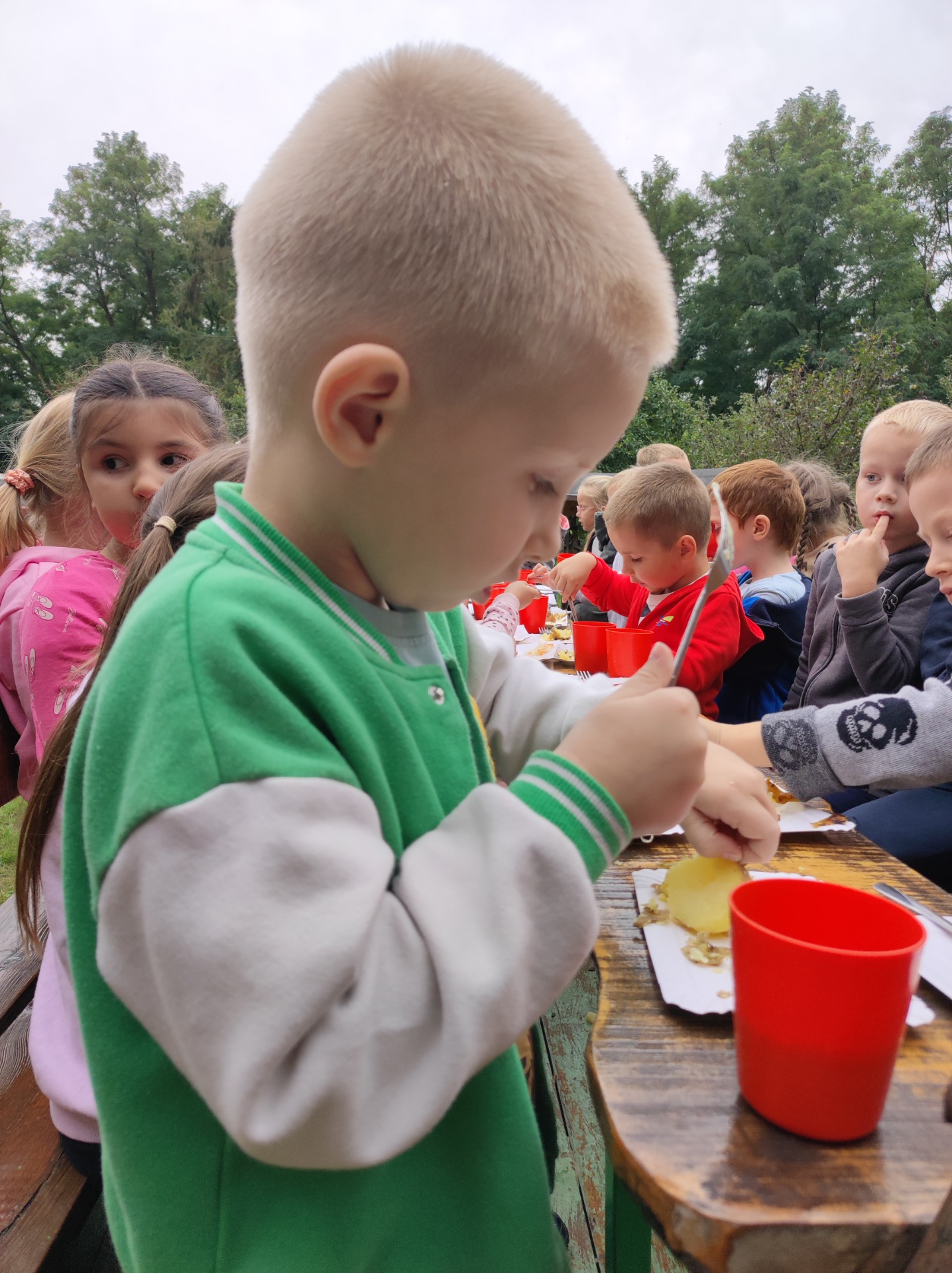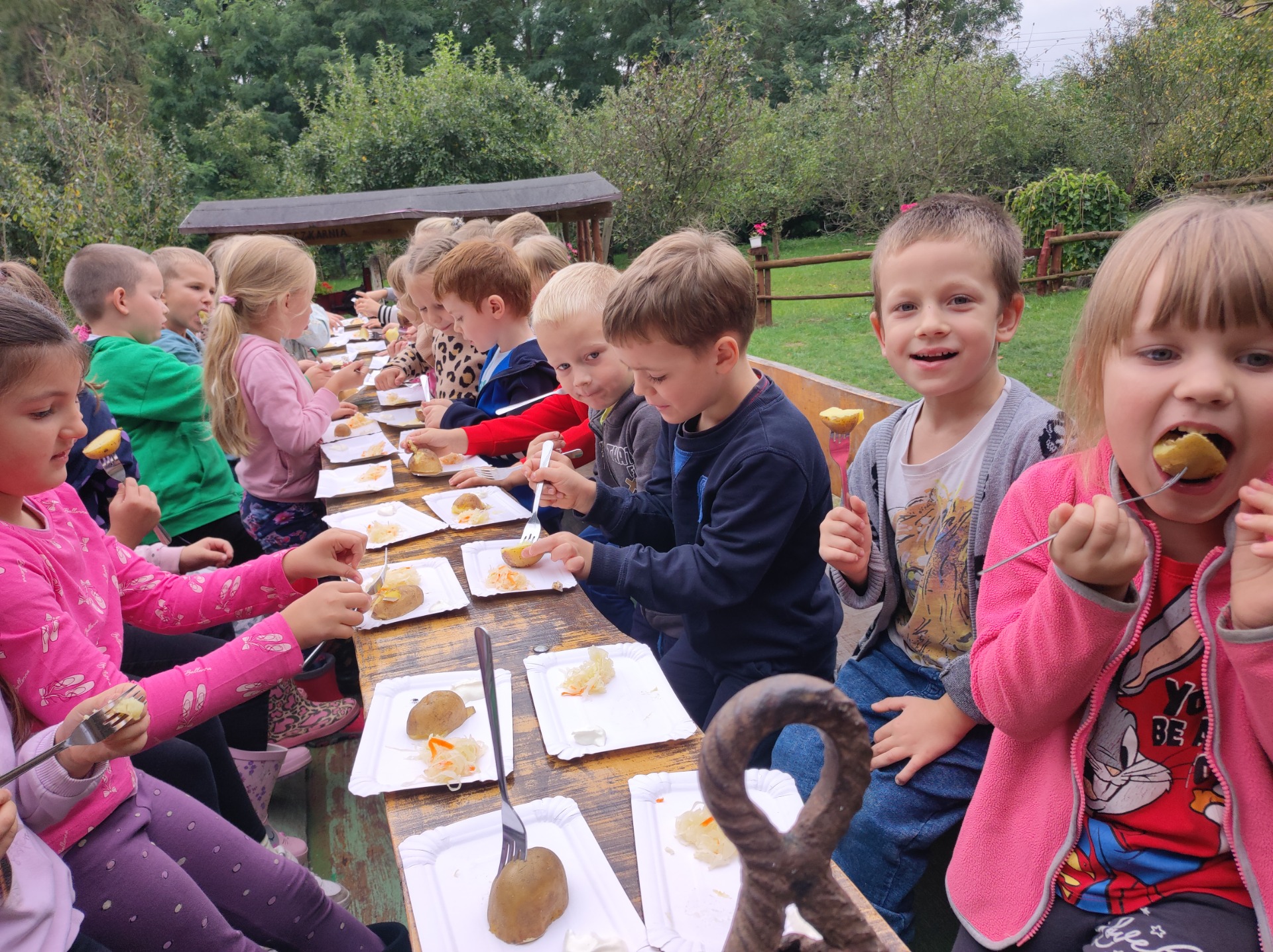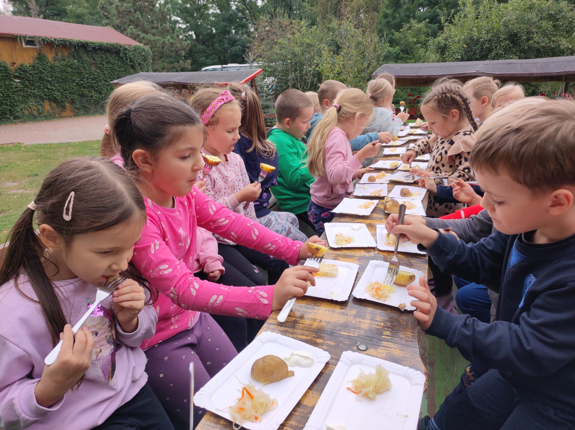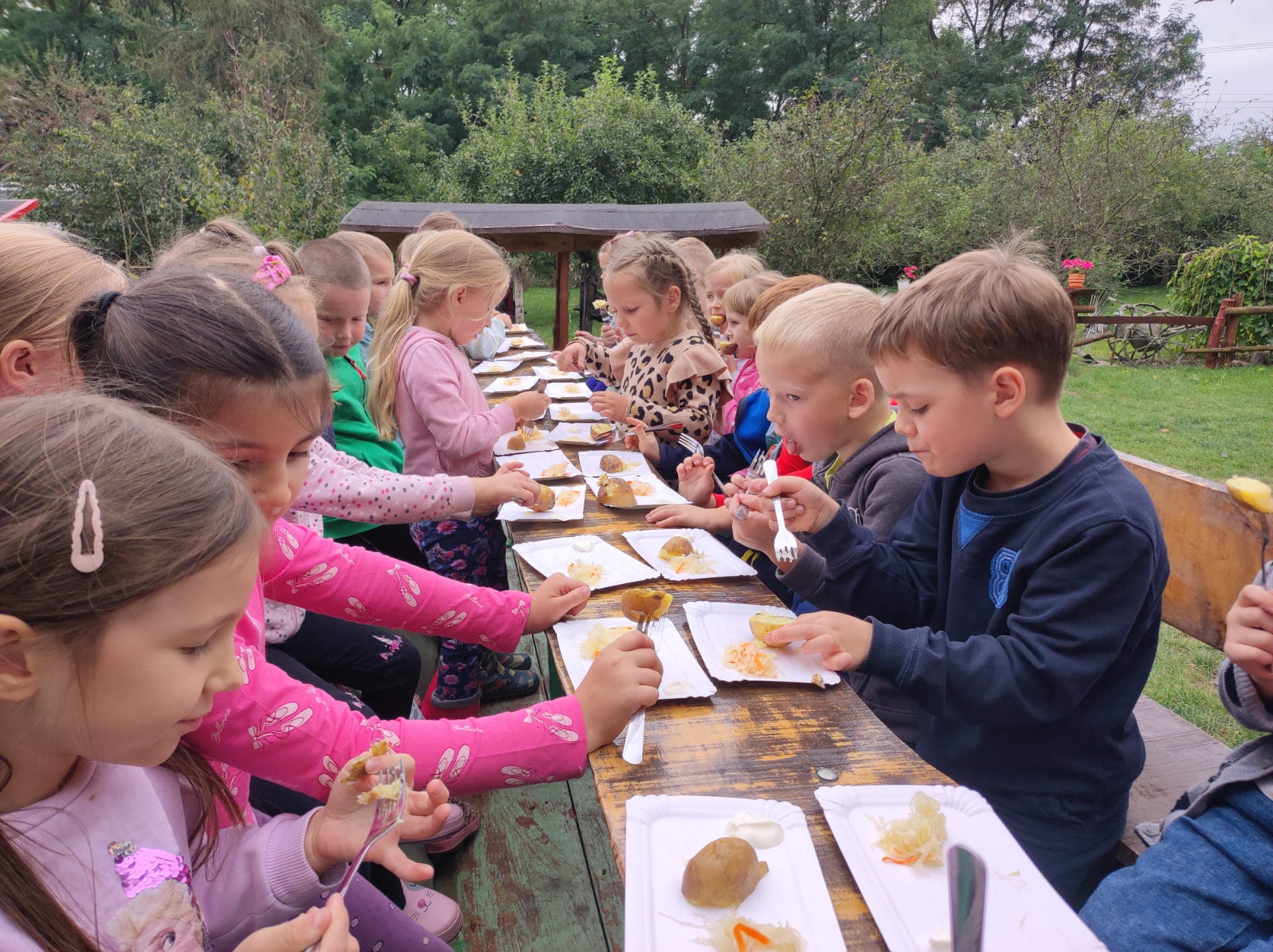 Wykopki i kiszenie kapusty – to dopiero była atrakcja dla Podróżników, którzy wybrali się 26 września do gospodarstwa agroturystycznego w Konarzewie. Gospodyni opowiadała i pokazywała, co się dzieje na wsi jesienią. Rozmawiała o ziemniakach, które doskonale wszyscy znają. Mówiła im o ich pochodzeniu, rodzajach, a potem zabrała na pole, by zobaczyły jak wyglądają wykopki. Dzieci dostały koszyki i wózki, do których same zbierały znalezione w ziemi ziemniaki. Później poznały, jak się szatkuje i jak się kisi kapustę. Mogły same wskoczyć do beczki i ją ugniatać! Na zakończenie dzieci zjadły surówkę z kapusty z marchewką i sosem czosnkowym oraz pieczone w ognisku ziemniaki.