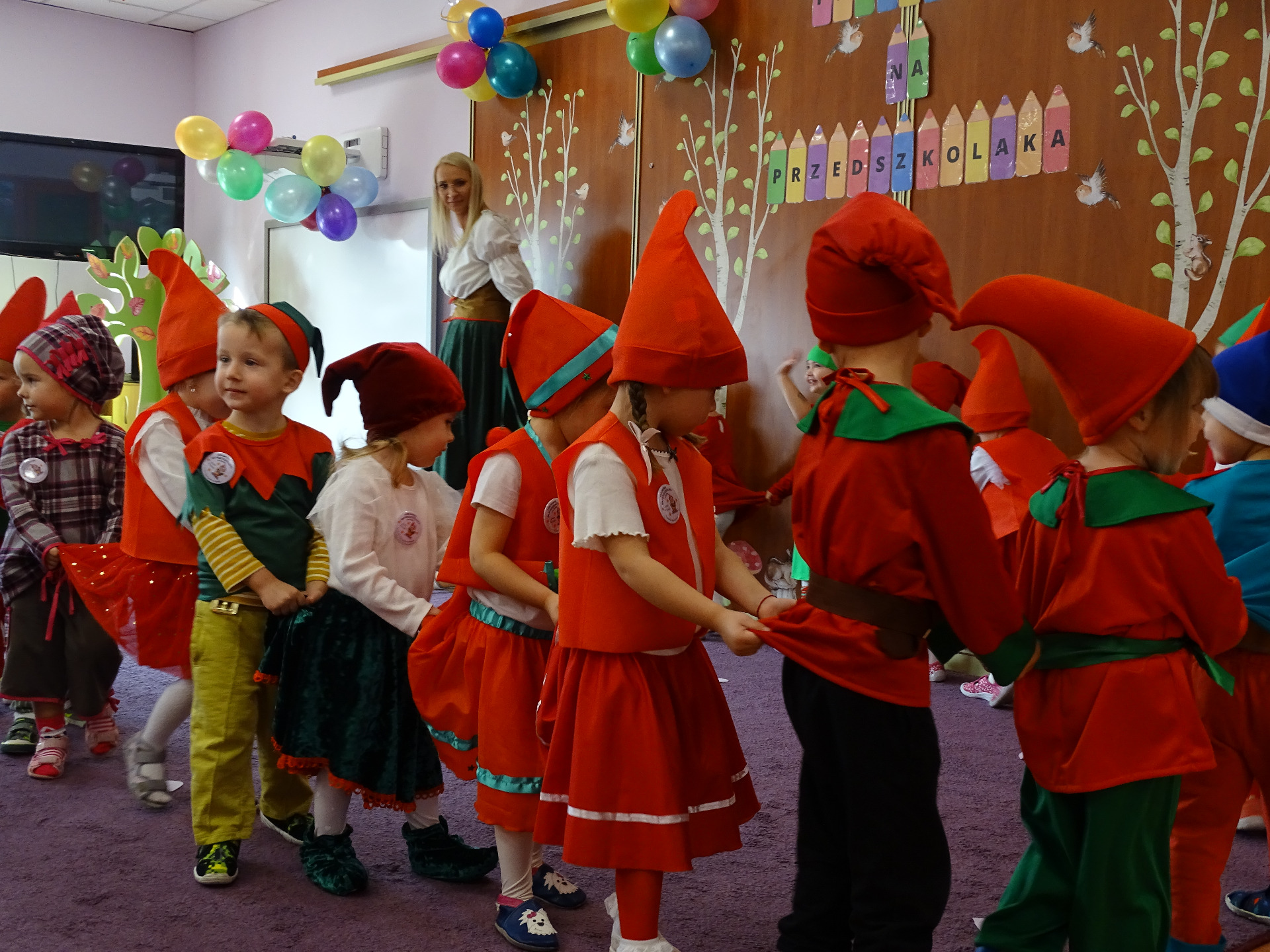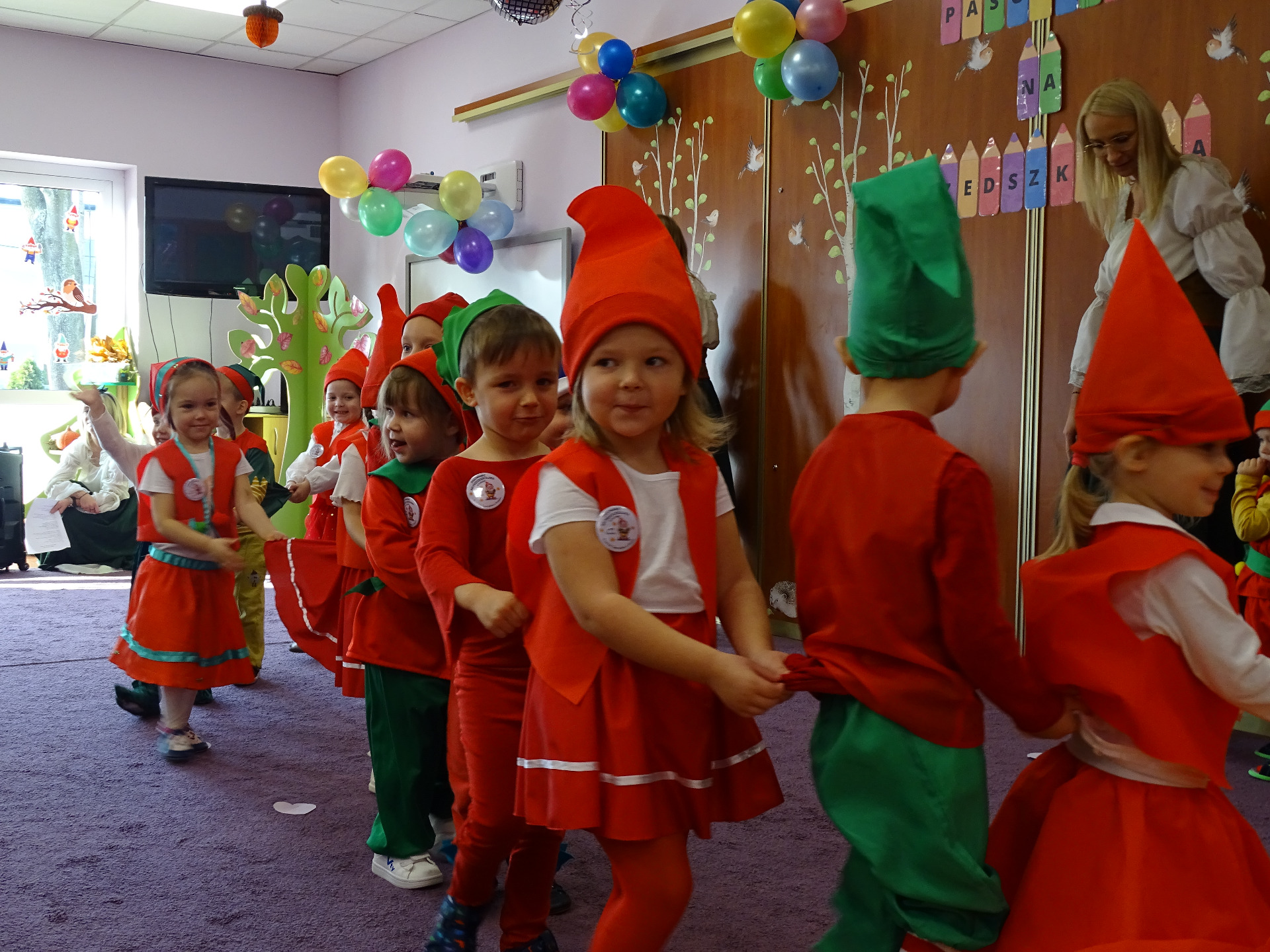 Pasowanie na Krasnala to wyjątkowa uroczystość, która w naszym Przedszkolu odbyła się 6 listopada. Od samego rana trwały przygotowania. Mali artyści zaprezentowali przygotowane piosenki, tańce oraz wierszyki. Dla większości był to pierwszy, bardzo ważny występ. Po części artystycznej dzieci obiecały: zgodnie bawić się w przedszkolu, przychodzić każdego dnia z uśmiechem, być dzielnym przedszkolakiem. Po złożonej obietnicy, pani dyrektor dokonała uroczystego pasowania każdego dziecka na przedszkolaka. Na pamiątkę tego ważnego wydarzenia każdy przedszkolak otrzymał upominek oraz dyplom pasowania. Dla przedszkolaków było to wielkie przeżycie, a dla wychowawców oraz rodziców powód do dumy i zadowolenia ze swoich pociech. Uroczystość uprzyjemnił słodki poczęstunek przygotowany przez Rodziców.