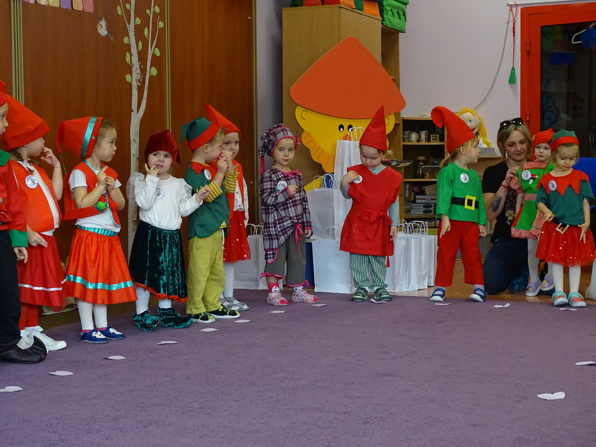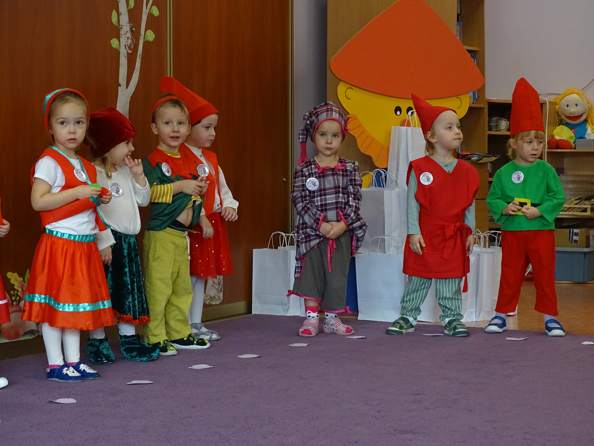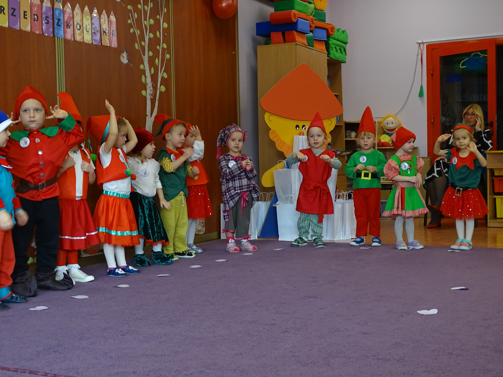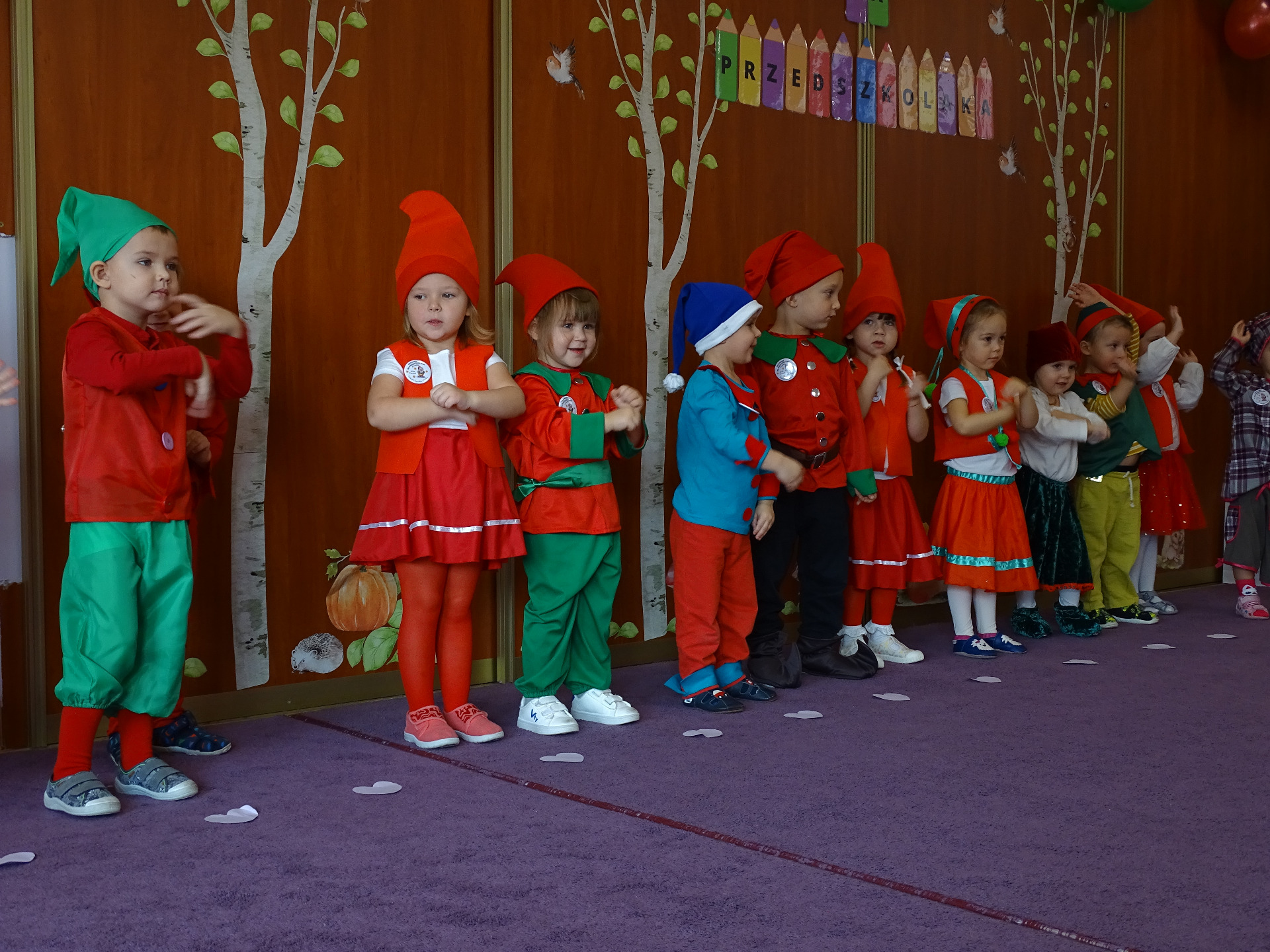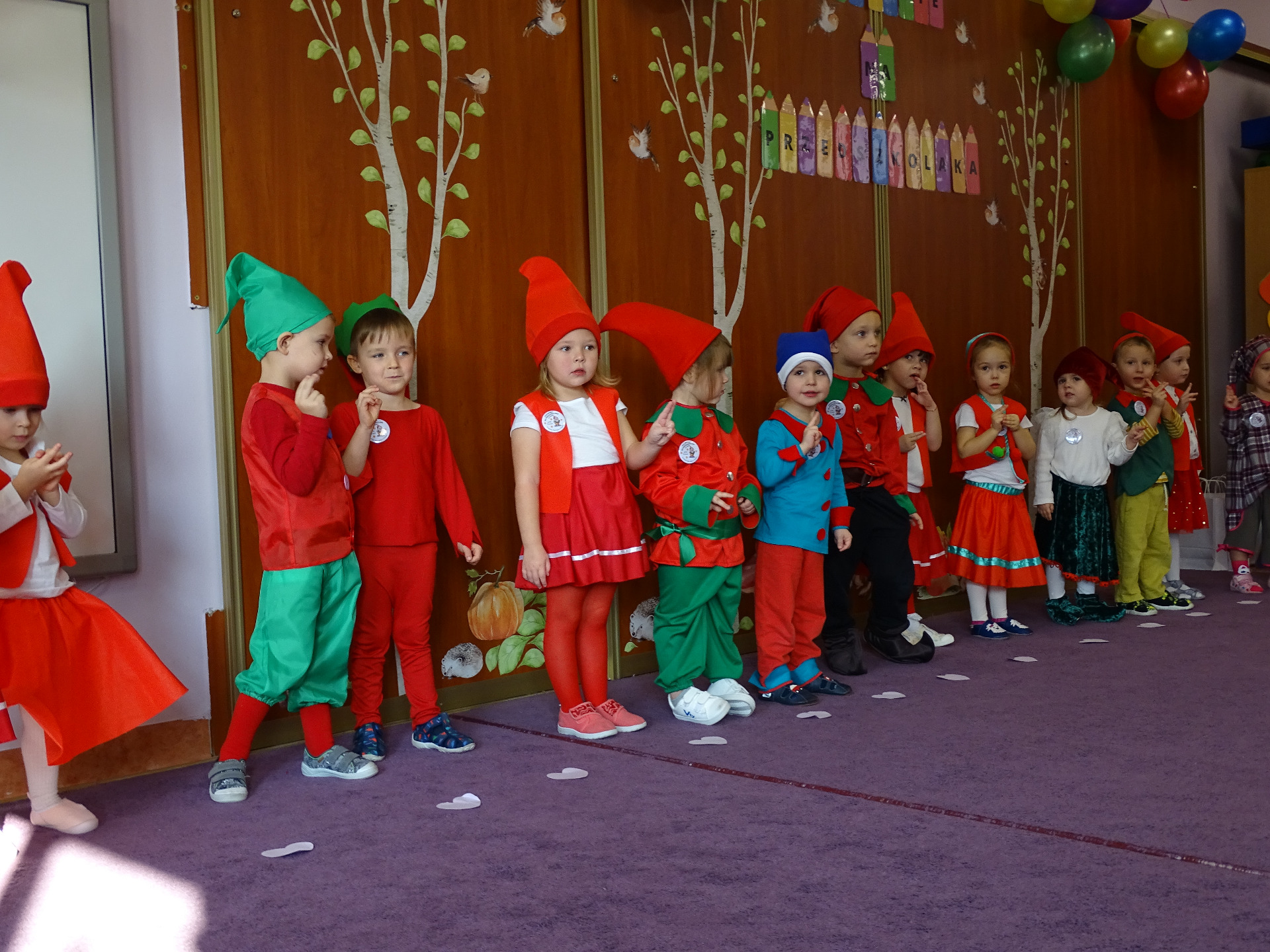 Pasowanie na Krasnala to wyjątkowa uroczystość, która w naszym Przedszkolu odbyła się 6 listopada. Od samego rana trwały przygotowania. Mali artyści zaprezentowali przygotowane piosenki, tańce oraz wierszyki. Dla większości był to pierwszy, bardzo ważny występ. Po części artystycznej dzieci obiecały: zgodnie bawić się w przedszkolu, przychodzić każdego dnia z uśmiechem, być dzielnym przedszkolakiem. Po złożonej obietnicy, pani dyrektor dokonała uroczystego pasowania każdego dziecka na przedszkolaka. Na pamiątkę tego ważnego wydarzenia każdy przedszkolak otrzymał upominek oraz dyplom pasowania. Dla przedszkolaków było to wielkie przeżycie, a dla wychowawców oraz rodziców powód do dumy i zadowolenia ze swoich pociech. Uroczystość uprzyjemnił słodki poczęstunek przygotowany przez Rodziców.
