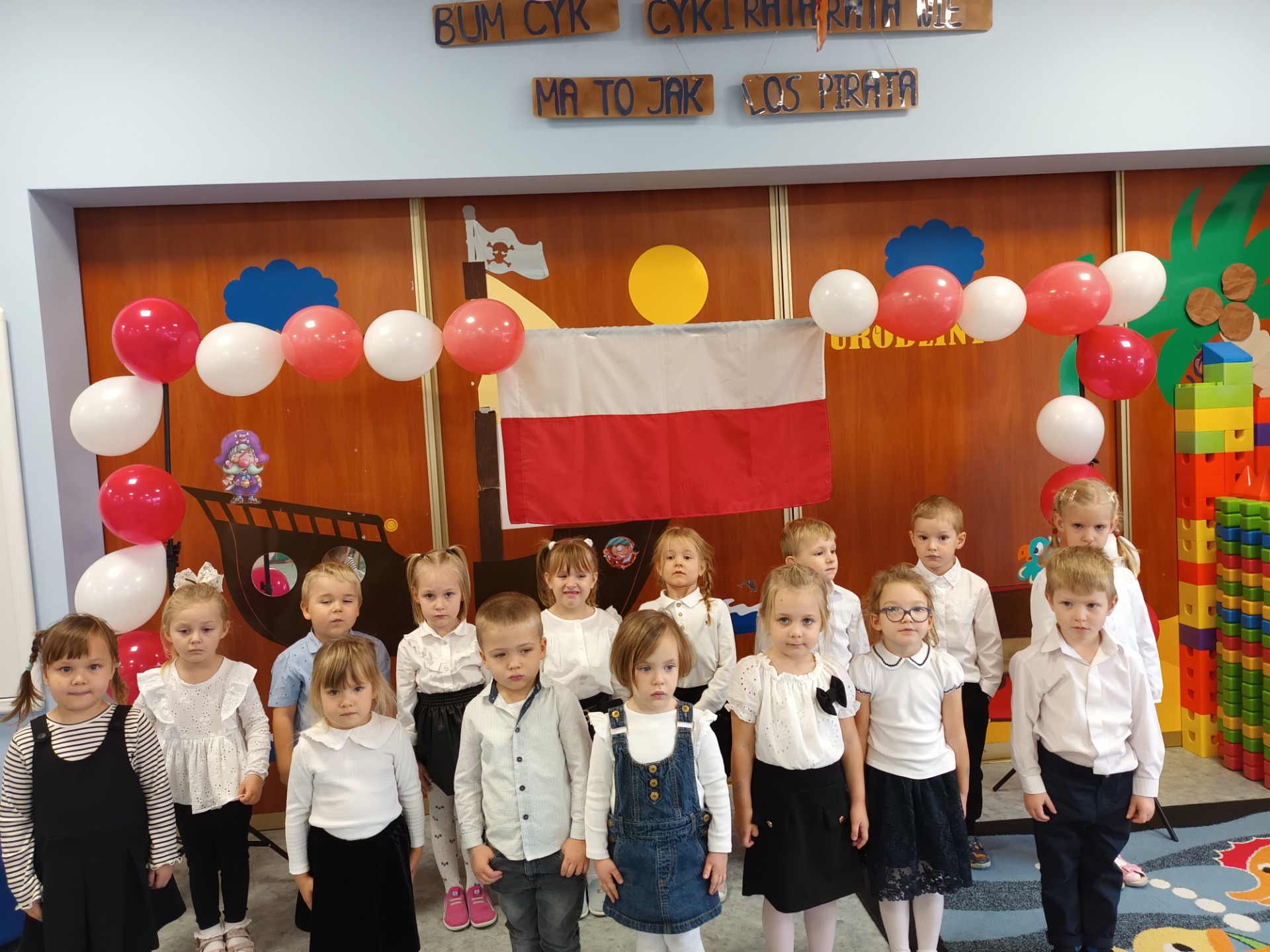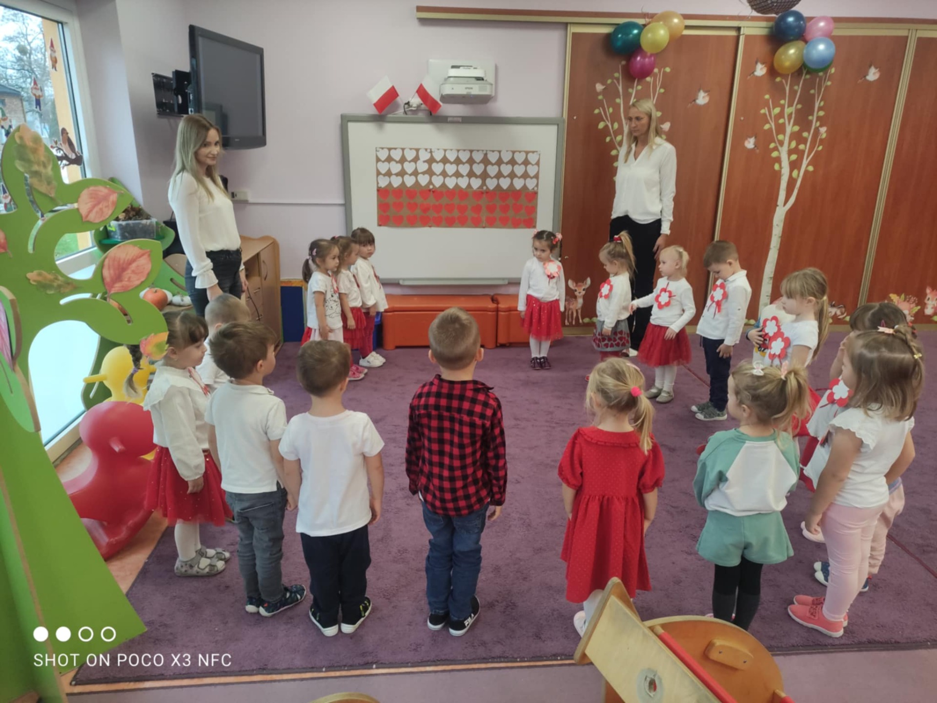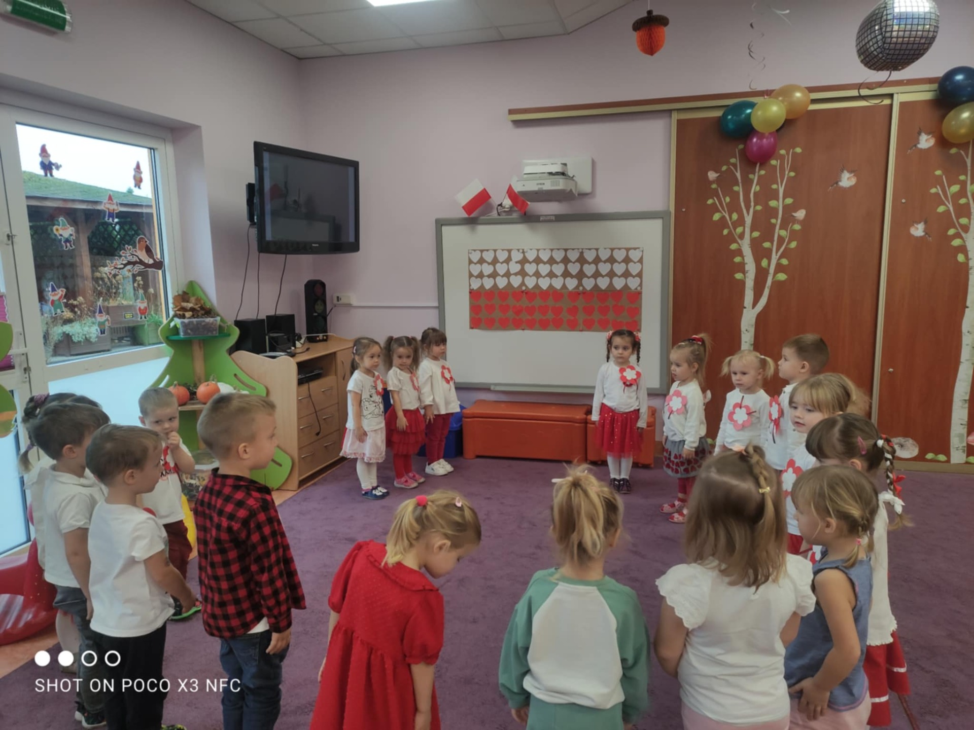 Z okazji Święta Niepodległości dzieci z naszego przedszkola wzięły udział w ogólnopolskiej akcji "Szkoła do hymnu". W piątek, 8.11.2024 r. dokładnie o godzinie 11.11 wszystkie przedszkolaki uroczyście odśpiewały hymn Polski.