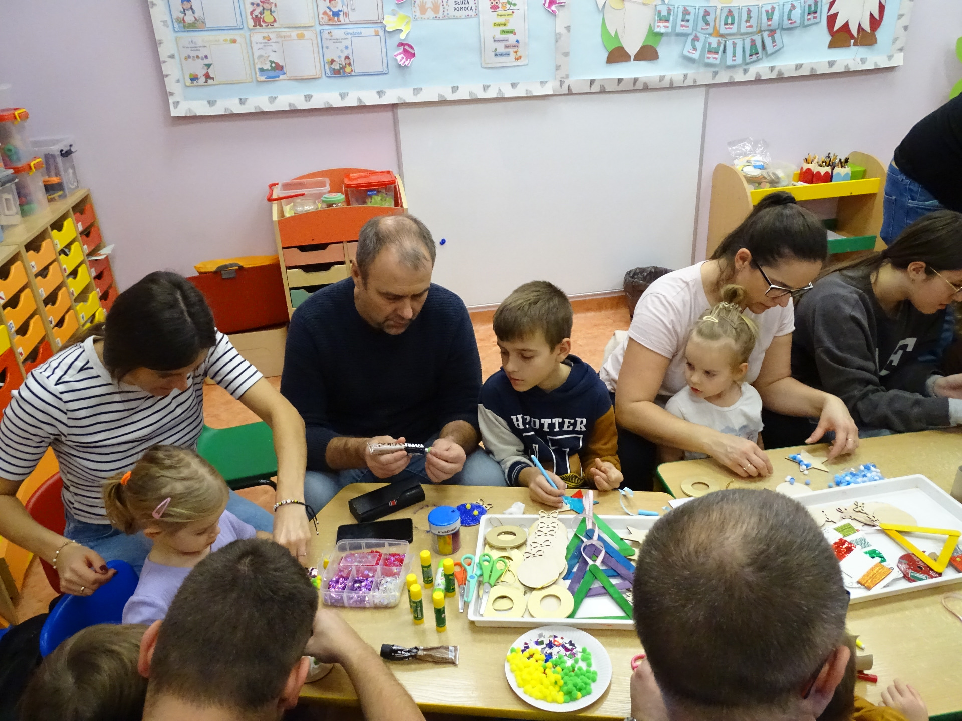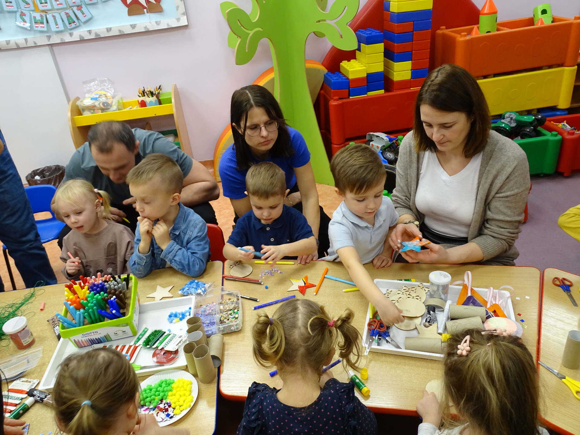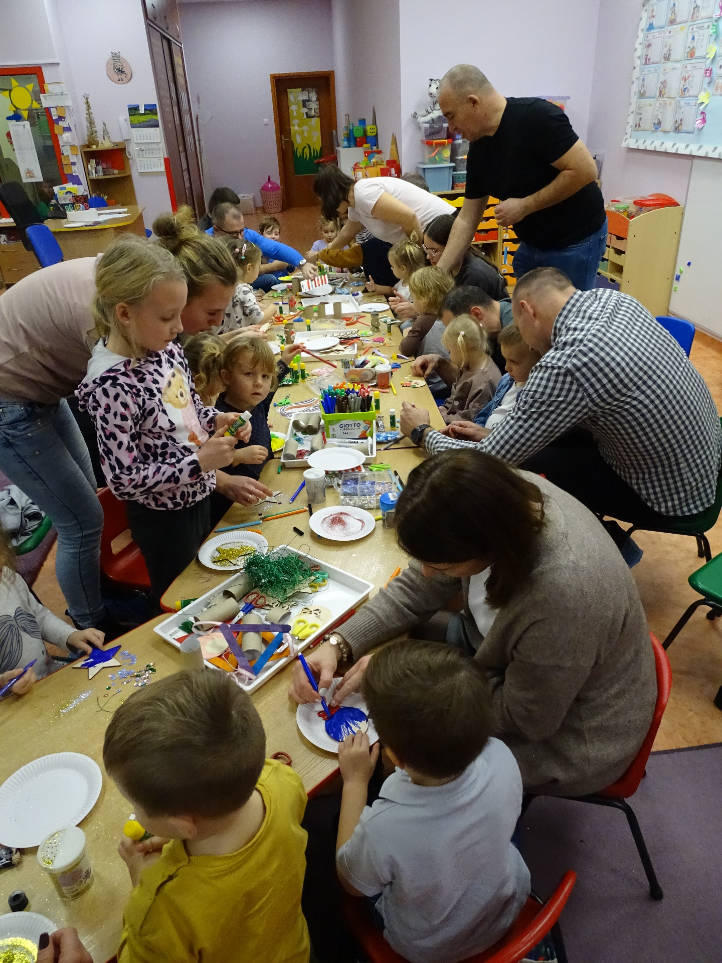 4 grudnia w grupie Krasnali odbyły się zajęcia otwarte dla rodziców. Tematyka zajęć dotyczyła przygotowań do Świąt Bożego Narodzenia. Dzieci wraz z rodzicami aktywnie brały udział w zajęciach i przy dźwiękach kolęd wspólnie wykonały ozdoby świąteczne na choinkę. Przedszkolaki były bardzo zadowolone, że mogą pracować razem z rodzicami. Wszystkim rodzicom, którzy aktywnie uczestniczyli w przedsięwzięciu, za ich osobisty udział pięknie dziękujemy!!!