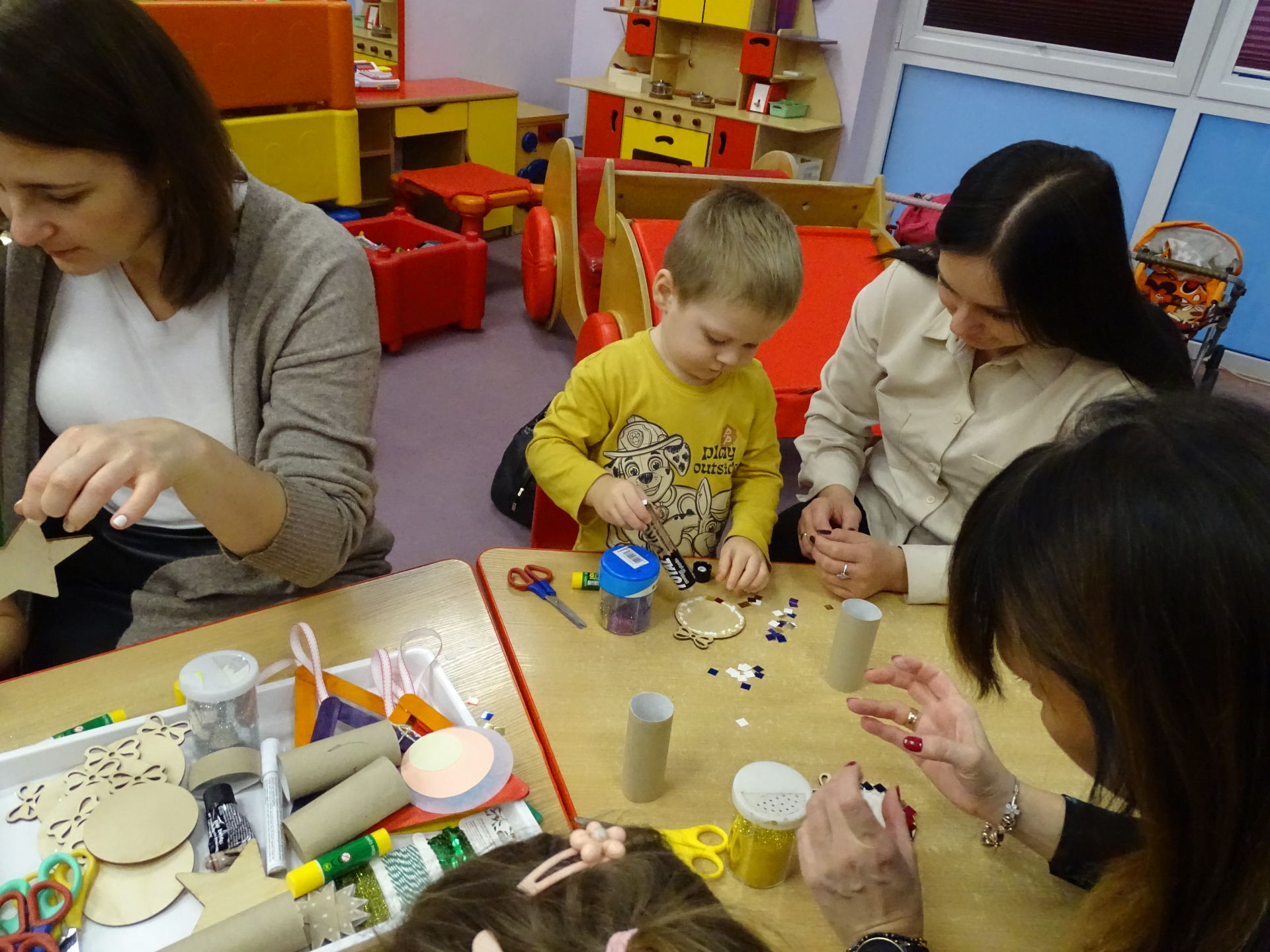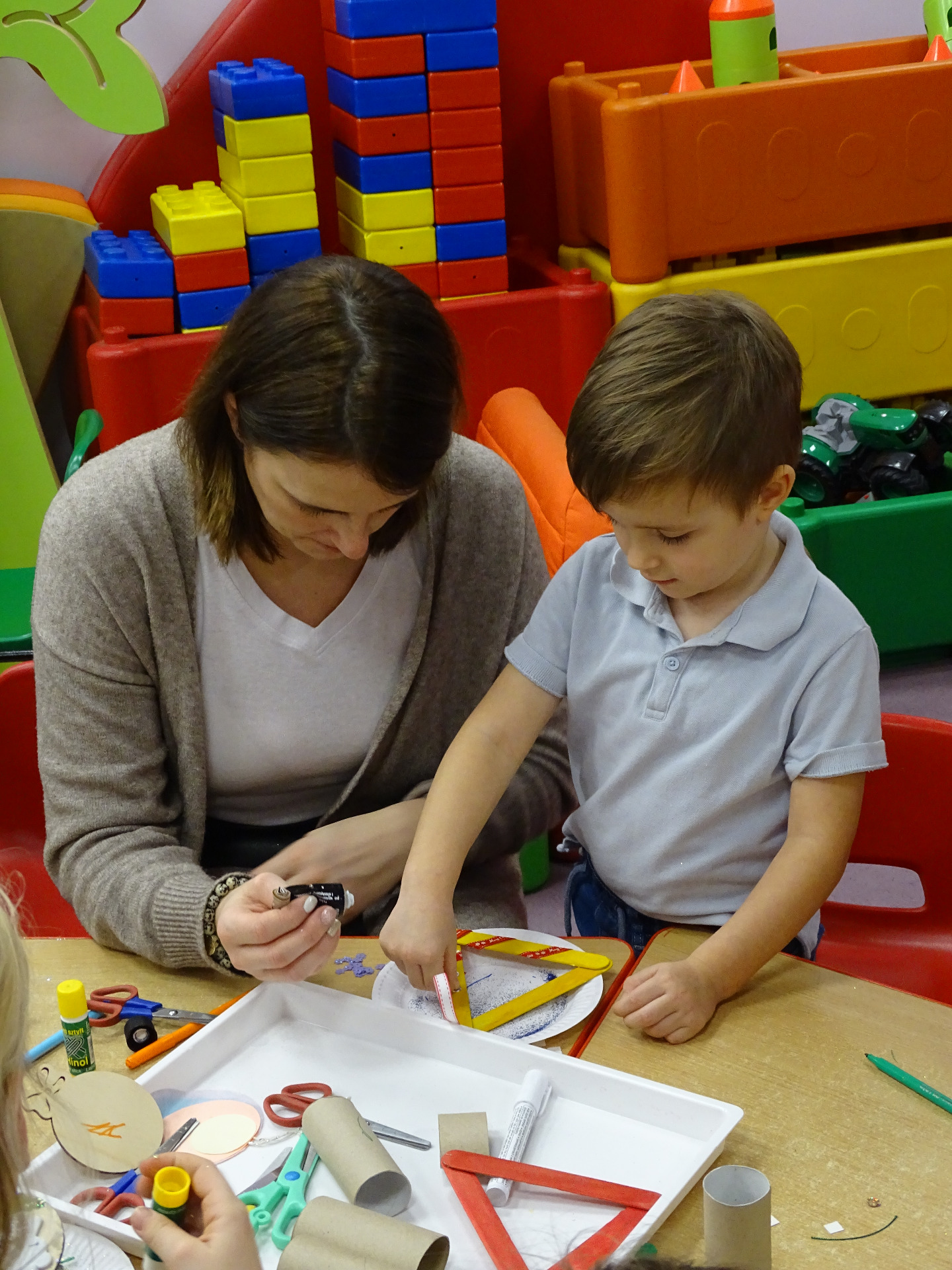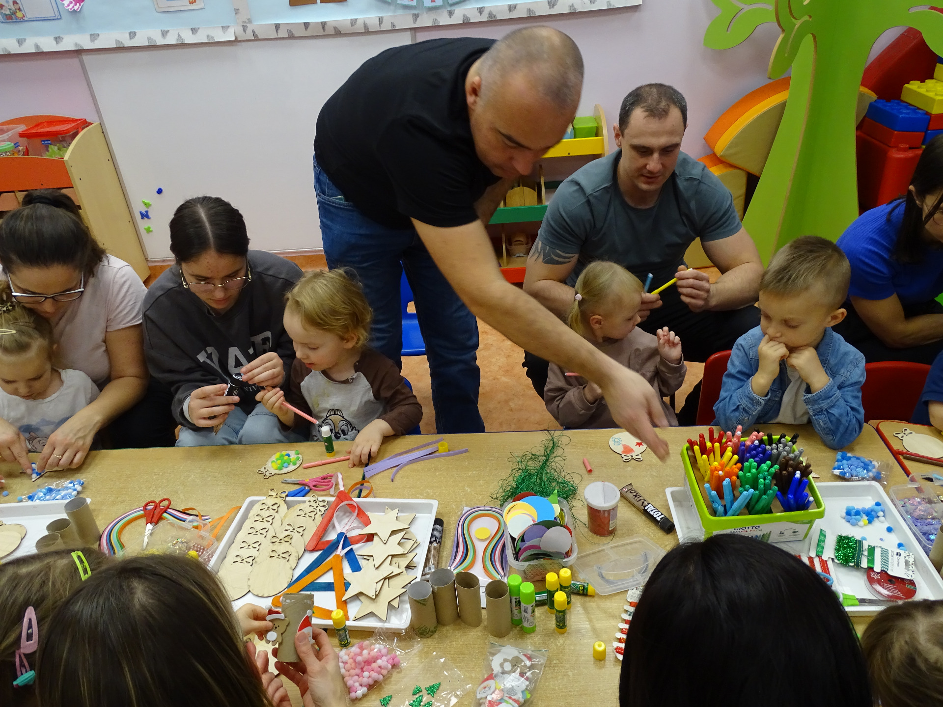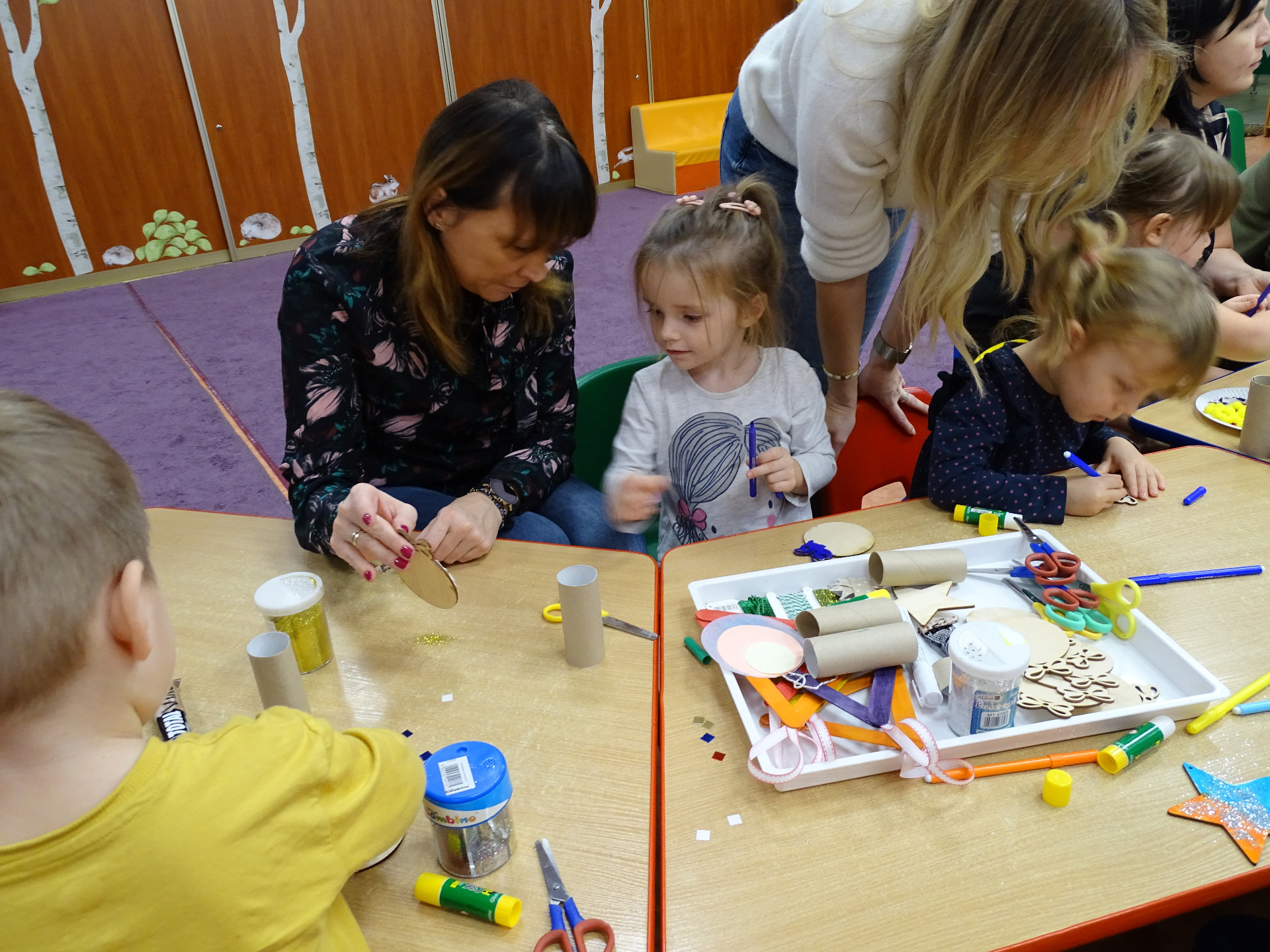 4 grudnia w grupie Krasnali odbyły się zajęcia otwarte dla rodziców. Tematyka zajęć dotyczyła przygotowań do Świąt Bożego Narodzenia. Dzieci wraz z rodzicami aktywnie brały udział w zajęciach i przy dźwiękach kolęd wspólnie wykonały ozdoby świąteczne na choinkę. Przedszkolaki były bardzo zadowolone, że mogą pracować razem z rodzicami. Wszystkim rodzicom, którzy aktywnie uczestniczyli w przedsięwzięciu, za ich osobisty udział pięknie dziękujemy!!!