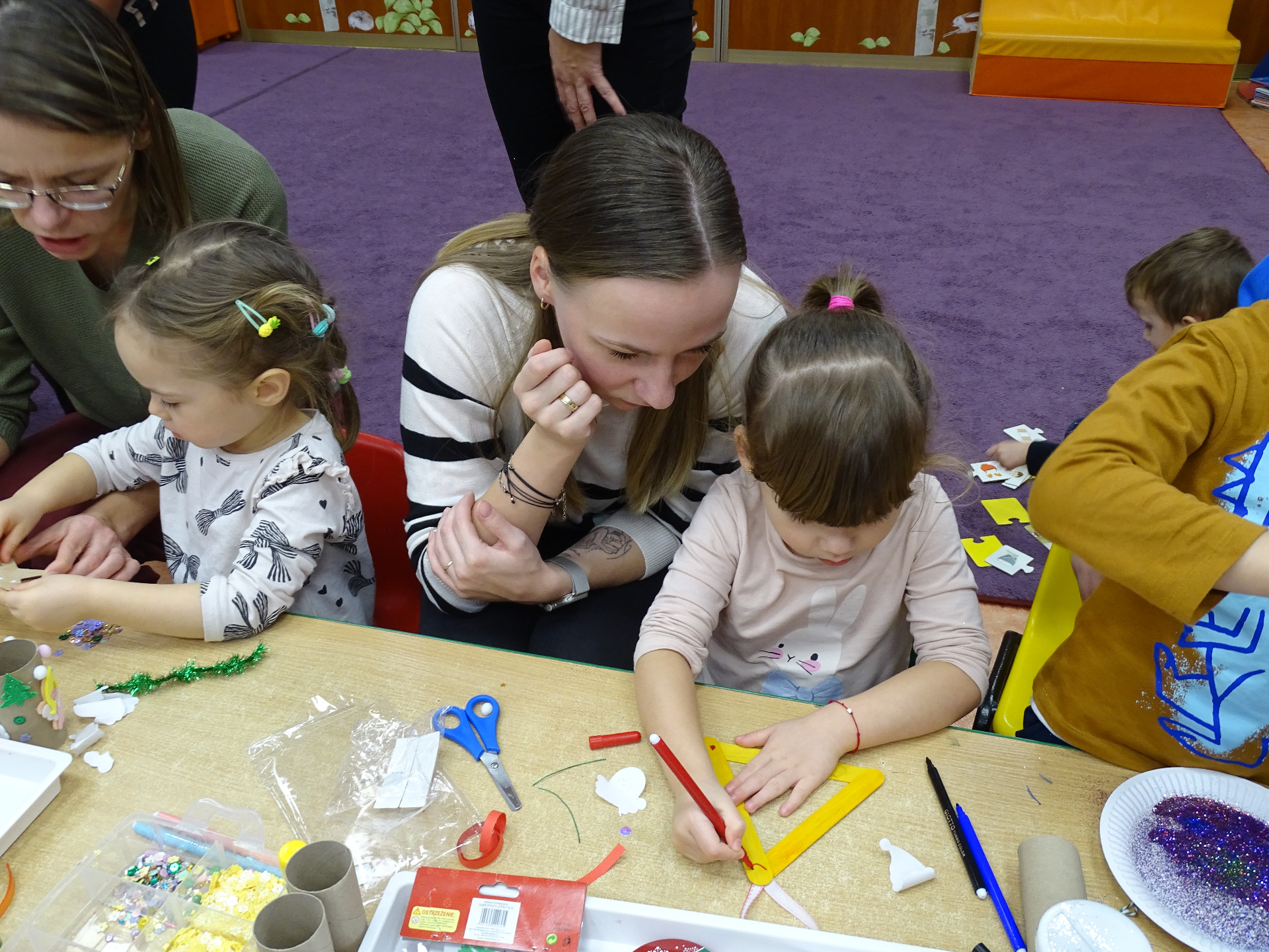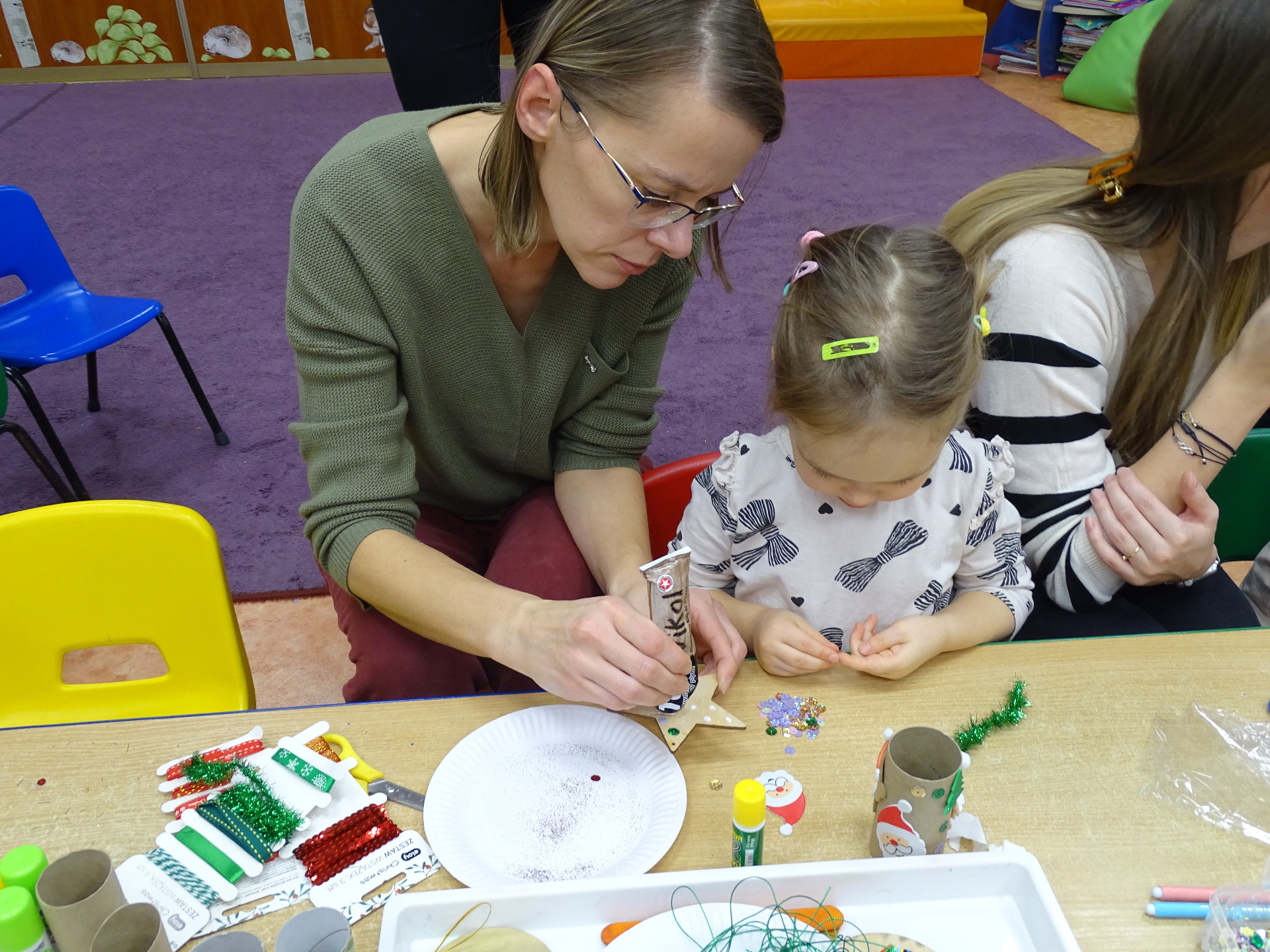 4 grudnia w grupie Krasnali odbyły się zajęcia otwarte dla rodziców. Tematyka zajęć dotyczyła przygotowań do Świąt Bożego Narodzenia. Dzieci wraz z rodzicami aktywnie brały udział w zajęciach i przy dźwiękach kolęd wspólnie wykonały ozdoby świąteczne na choinkę. Przedszkolaki były bardzo zadowolone, że mogą pracować razem z rodzicami. Wszystkim rodzicom, którzy aktywnie uczestniczyli w przedsięwzięciu, za ich osobisty udział pięknie dziękujemy!!!