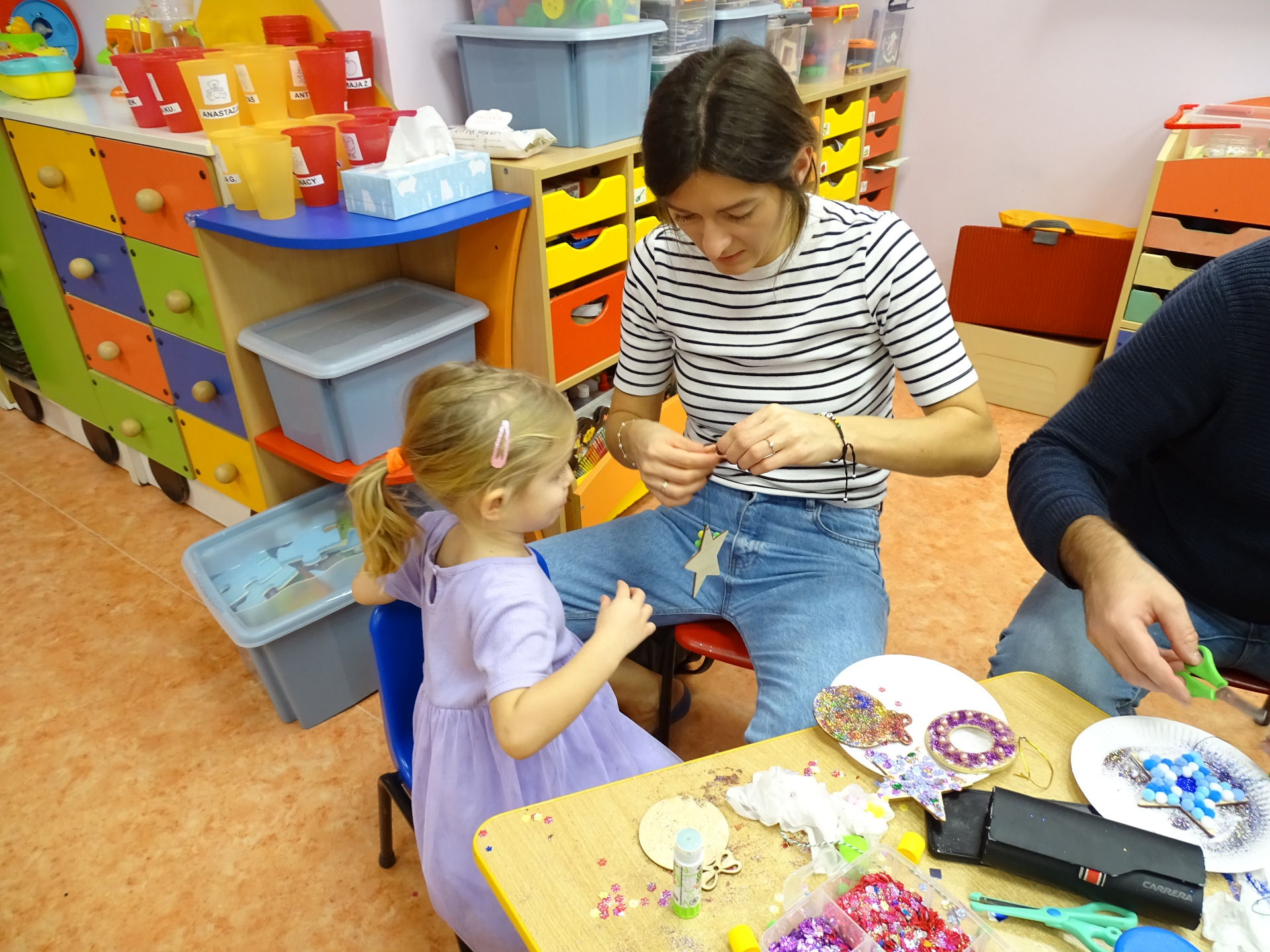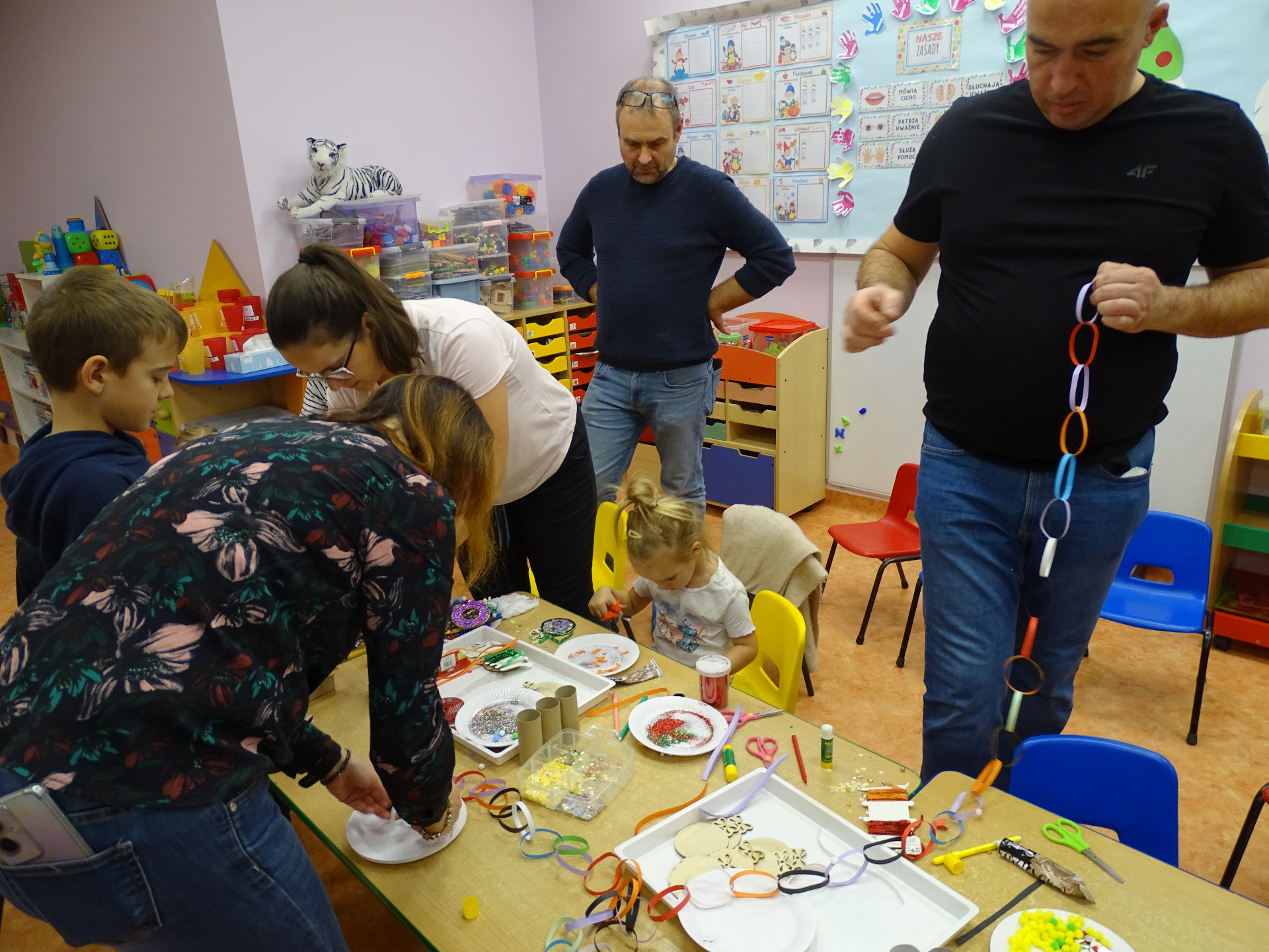 4 grudnia w grupie Krasnali odbyły się zajęcia otwarte dla rodziców. Tematyka zajęć dotyczyła przygotowań do Świąt Bożego Narodzenia. Dzieci wraz z rodzicami aktywnie brały udział w zajęciach i przy dźwiękach kolęd wspólnie wykonały ozdoby świąteczne na choinkę. Przedszkolaki były bardzo zadowolone, że mogą pracować razem z rodzicami. Wszystkim rodzicom, którzy aktywnie uczestniczyli w przedsięwzięciu, za ich osobisty udział pięknie dziękujemy!!!