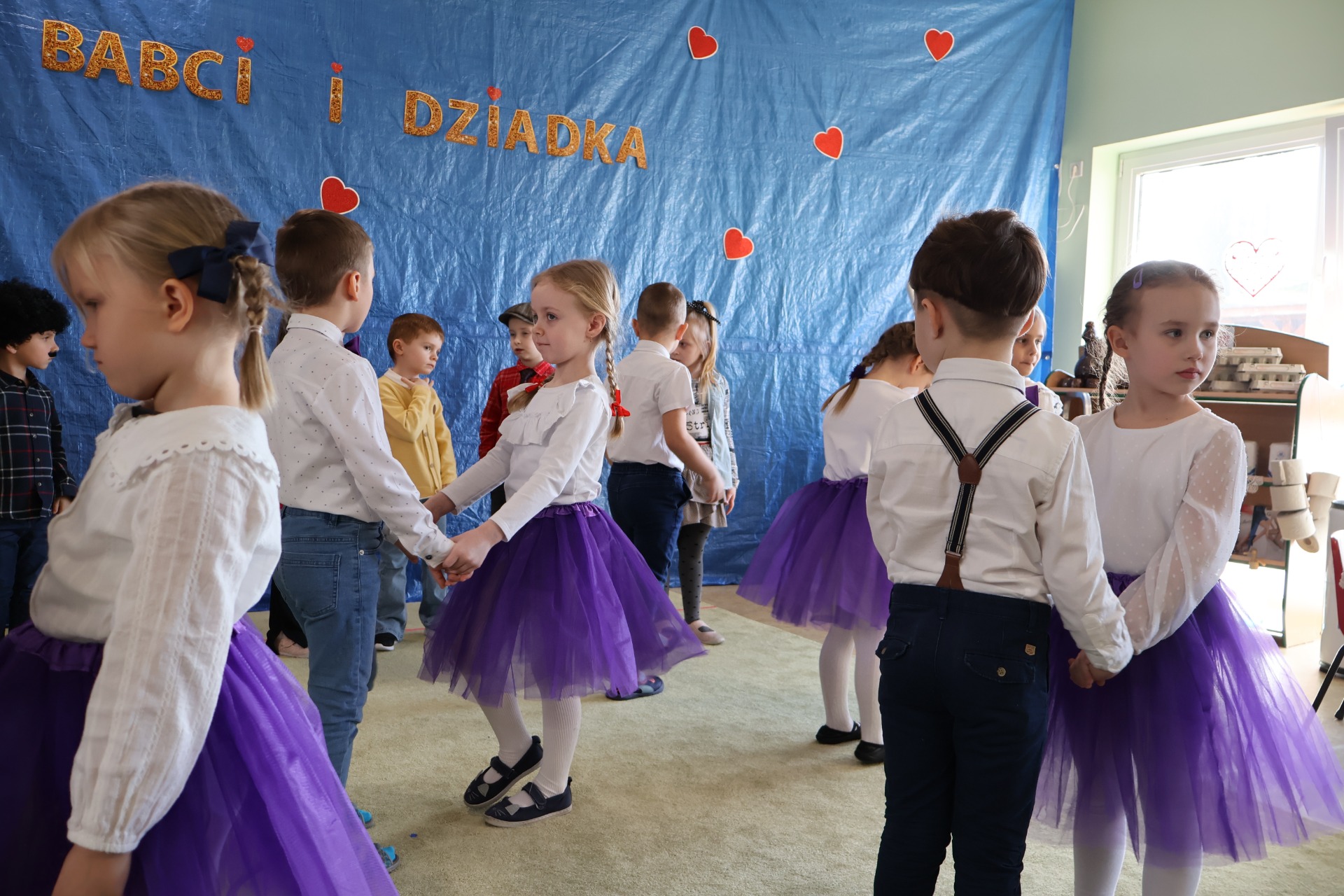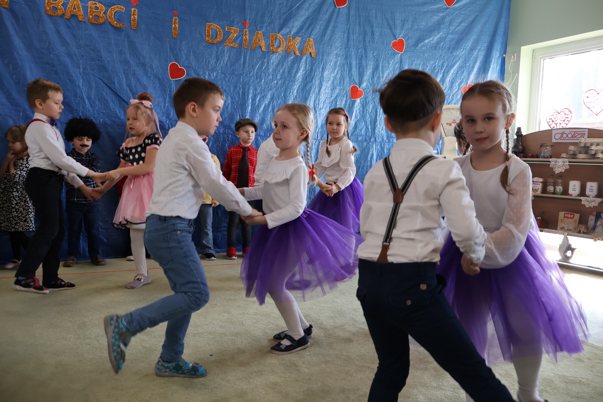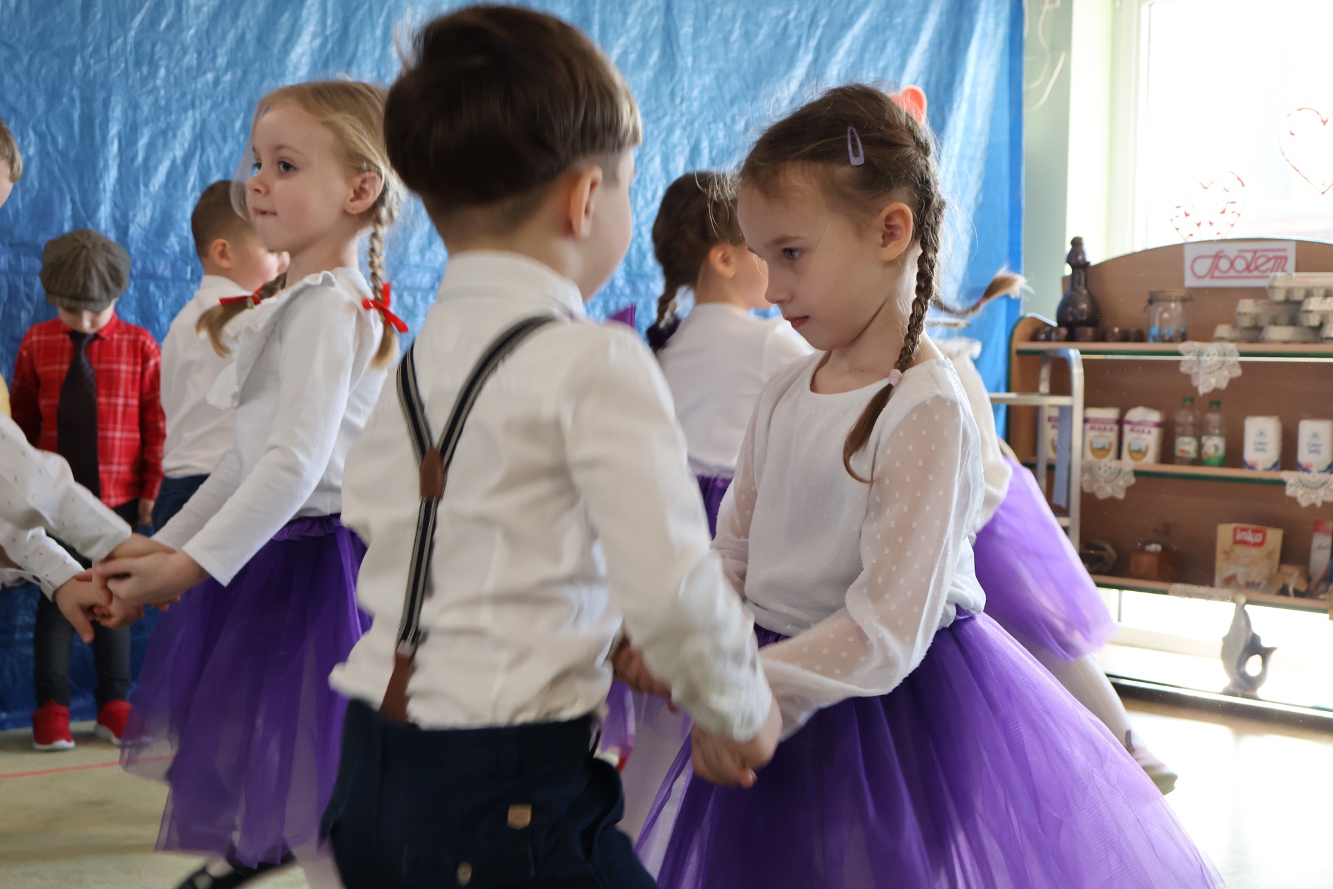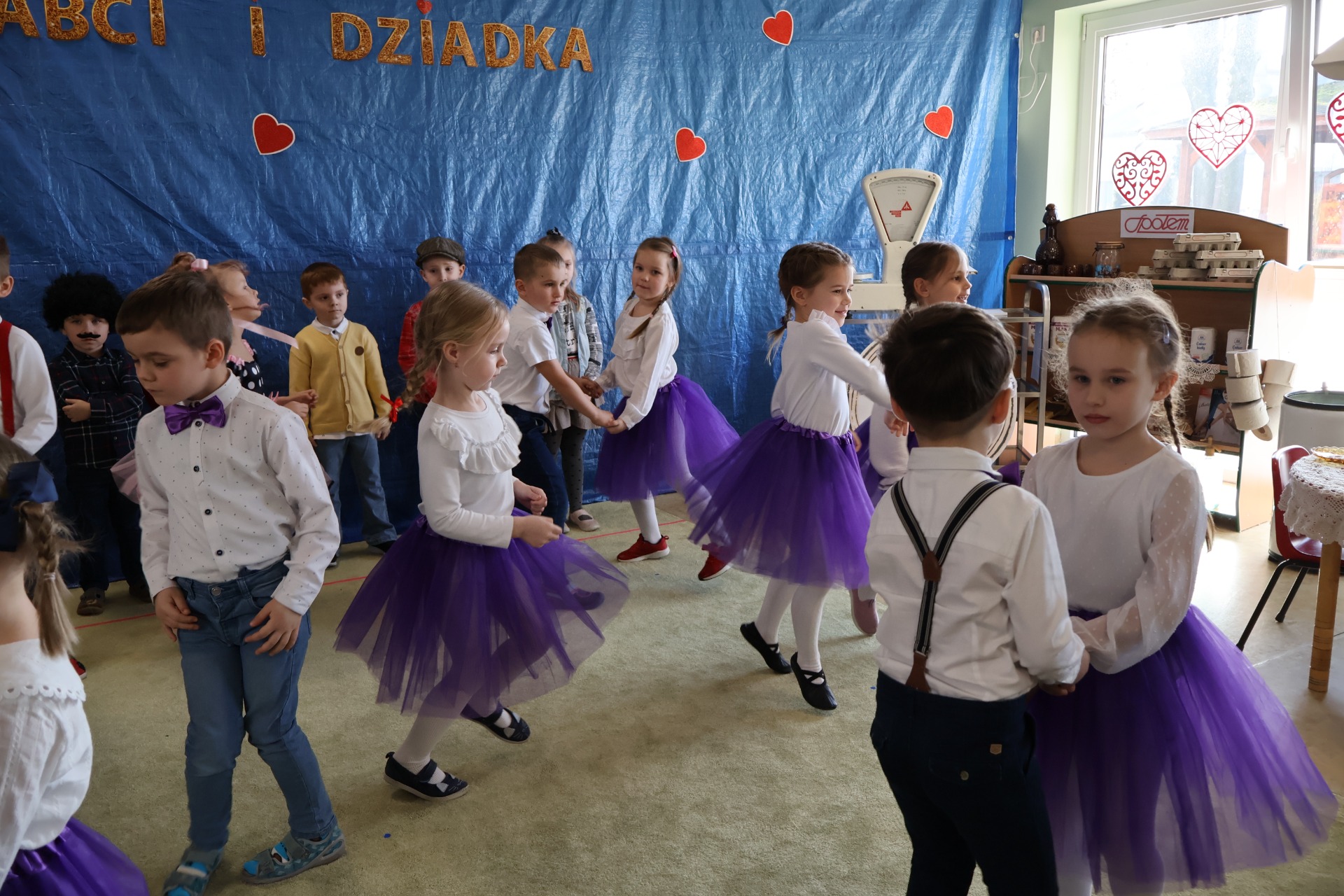 W tym roku Podróżnicy zafundowali swoim Babciom i Dziadkom powrót do przeszłości, nie tak dalekiej, a jak bardzo innej…a mianowicie czasy PRL-u. Wydarzenie miało miejsce w kolejce przed sklepem, to tam właśnie dziadek po raz pierwszy spotkał swoją ukochaną babcię. Inscenizacja przepełniona była dużą dawką humoru i sentymentalnym powrotem do czasów młodości dziadków, gdy stało się w kolejkach „bo rzucili coś do sklepu”. Po występie wszyscy ruszyli do wspólnej zabawy przy skocznej muzyce oraz słodkiego poczęstunku przygotowanych przez rodziców za który bardzo dziękujemy. To był bardzo miły i wyjątkowy dzień ❤️