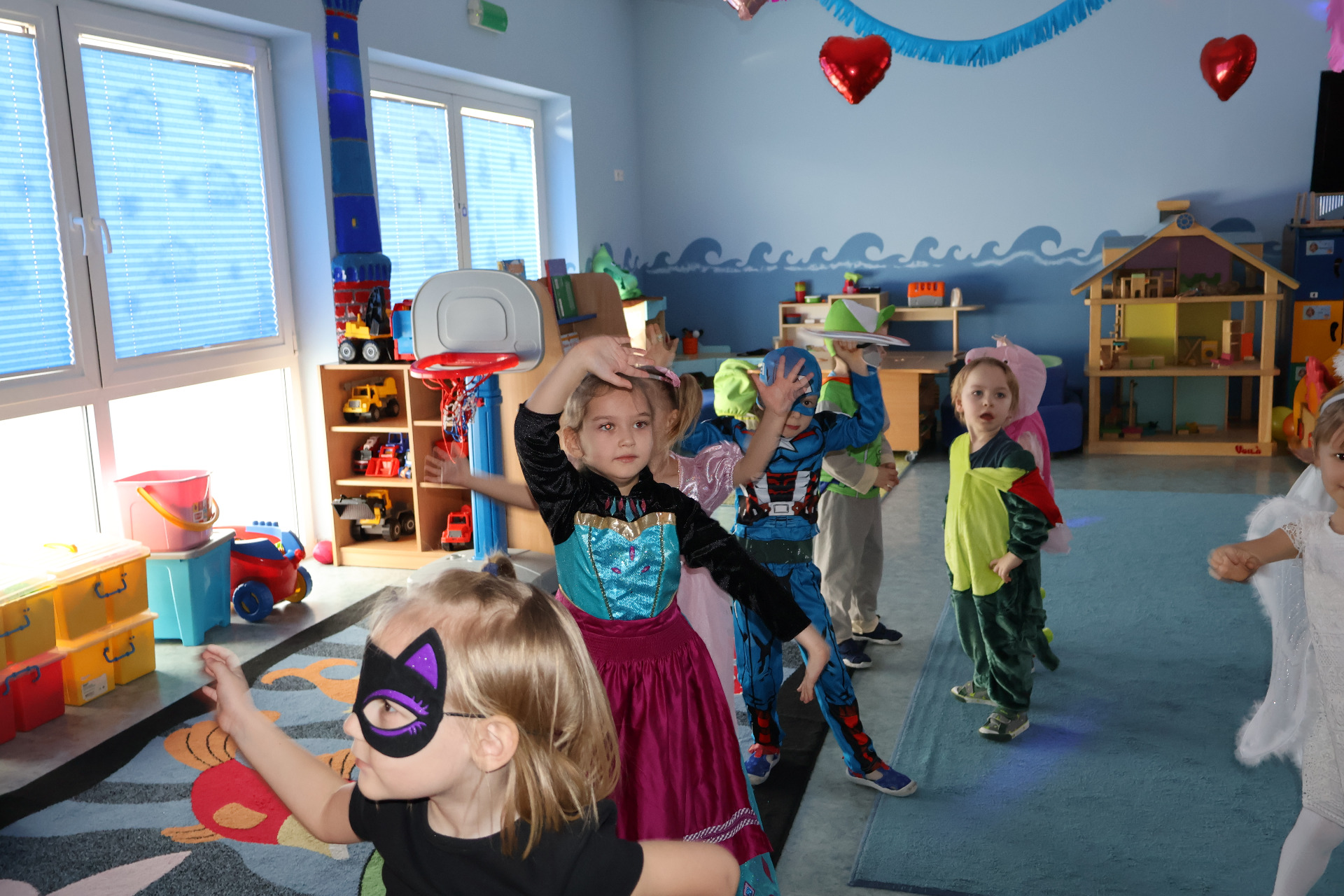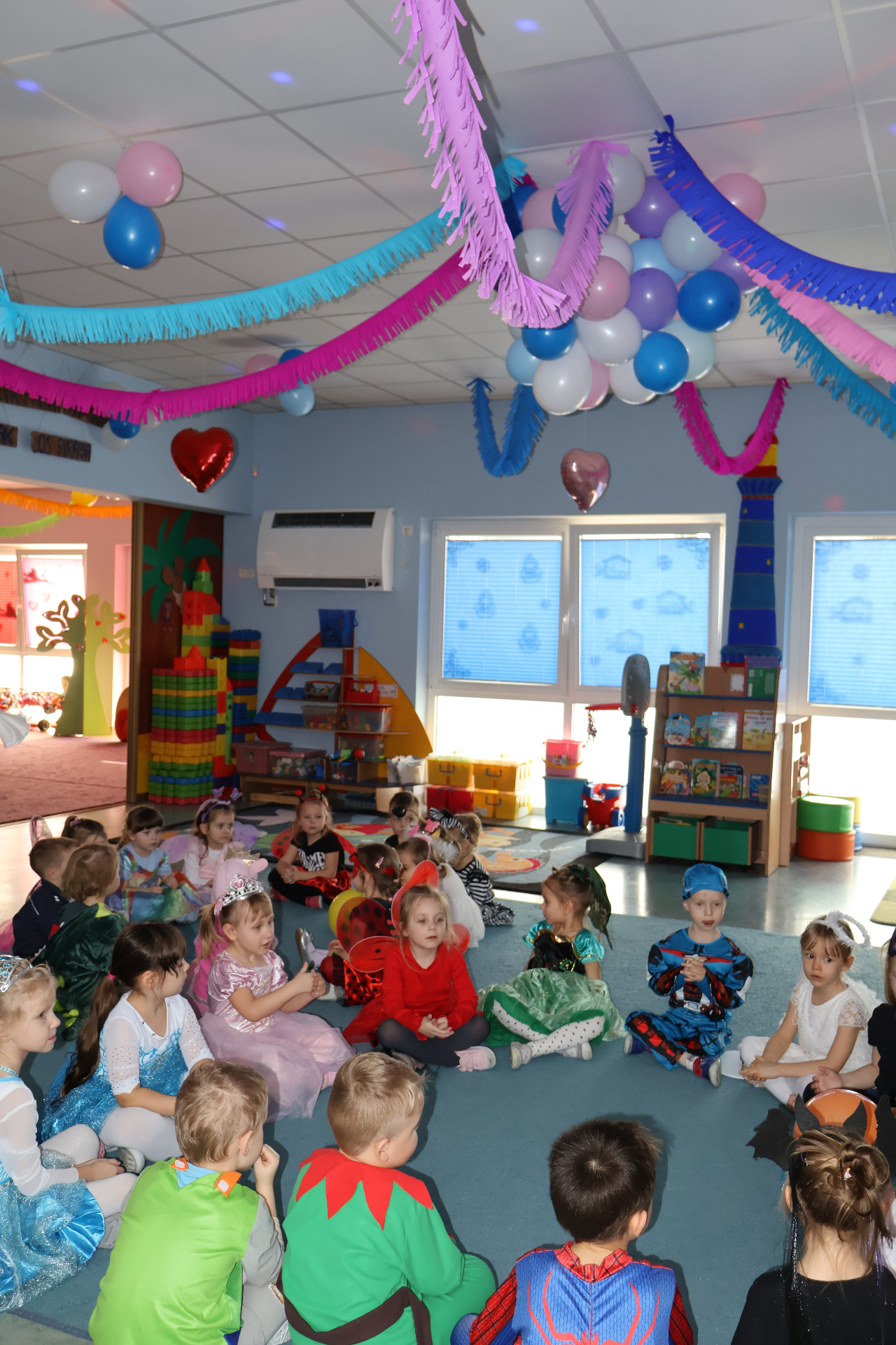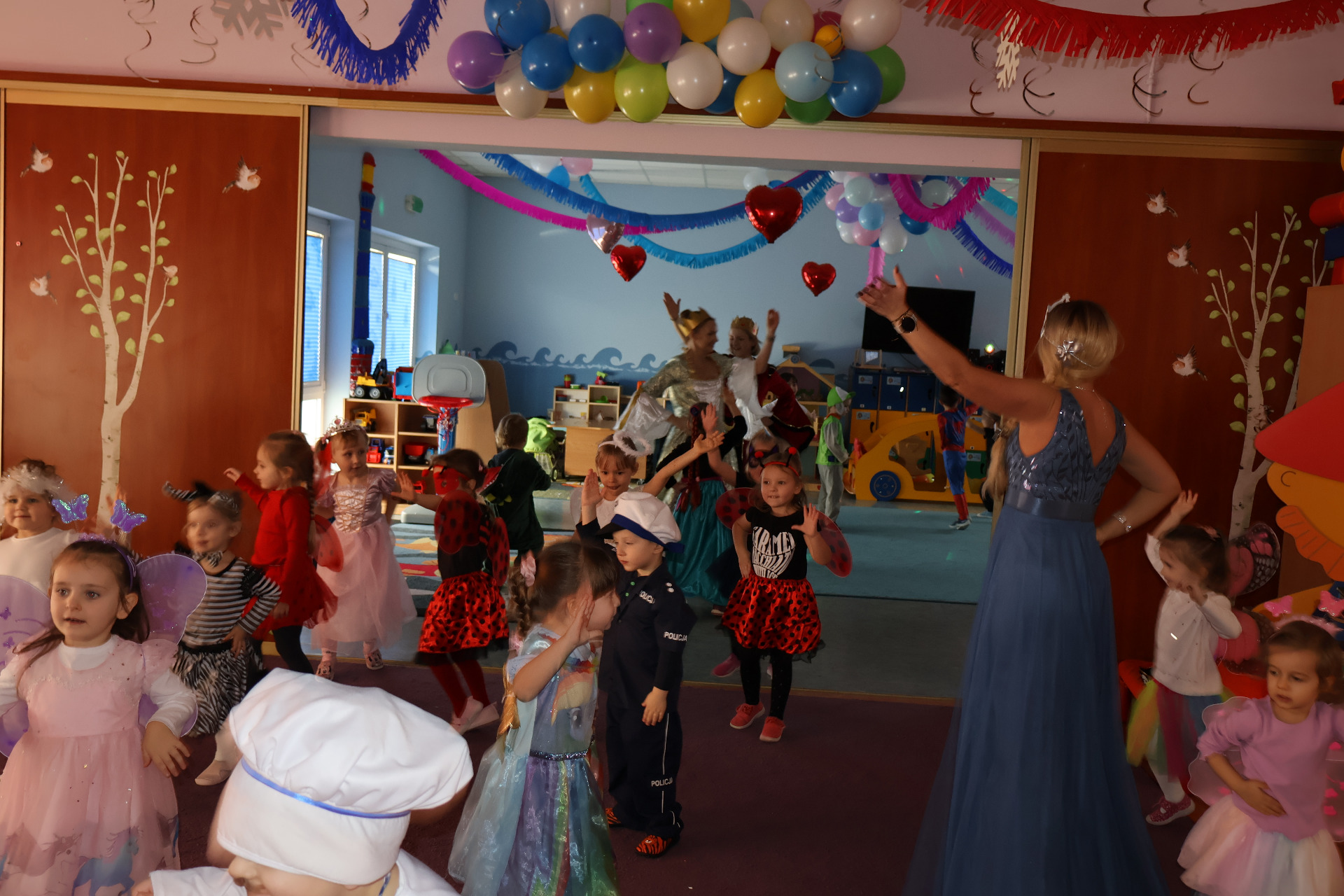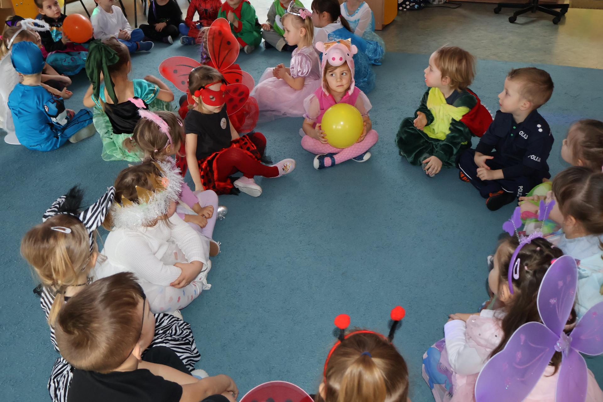 Bal karnawałowy dla przedszkolaków to dzień niezwykły, wyczekiwany. Jest atrakcją bardzo lubianą przez dzieci, dostarczającą im wielu przeżyć i radości. Tak też było u nas. W środę 12 lutego br. w naszym Przedszkolu odbył się wielki bal karnawałowy. Tego dnia już od rana w przedszkolu pojawiały się kolorowe postacie. Dzieci przebrane były za bohaterów znanych bajek, w salach przedszkolnych można było spotkać królewny, delikatne motylki, policjanta, strażaka, Spider-Mana, lwa, zebrę ,… nie sposób zliczyć i wymienić tych wszystkich postaci. Rozpoznać dzieci było bardzo trudno. Wystrój sal wprowadził w radosny nastrój oraz zachęcał wszystkich do wesołej zabawy. Na początku odbył się pokaz mody, gdzie każde dziecko mogło zaprezentować swój strój. Kiedy pojawiły się pierwsze rytmy wesołej muzyki, to wszystkie przedszkolaki z wielką ochotą rozpoczęły pląsy i tańce. Wszyscy bawili się znakomicie. Jednym słowem zabawa na 102!!!. Wielką atrakcją dla dzieci podczas balu były zabawy z kolorowymi balonami i bańkami, a także liczne konkursy, w których wszyscy wzięli bardzo chętnie udział. Zabawy, humoru i radości było co niemiara. Na koniec na dzieci czekał poczęstunek. Bal umożliwił dzieciom i wychowawcom spędzenie czasu w miłej atmosferze. Wspólna zabawa przyniosła wiele radości naszym wychowankom, a to było głównym celem tego balu.