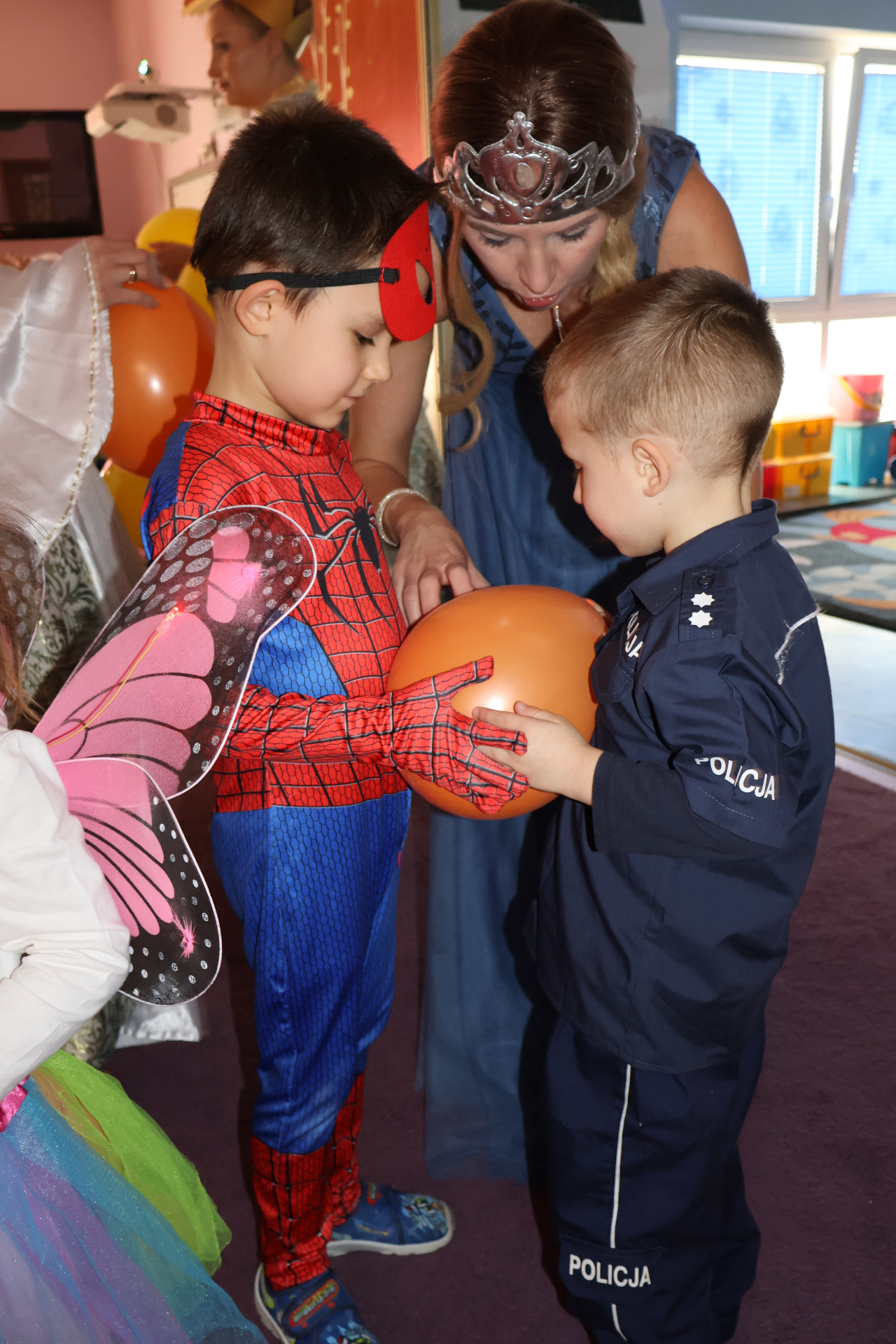 Bal karnawałowy dla przedszkolaków to dzień niezwykły, wyczekiwany. Jest atrakcją bardzo lubianą przez dzieci, dostarczającą im wielu przeżyć i radości. Tak też było u nas. W środę 12 lutego br. w naszym Przedszkolu odbył się wielki bal karnawałowy. Tego dnia już od rana w przedszkolu pojawiały się kolorowe postacie. Dzieci przebrane były za bohaterów znanych bajek, w salach przedszkolnych można było spotkać królewny, delikatne motylki, policjanta, strażaka, Spider-Mana, lwa, zebrę ,… nie sposób zliczyć i wymienić tych wszystkich postaci. Rozpoznać dzieci było bardzo trudno. Wystrój sal wprowadził w radosny nastrój oraz zachęcał wszystkich do wesołej zabawy. Na początku odbył się pokaz mody, gdzie każde dziecko mogło zaprezentować swój strój. Kiedy pojawiły się pierwsze rytmy wesołej muzyki, to wszystkie przedszkolaki z wielką ochotą rozpoczęły pląsy i tańce. Wszyscy bawili się znakomicie. Jednym słowem zabawa na 102!!!. Wielką atrakcją dla dzieci podczas balu były zabawy z kolorowymi balonami i bańkami, a także liczne konkursy, w których wszyscy wzięli bardzo chętnie udział. Zabawy, humoru i radości było co niemiara. Na koniec na dzieci czekał poczęstunek. Bal umożliwił dzieciom i wychowawcom spędzenie czasu w miłej atmosferze. Wspólna zabawa przyniosła wiele radości naszym wychowankom, a to było głównym celem tego balu.