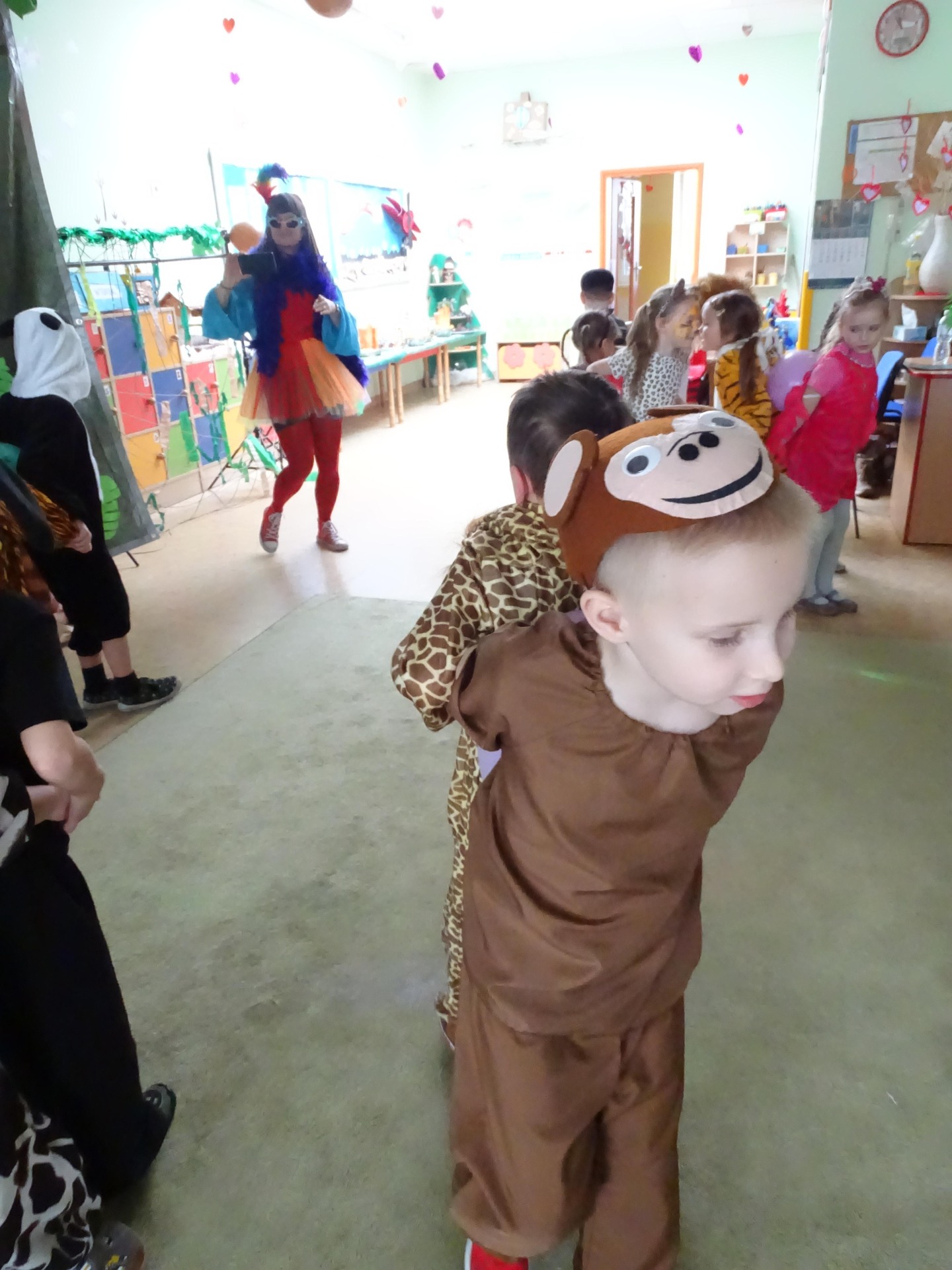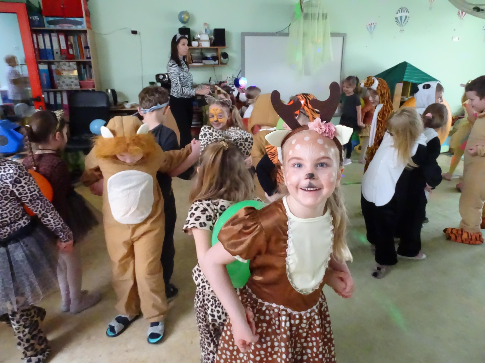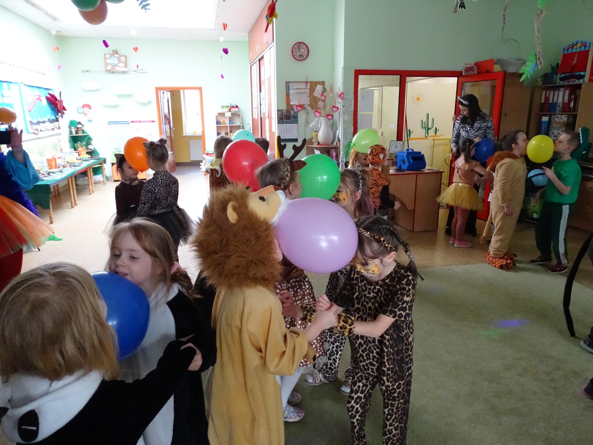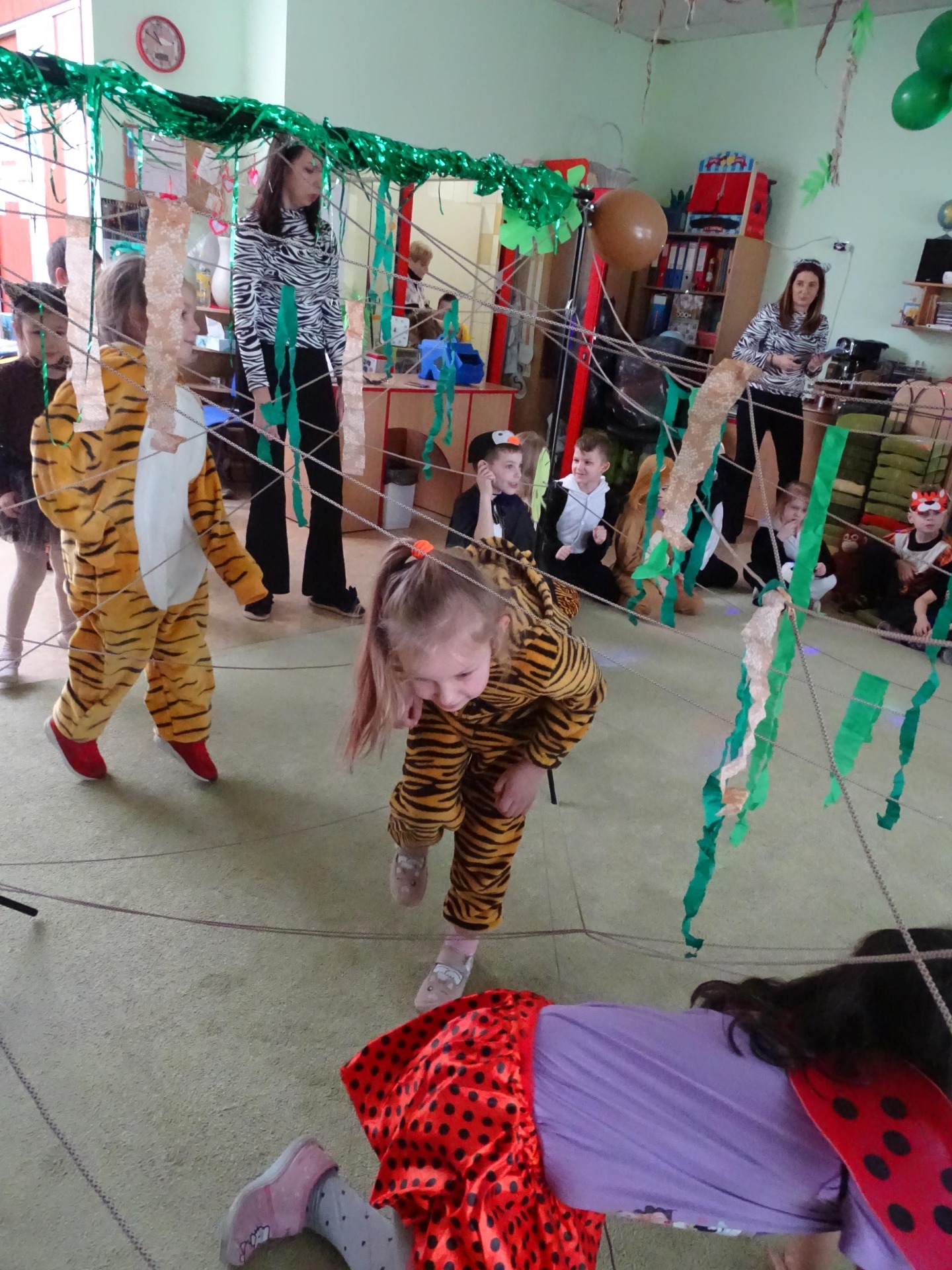 12 lutego dwie najstarsze grupy przedszkolne imprezowały na balu karnawałowym . W tym roku tematem przewodnim była dżungla, dlatego parkiet zagęścił się od obecności dzikich zwierząt. Pojawiły się min.: lwy , pantery, flaming, żyrafa, papuga, motyl i inne. Od samego początku energia zabawowa dopisywała. Dzieci chętnie pląsały w rytm znanych i lubianych utworów. Nie zabrakło również konkursów, min. podawania kokosa w rzędach, przeciskania się przez pajęczą sieć, czy rozpoznawania odgłosów dzikich zwierząt. Dzieci zaprezentowały swoje piękne stroje na zielonym dywanie, a także udały się w kolorowy korowód po innych, przedszkolnych salach. Nie zabrakło również słodkiego poczęstunku i małych drobiazgów dla przedszkolaków. Serdecznie dziękujemy rodzicom za pomoc w przygotowaniu imprezy 😀.