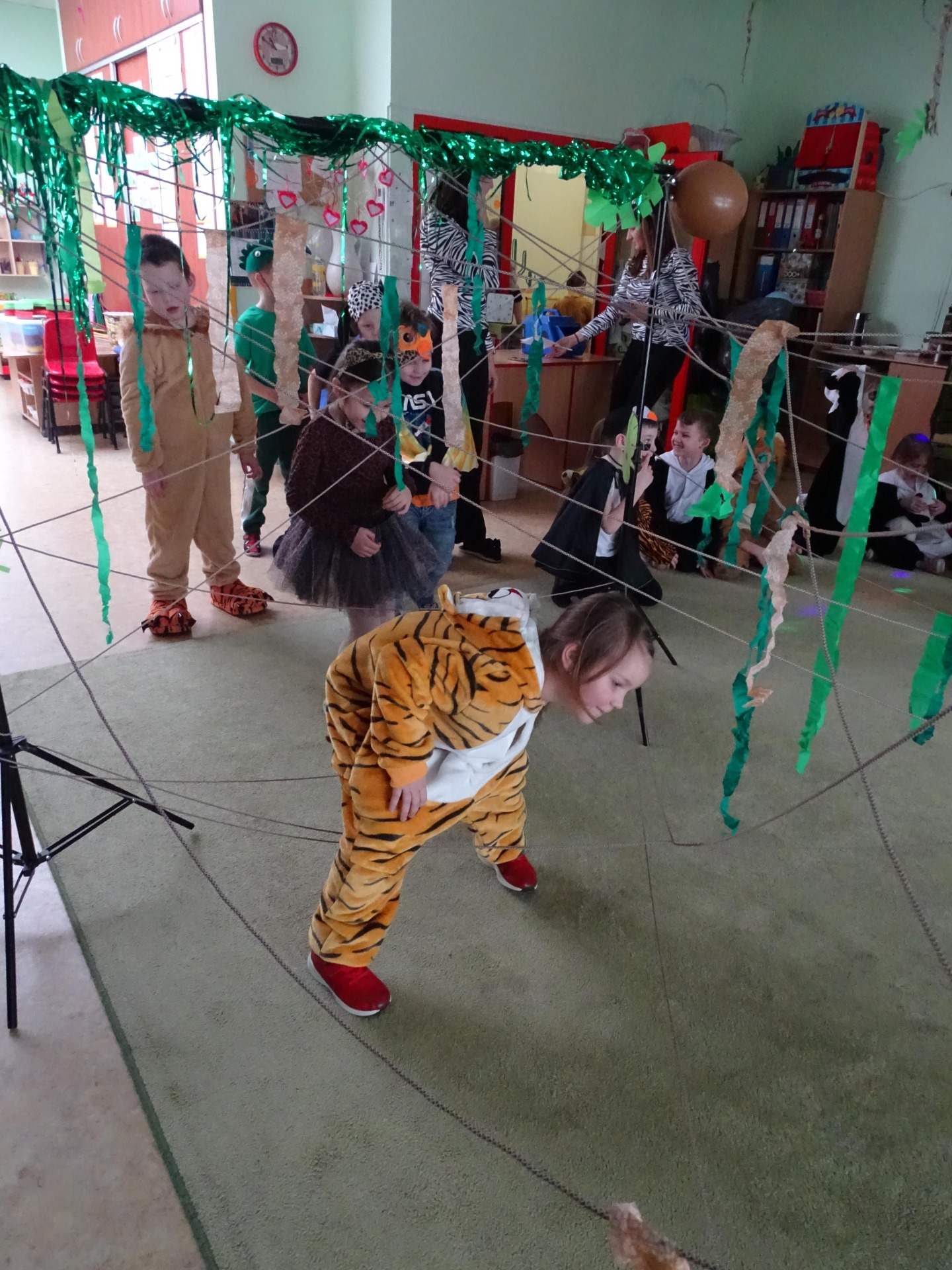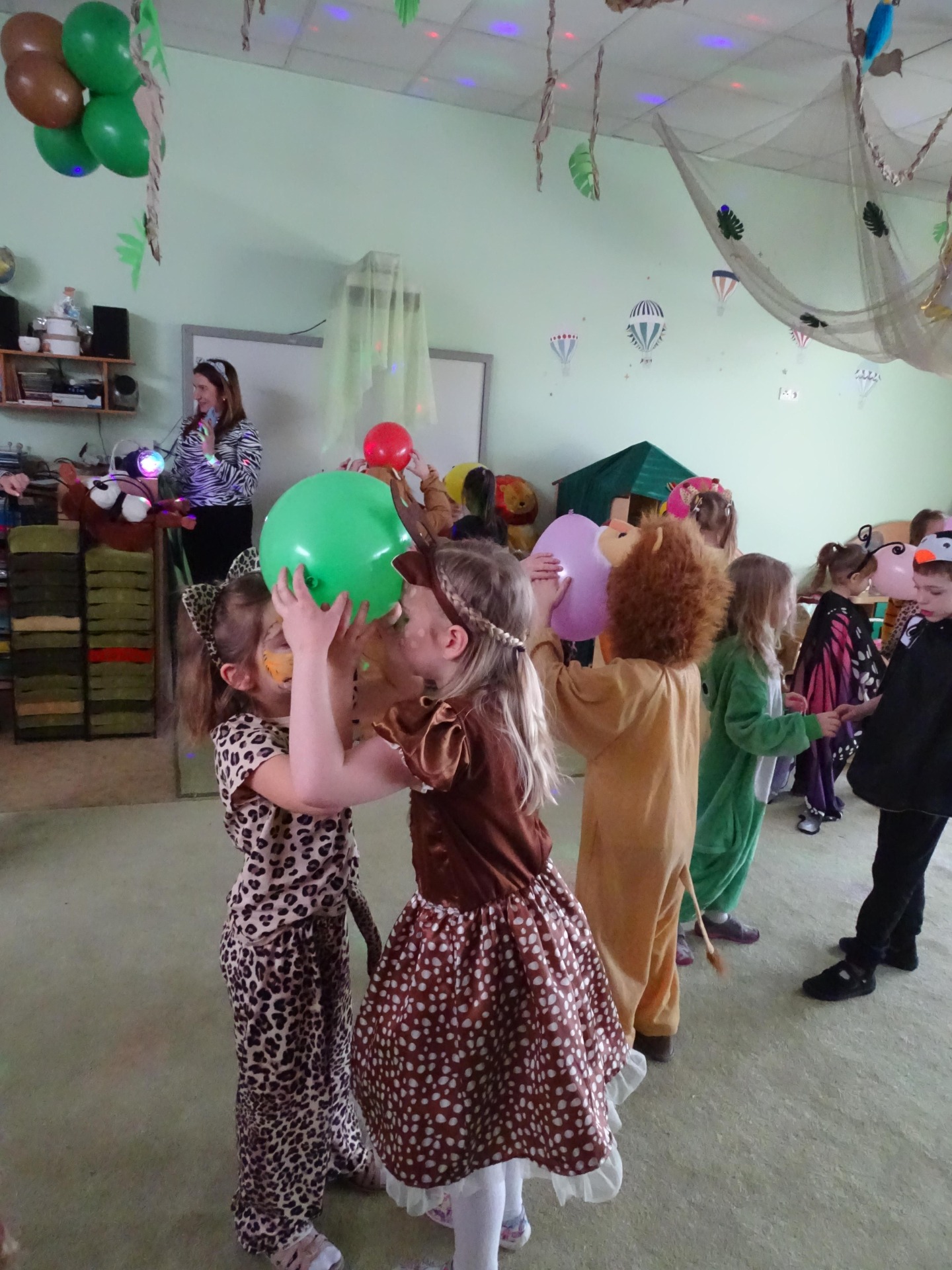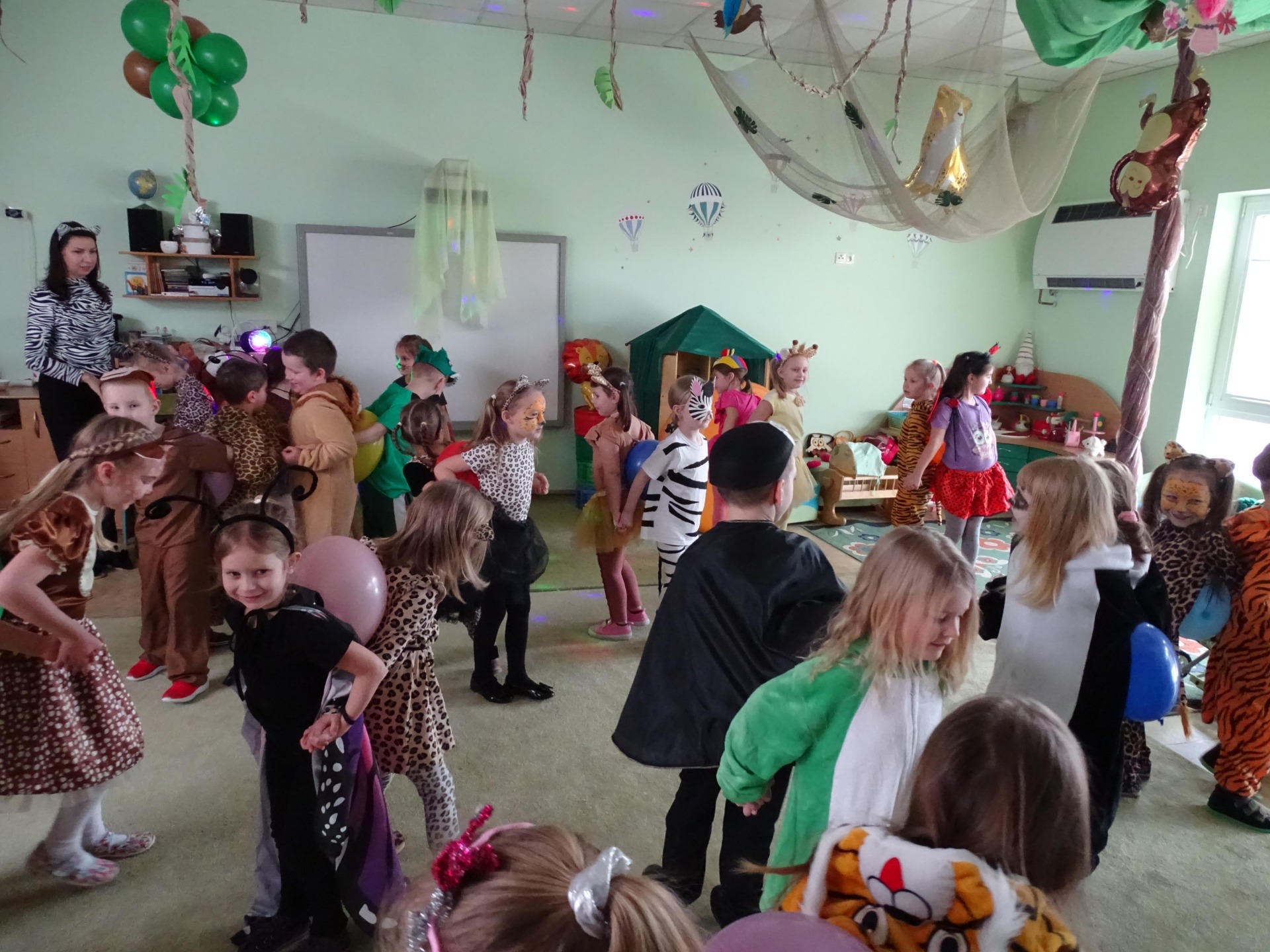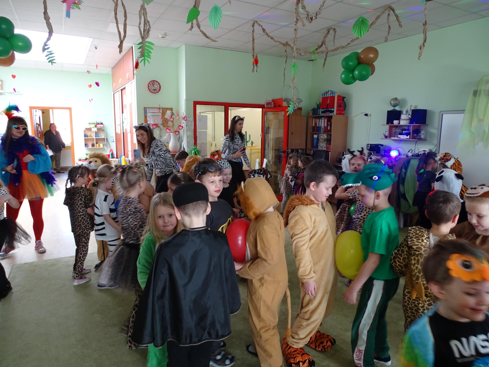 12 lutego dwie najstarsze grupy przedszkolne imprezowały na balu karnawałowym . W tym roku tematem przewodnim była dżungla, dlatego parkiet zagęścił się od obecności dzikich zwierząt. Pojawiły się min.: lwy , pantery, flaming, żyrafa, papuga, motyl i inne. Od samego początku energia zabawowa dopisywała. Dzieci chętnie pląsały w rytm znanych i lubianych utworów. Nie zabrakło również konkursów, min. podawania kokosa w rzędach, przeciskania się przez pajęczą sieć, czy rozpoznawania odgłosów dzikich zwierząt. Dzieci zaprezentowały swoje piękne stroje na zielonym dywanie, a także udały się w kolorowy korowód po innych, przedszkolnych salach. Nie zabrakło również słodkiego poczęstunku i małych drobiazgów dla przedszkolaków. Serdecznie dziękujemy rodzicom za pomoc w przygotowaniu imprezy 😀.