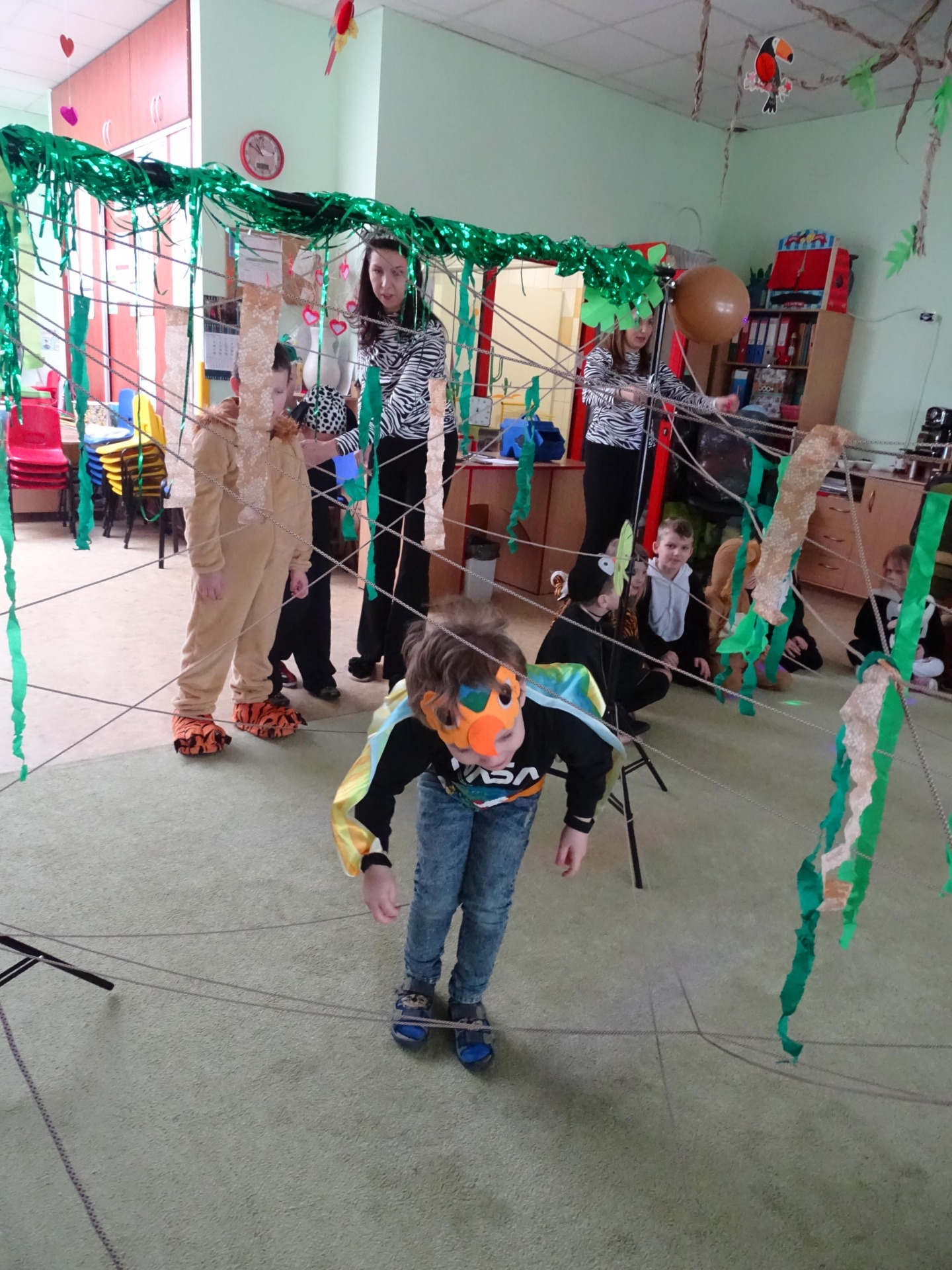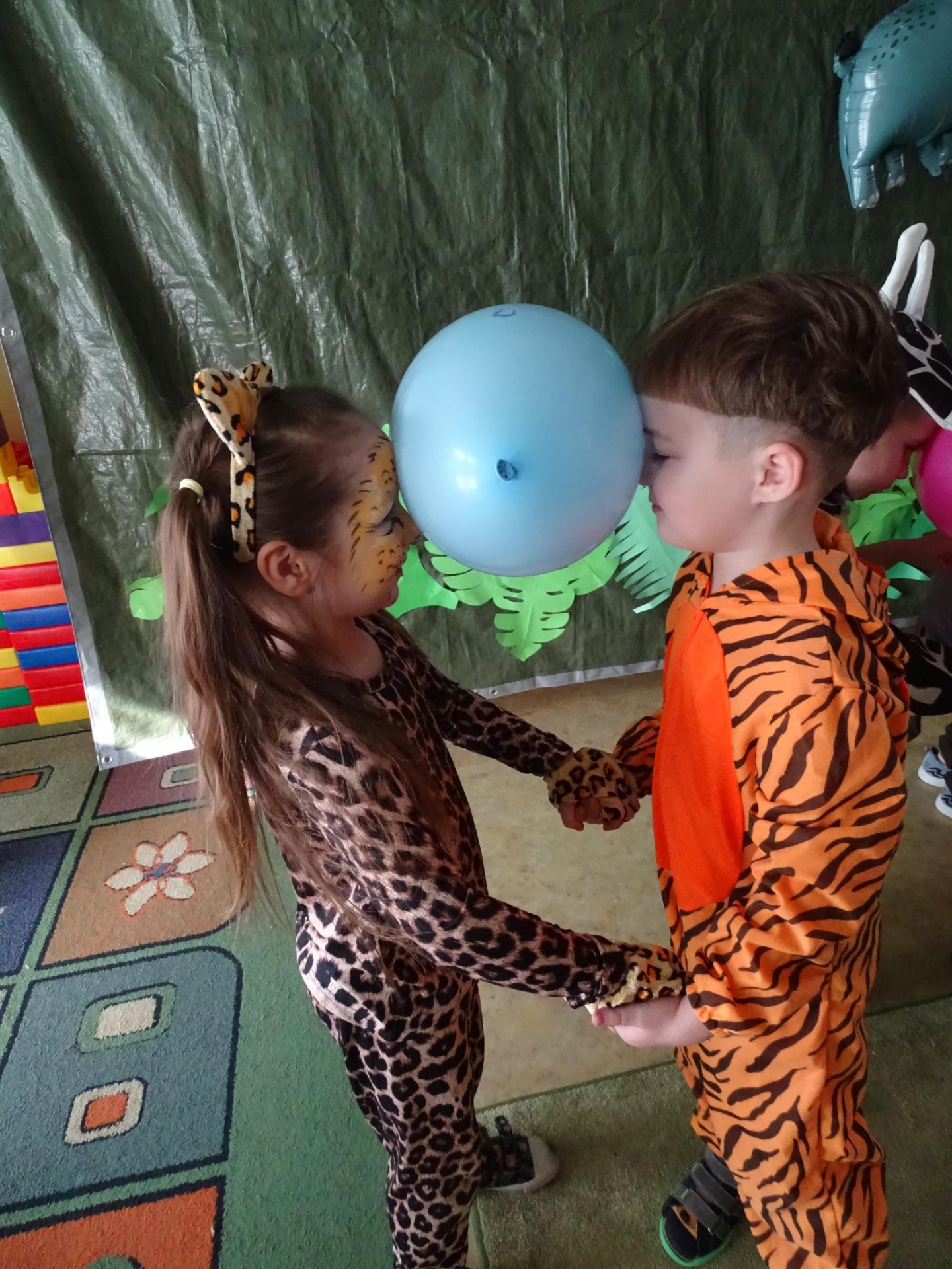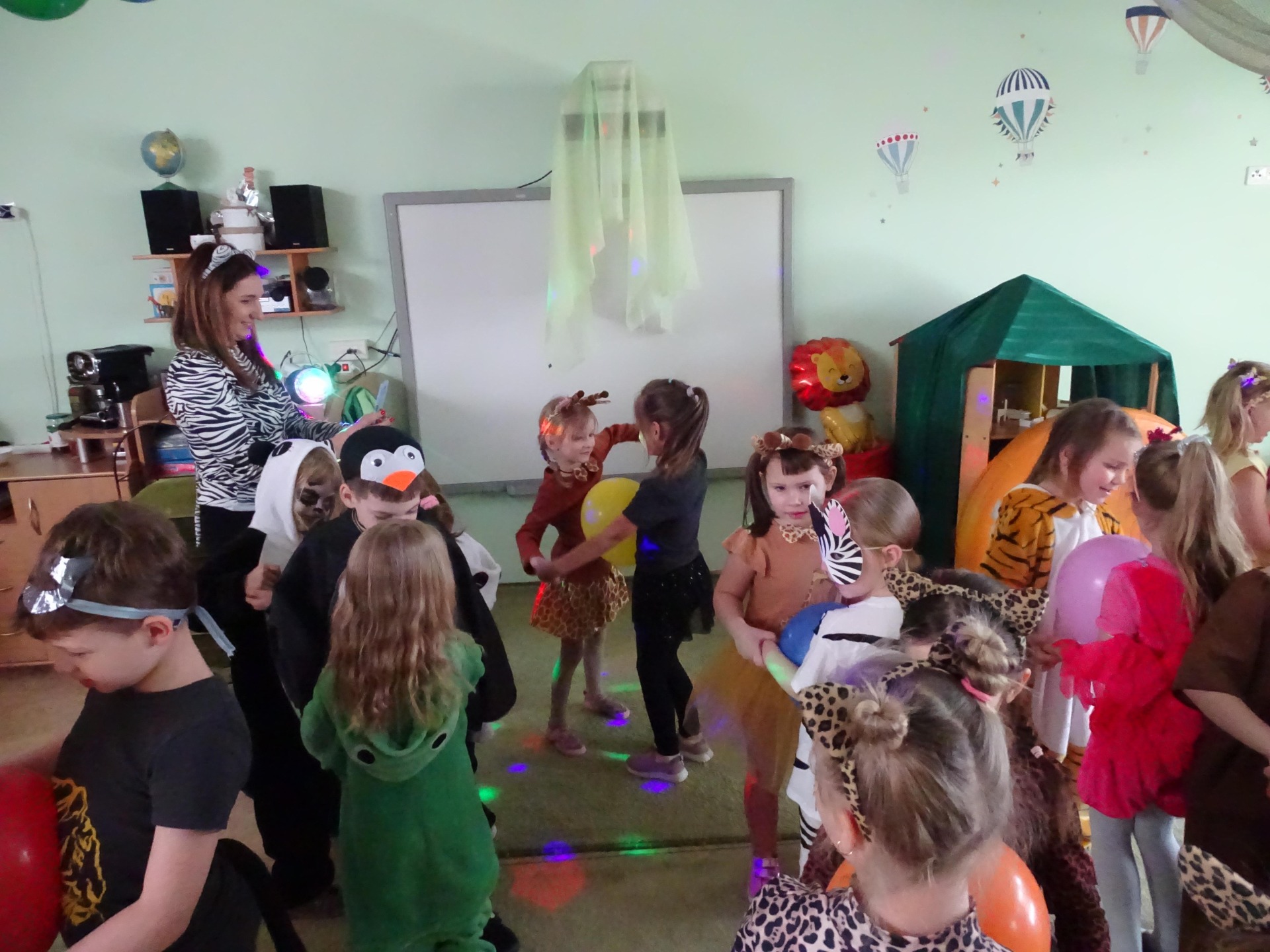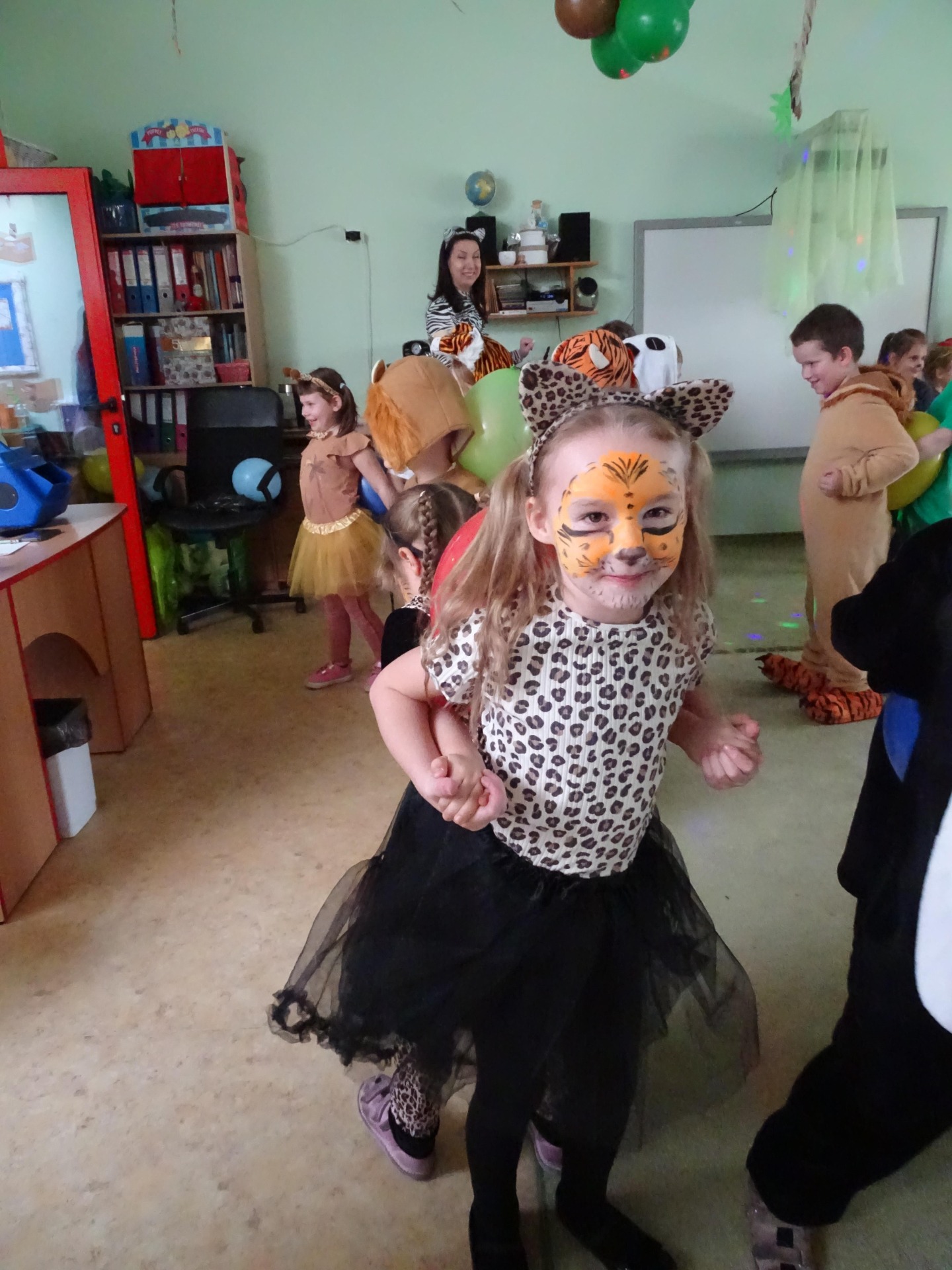 12 lutego dwie najstarsze grupy przedszkolne imprezowały na balu karnawałowym . W tym roku tematem przewodnim była dżungla, dlatego parkiet zagęścił się od obecności dzikich zwierząt. Pojawiły się min.: lwy , pantery, flaming, żyrafa, papuga, motyl i inne. Od samego początku energia zabawowa dopisywała. Dzieci chętnie pląsały w rytm znanych i lubianych utworów. Nie zabrakło również konkursów, min. podawania kokosa w rzędach, przeciskania się przez pajęczą sieć, czy rozpoznawania odgłosów dzikich zwierząt. Dzieci zaprezentowały swoje piękne stroje na zielonym dywanie, a także udały się w kolorowy korowód po innych, przedszkolnych salach. Nie zabrakło również słodkiego poczęstunku i małych drobiazgów dla przedszkolaków. Serdecznie dziękujemy rodzicom za pomoc w przygotowaniu imprezy 😀.