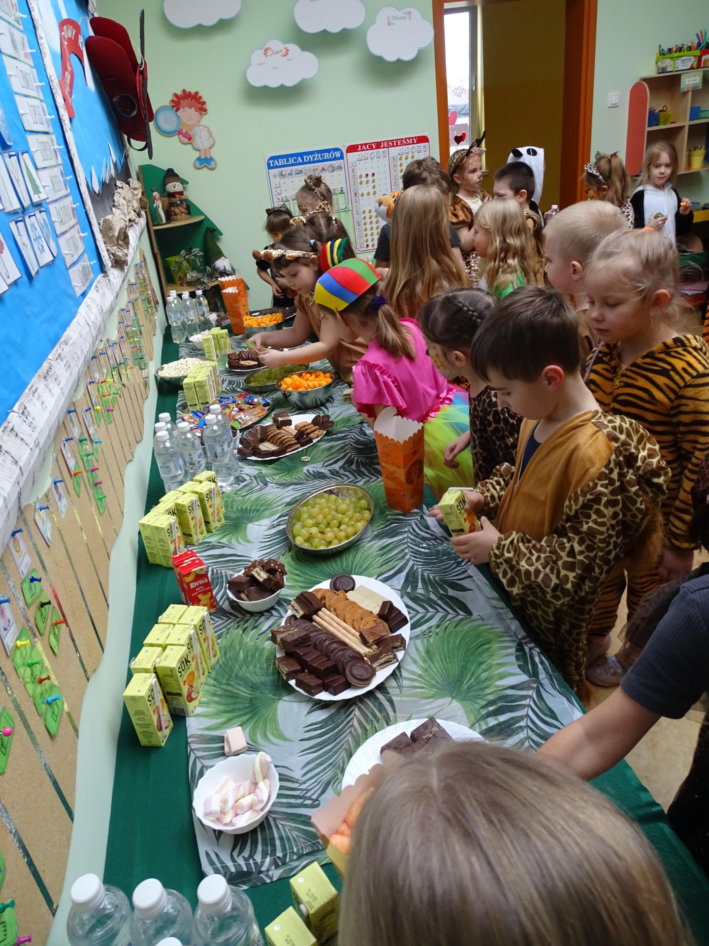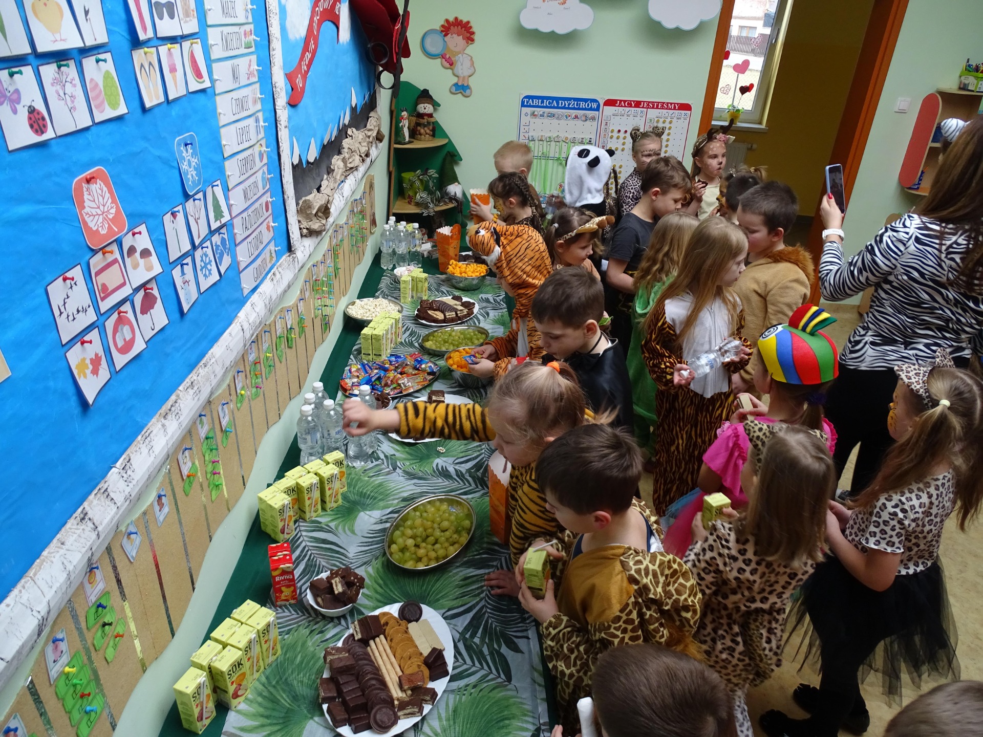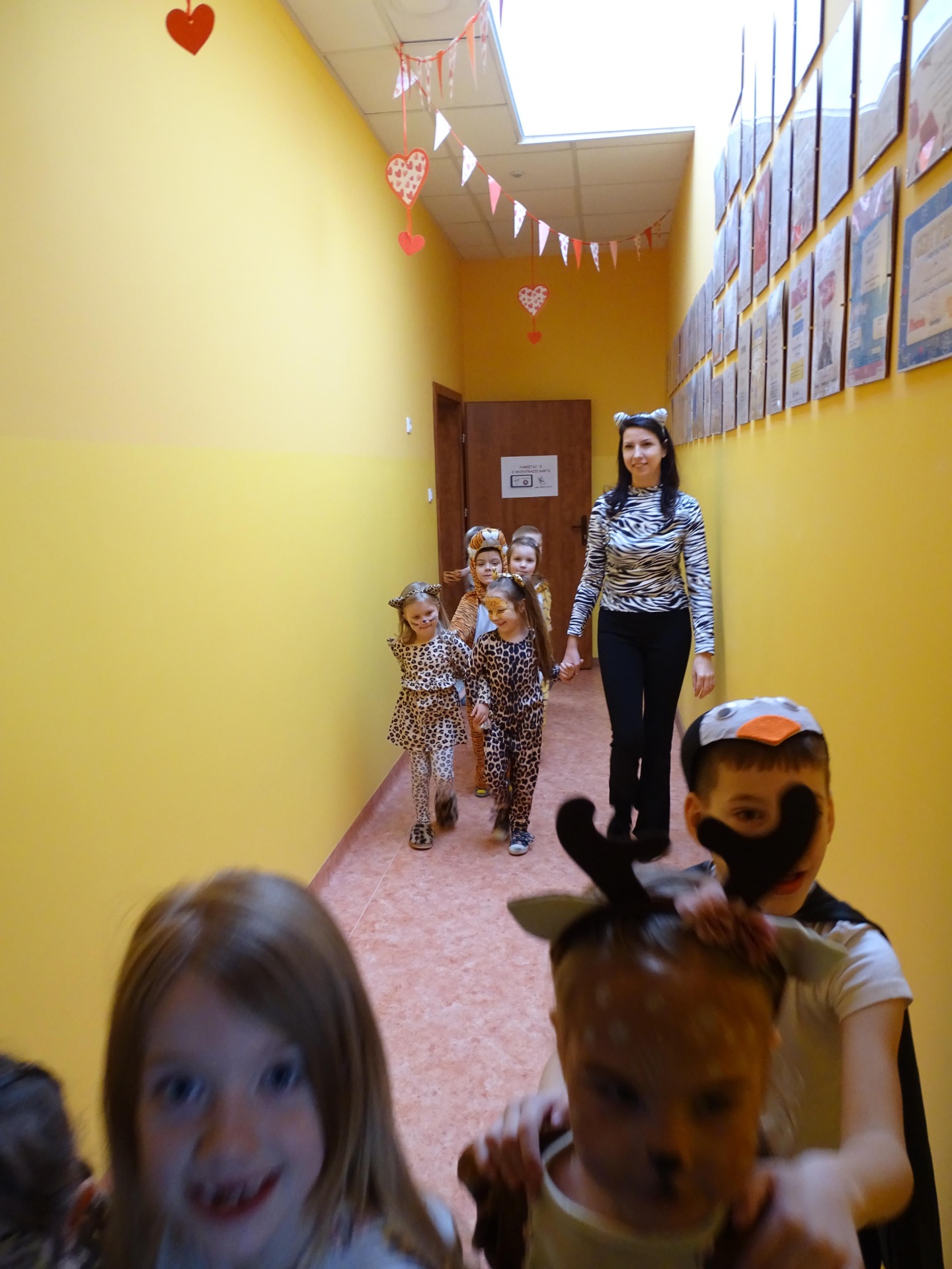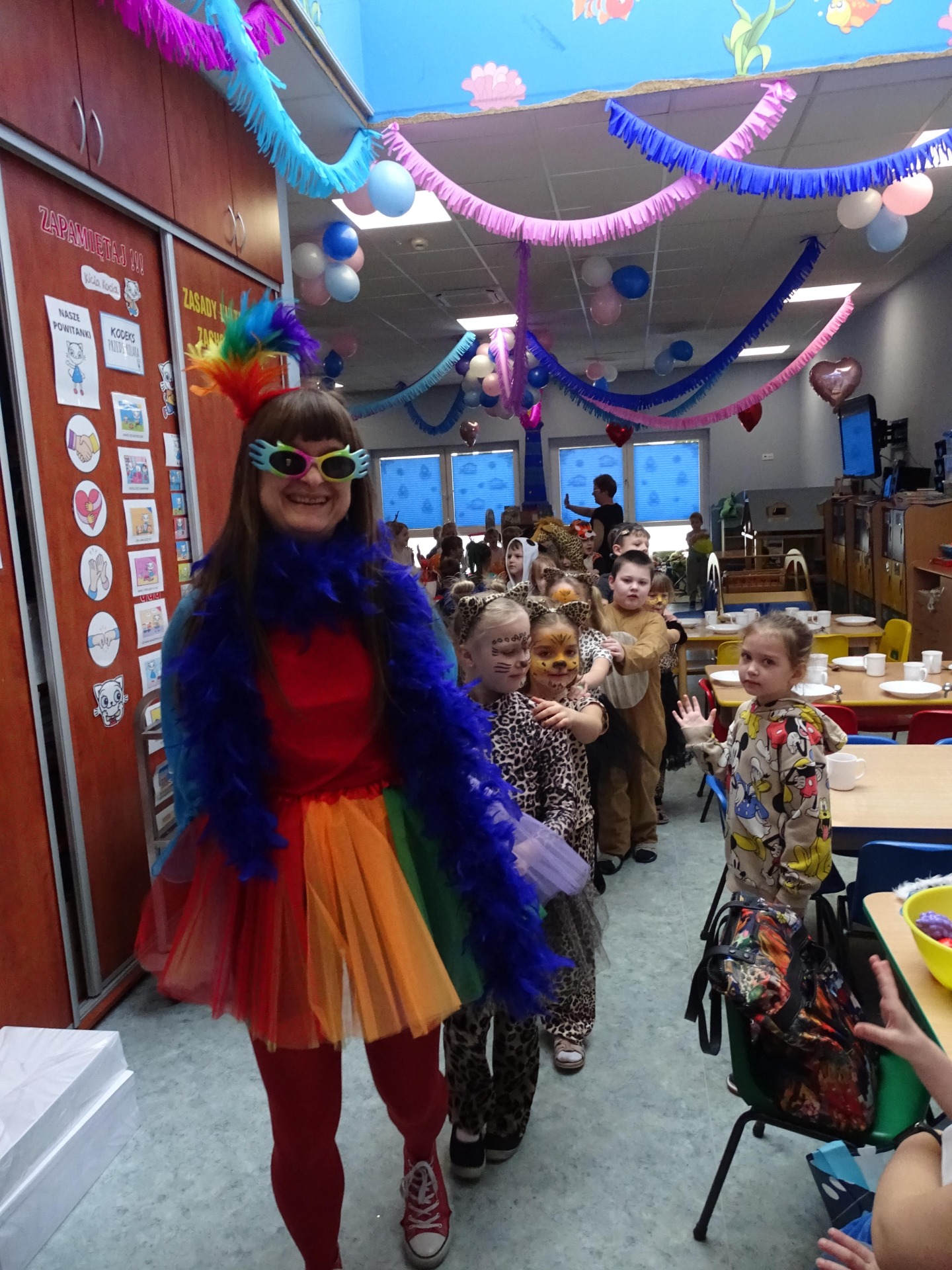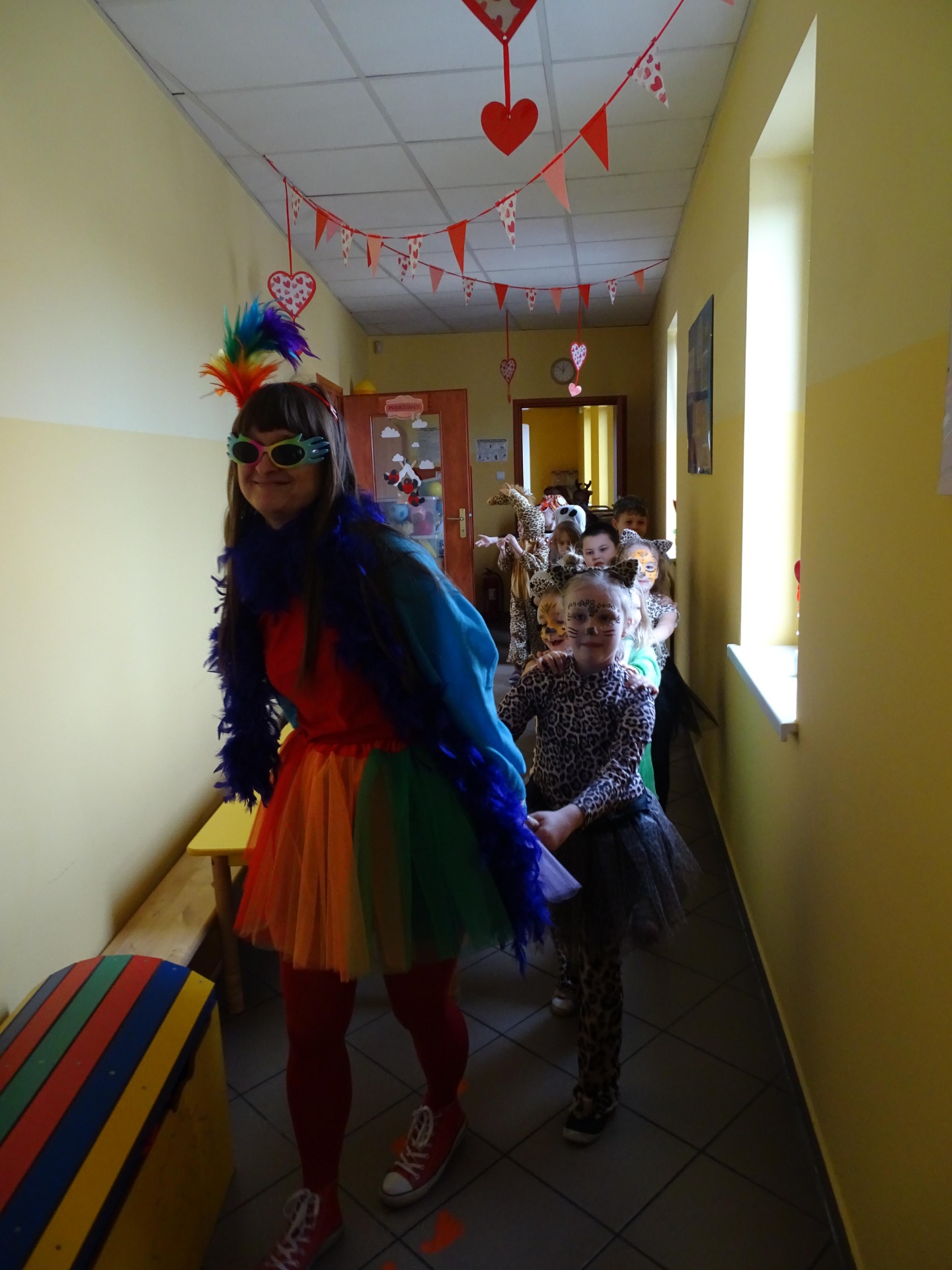 12 lutego dwie najstarsze grupy przedszkolne imprezowały na balu karnawałowym . W tym roku tematem przewodnim była dżungla, dlatego parkiet zagęścił się od obecności dzikich zwierząt. Pojawiły się min.: lwy , pantery, flaming, żyrafa, papuga, motyl i inne. Od samego początku energia zabawowa dopisywała. Dzieci chętnie pląsały w rytm znanych i lubianych utworów. Nie zabrakło również konkursów, min. podawania kokosa w rzędach, przeciskania się przez pajęczą sieć, czy rozpoznawania odgłosów dzikich zwierząt. Dzieci zaprezentowały swoje piękne stroje na zielonym dywanie, a także udały się w kolorowy korowód po innych, przedszkolnych salach. Nie zabrakło również słodkiego poczęstunku i małych drobiazgów dla przedszkolaków. Serdecznie dziękujemy rodzicom za pomoc w przygotowaniu imprezy 😀.